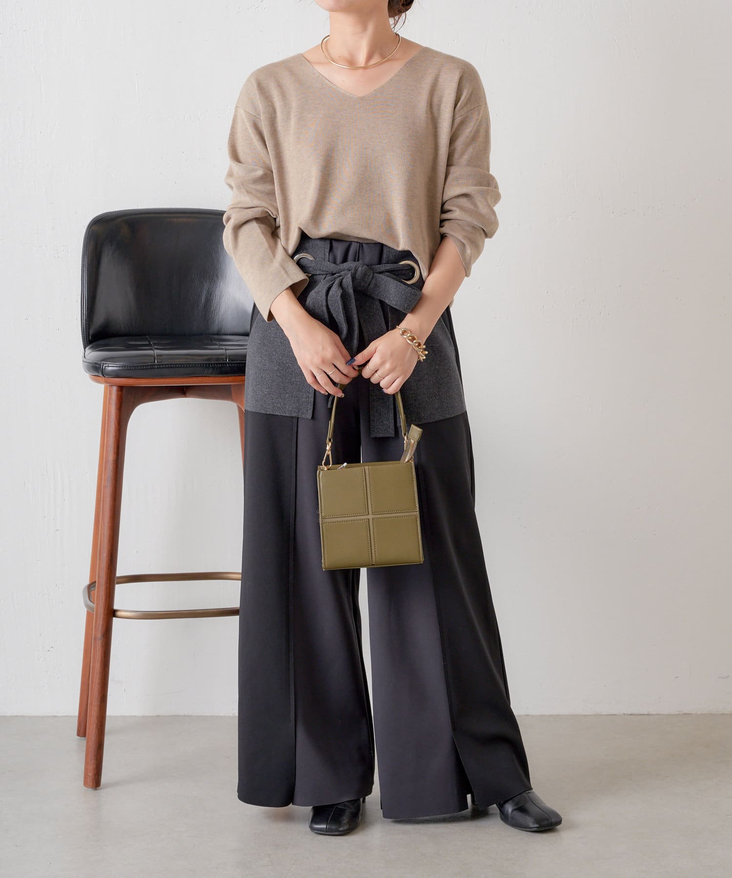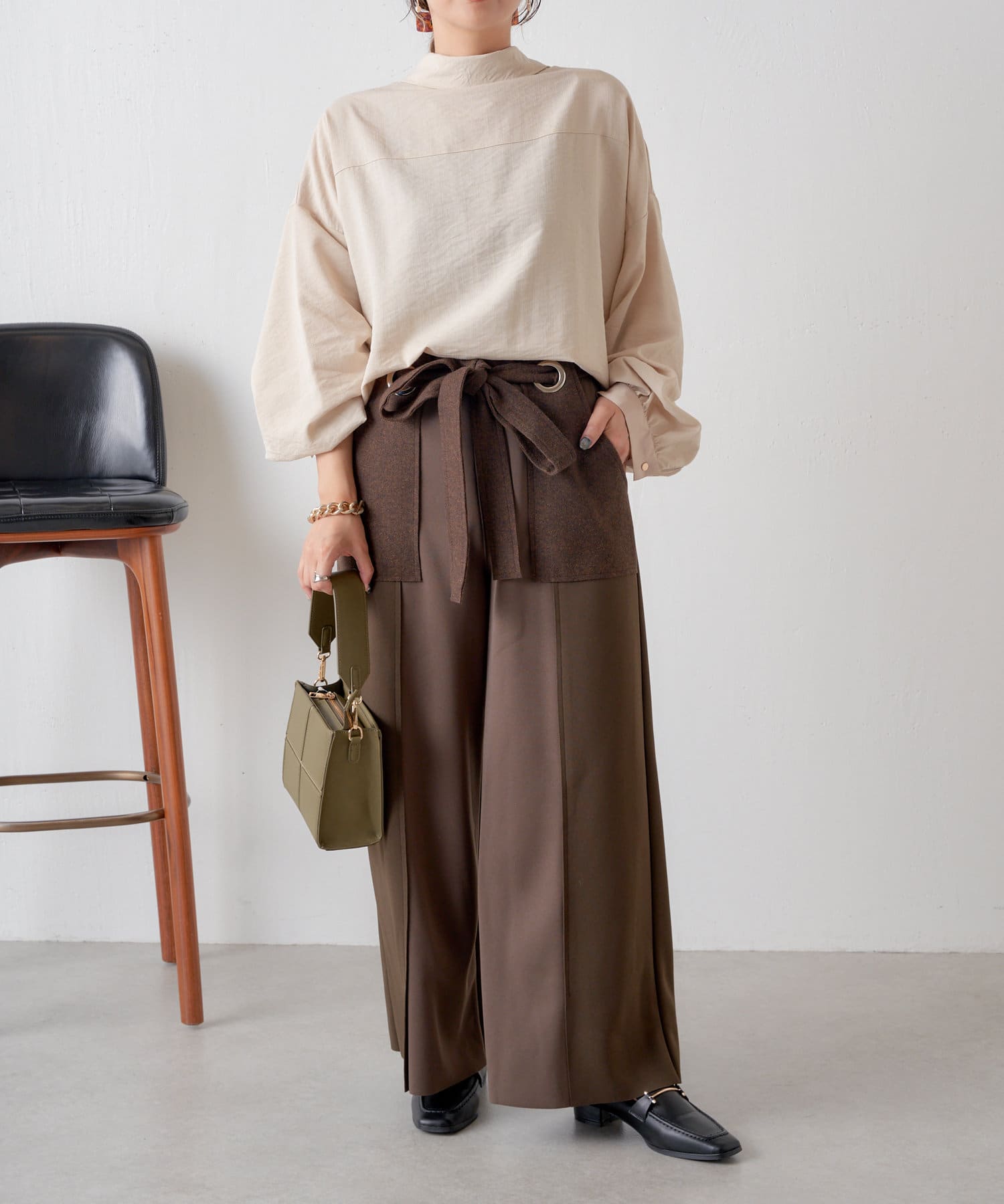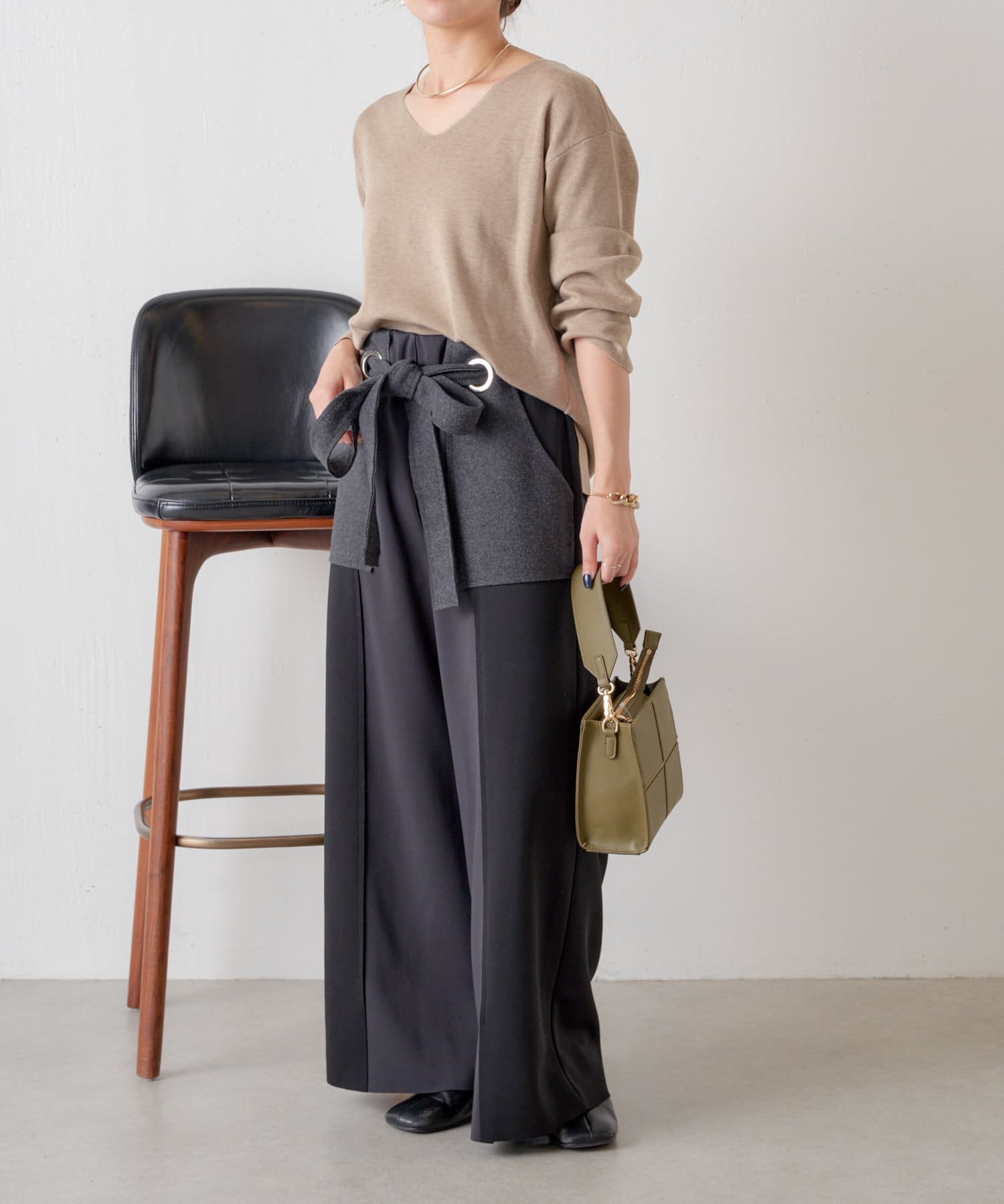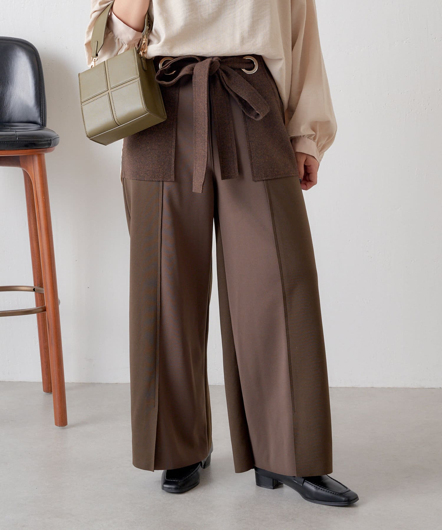・ポケットとリボンの部分がメルトン生地になっていることで一気に秋仕様に。