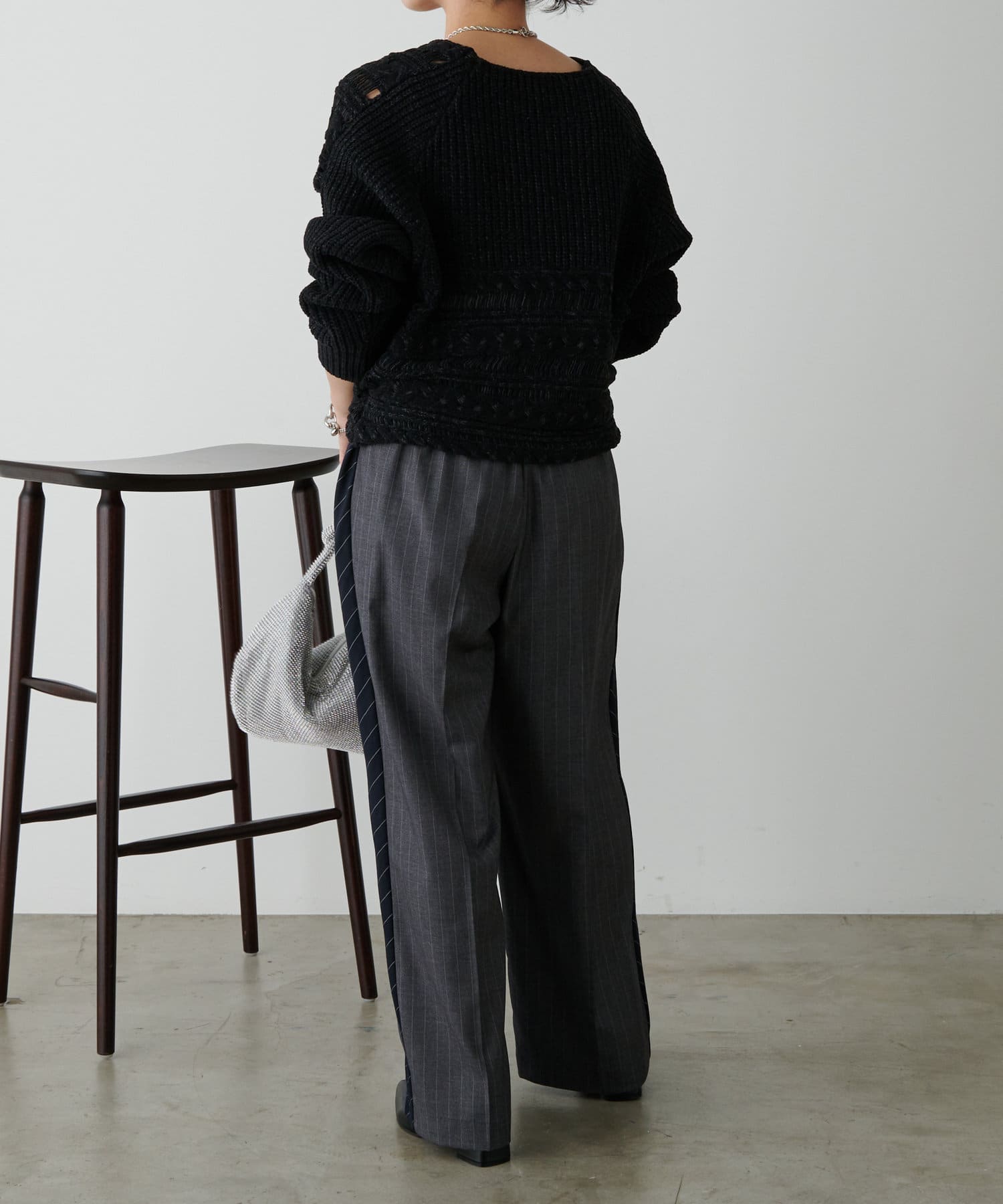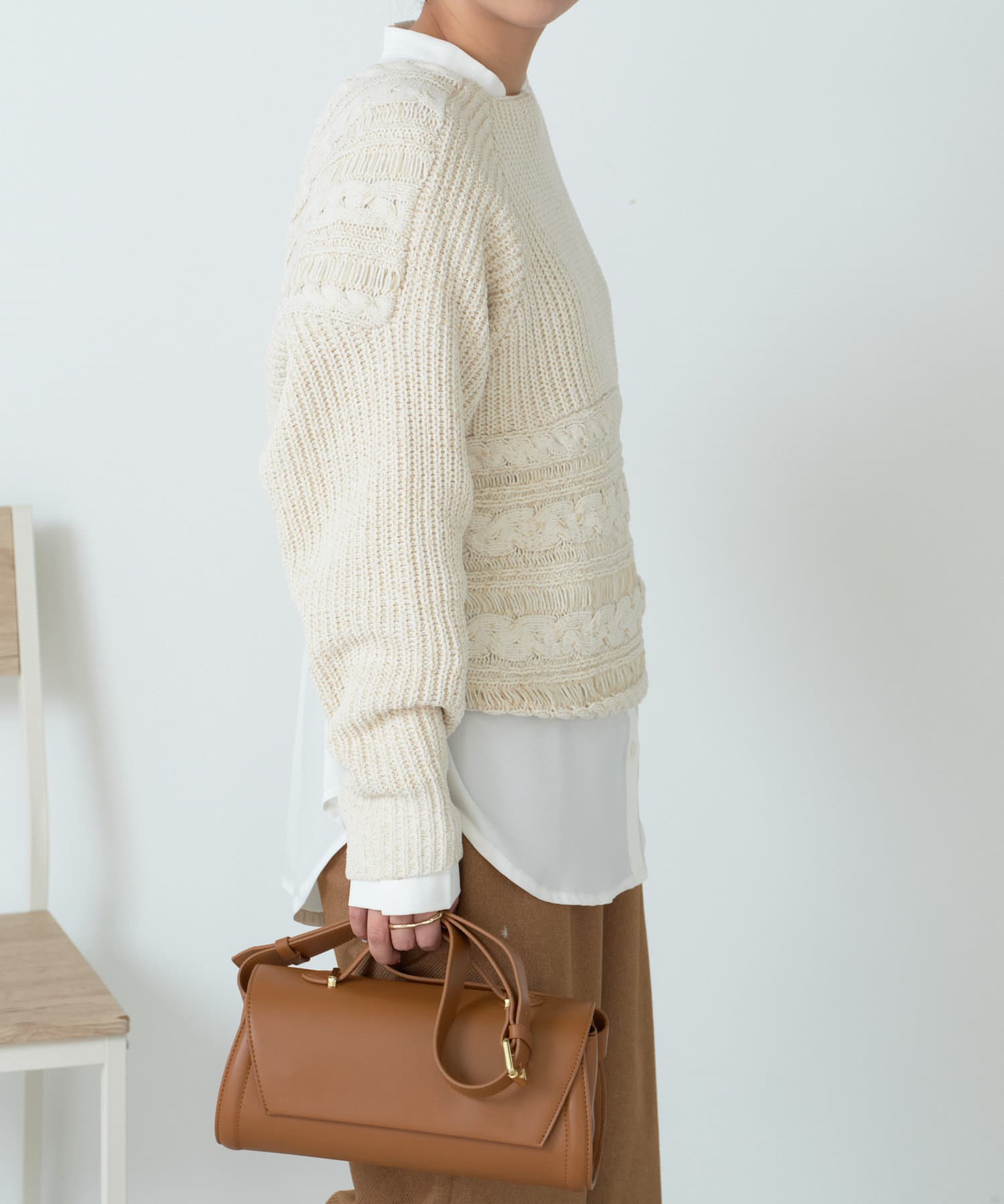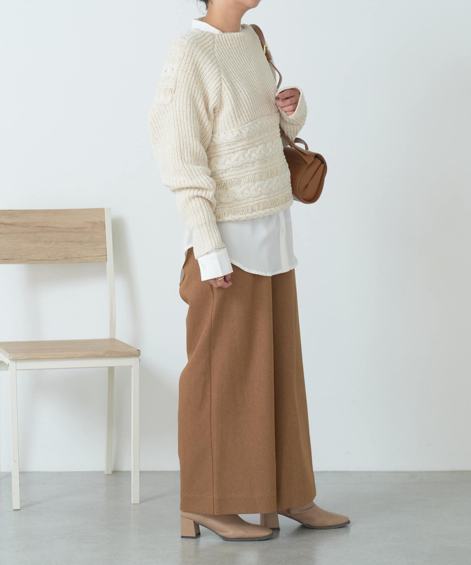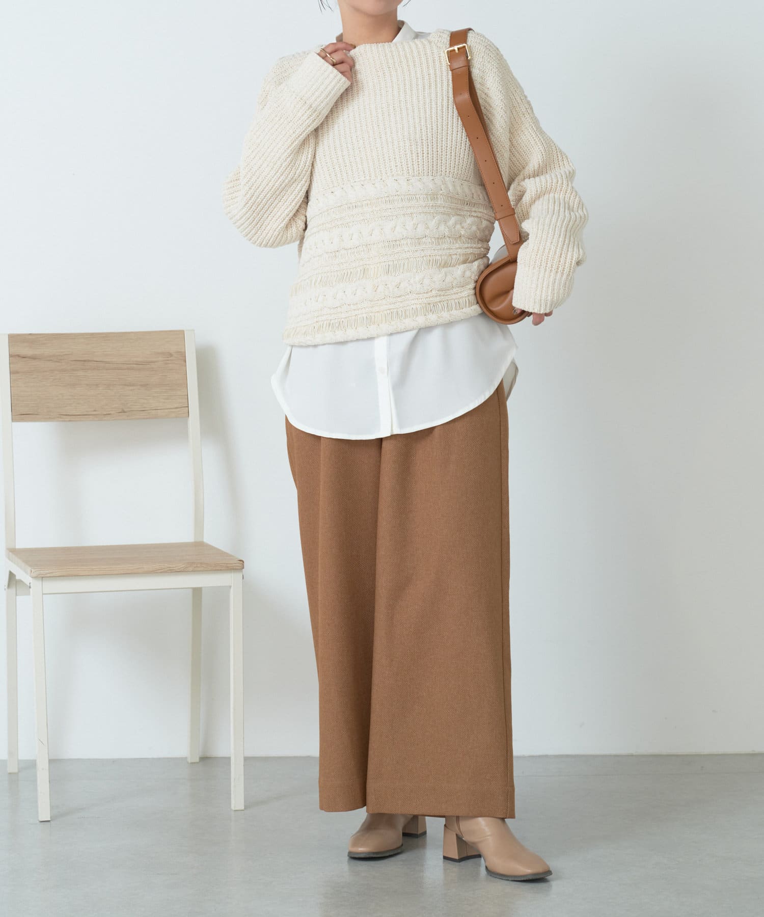 ・一枚での着用はもちろん、シャツやタートルネックを重ねたスタイリングもおすすめです。