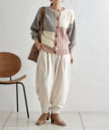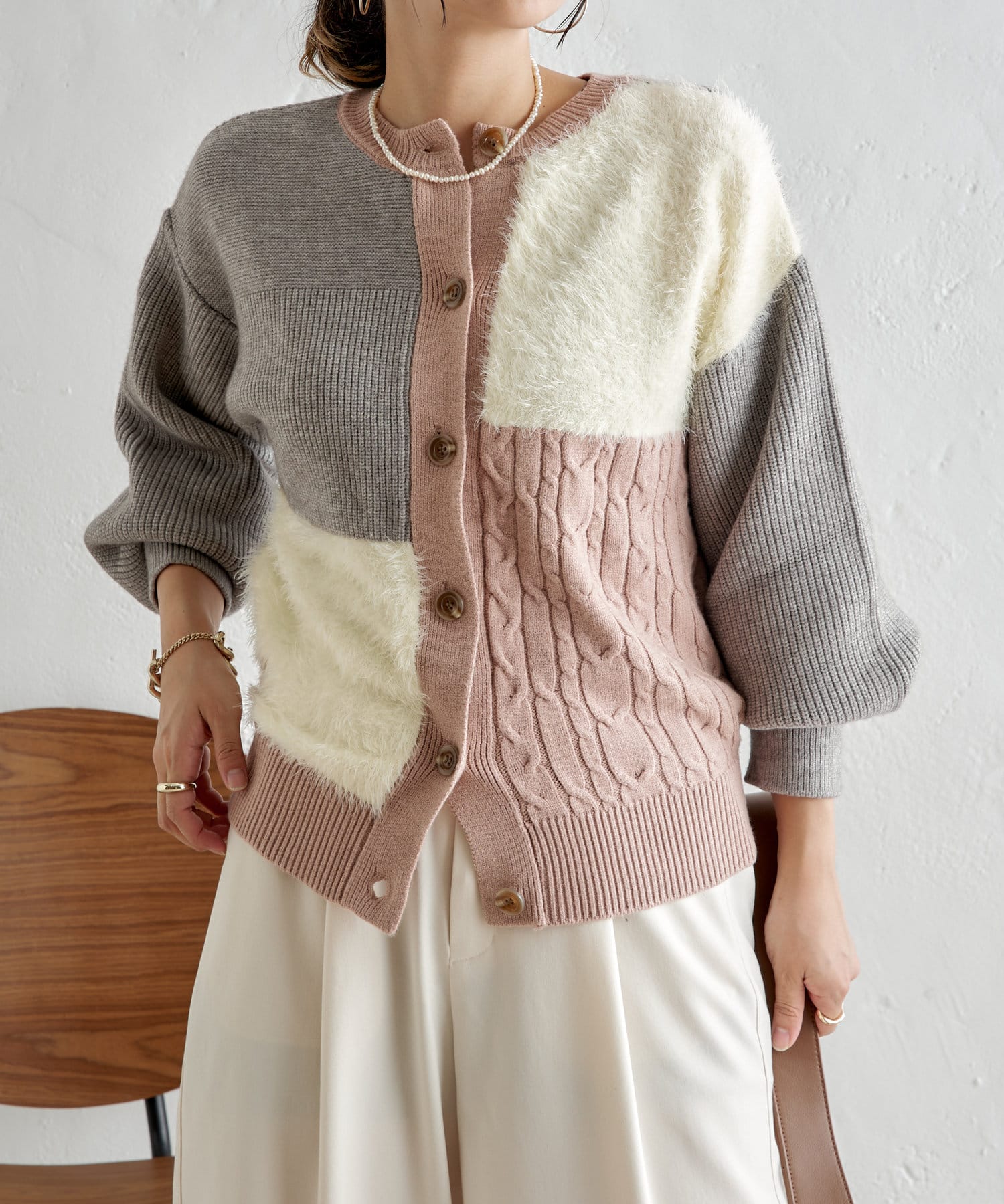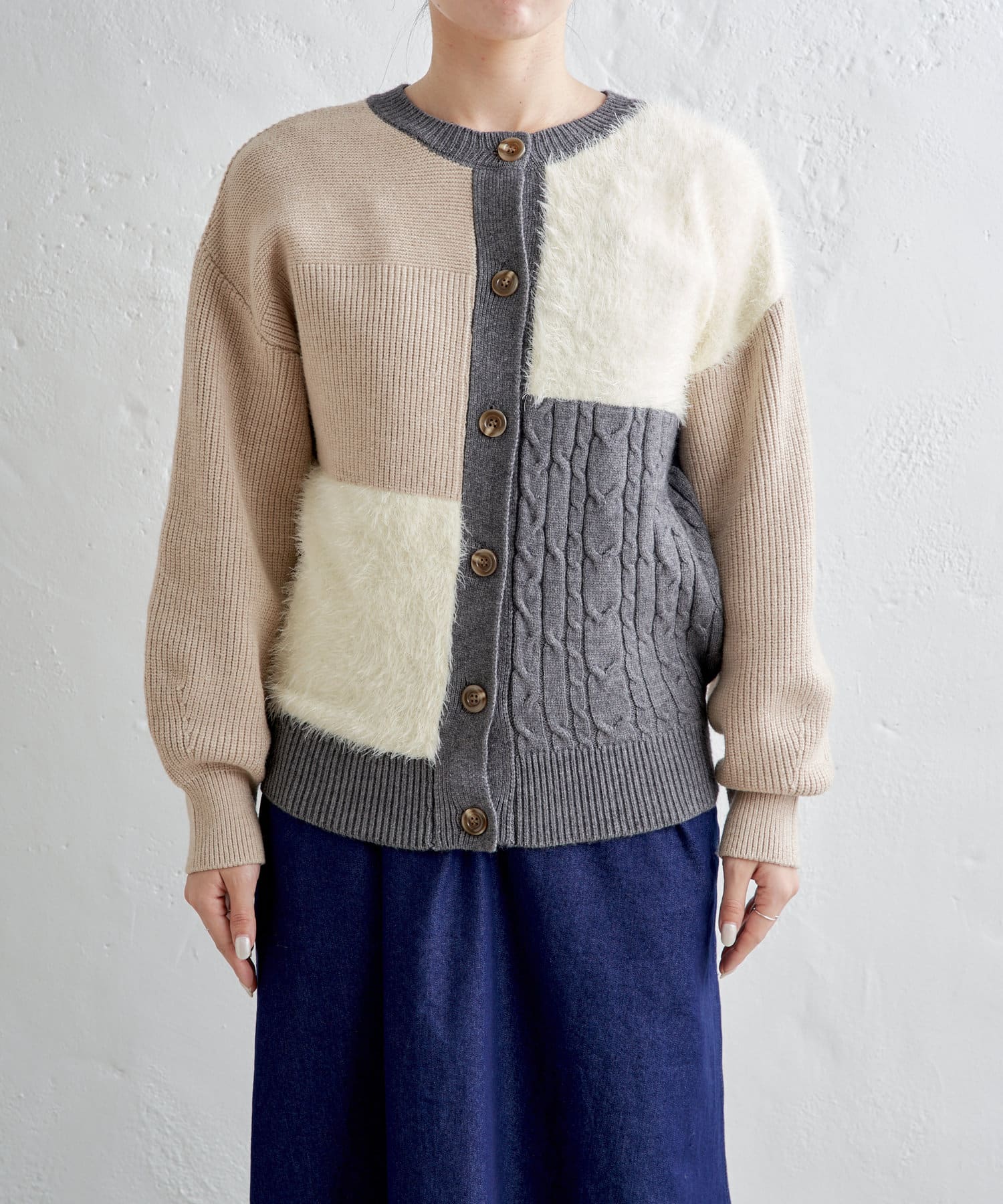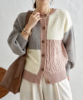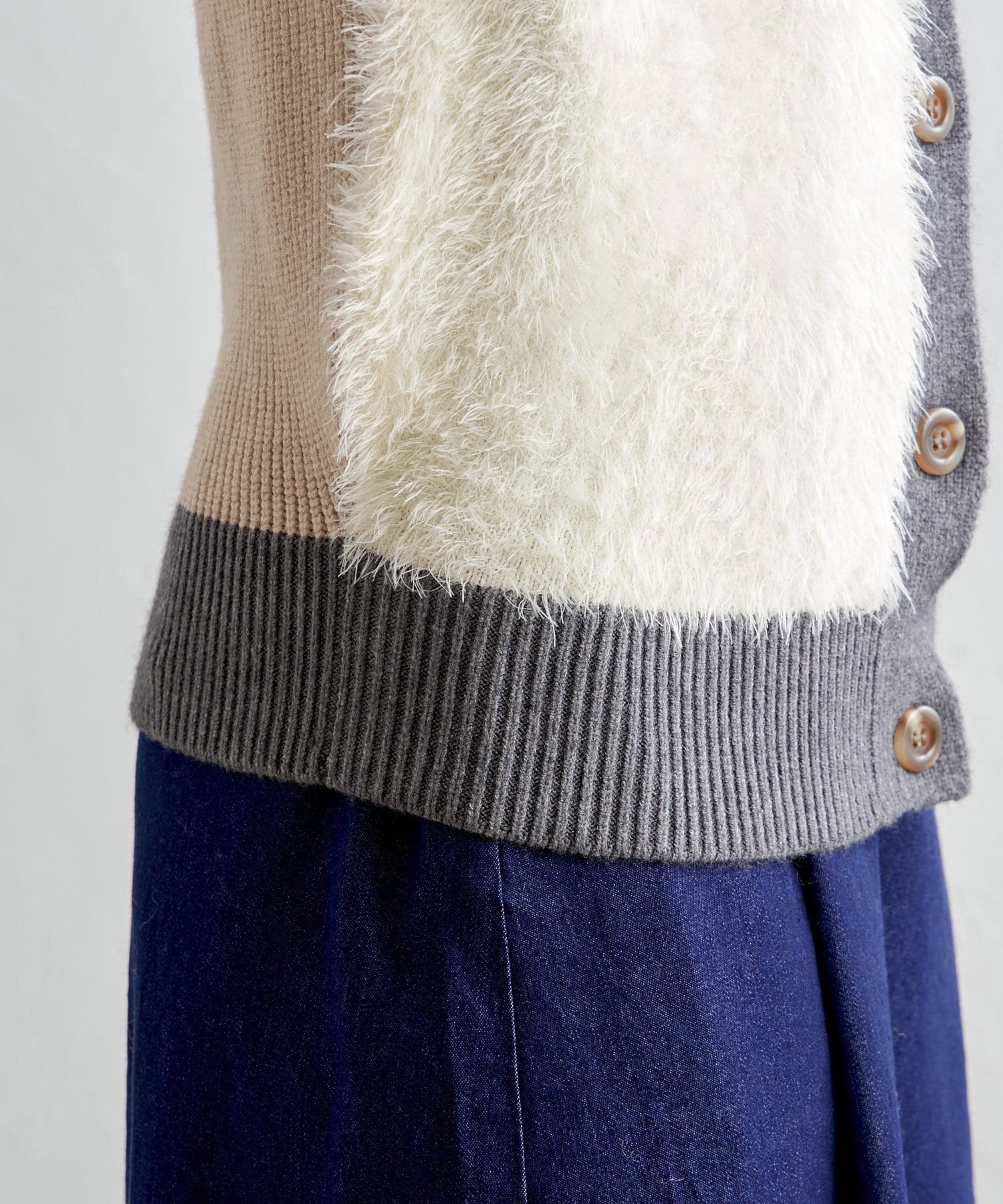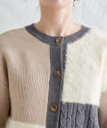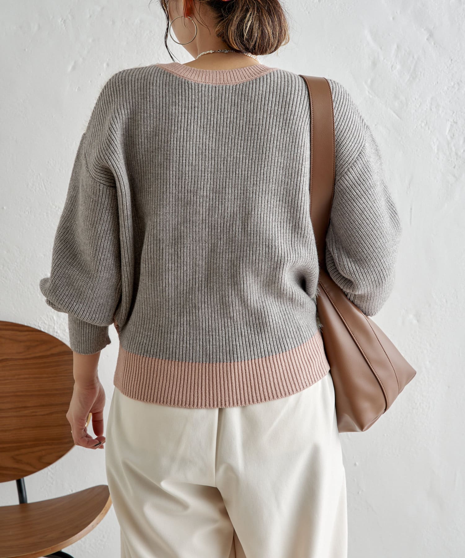 ・大きめのパネルとフェザーの切替で、1枚でスタイリングが決まるニット。