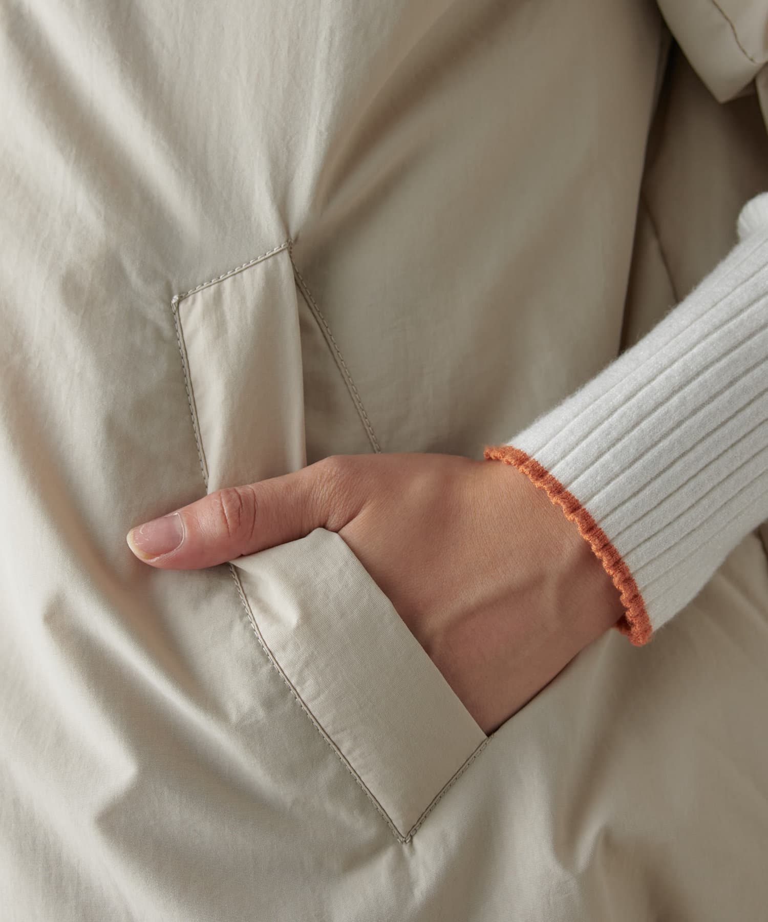 ・収納可能なフード付きで、気分や気候に合わせて2WAYで着用いただけます◎