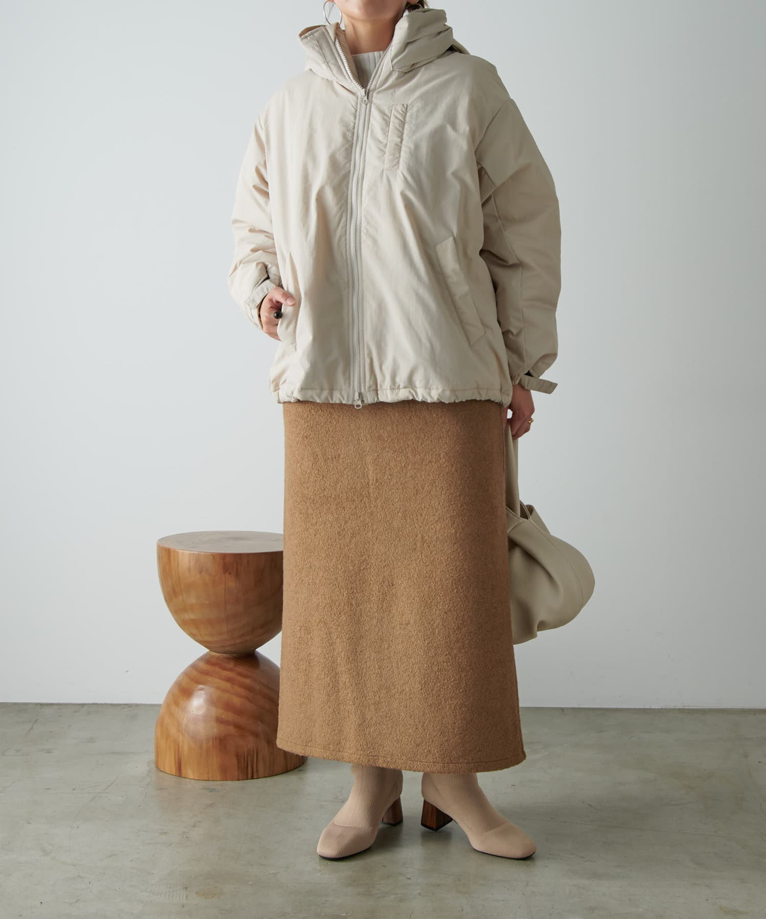 ・ワイドパンツやデニムでカジュアルにも、スカートやワンピースに合わせてきれいめにも着れるアイテムです。