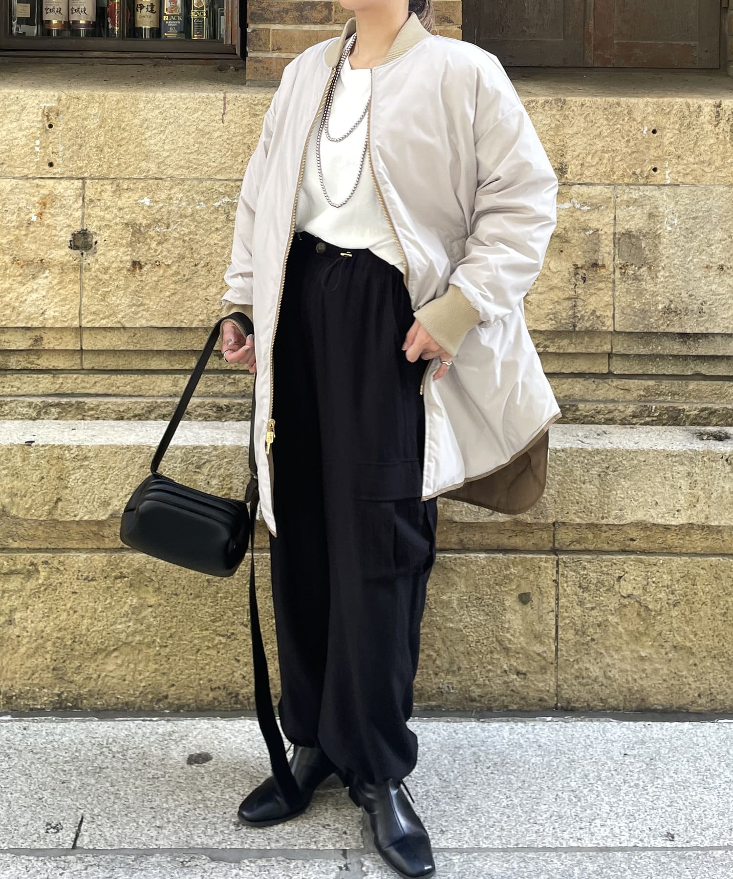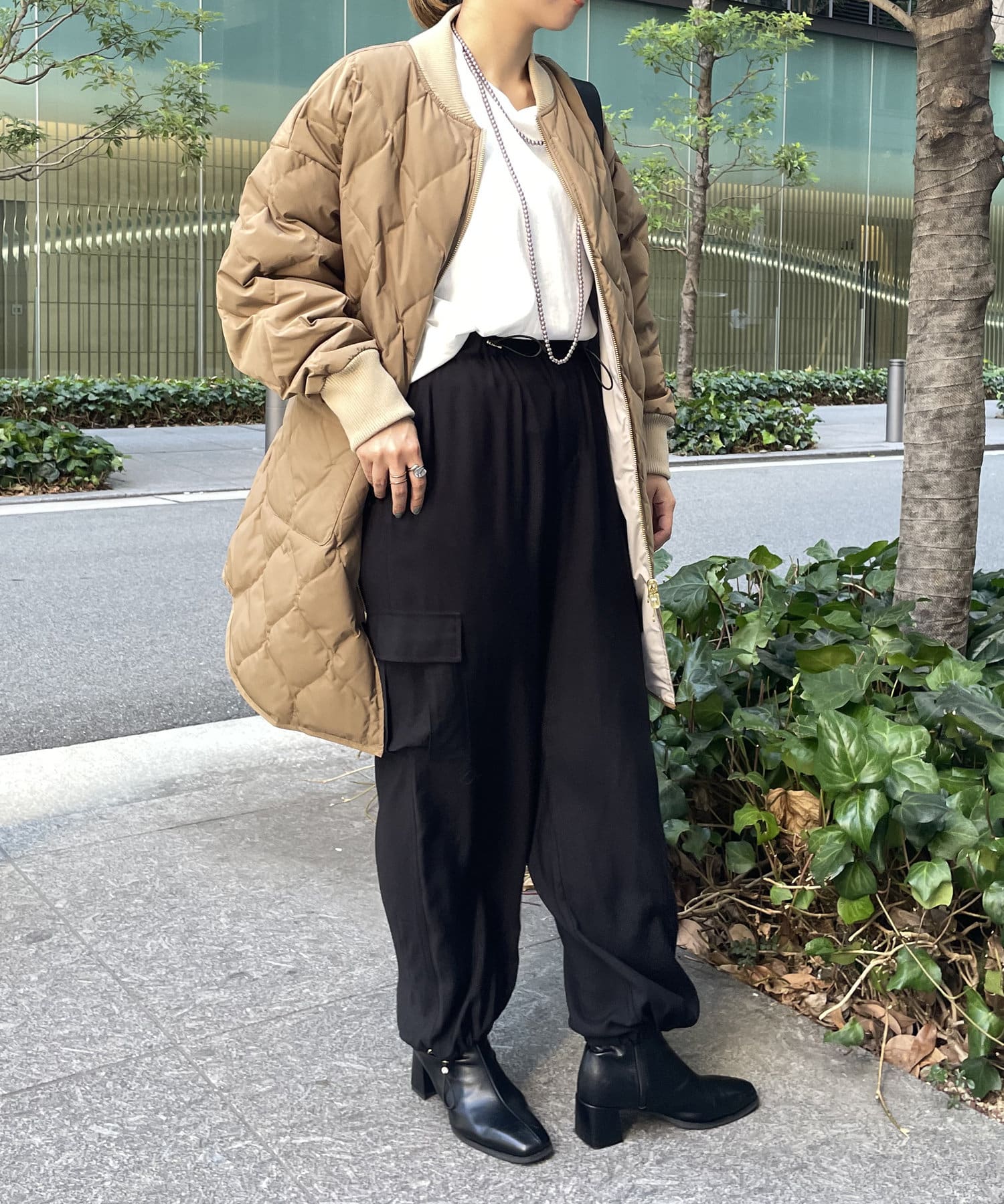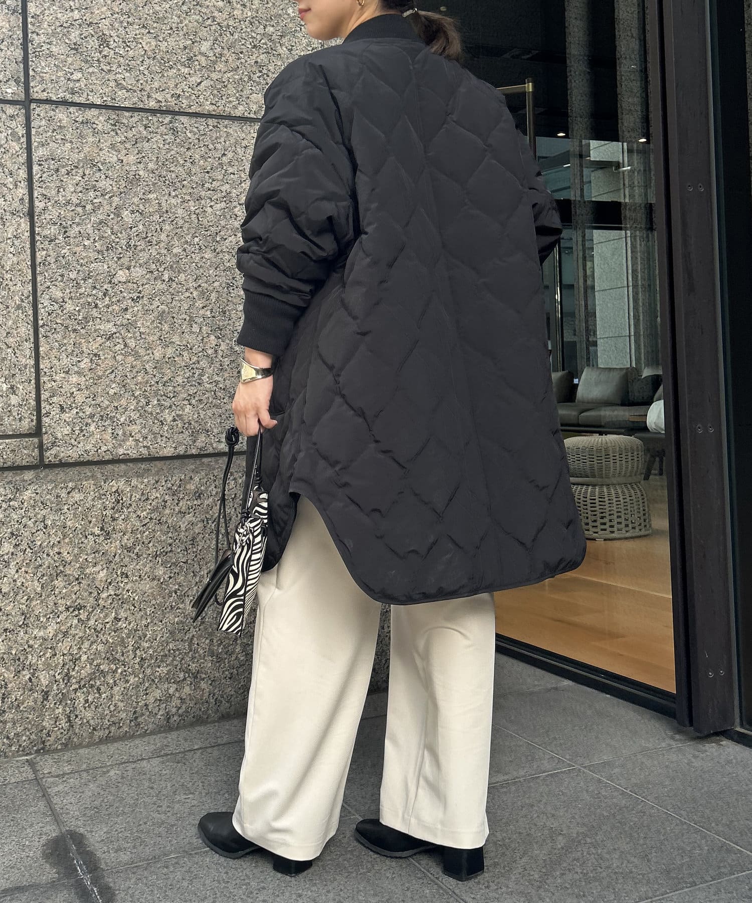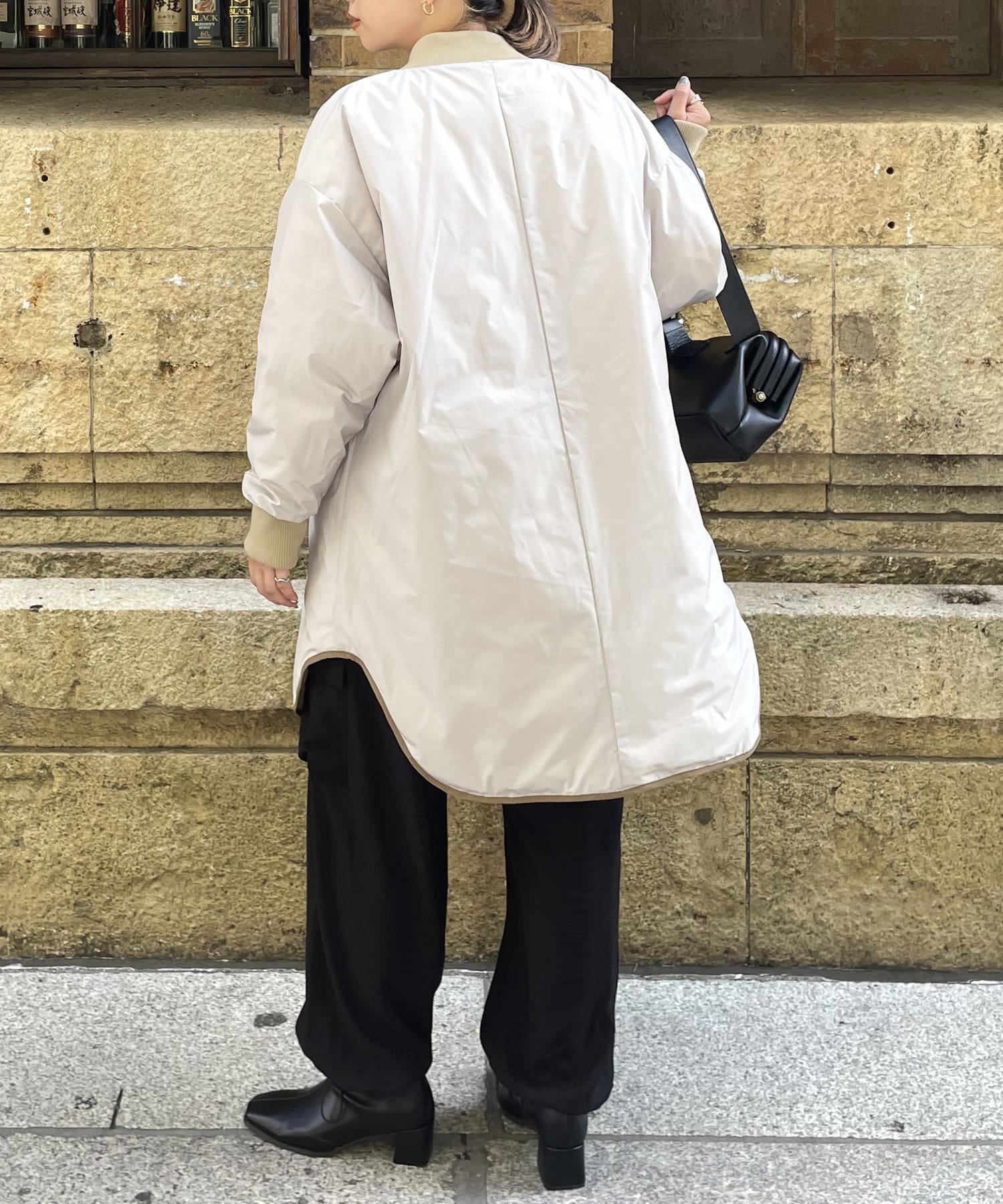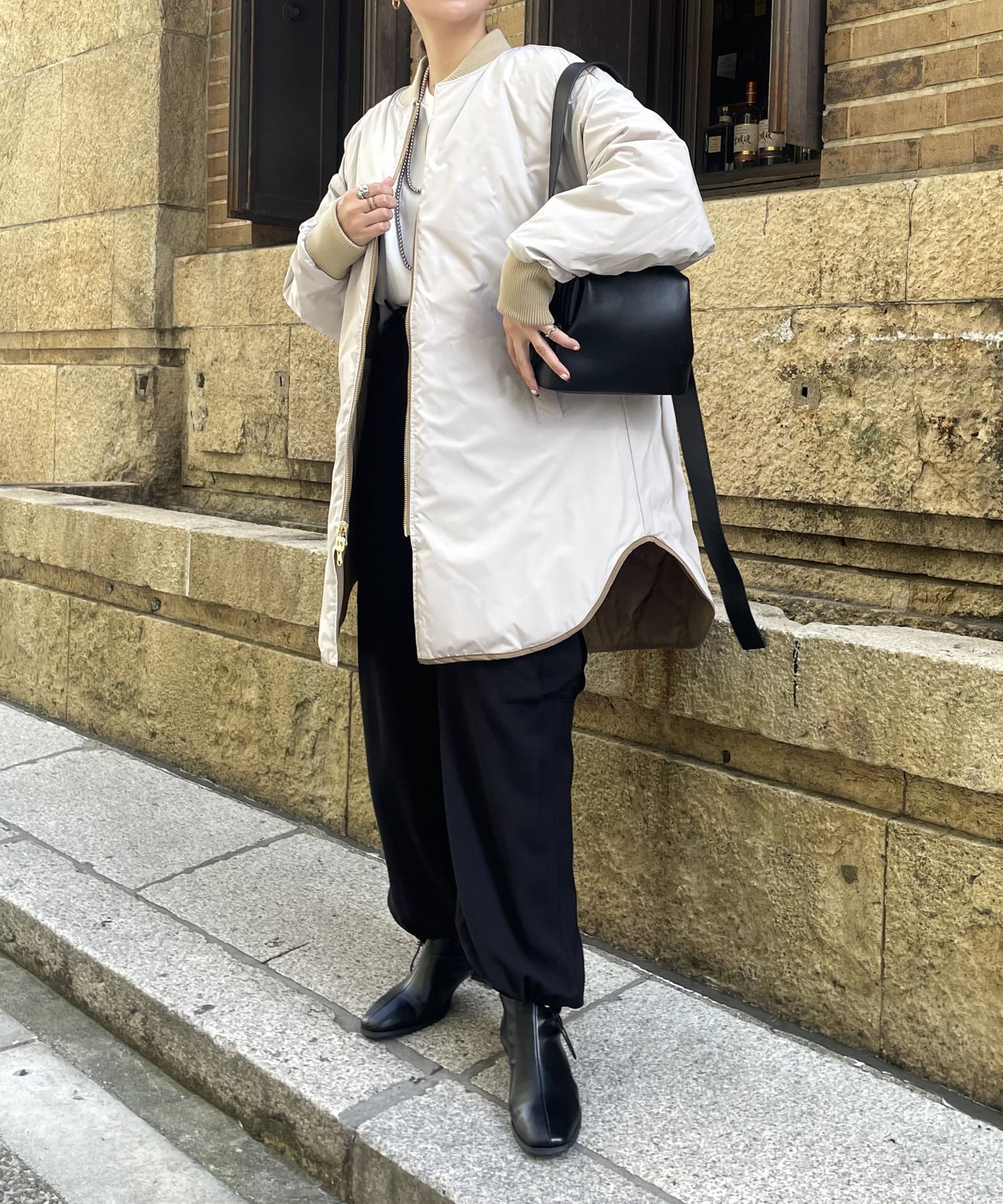 ・キルティングの面にすると大人カジュアルに、リバーシブルにするとシンプルで上品なきれいめスタイルが叶います。