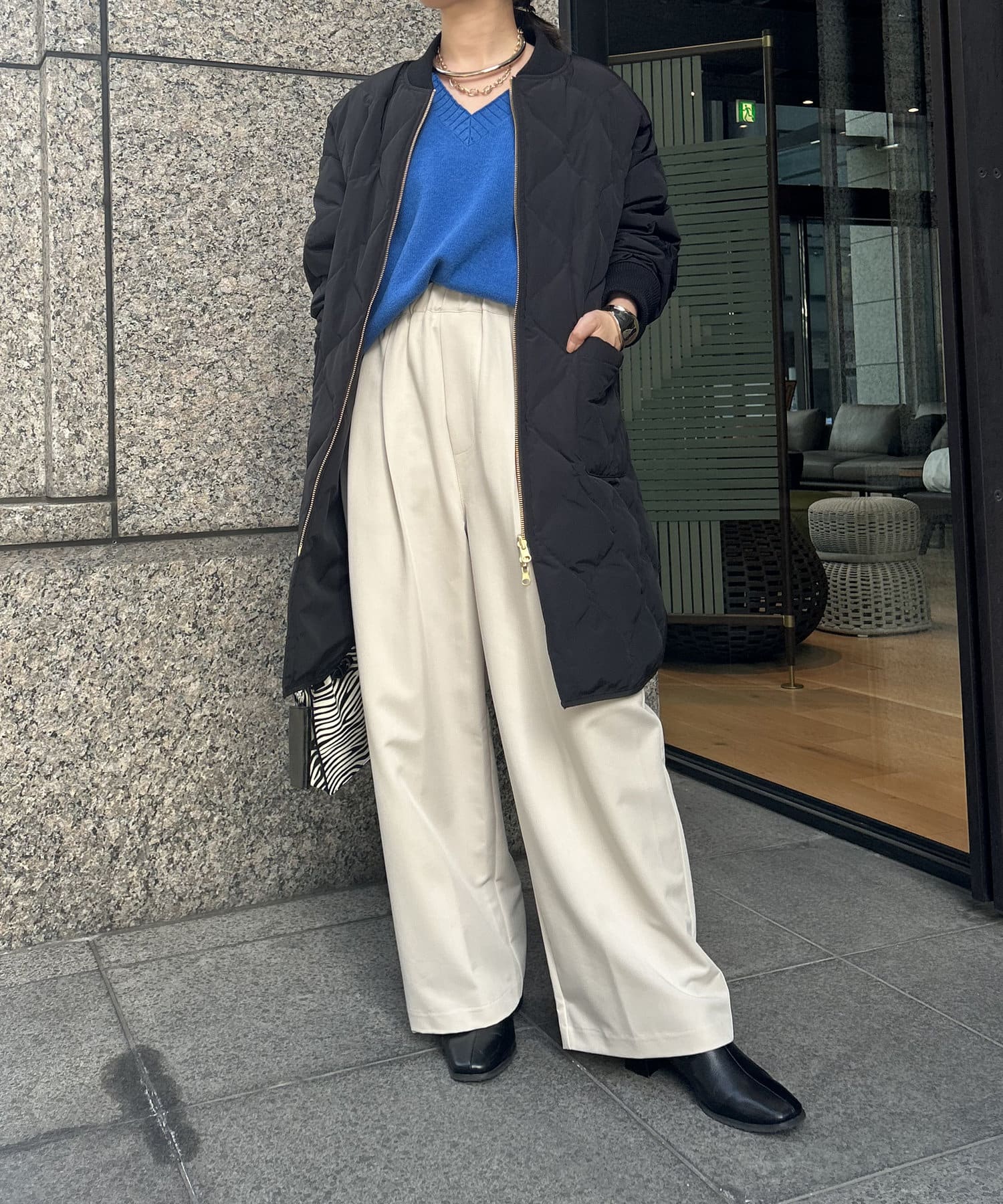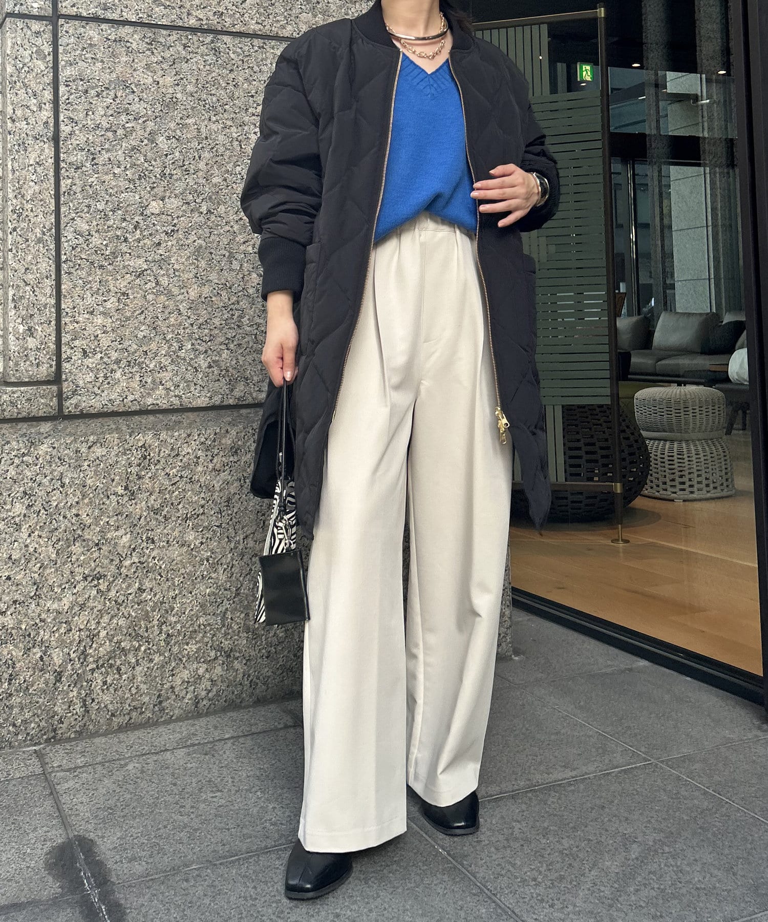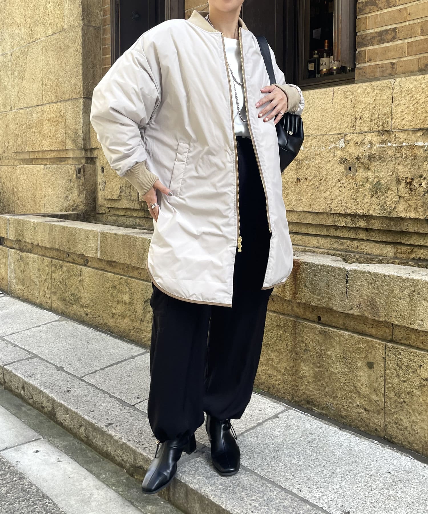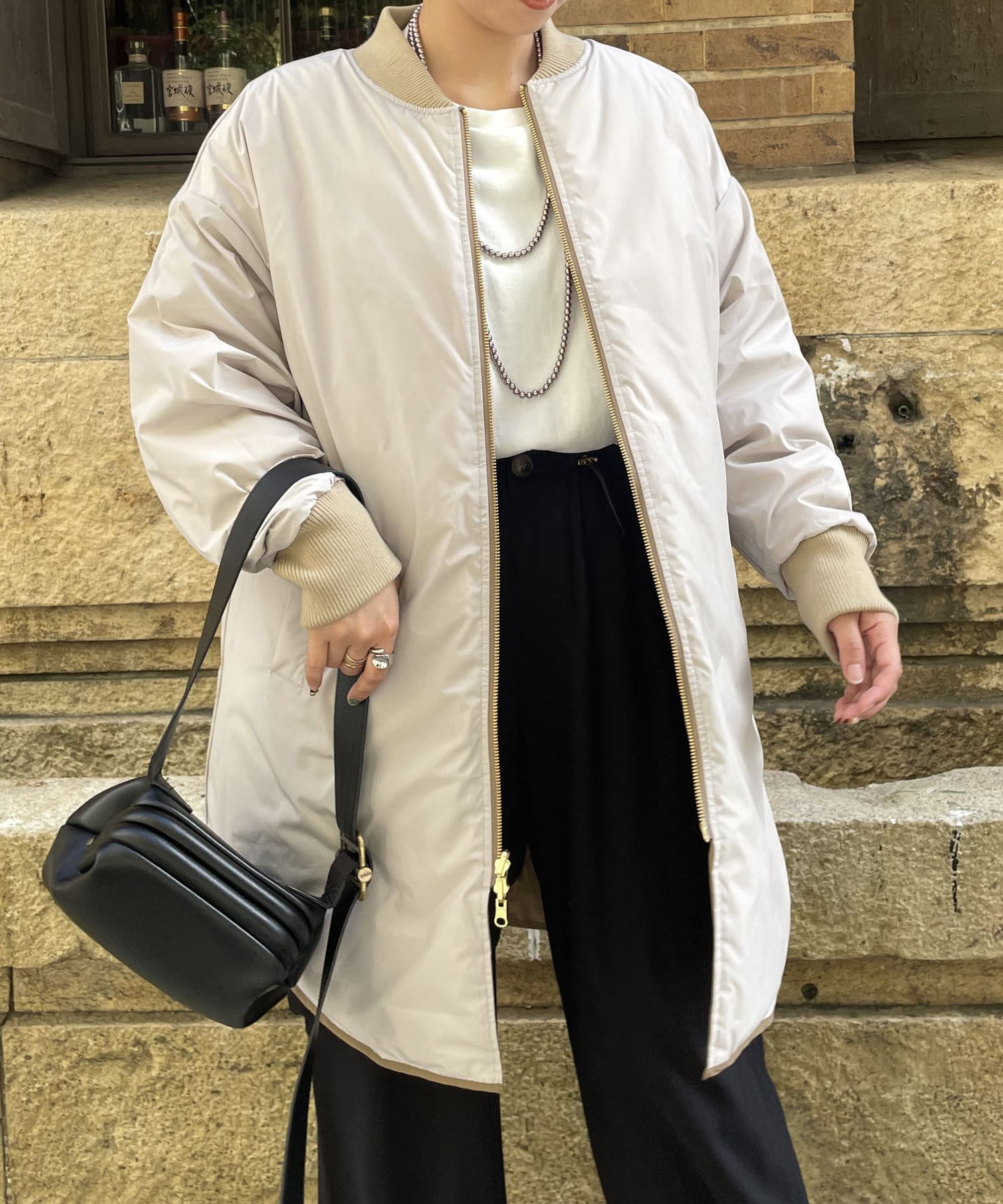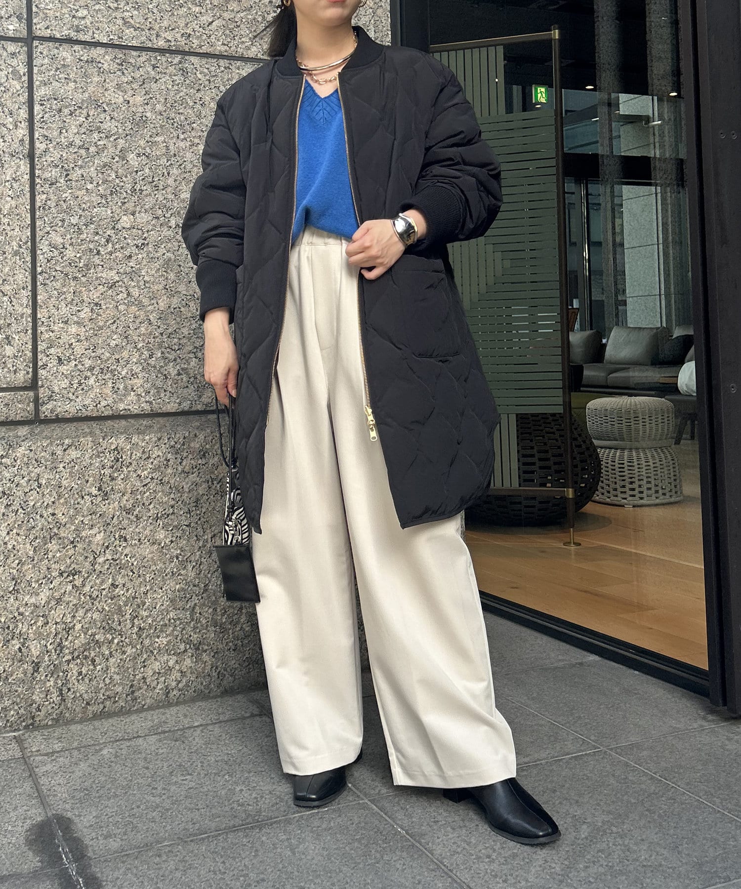 ・キルティングの面にすると大人カジュアルに、リバーシブルにするとシンプルで上品なきれいめスタイルが叶います。
