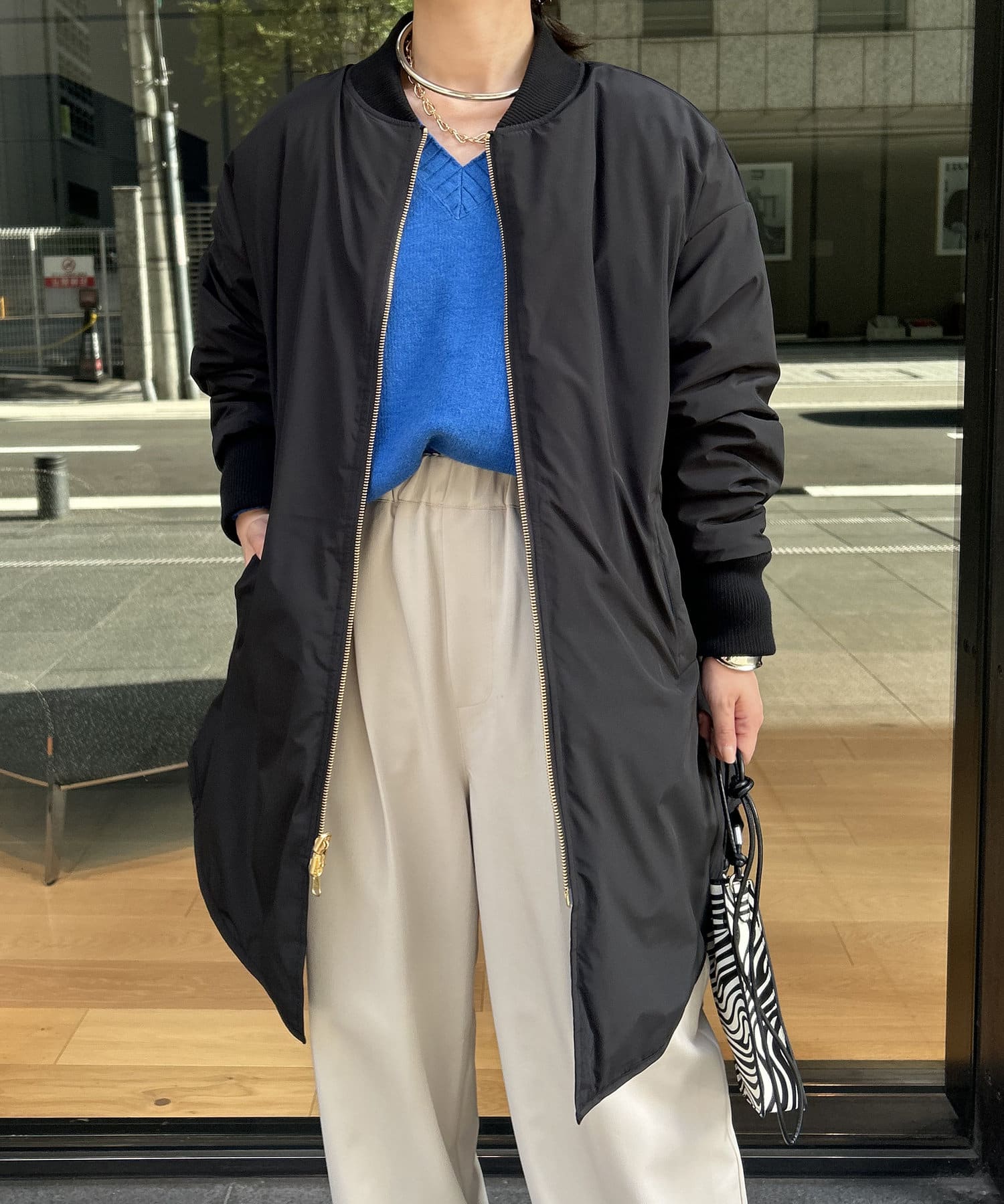 ・袖口のリブ素材がワンポイントになって高見えする一着。