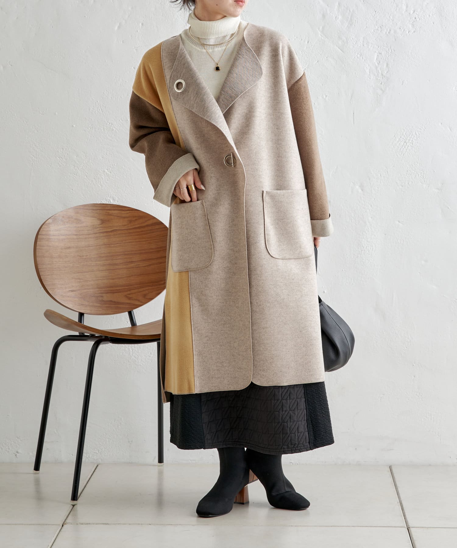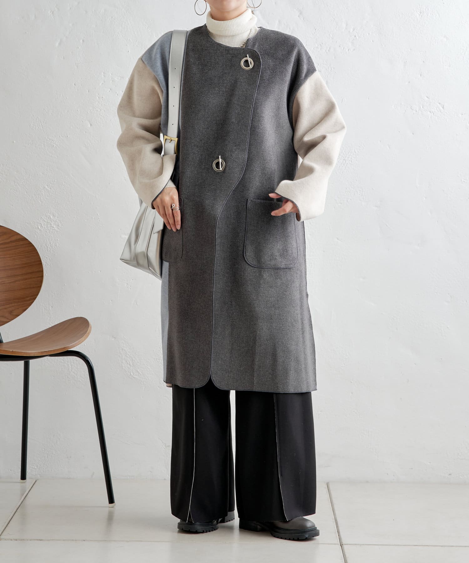 ・人気のボンディングコートから新作が登場!バーボタンデザインが着るだけで華やかなライトアウター◎