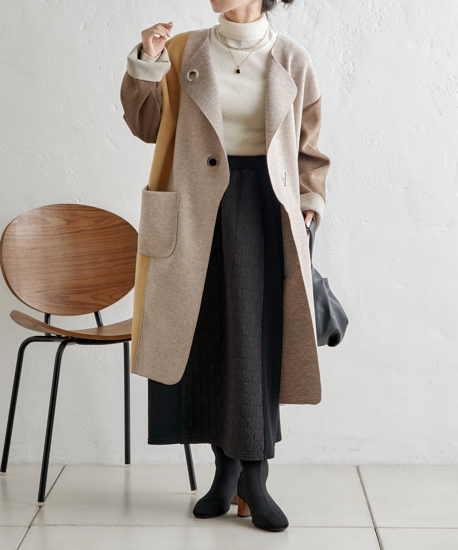 ・ゆとりのあるサイズ感なので、ボリュームのあるニット合わせでももたつきません。