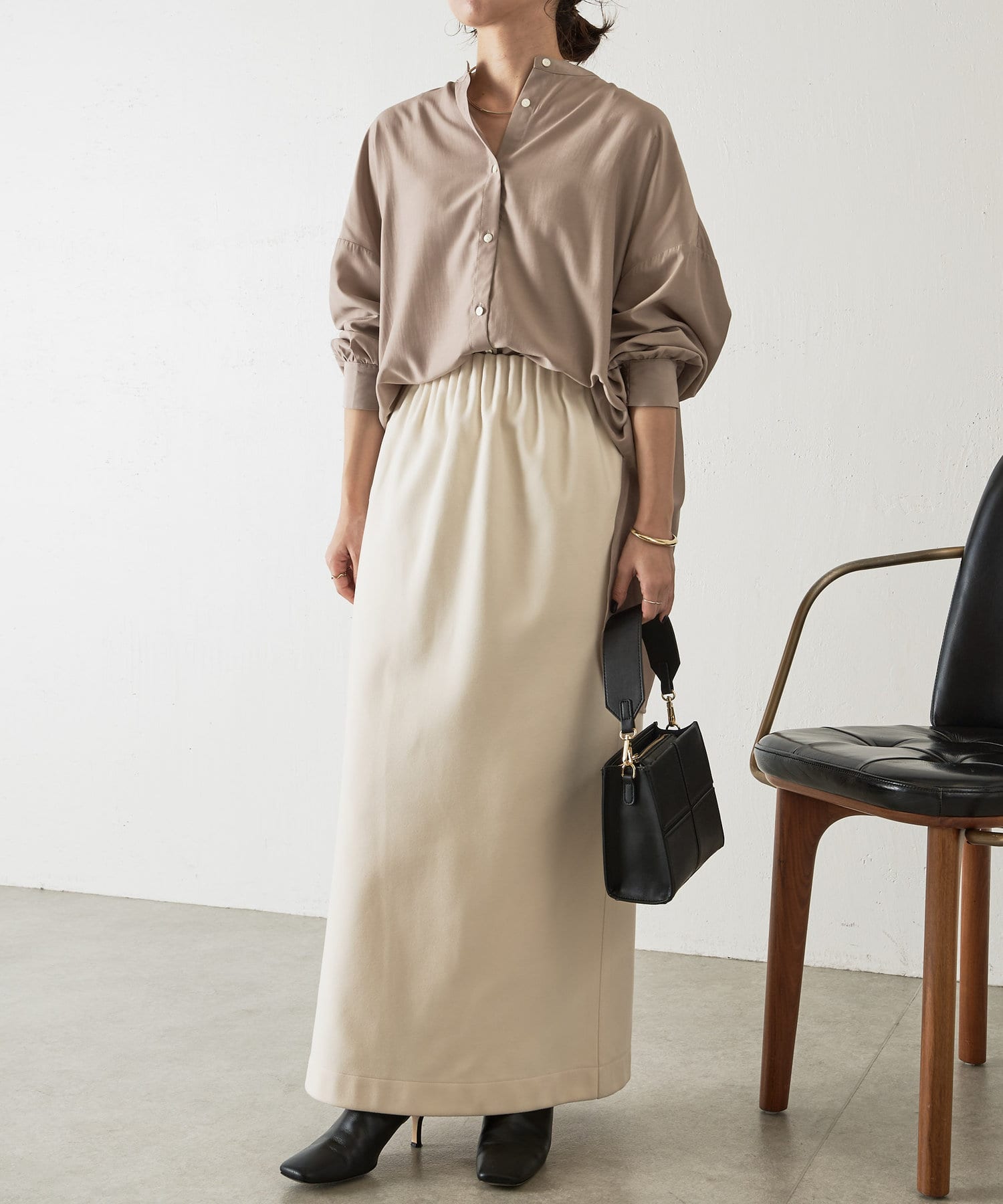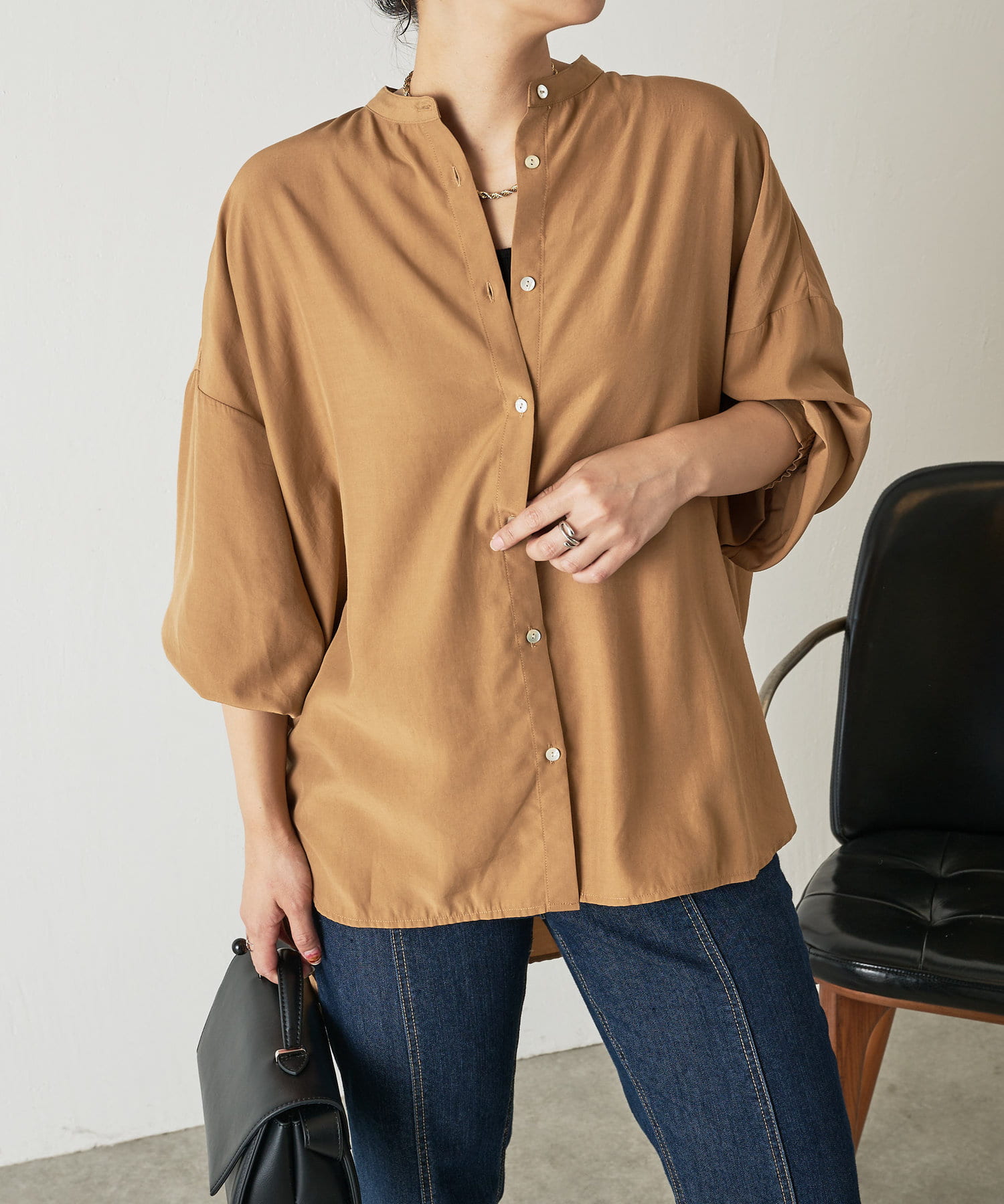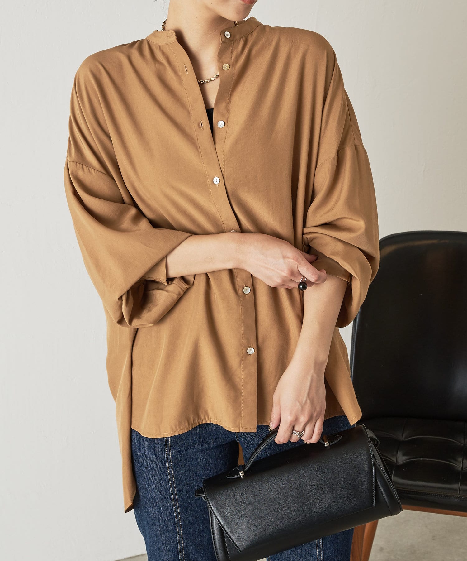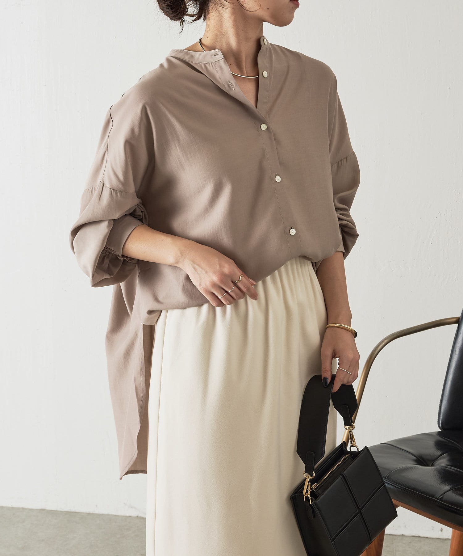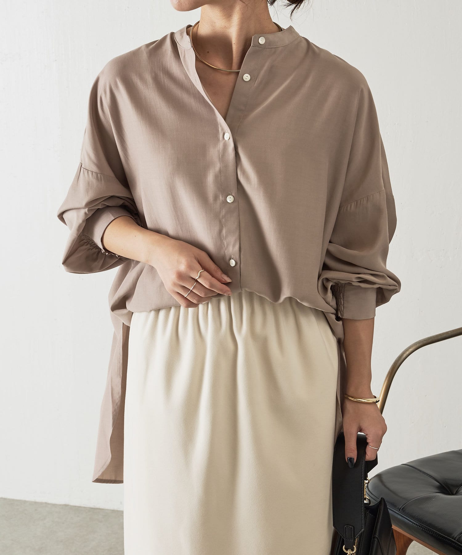・程よくとろみのある上品な素材なので、一枚で着映えするアイテムです。