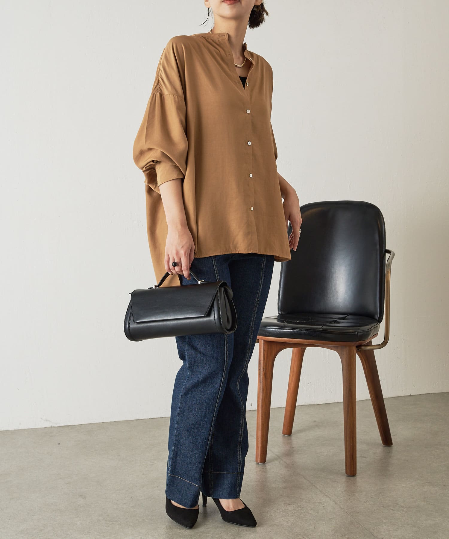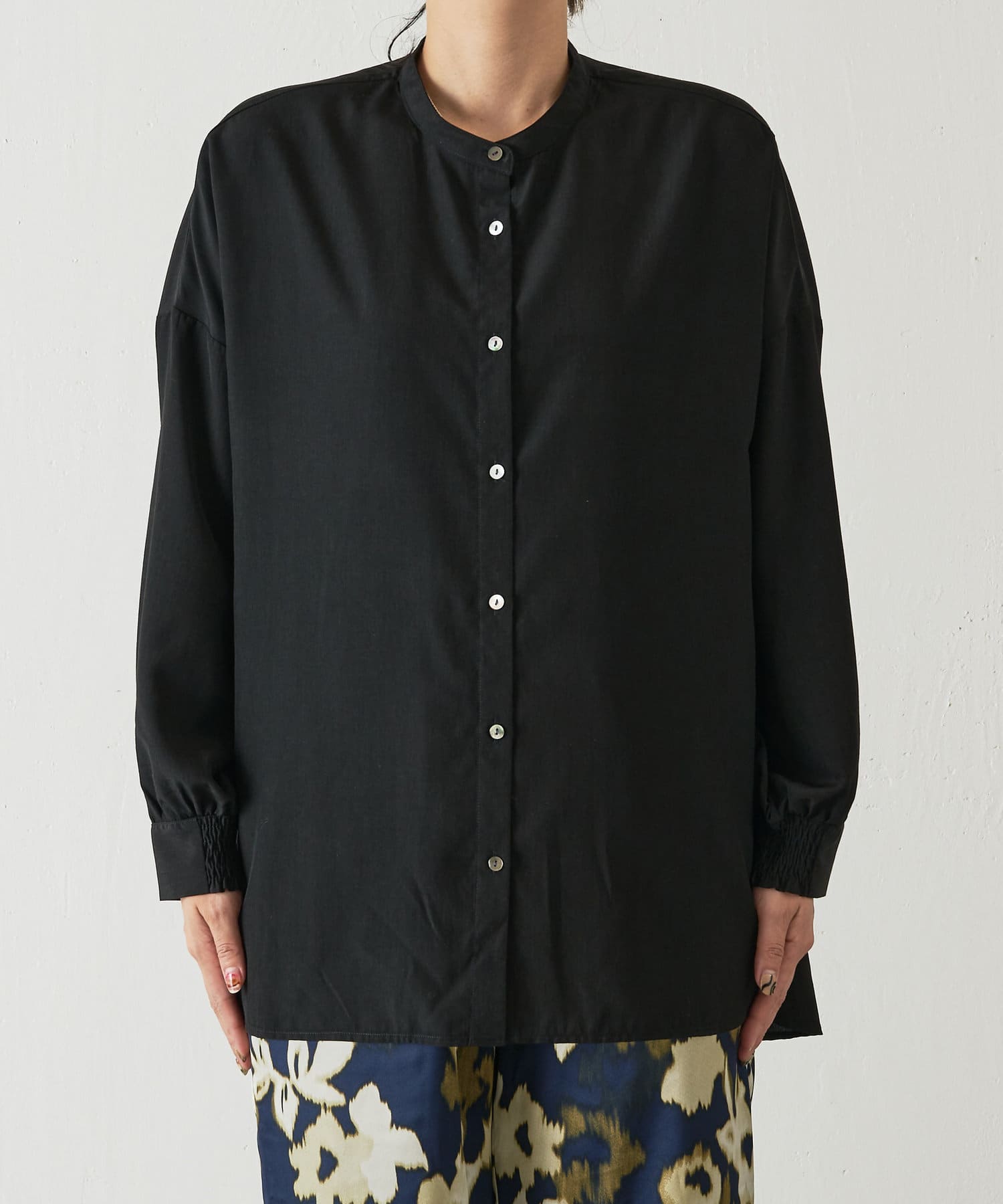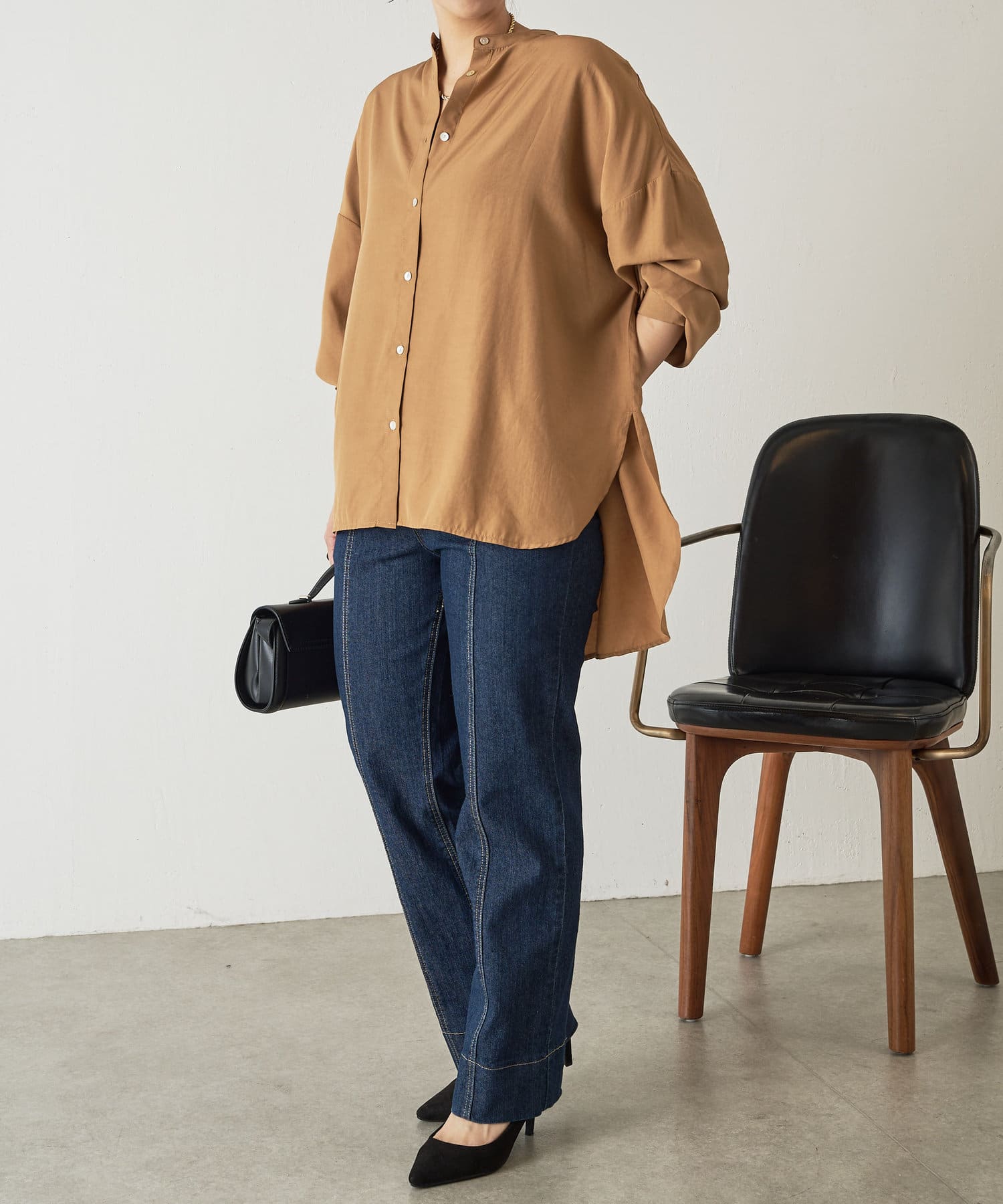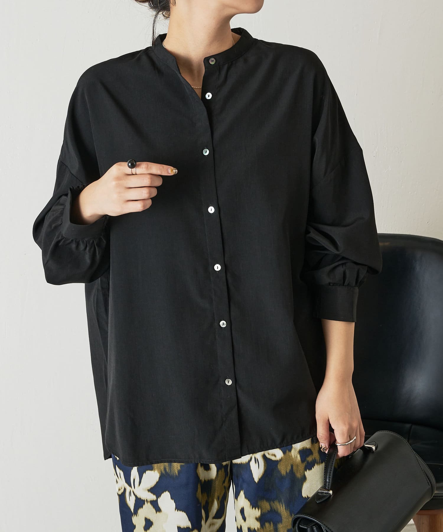 ・程よくとろみのある上品な素材なので、一枚で着映えするアイテムです。