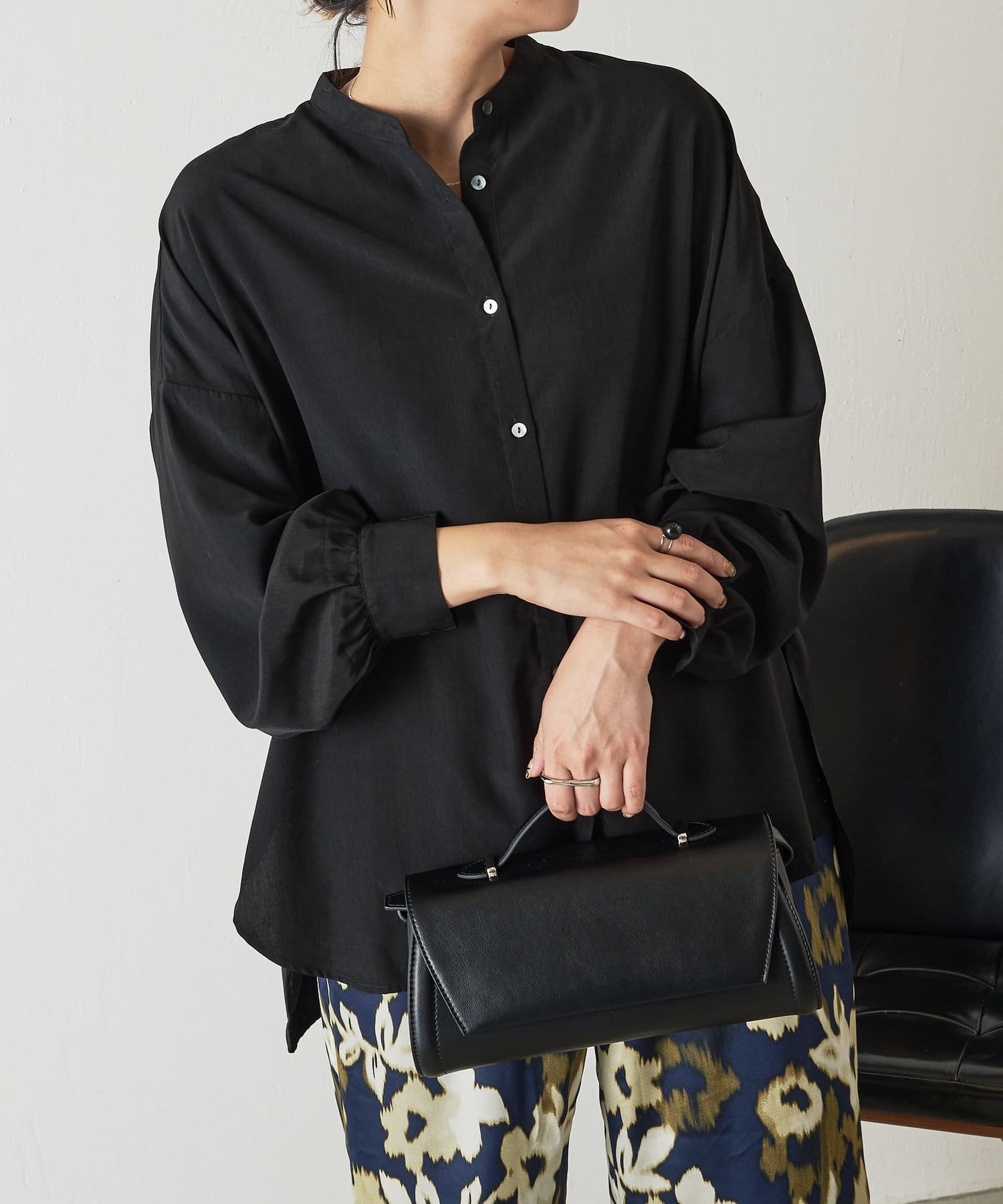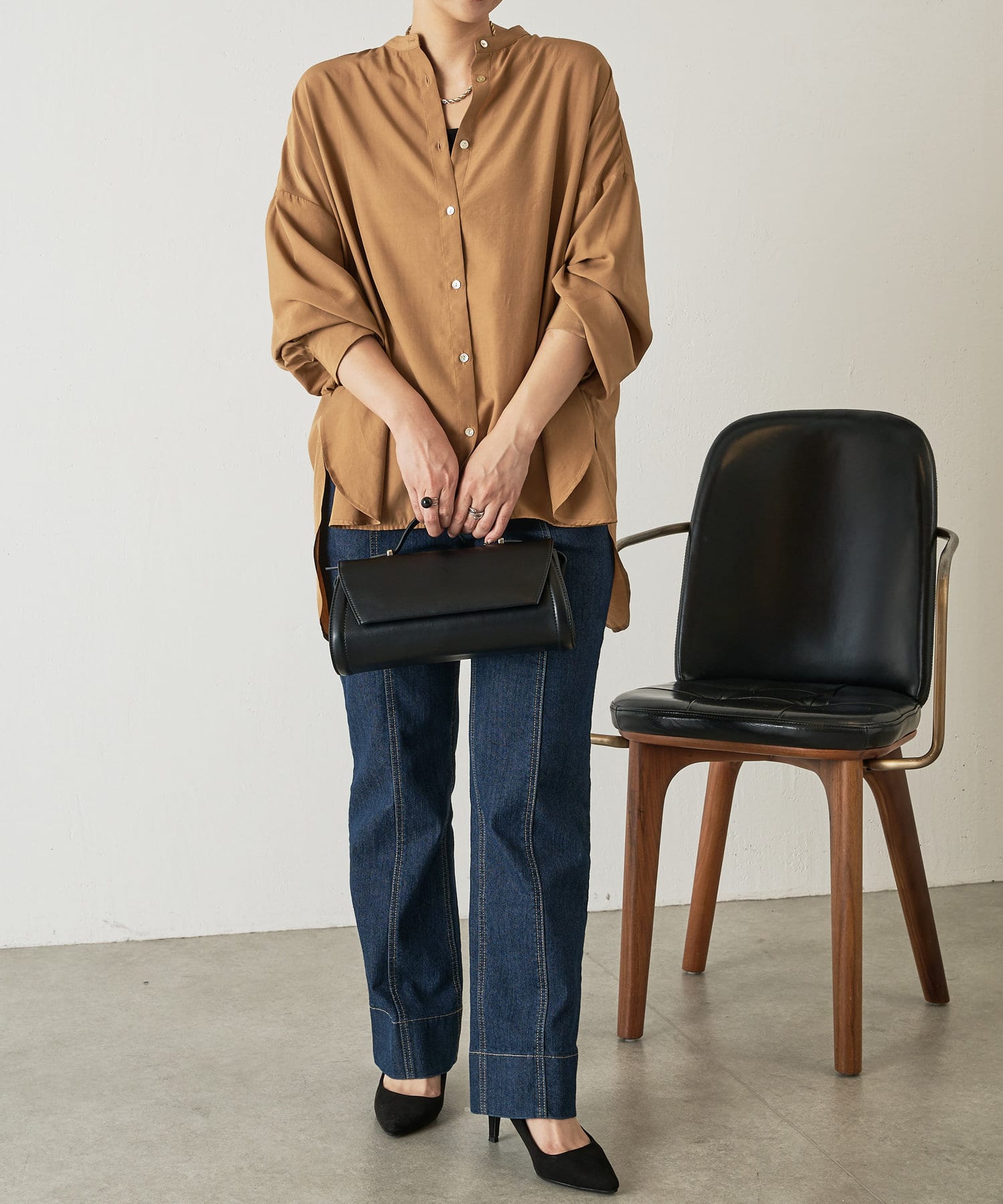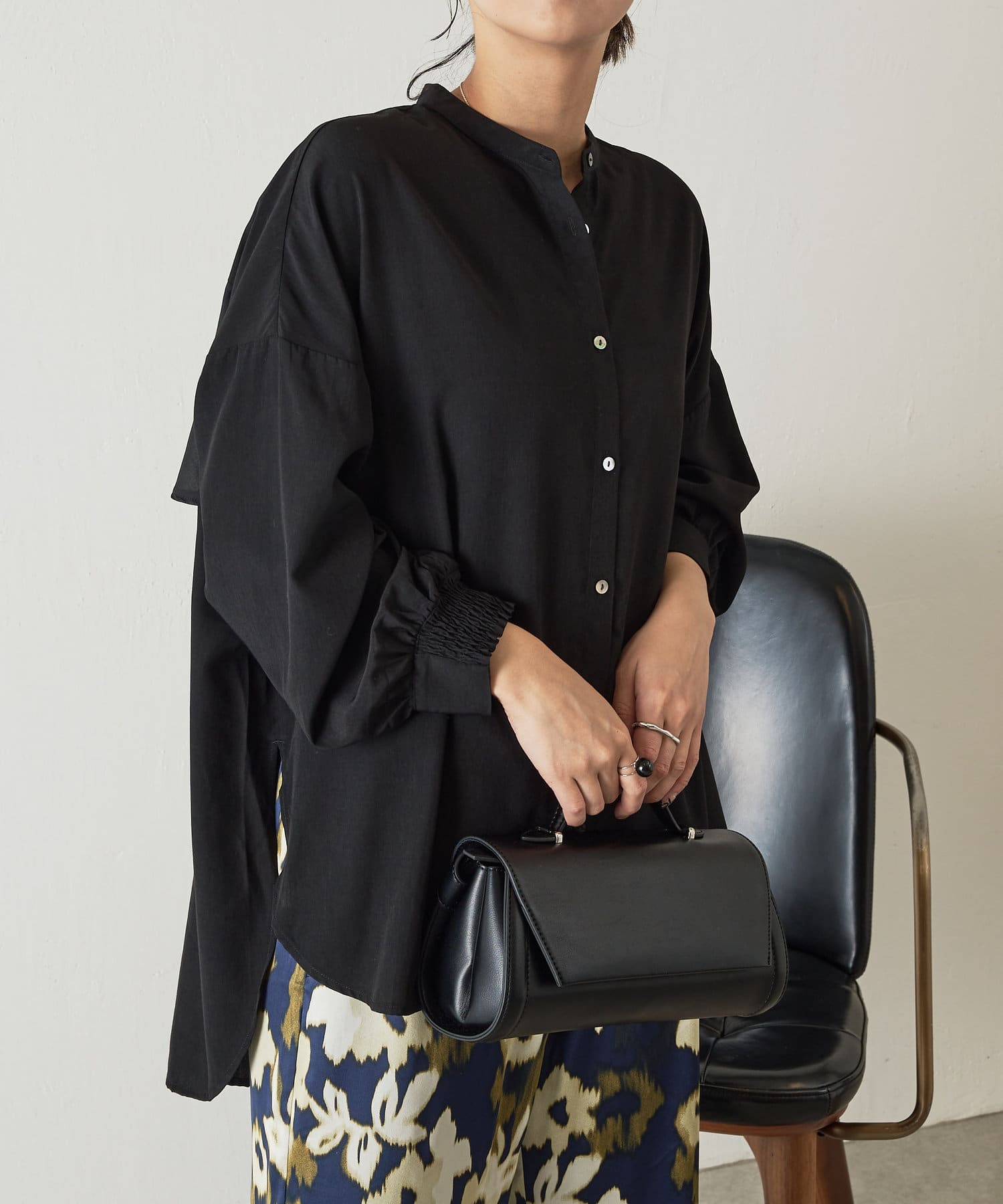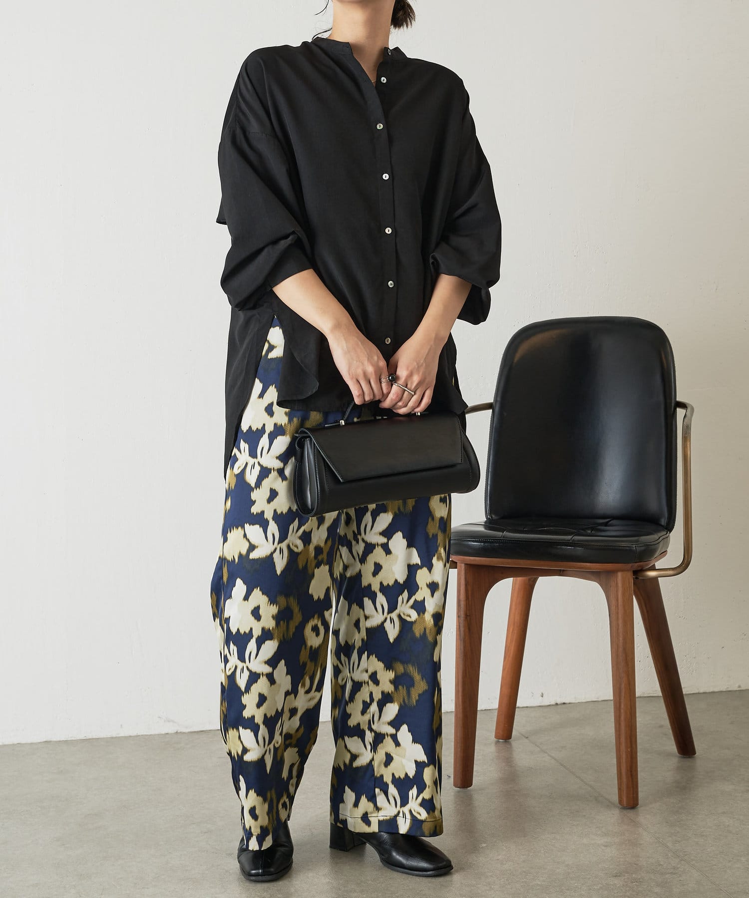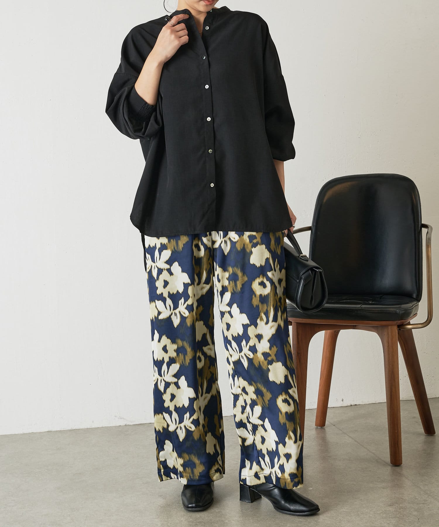 ・程よくとろみのある上品な素材なので、一枚で着映えするアイテムです。