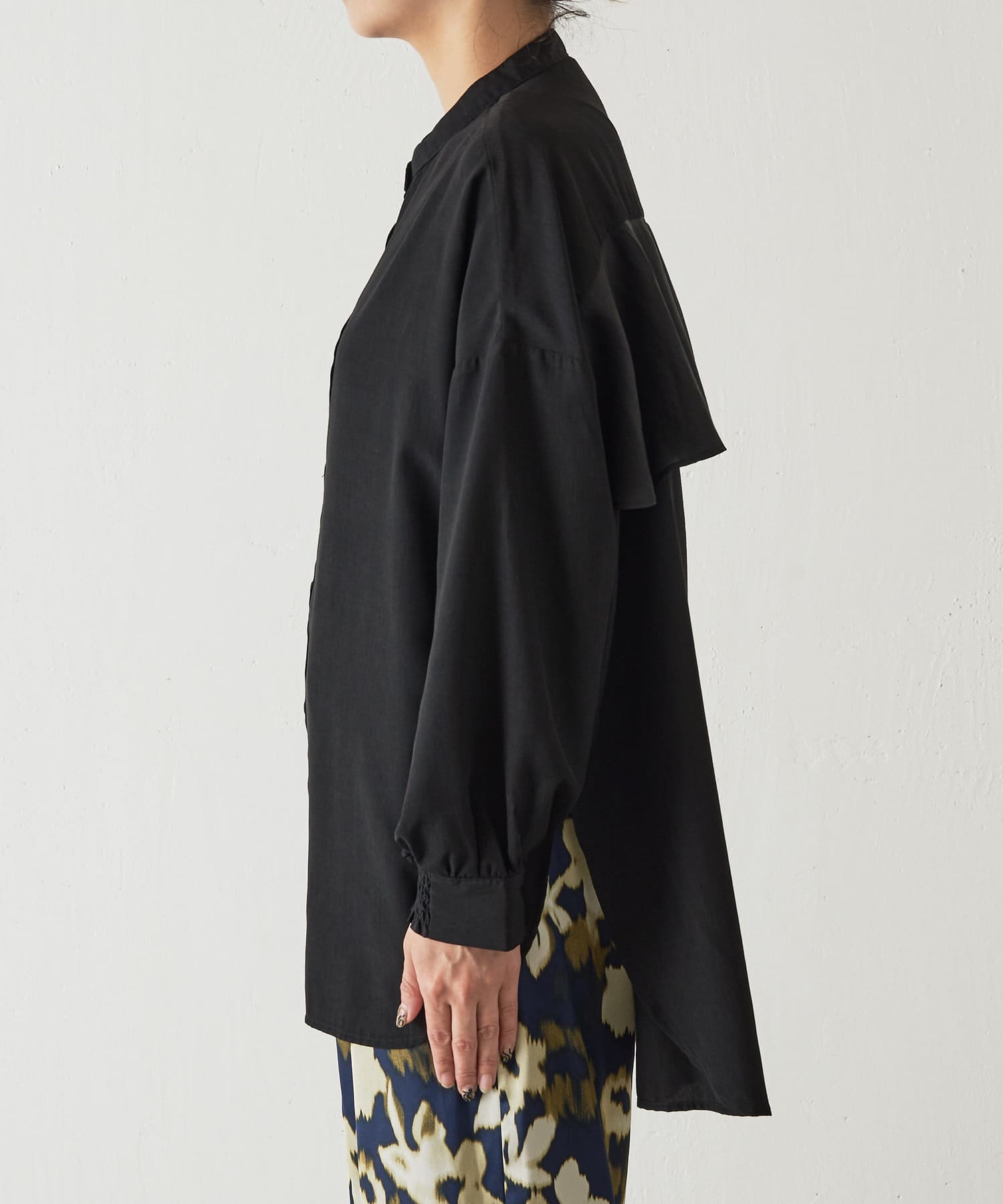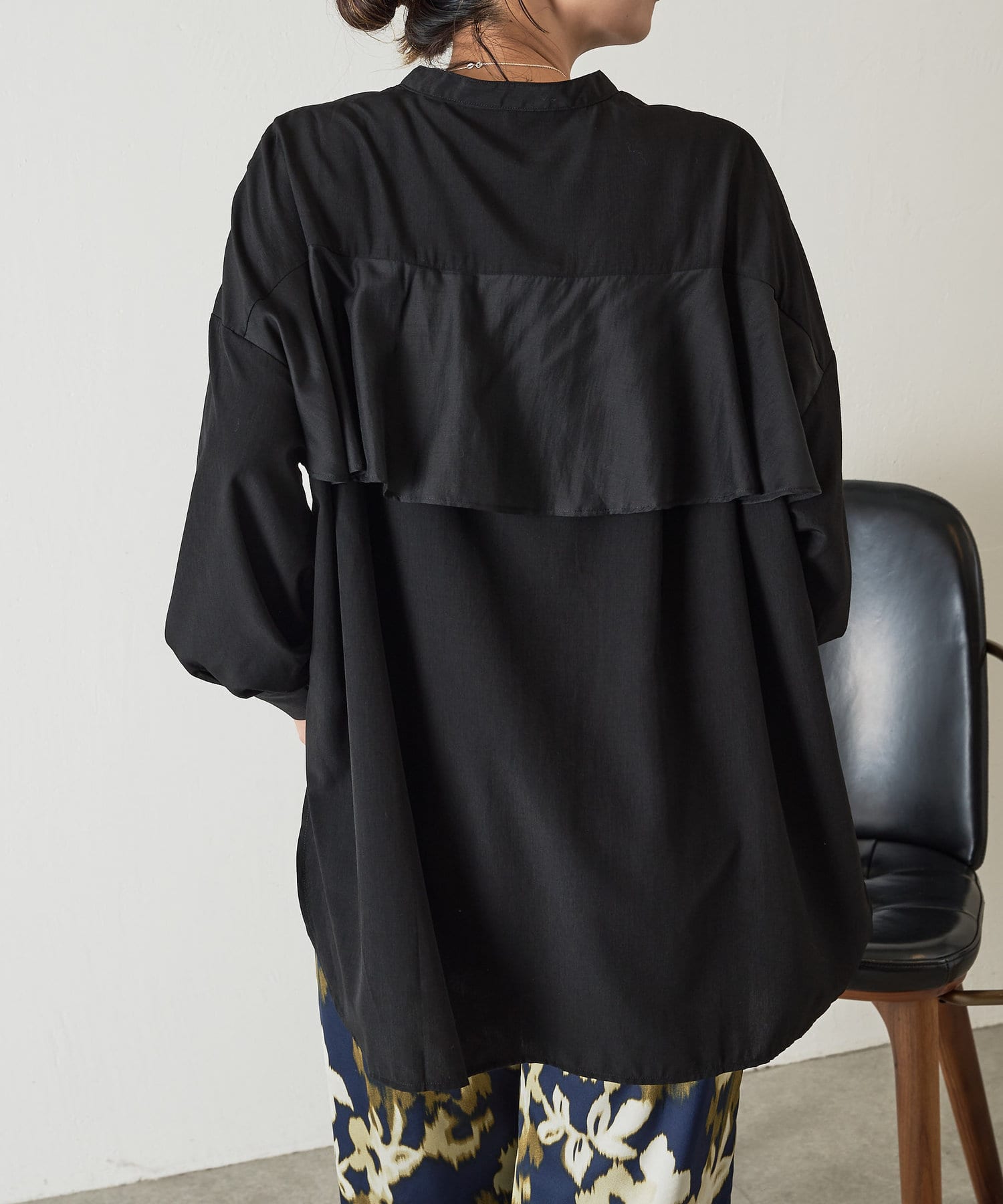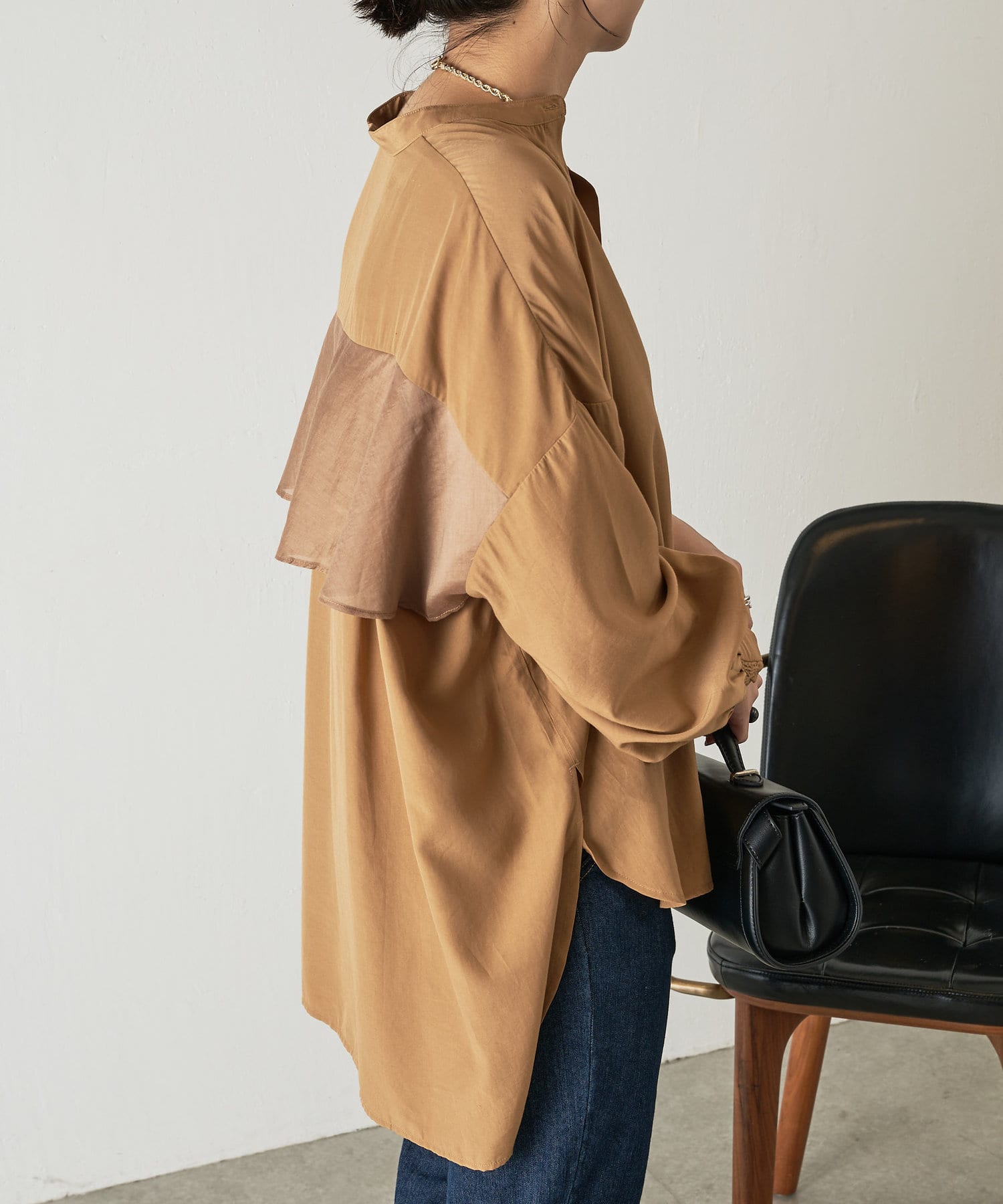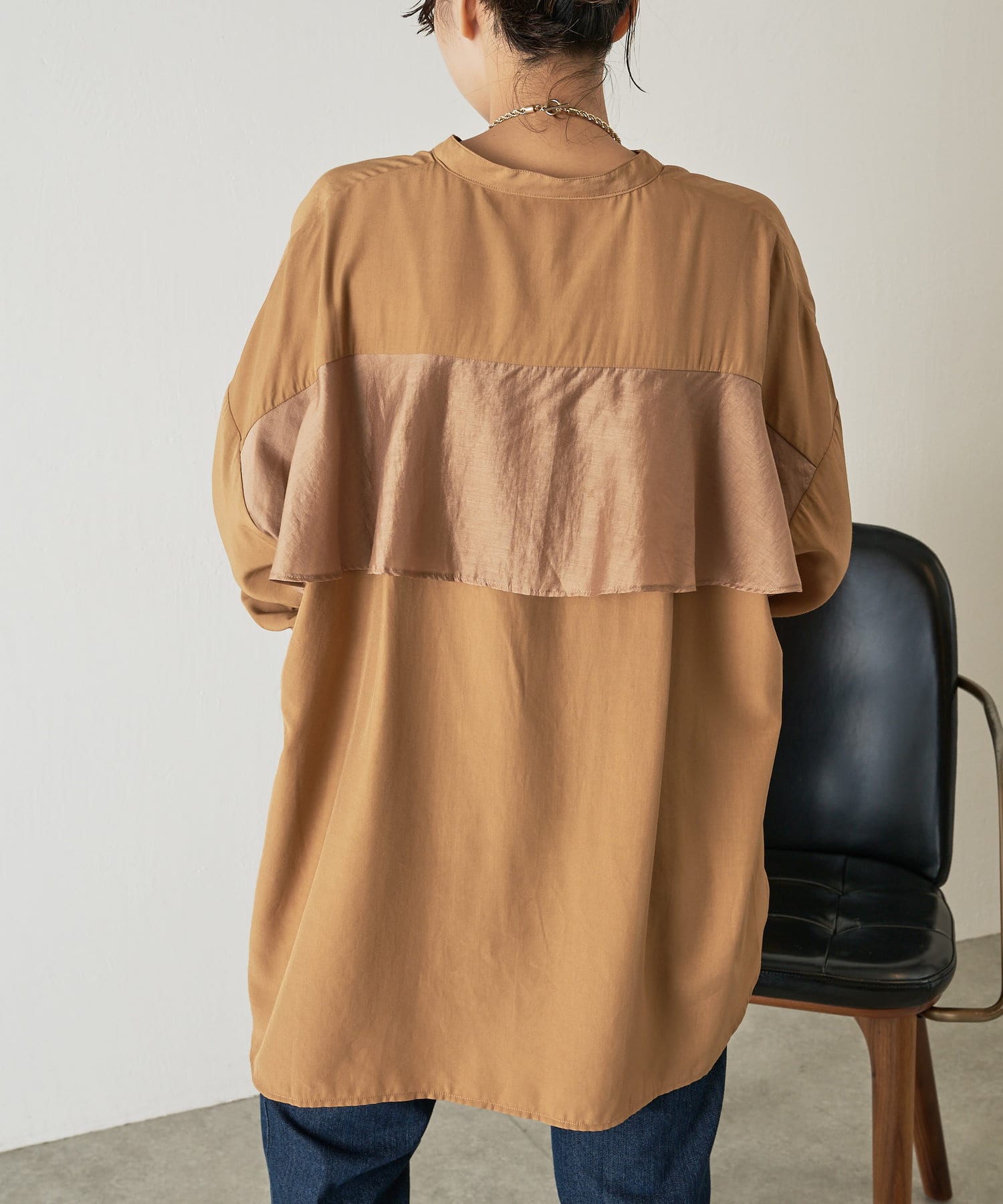 異素材バックフリルシャツ