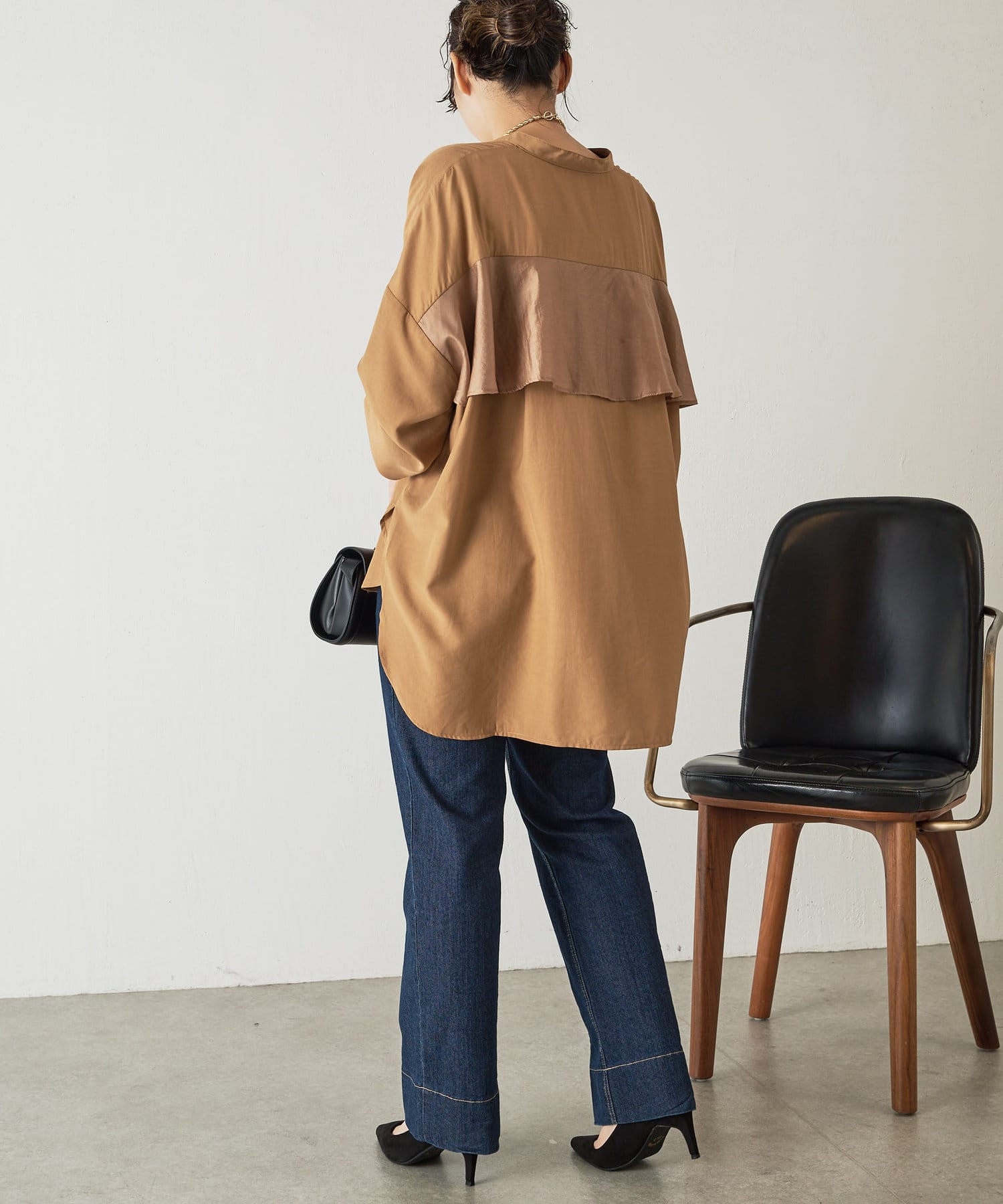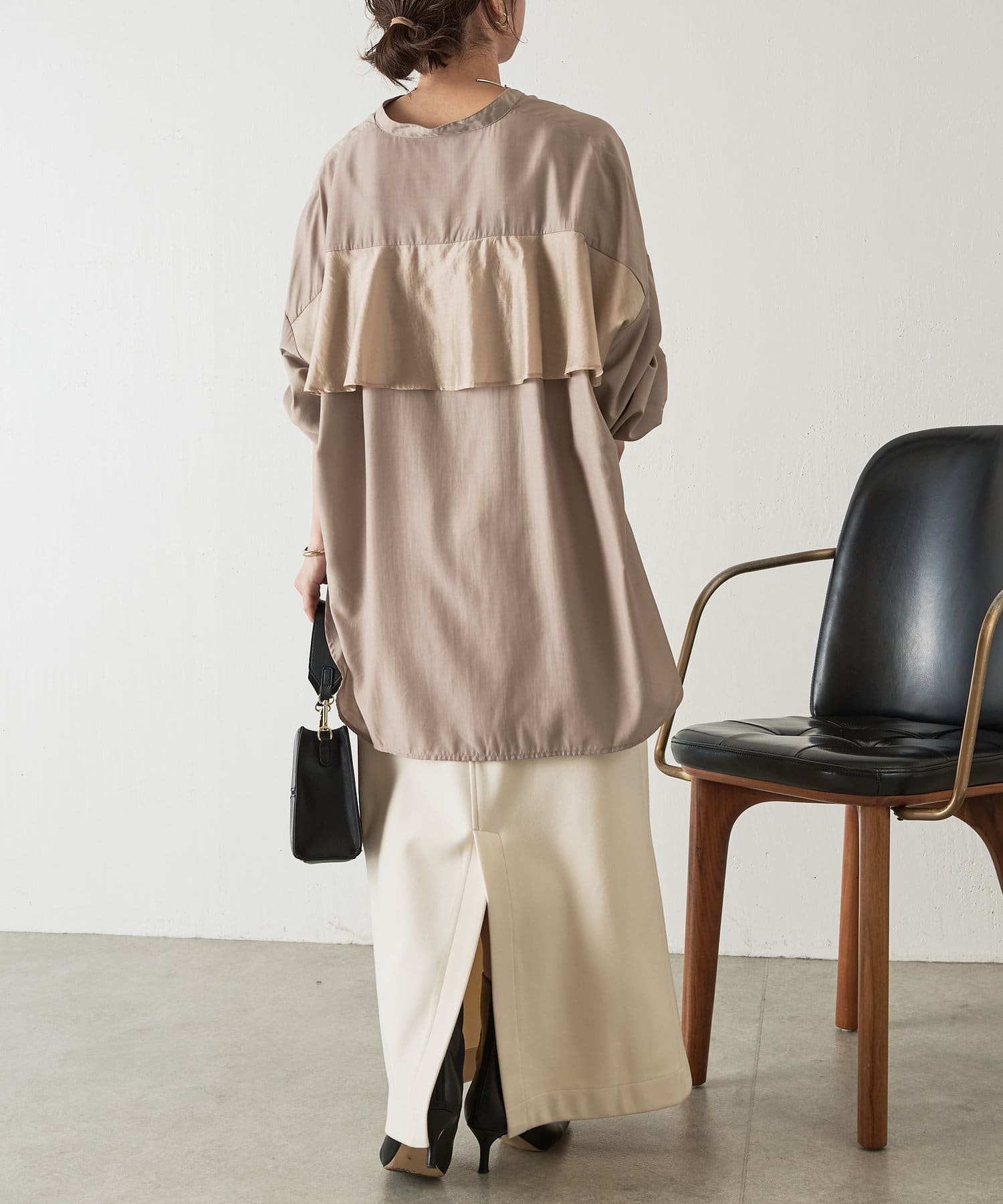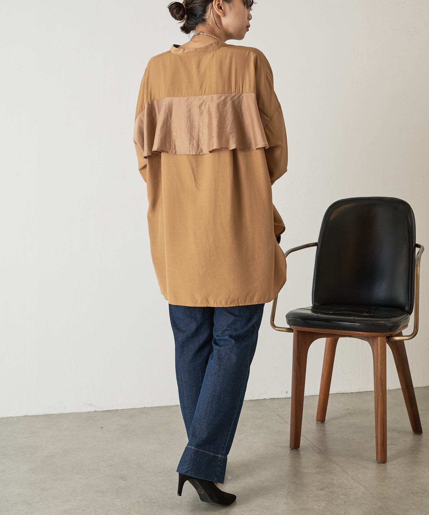 異素材バックフリルシャツ