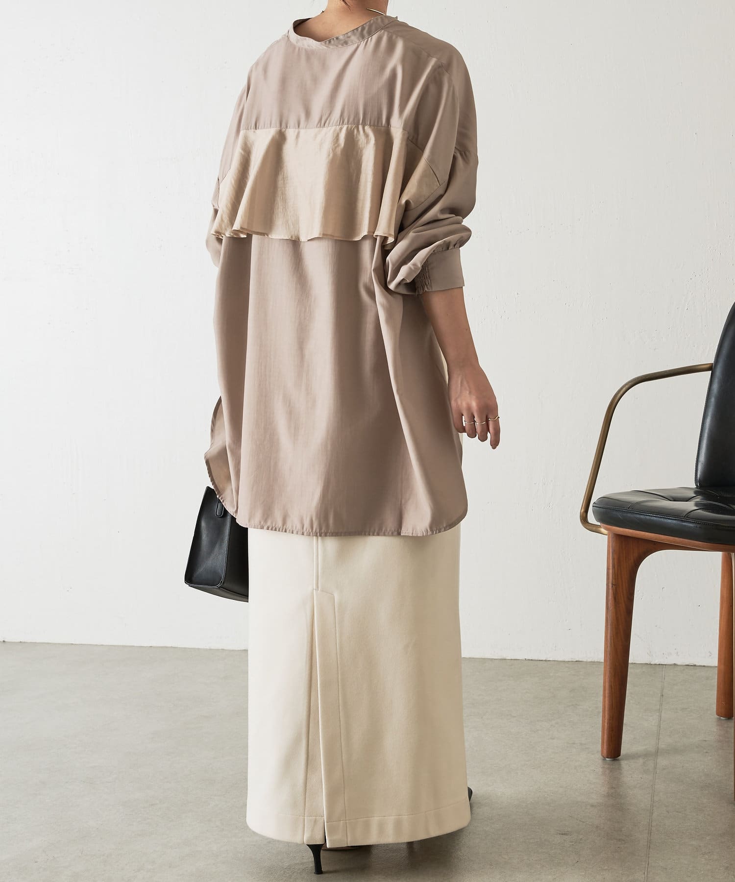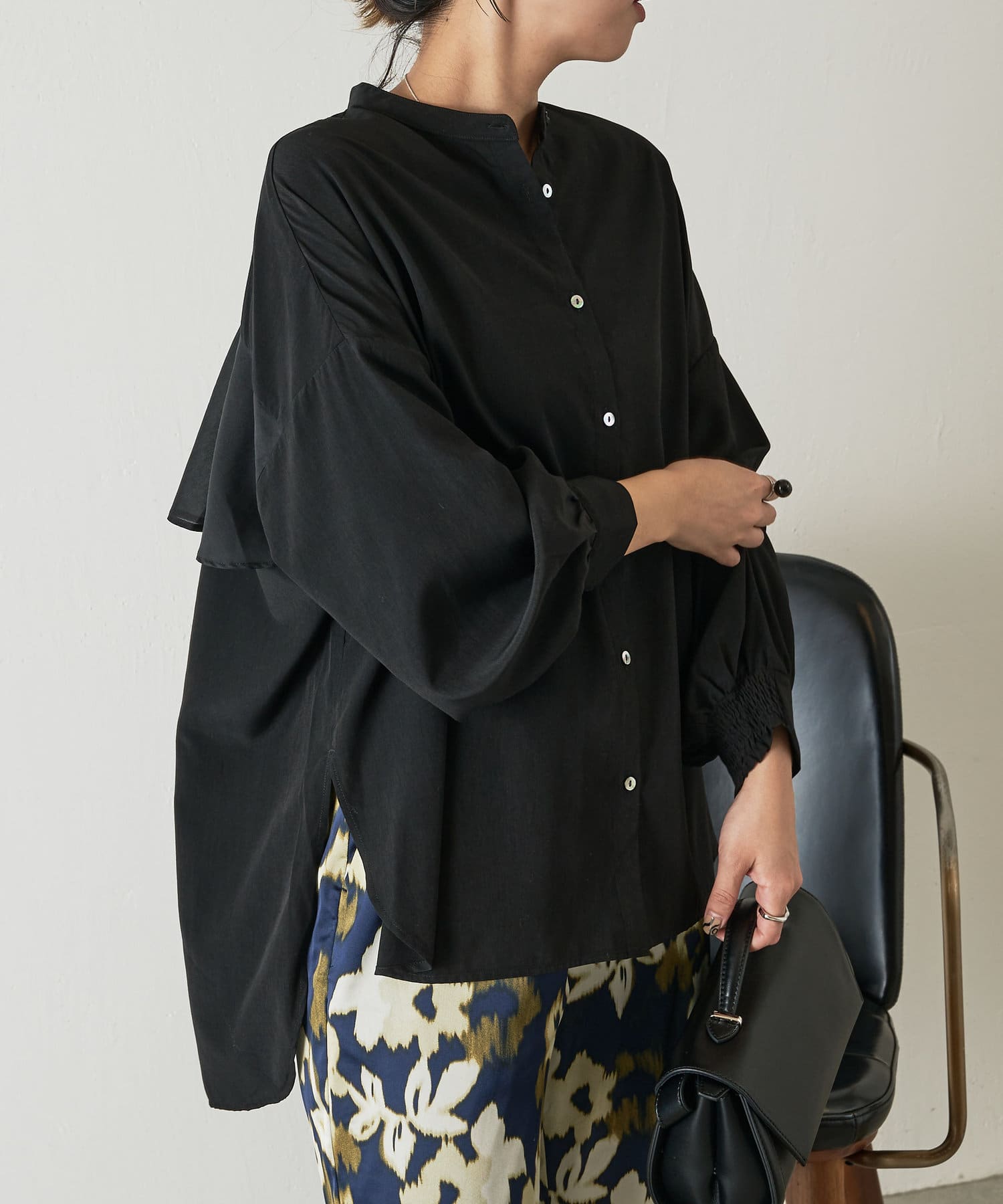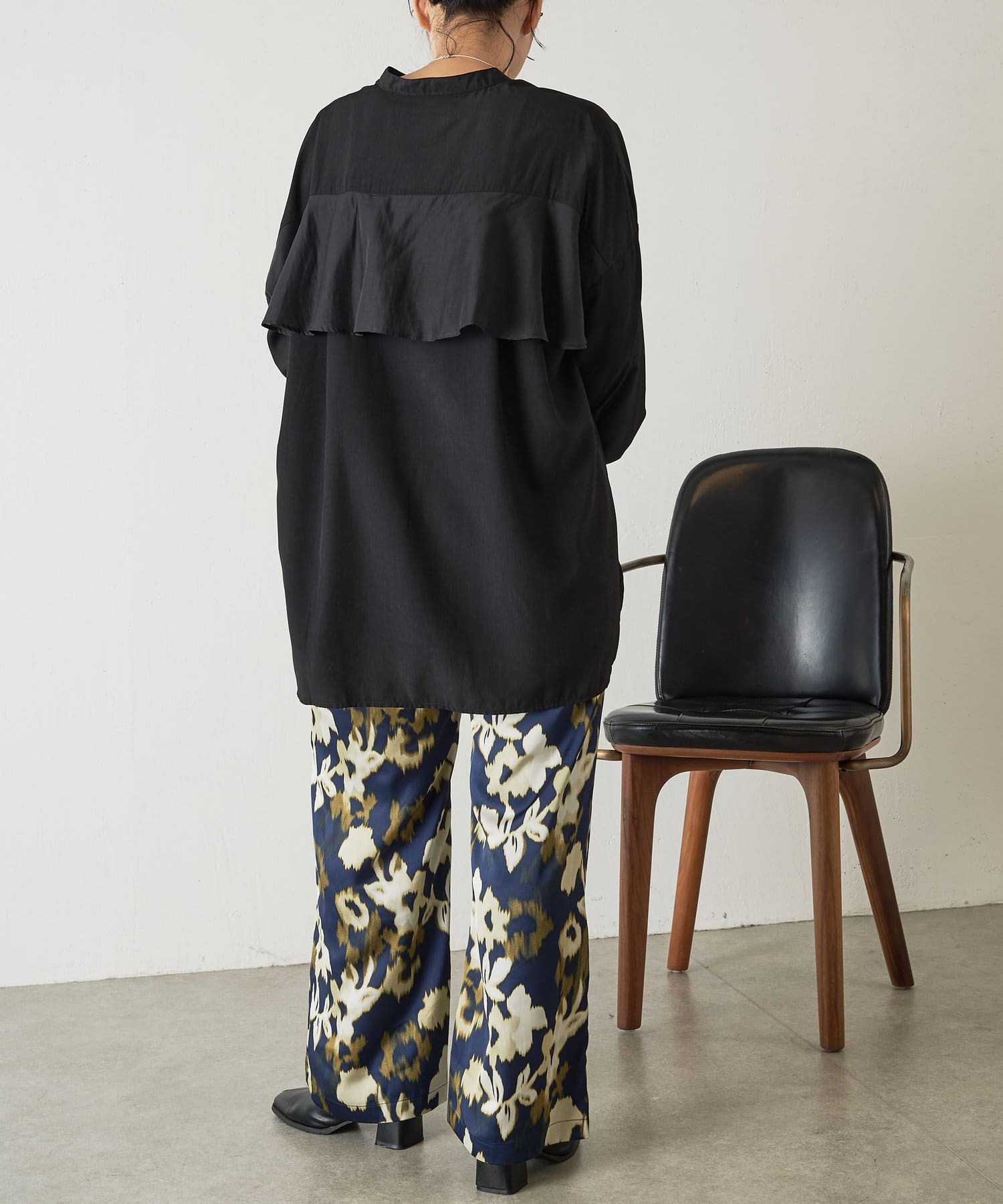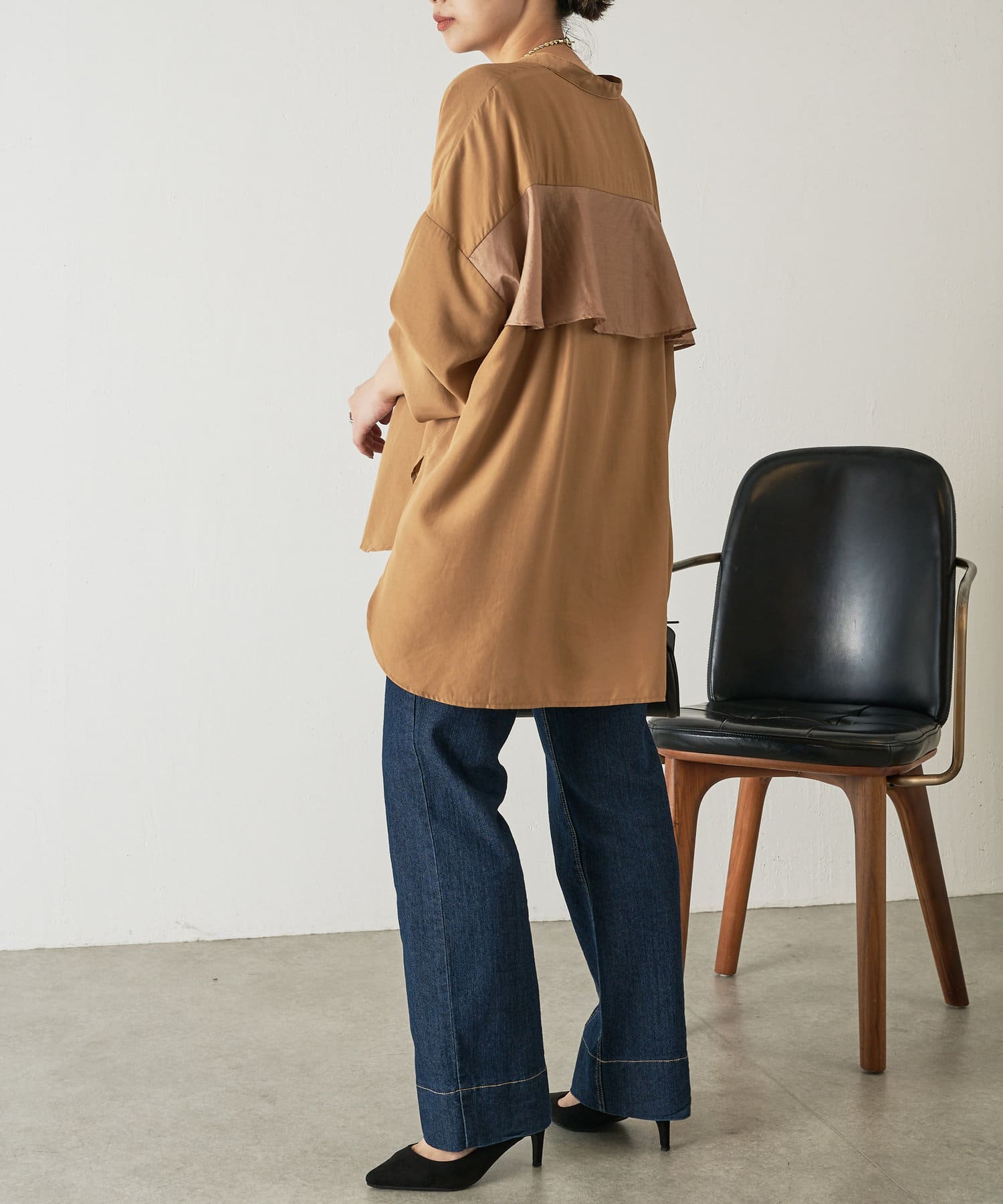 異素材バックフリルシャツ