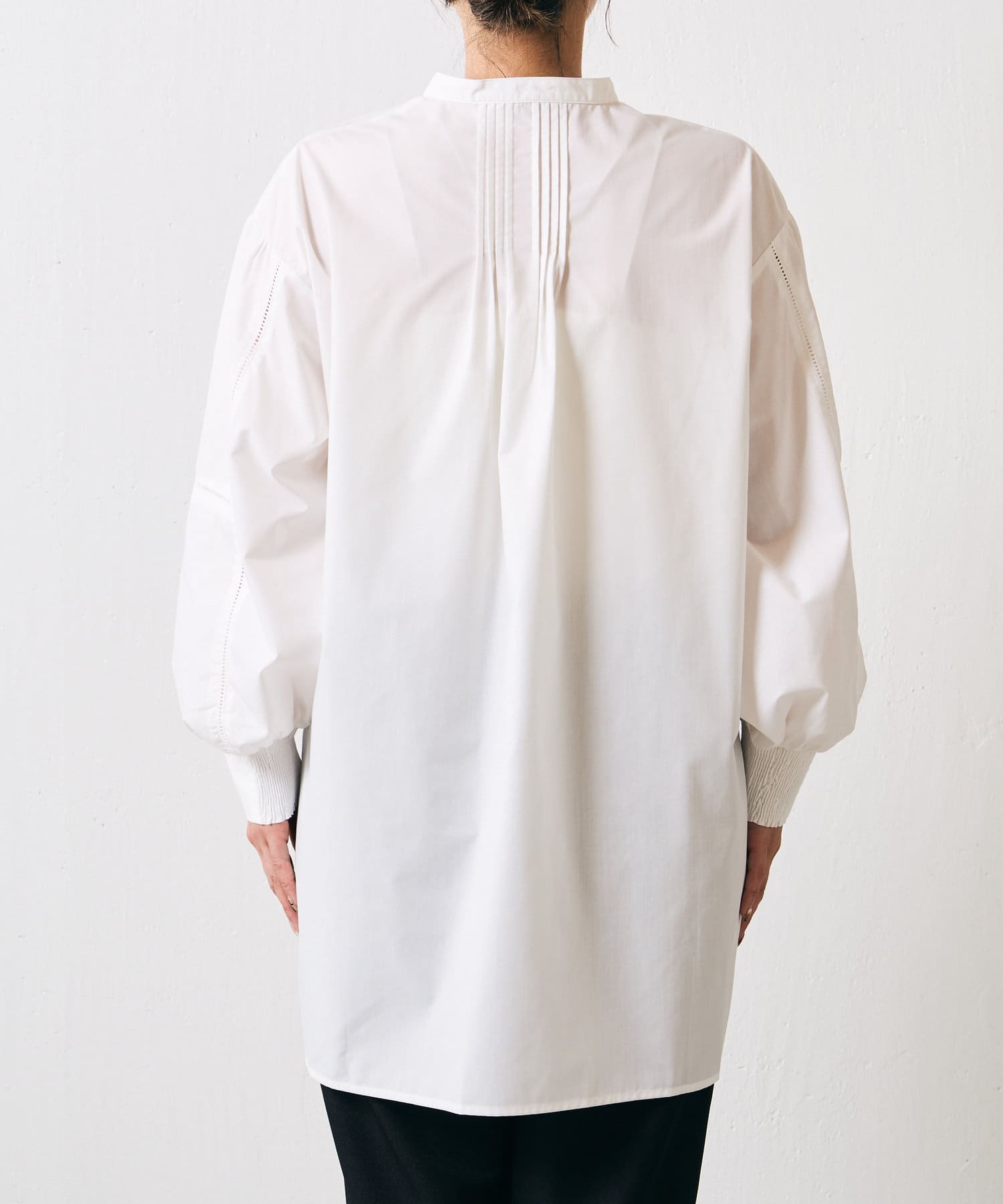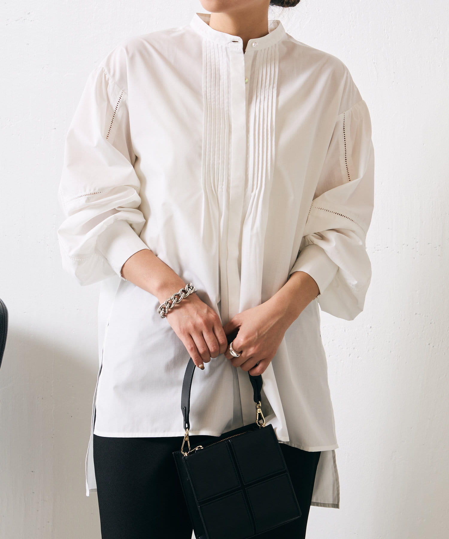 ・贅沢なタックデザインがメリハリのある装いを演出