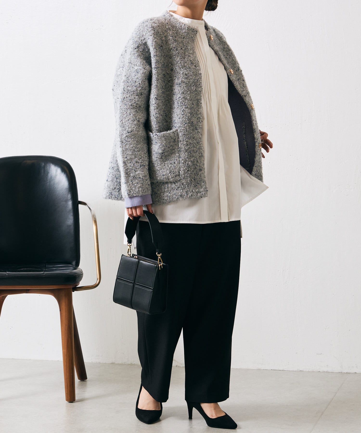 ・デザイン性があるので細身のデニム合わせのすっきりとした装いはもちろん、リラックスパンツを合わせたルーズな着こなしもおすすめ