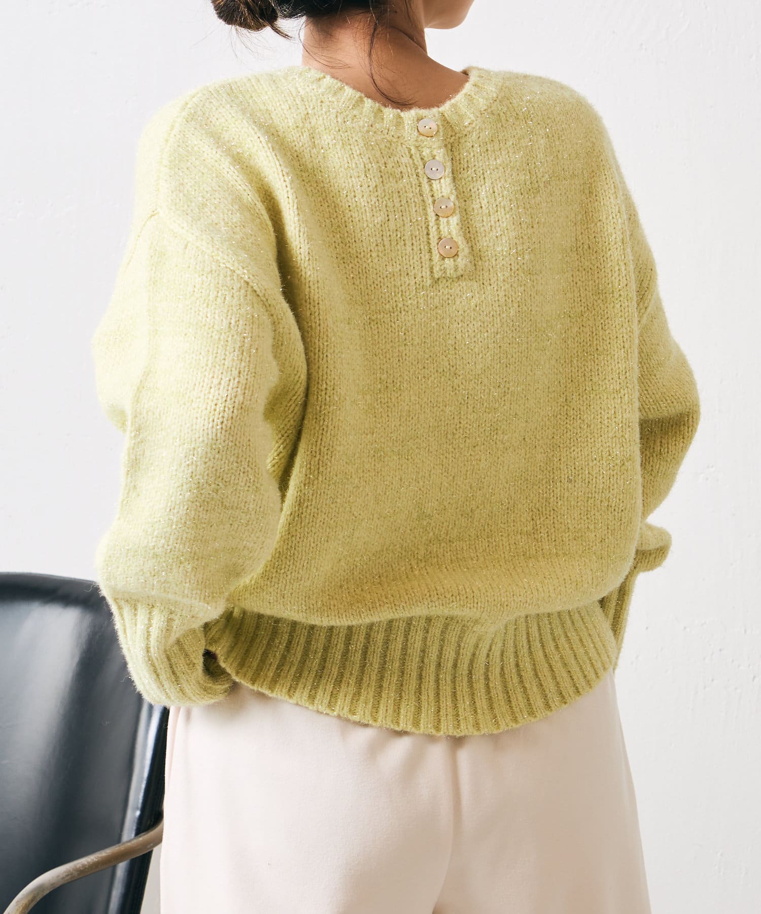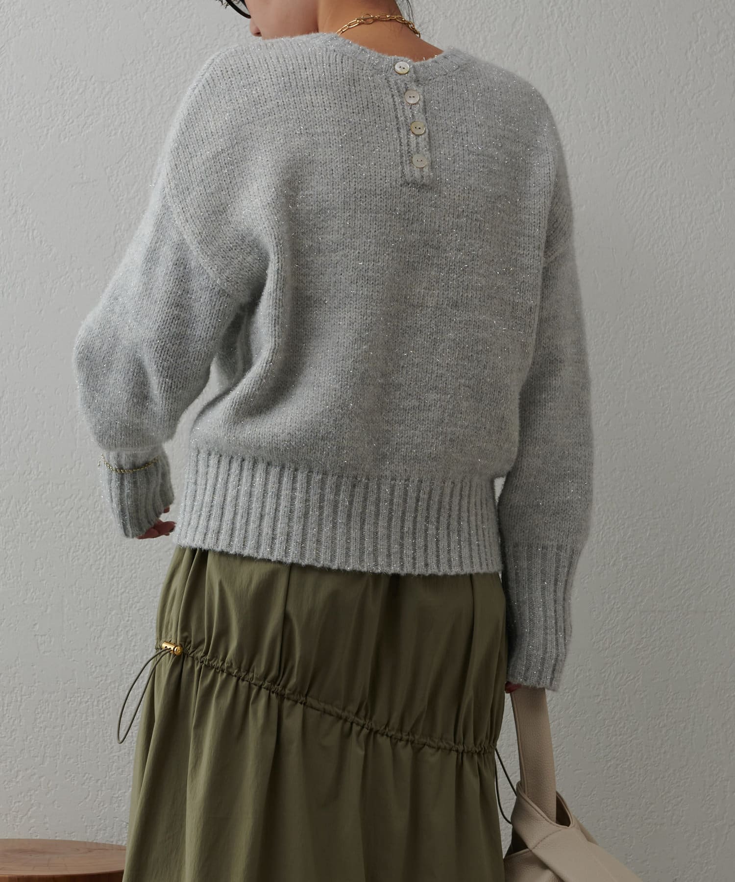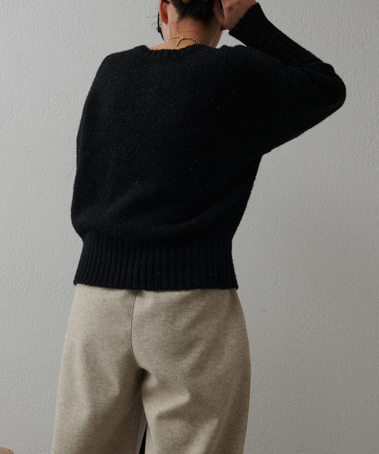 ・前後2WAY仕様で着用できるトレンドライクなラメニット。