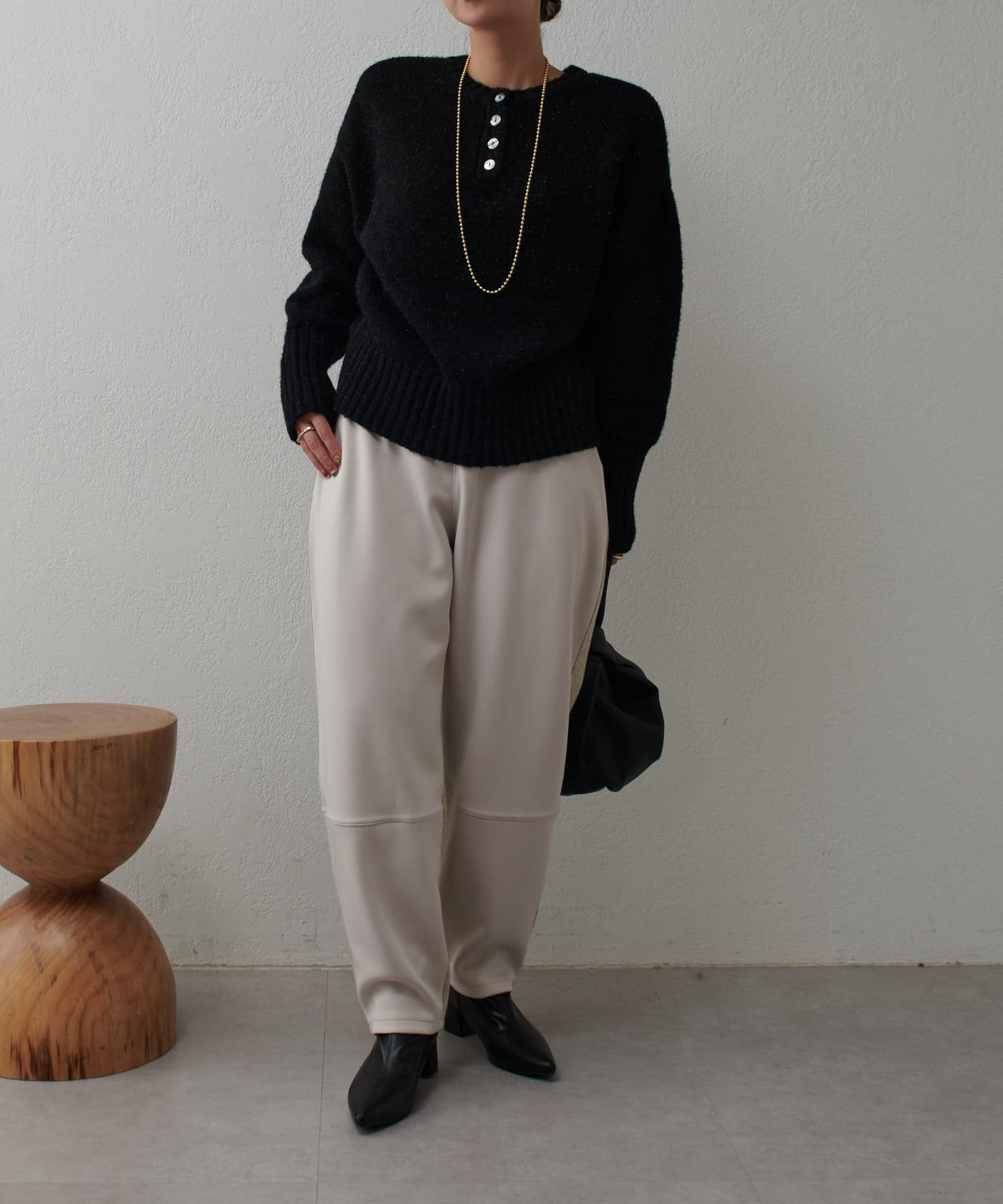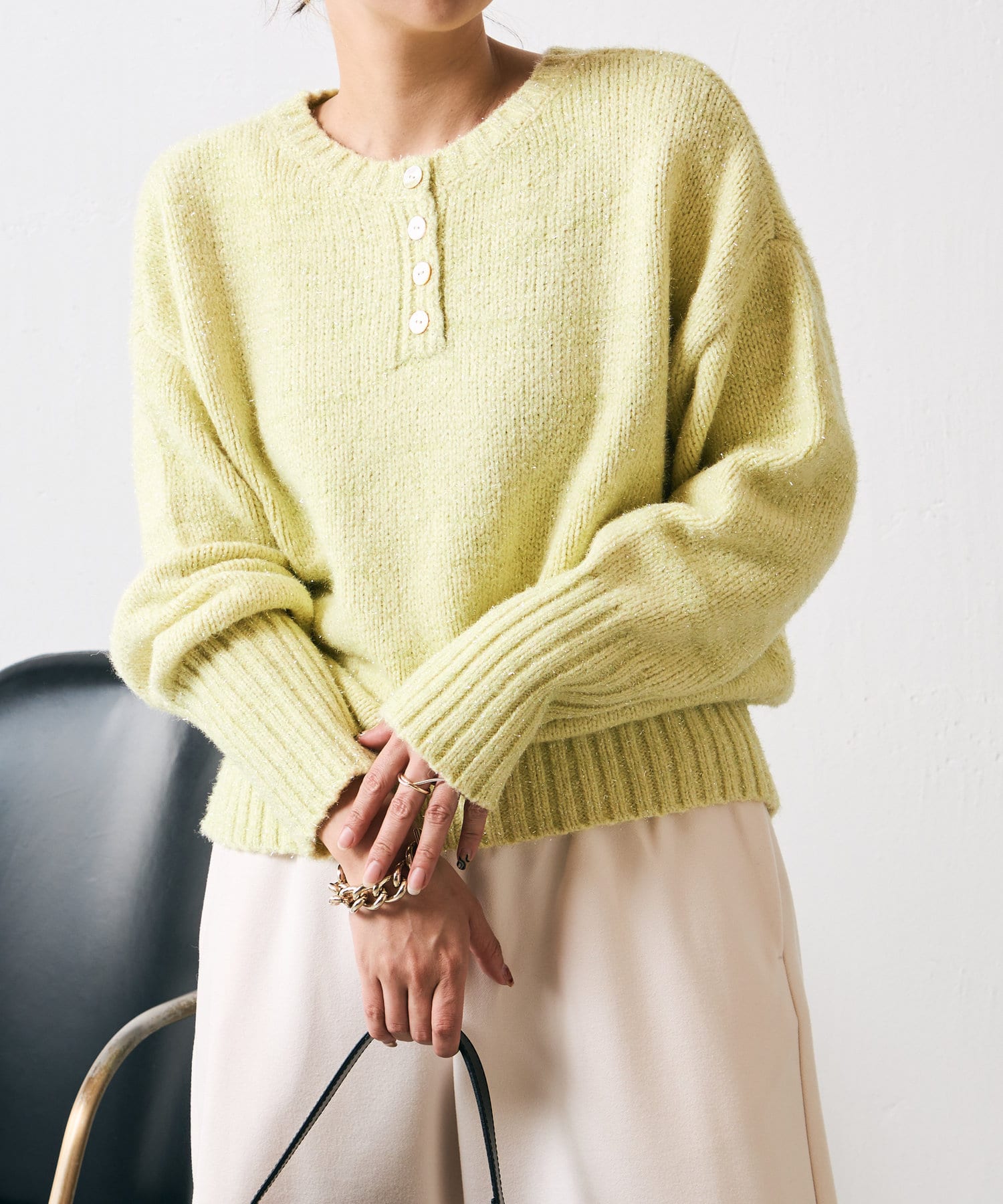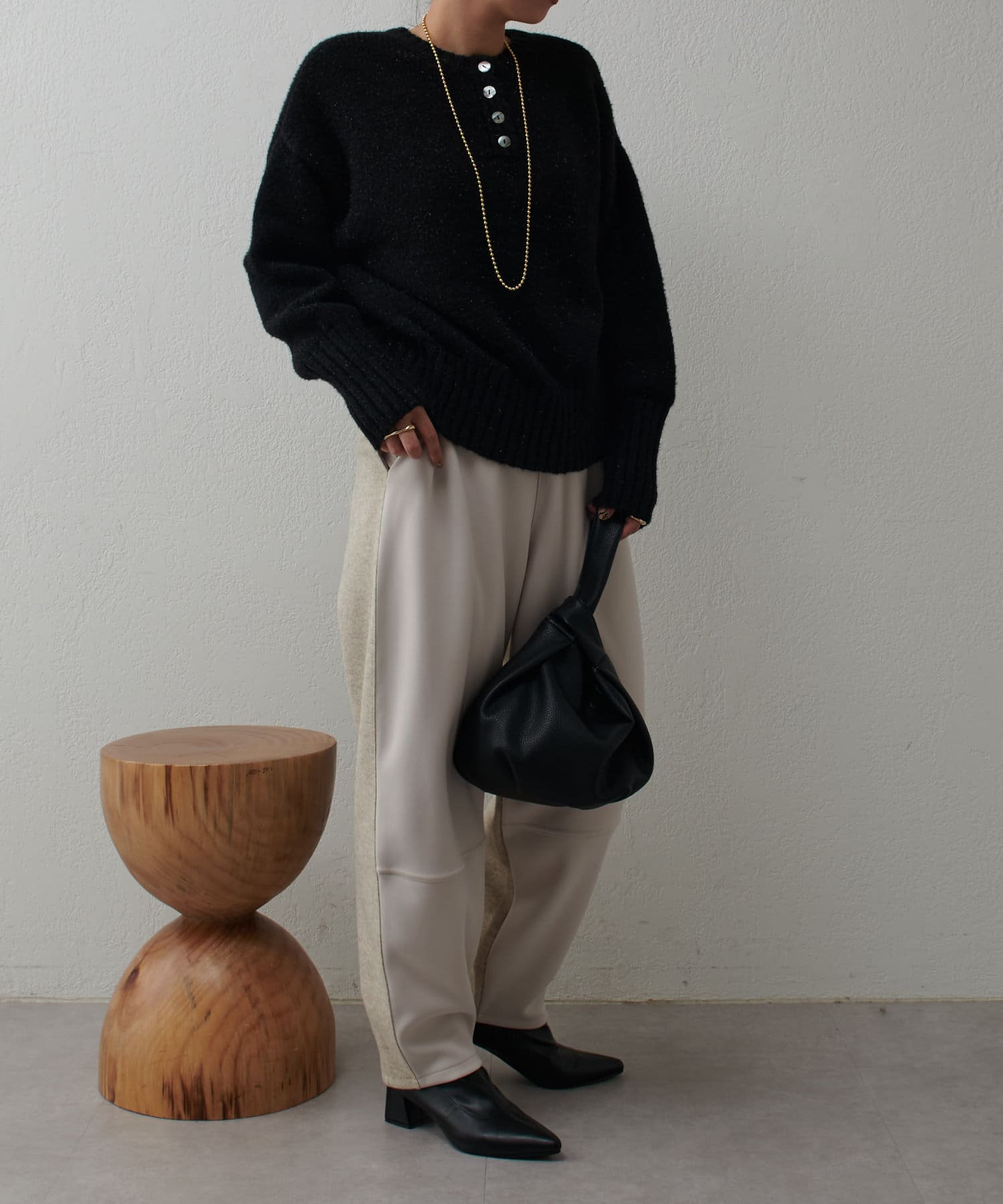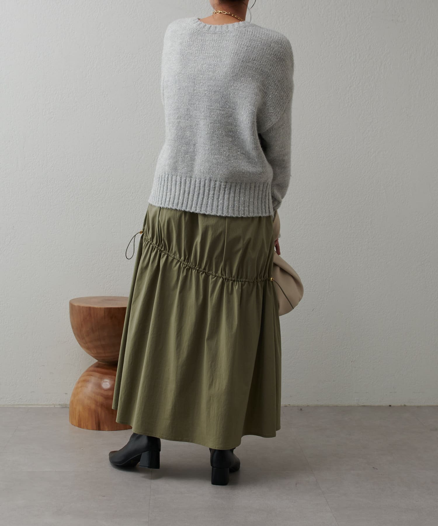 ・前後2WAY仕様で着用できるトレンドライクなラメニット。