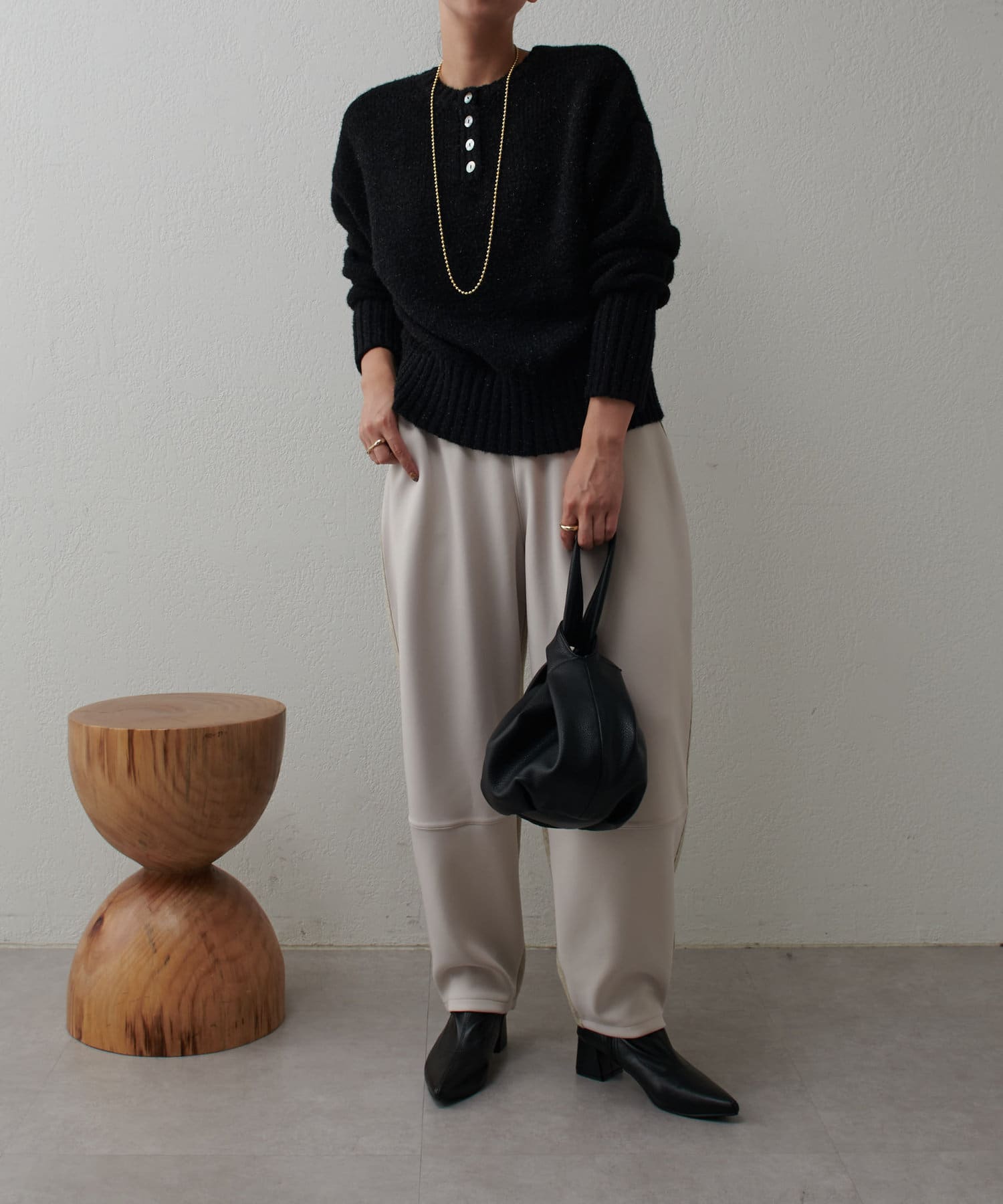・すっきりとしたコンパクトな丈感なので、重く見えず、どんなボトムともバランス良くお召いただけます。