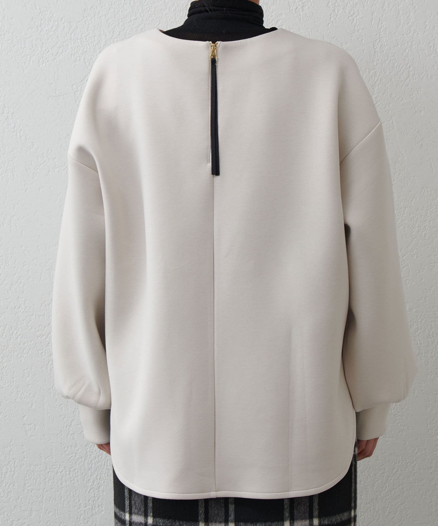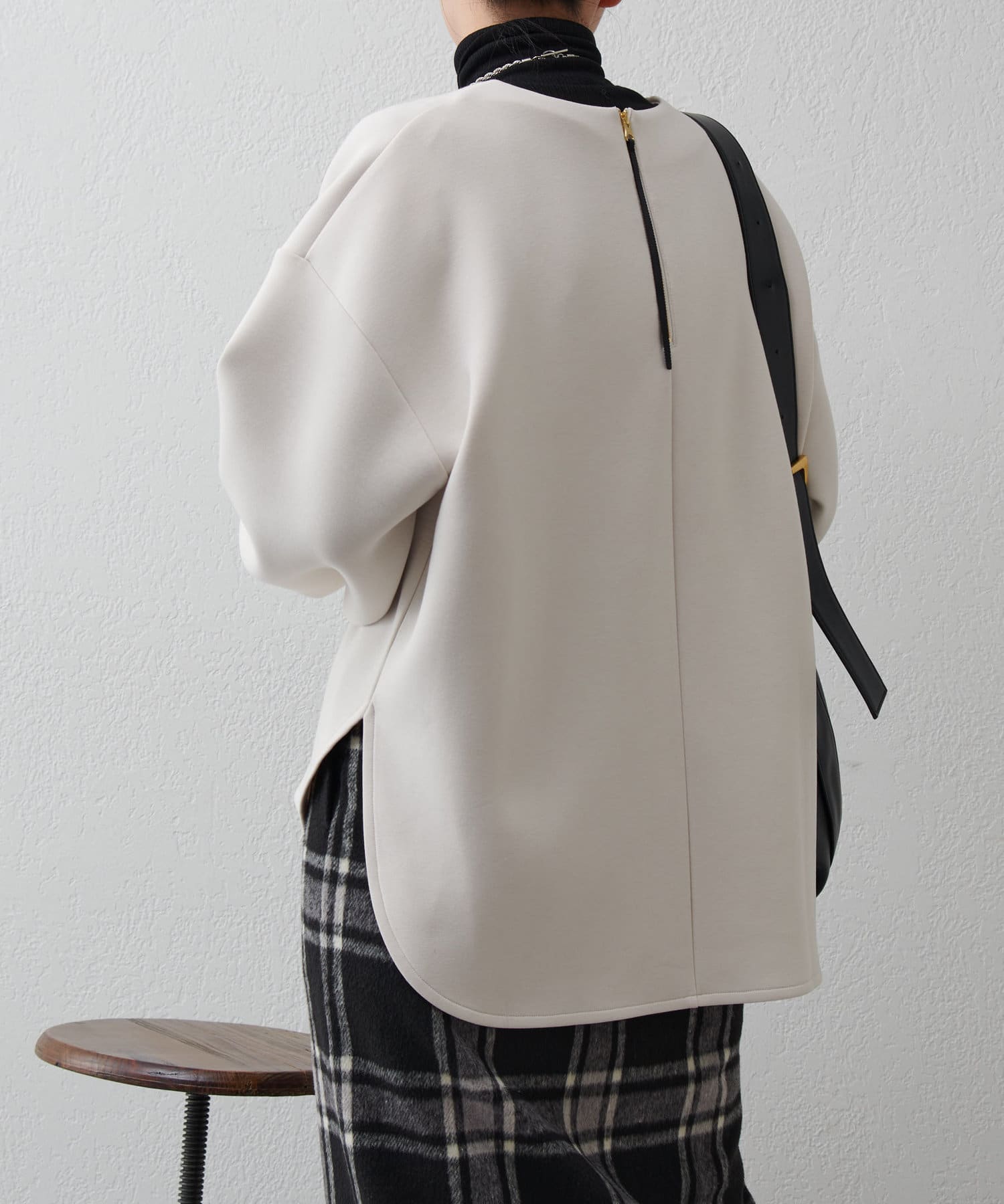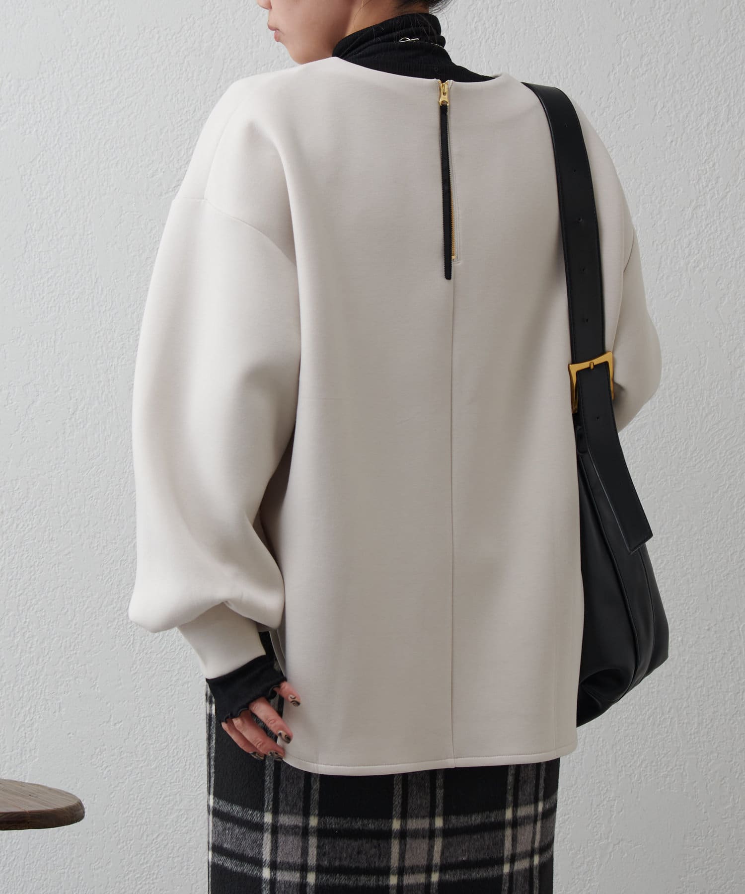 ニット以外で冬も重ね着して使えそうなものを探していたところ、こちらを見つけて即決!着た時の首周りと後ろのデザインがとても素敵です。春秋は1枚でシーズン長く使えそうです!