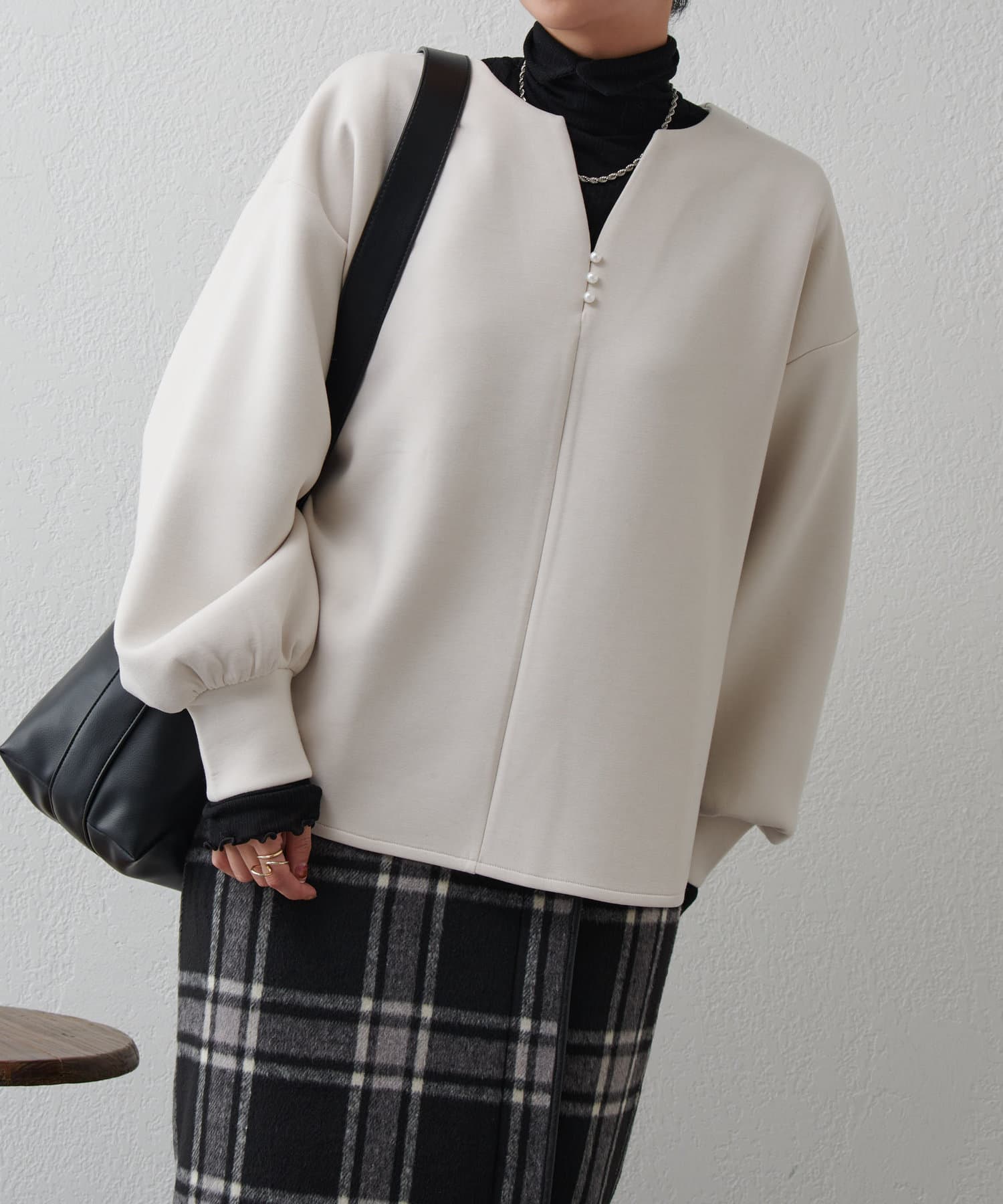TOP > Jena espace merveilleux > レディース > トップス > Tシャツ/カットソー > ボンディングパールボタンカットソー