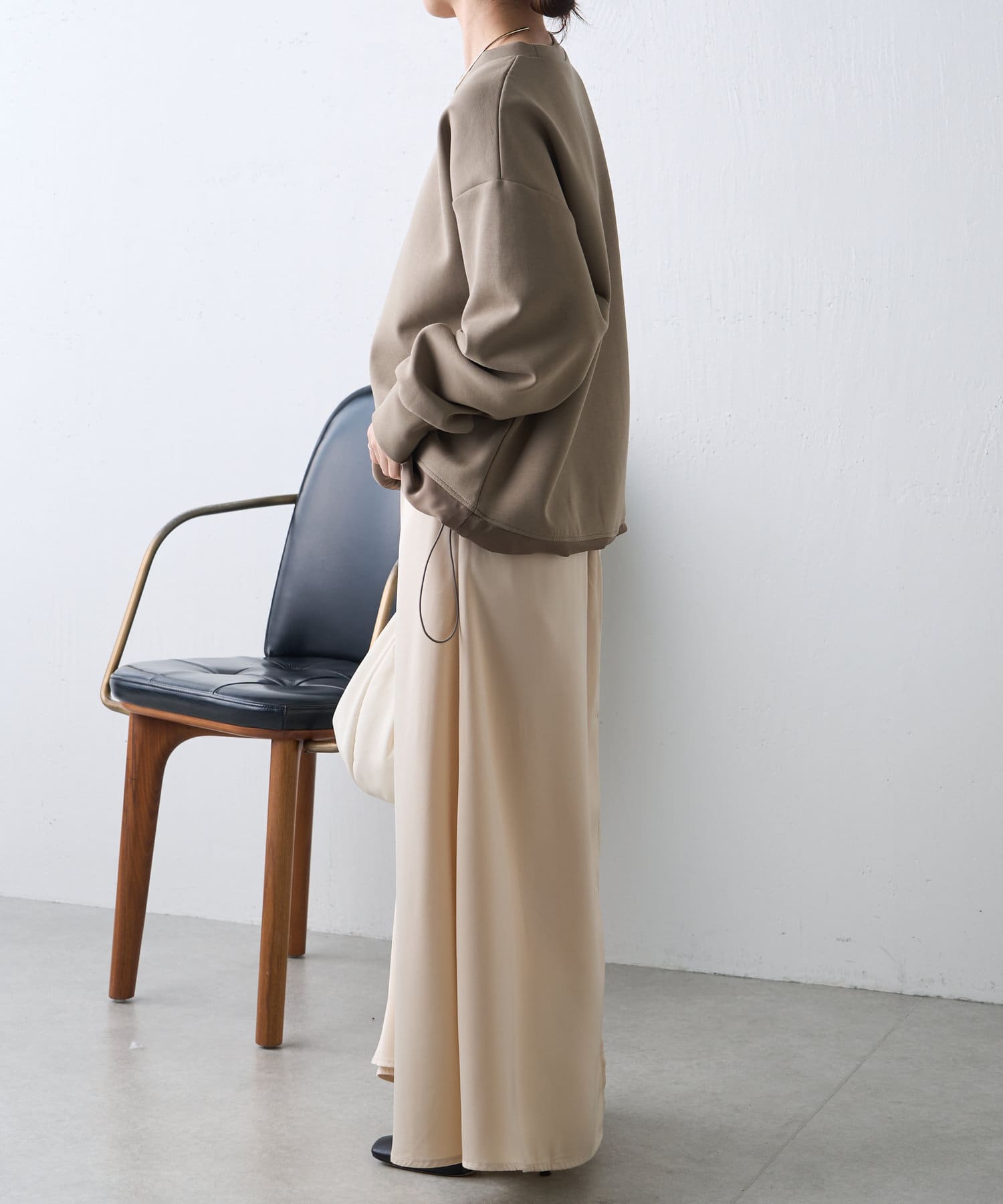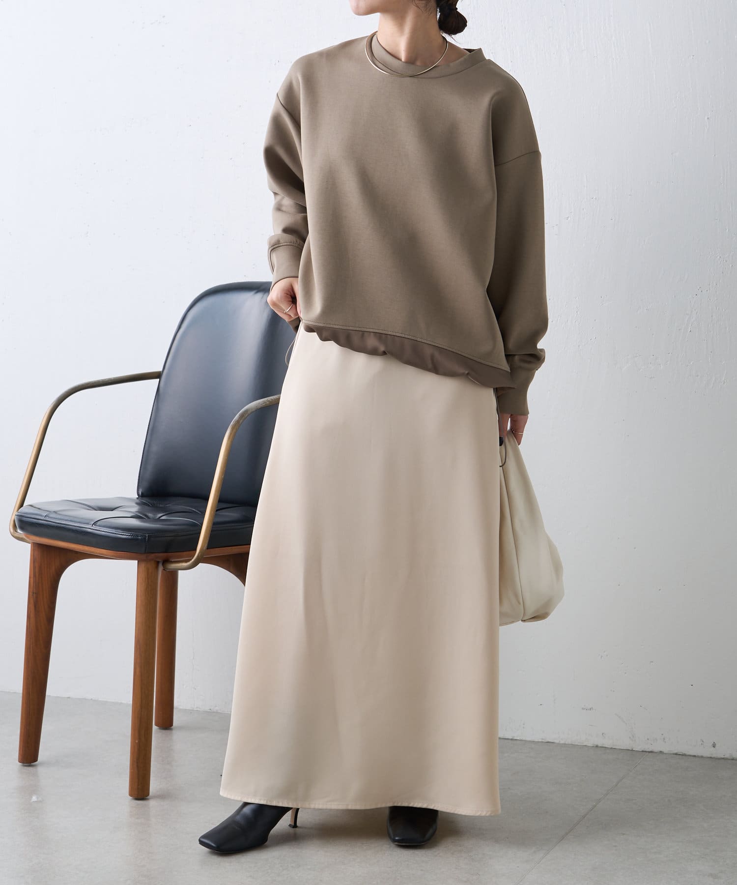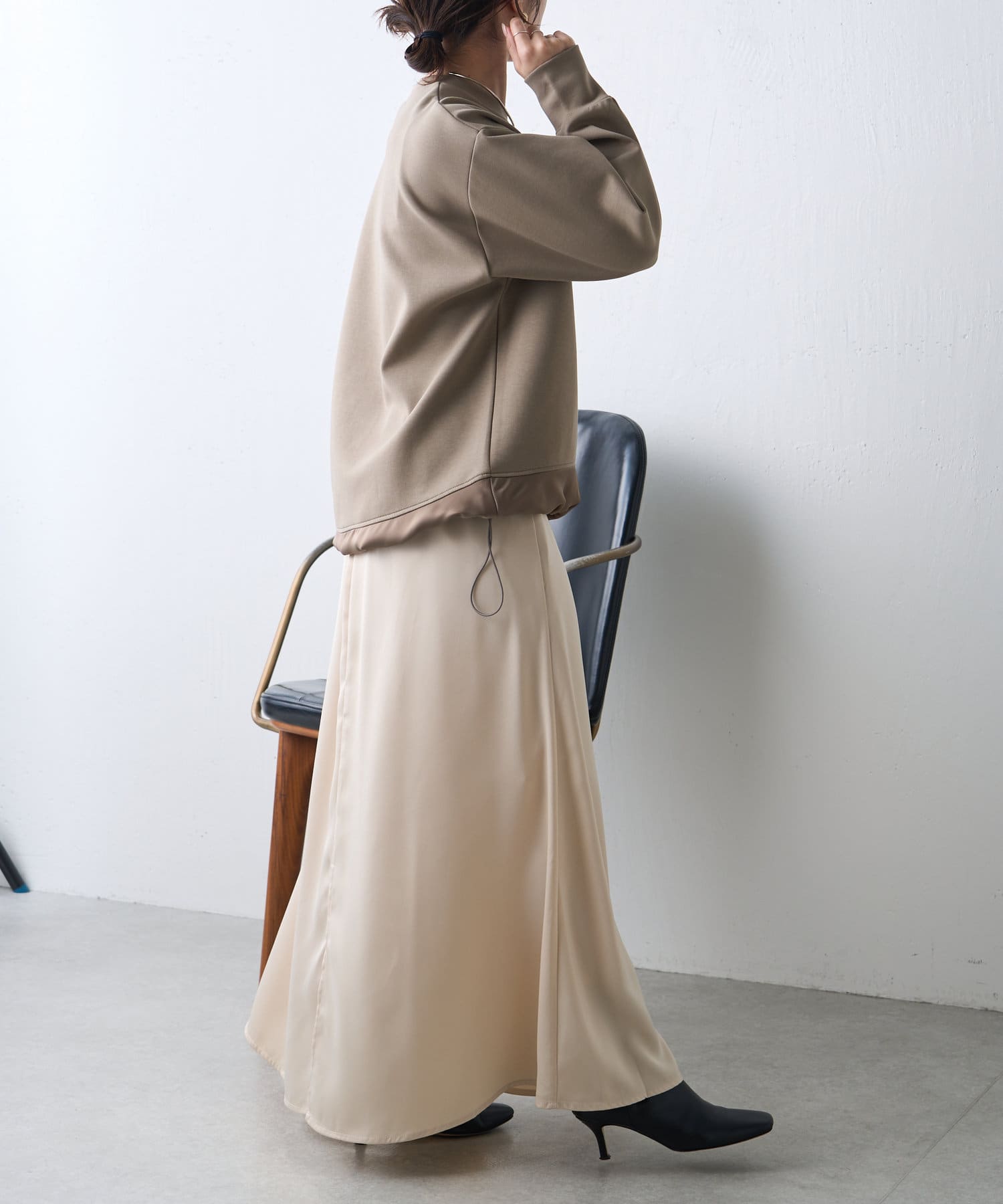 ・サテン素材がヘルシーな抜け感を演出。