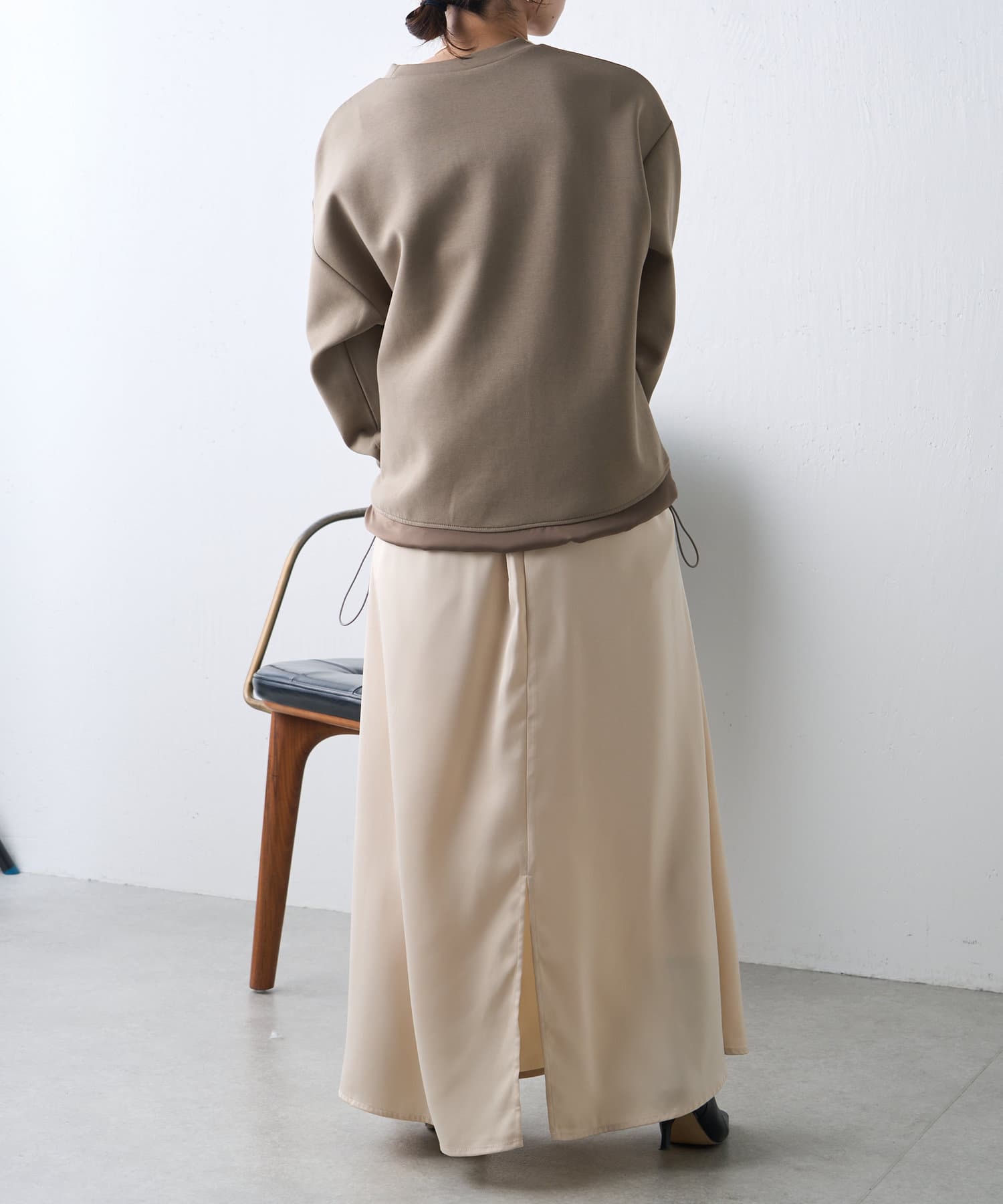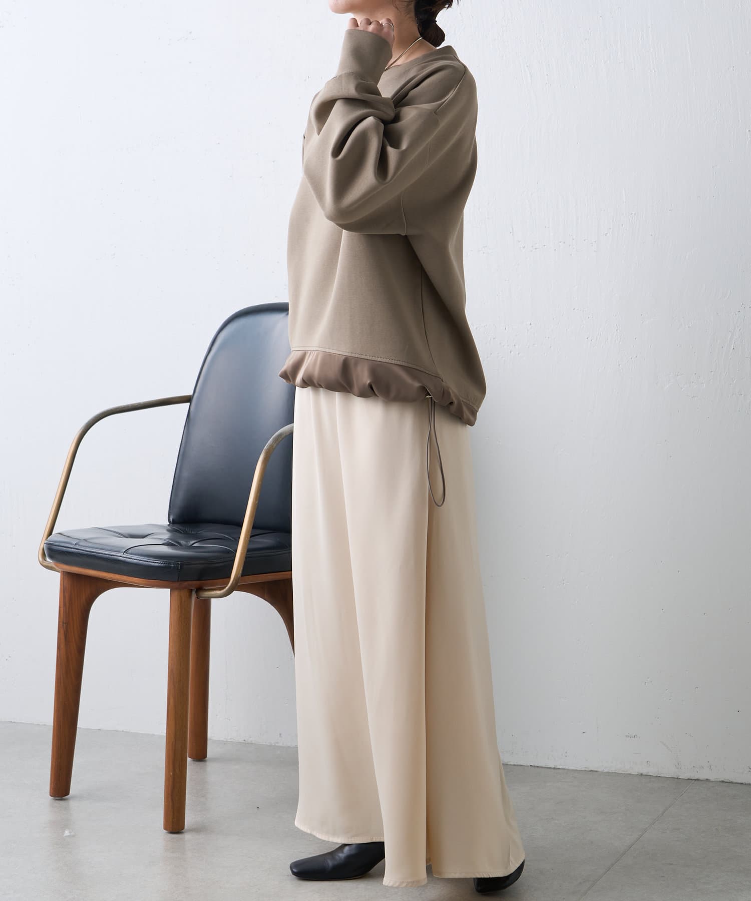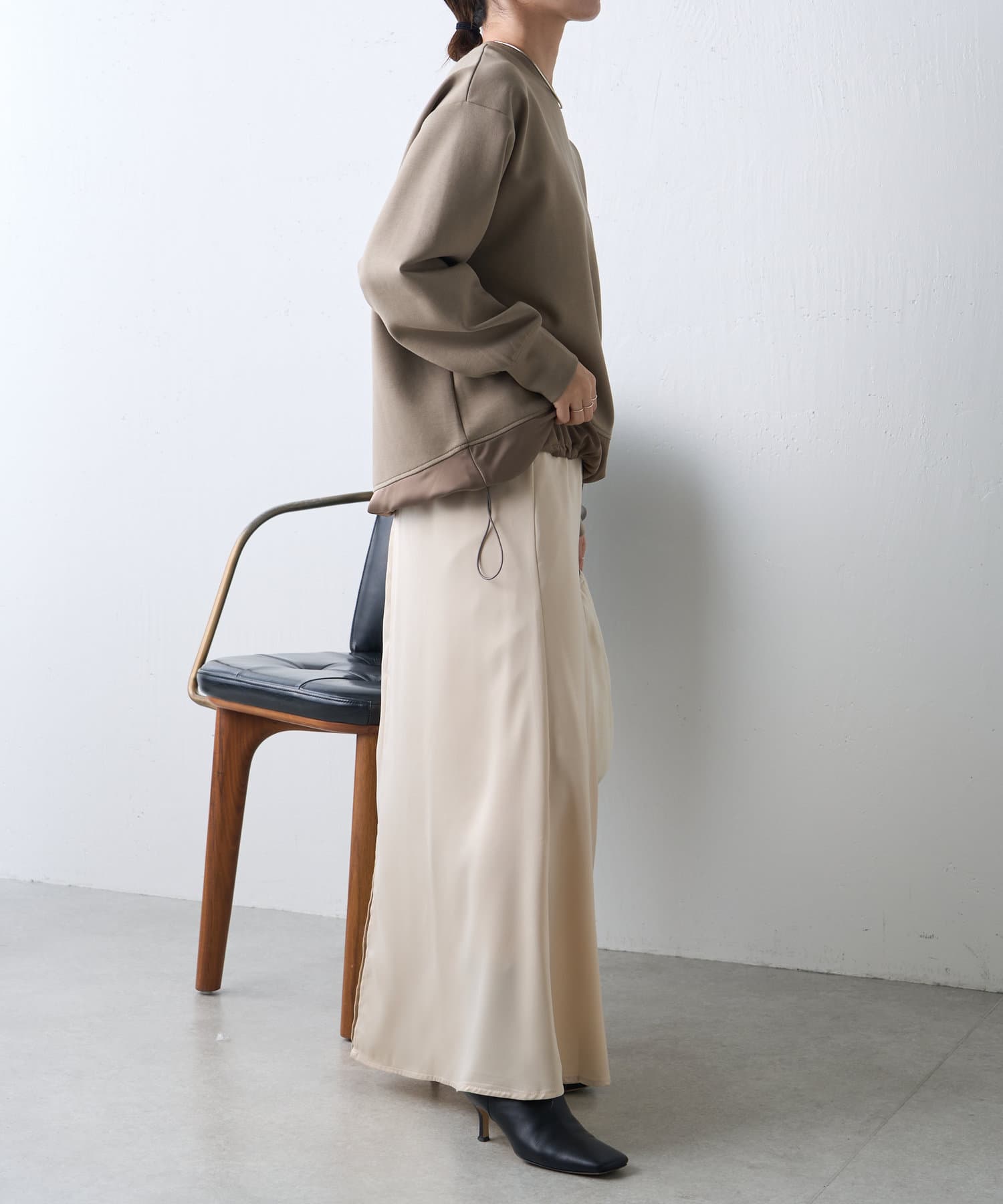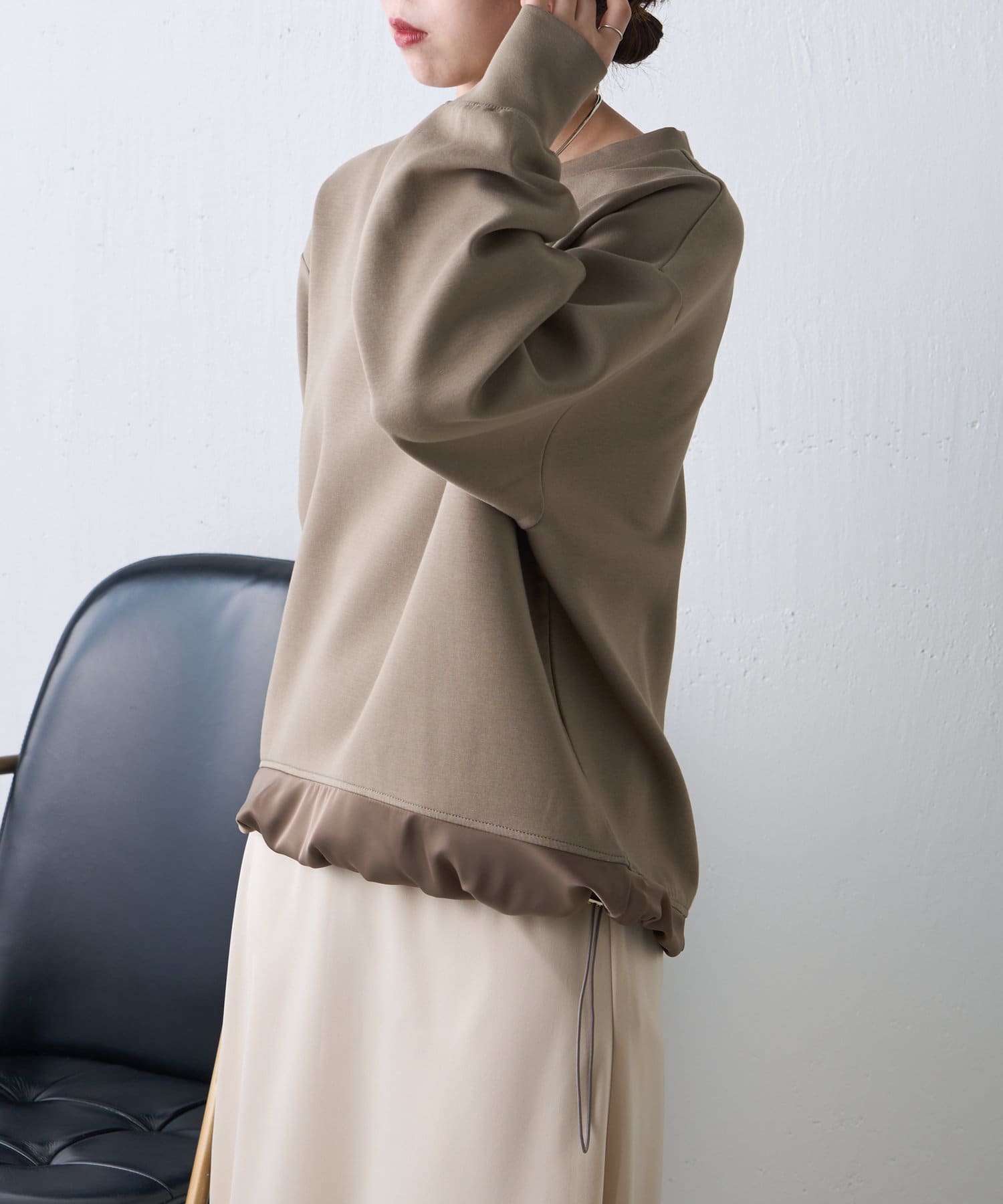 サテン切替ドロストカットソー