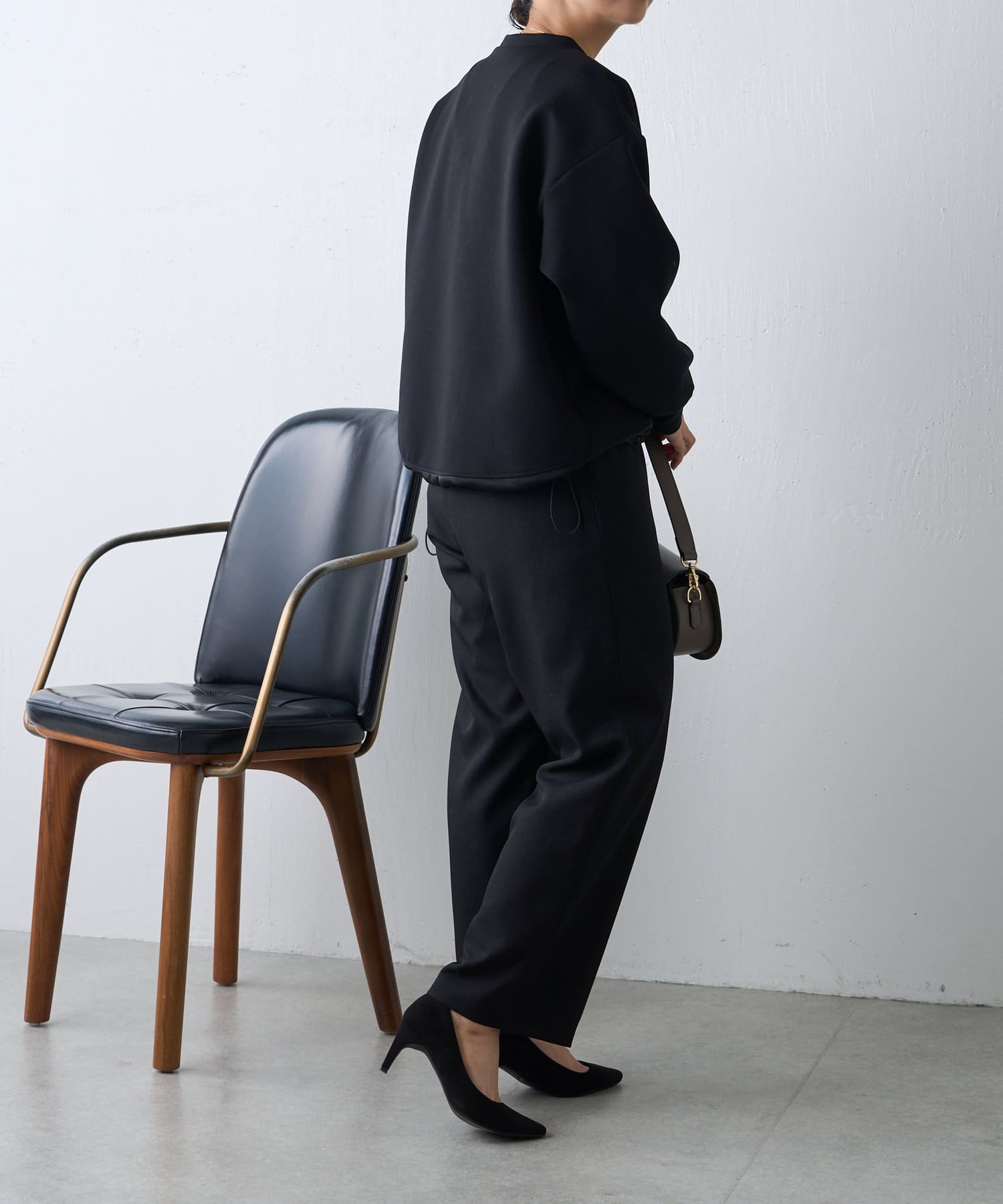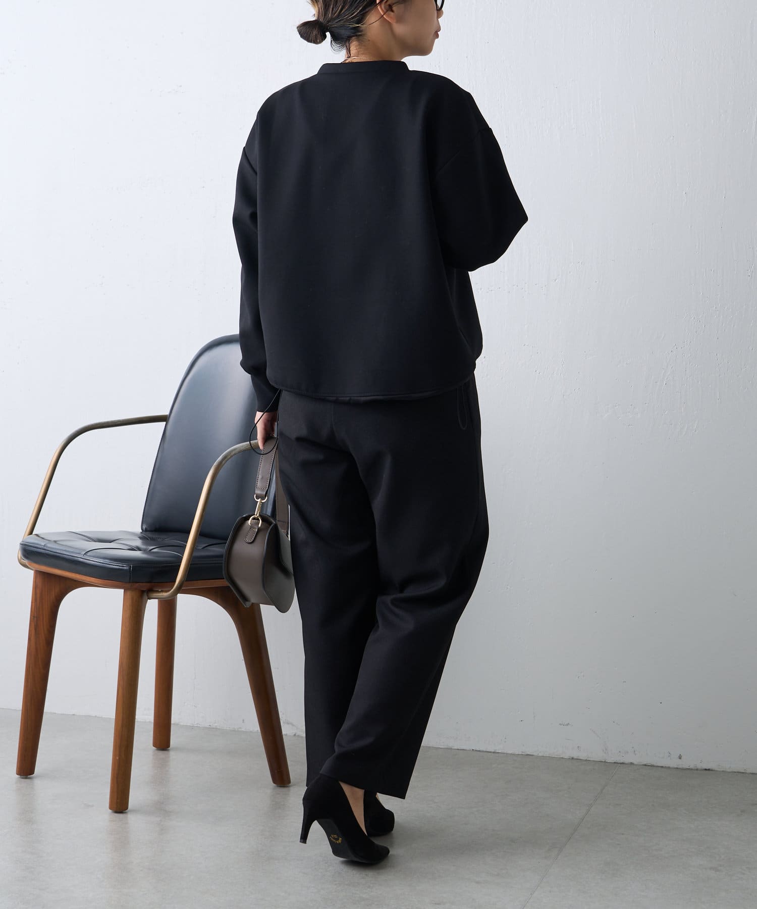 ・デニムやパラシュートパンツなどカジュアルボトムを合わせても大人上品な雰囲気に仕上がります。