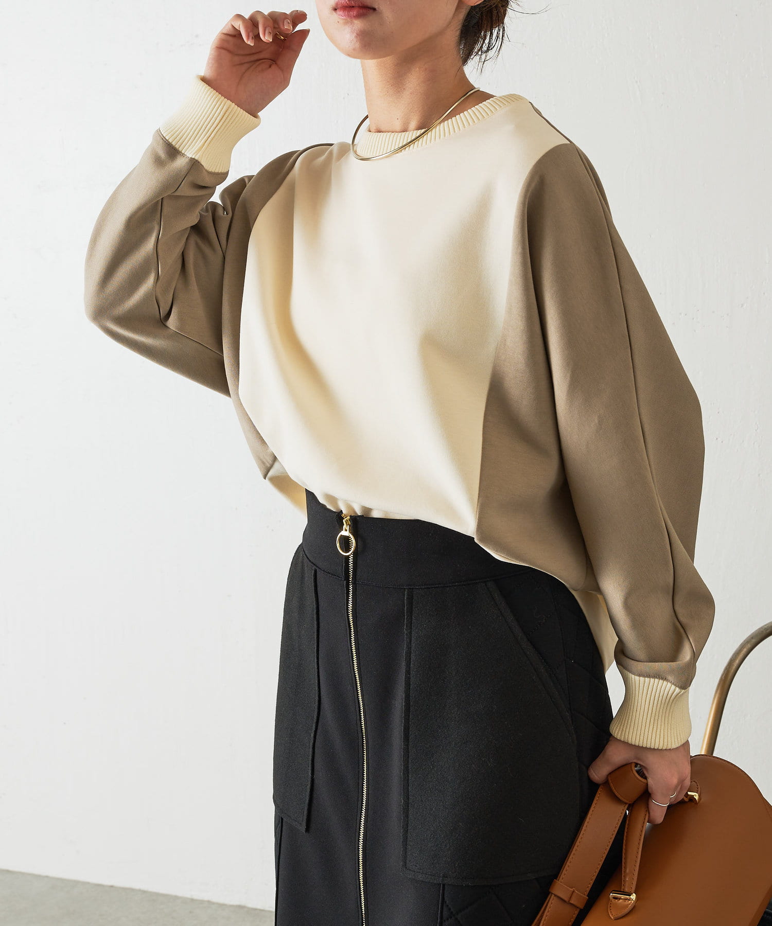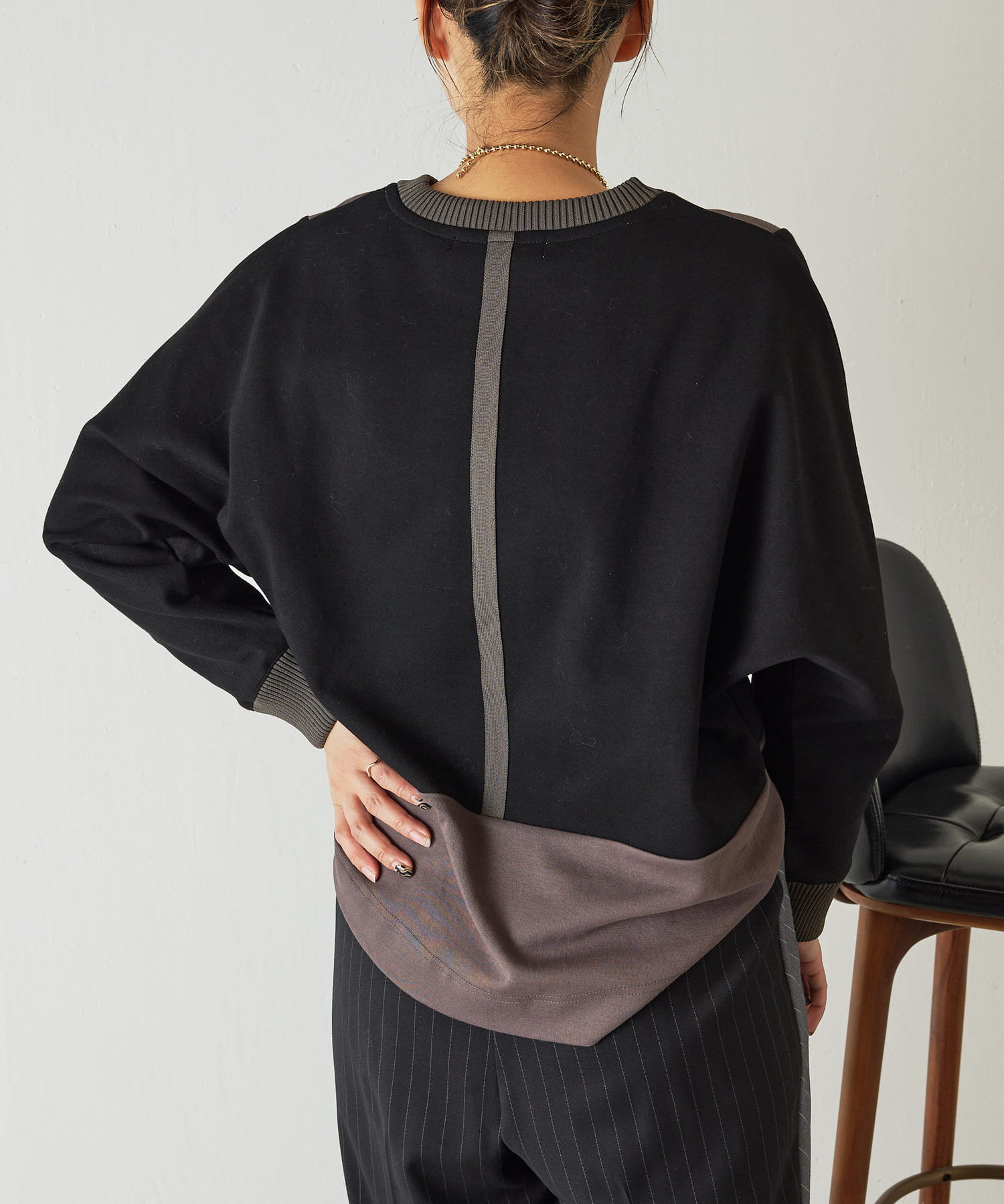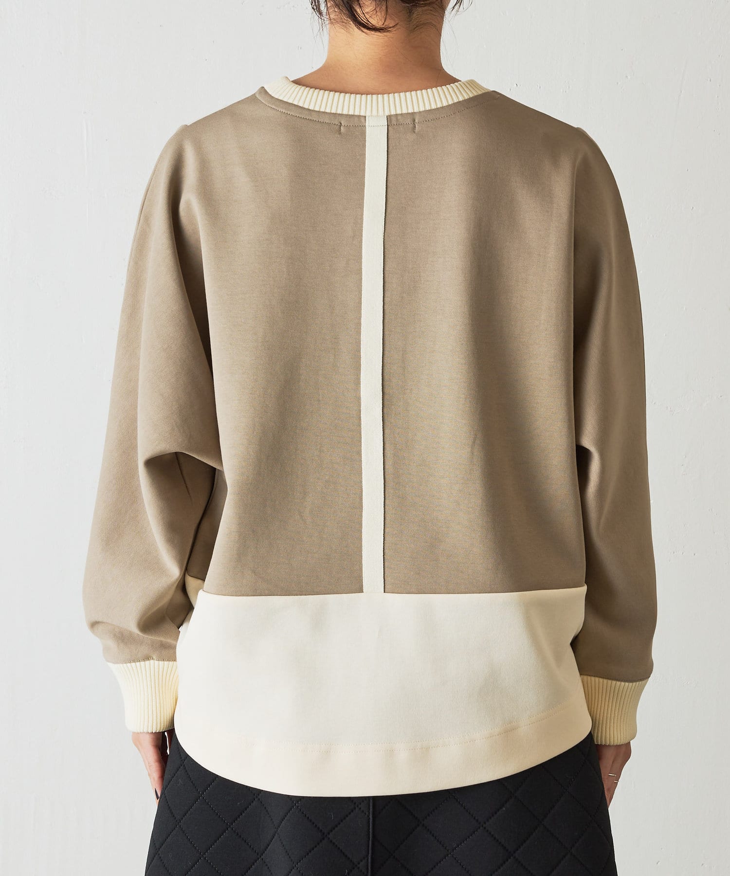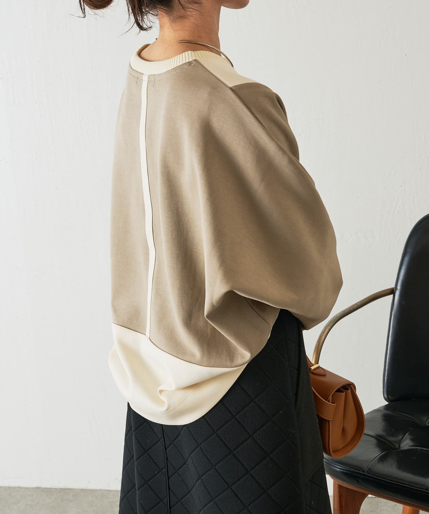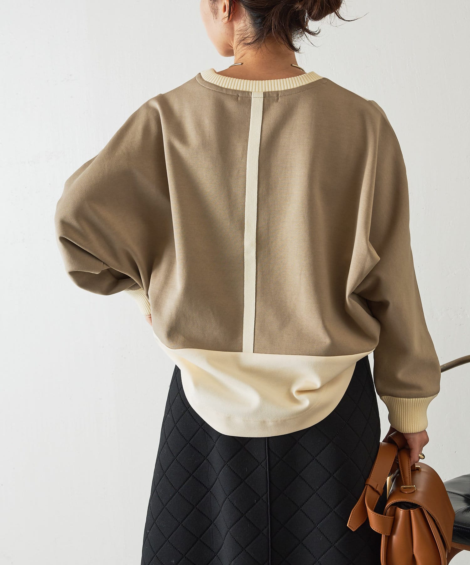 ・配色デザインとバックのラインがポイントのシンプル大人のカットソー。