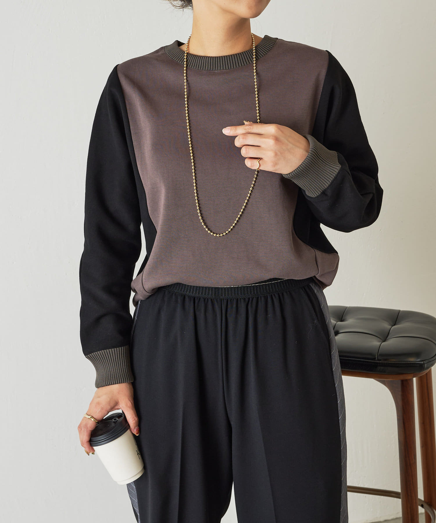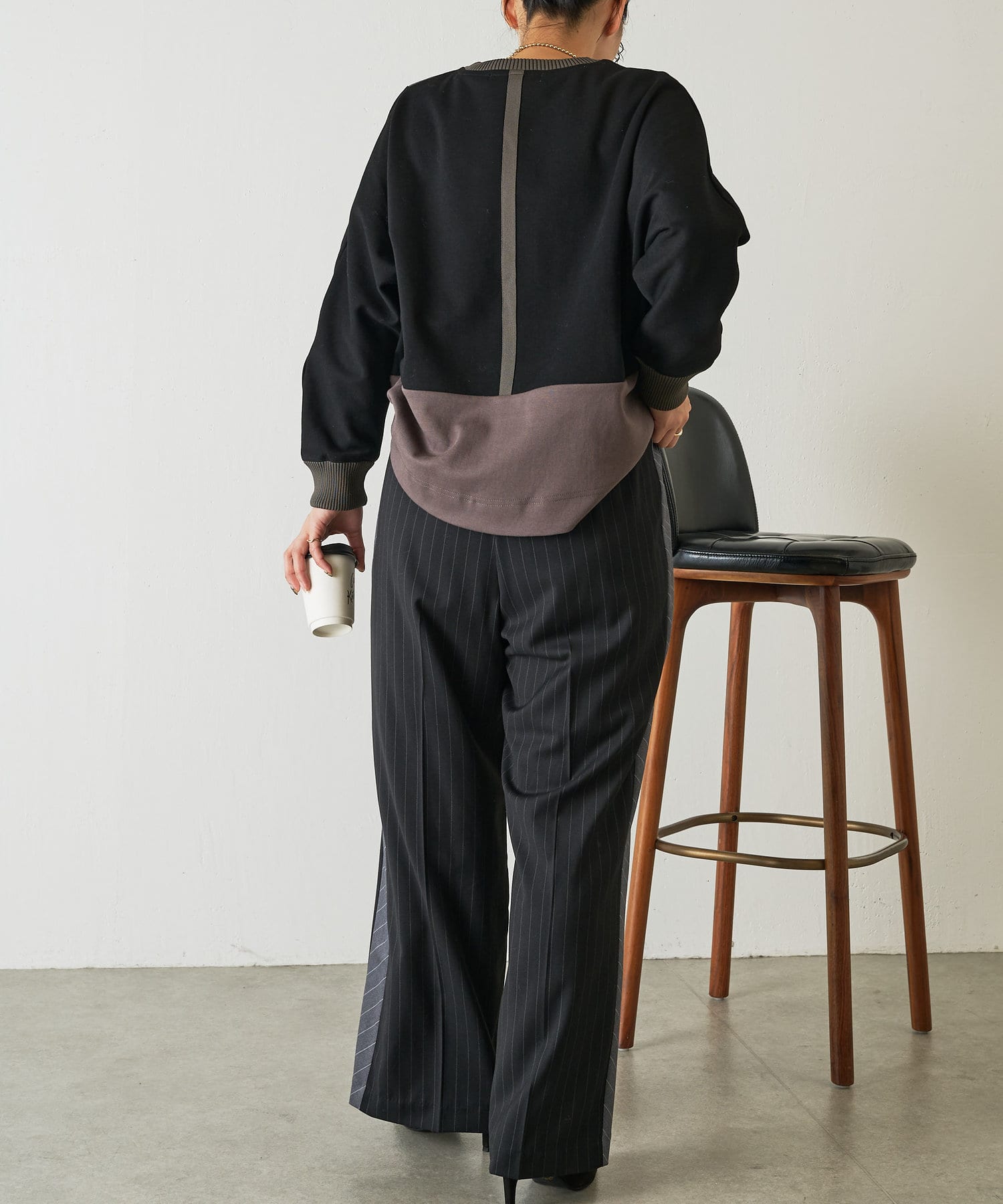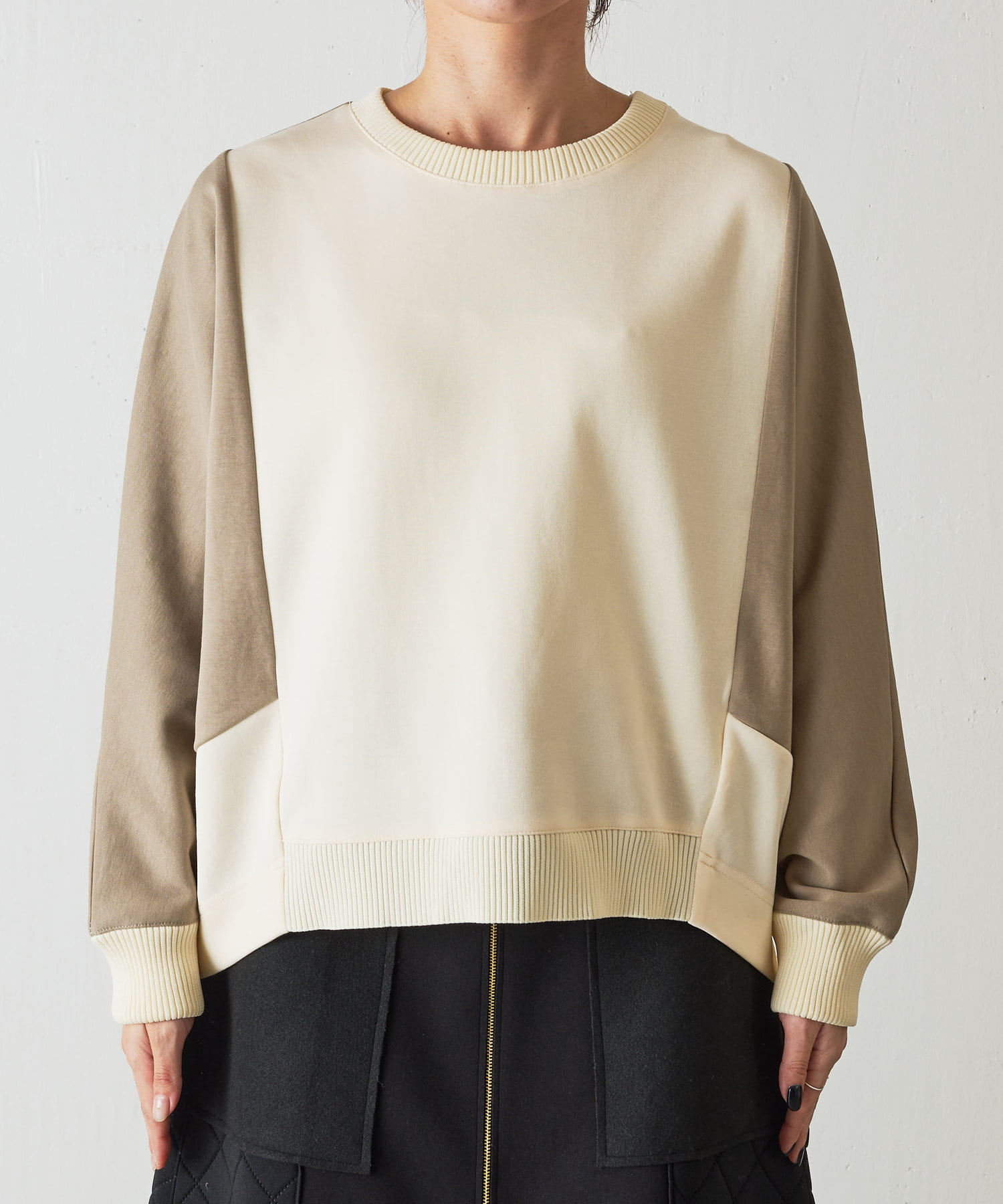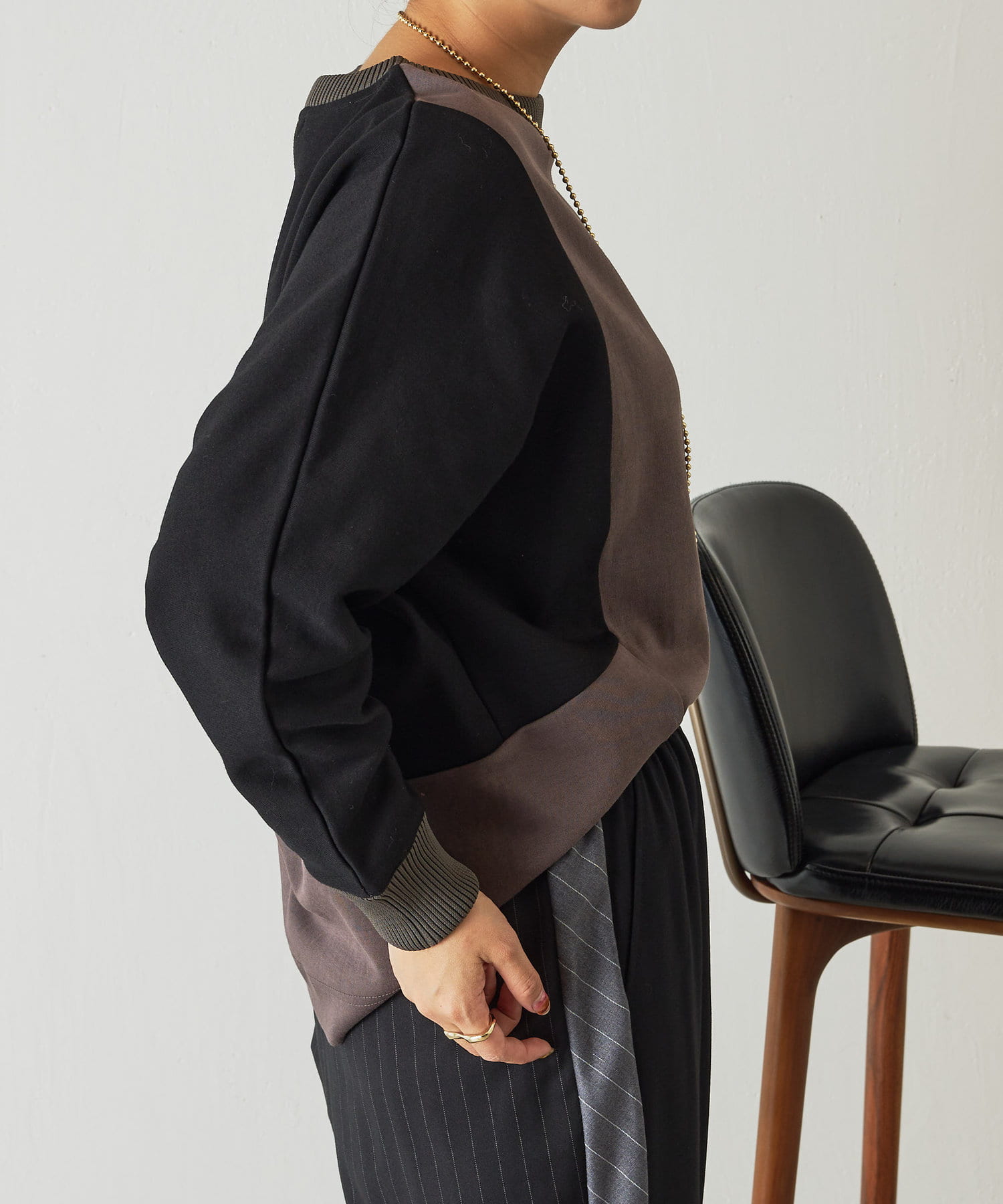 ・配色デザインとバックのラインがポイントのシンプル大人のカットソー。