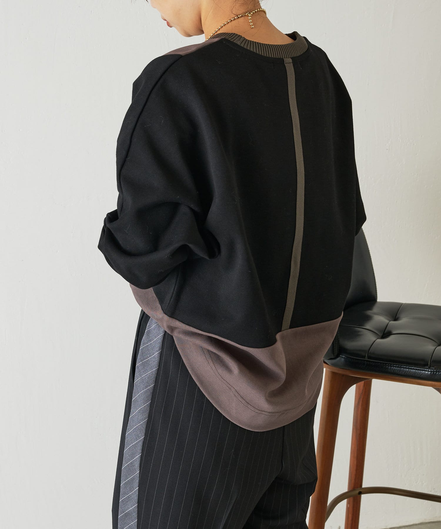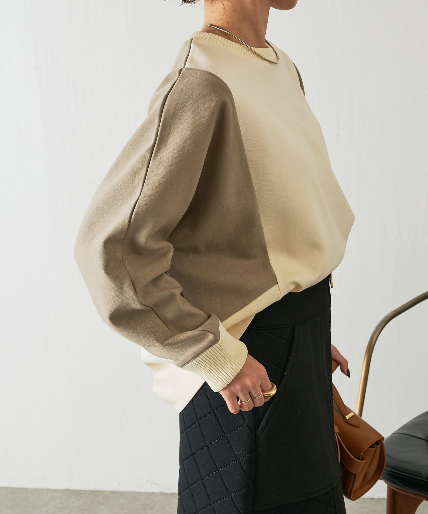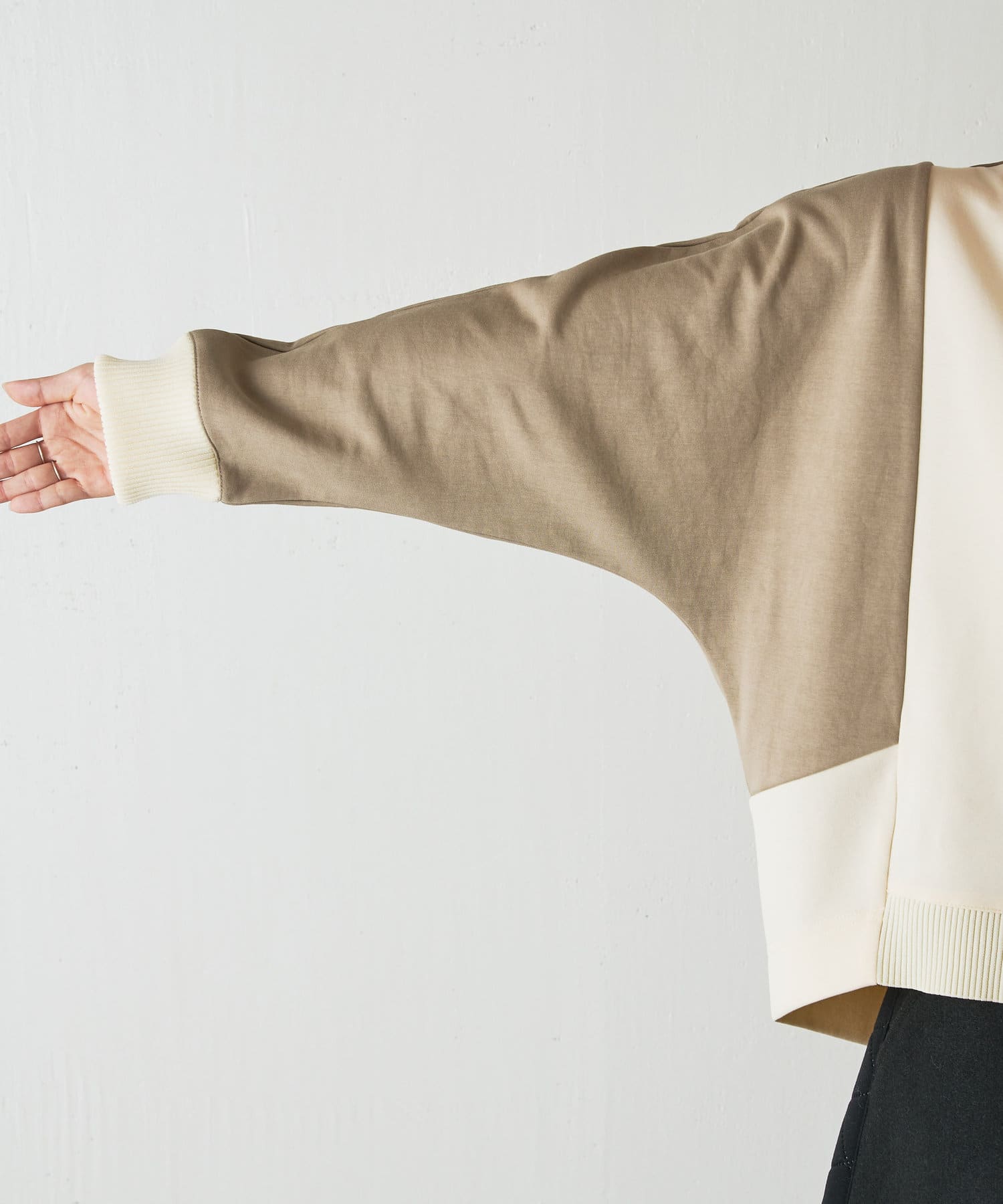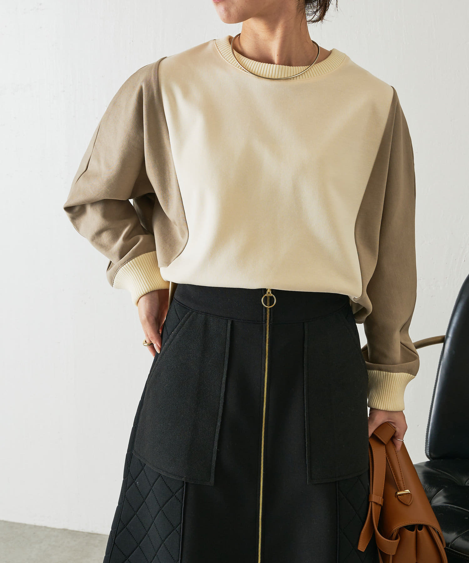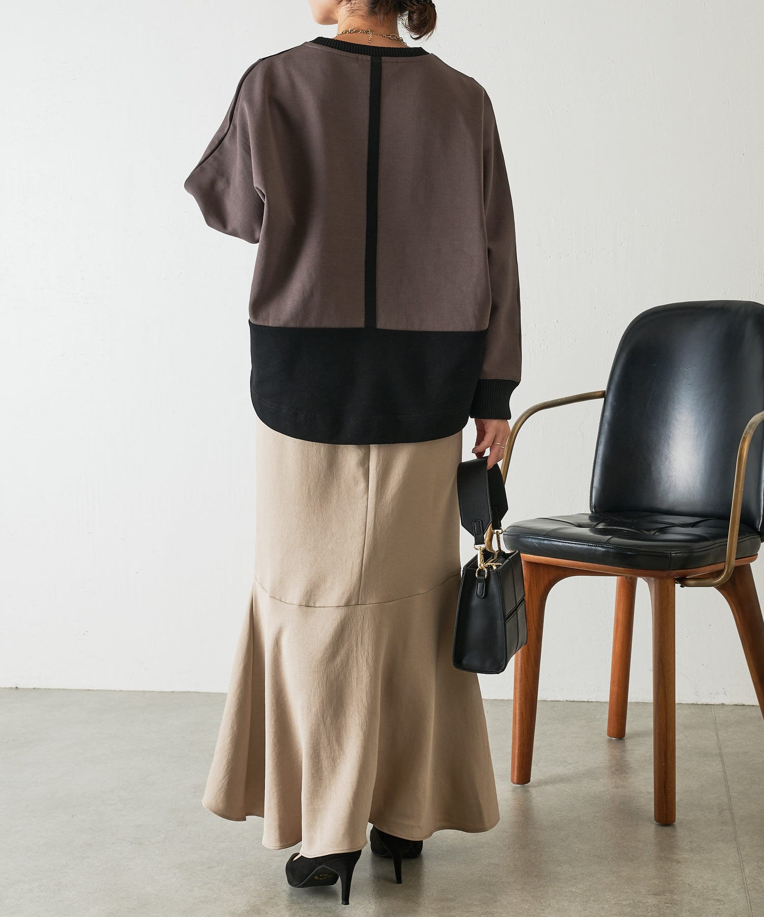 ・配色デザインとバックのラインがポイントのシンプル大人のカットソー。