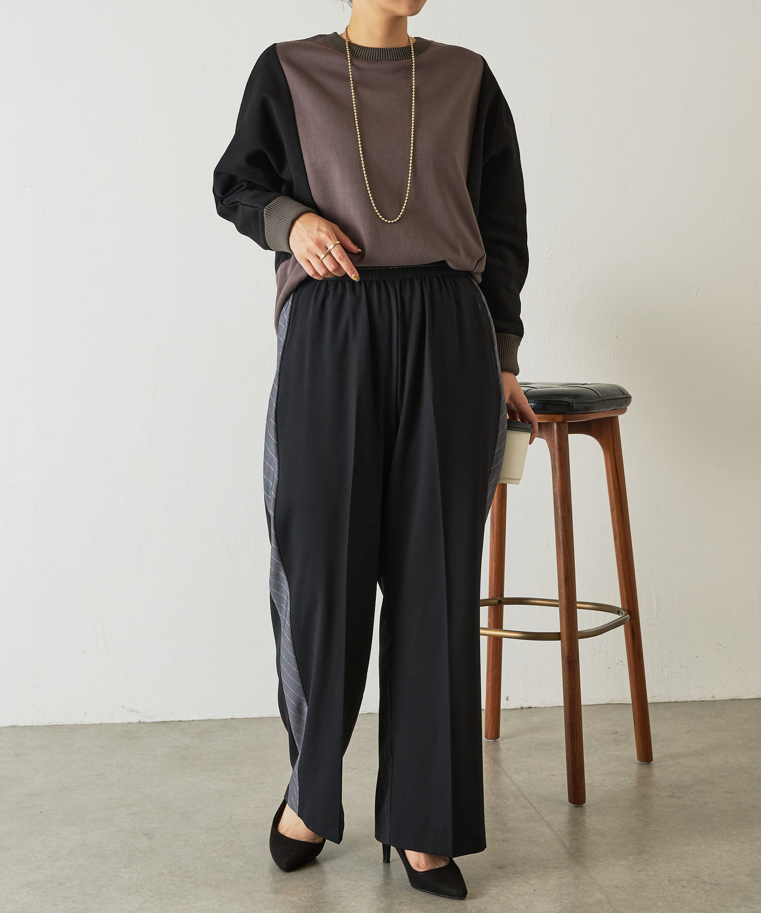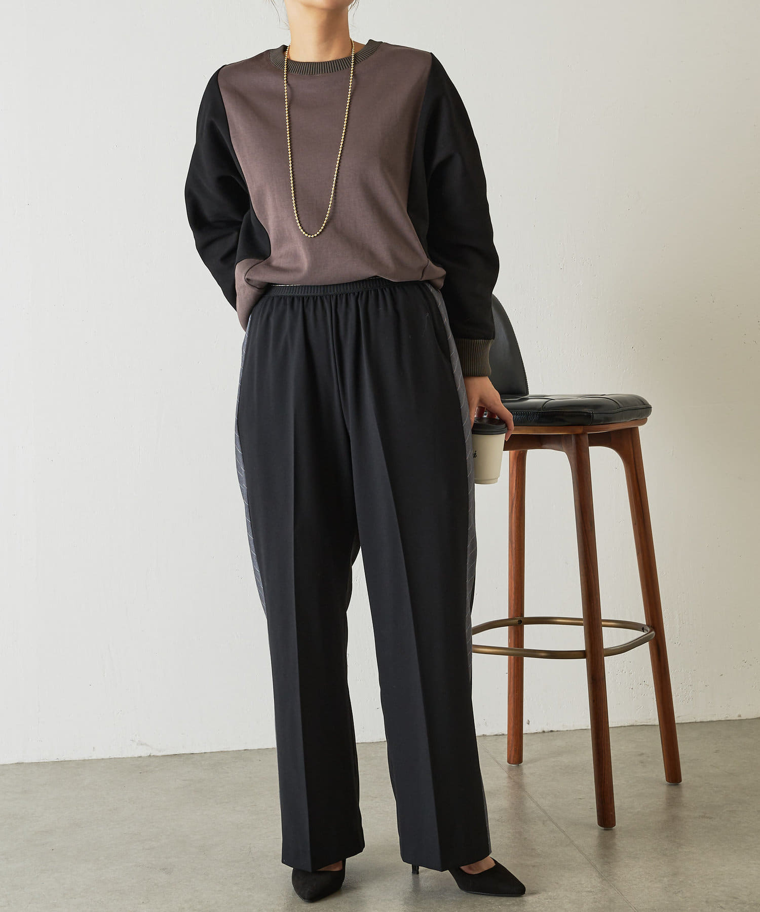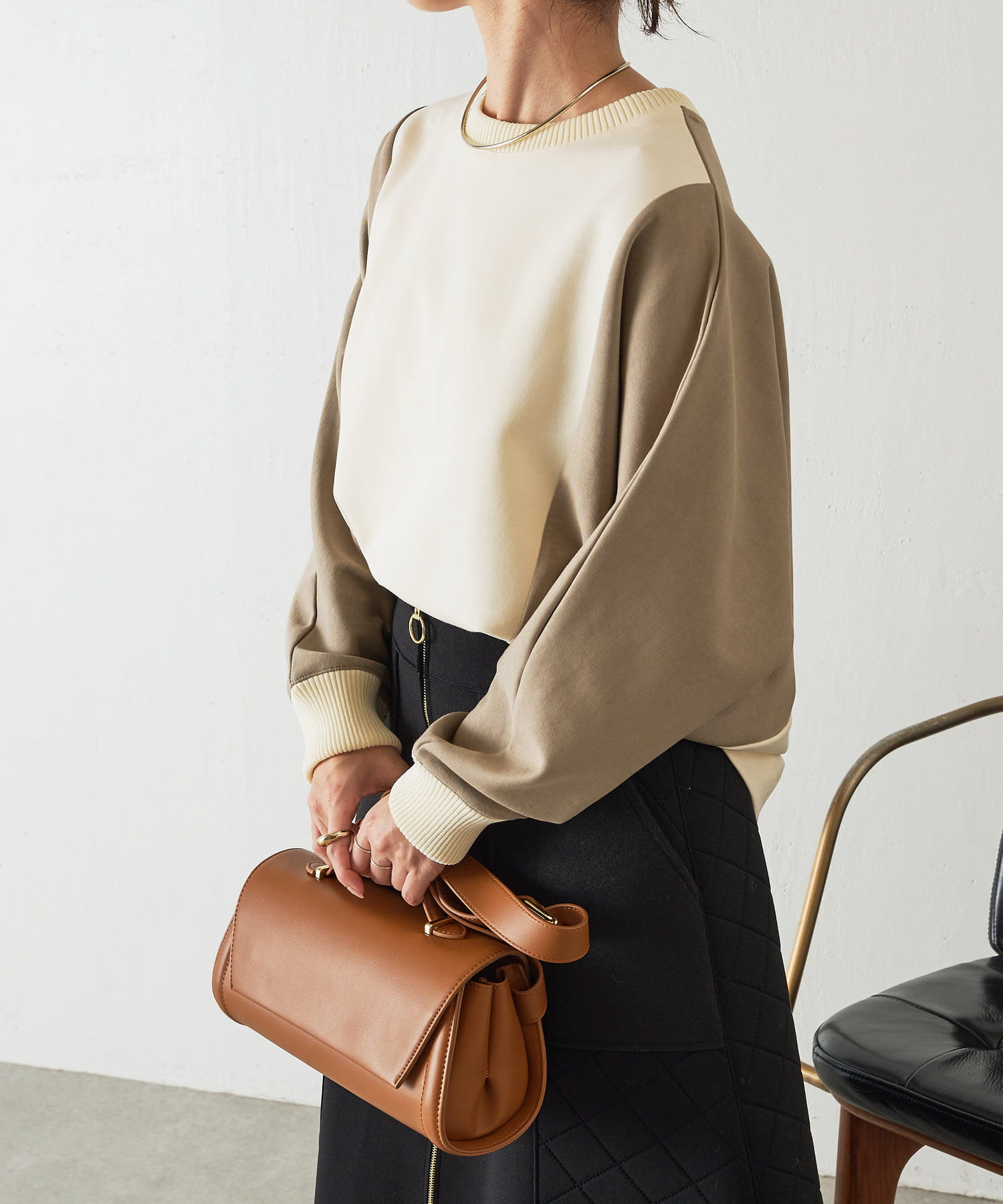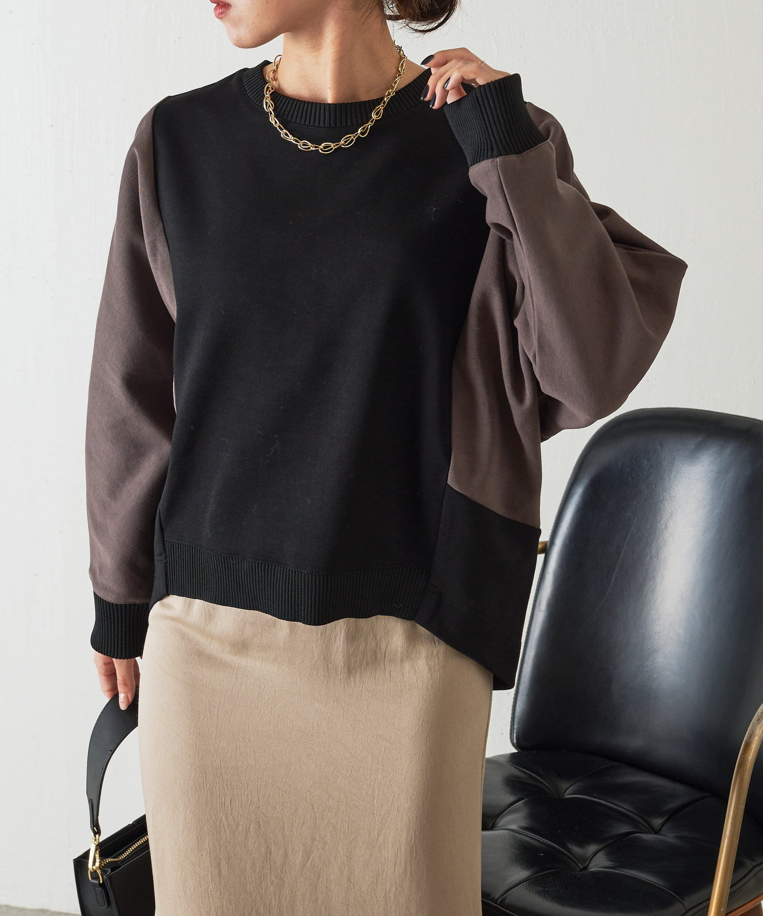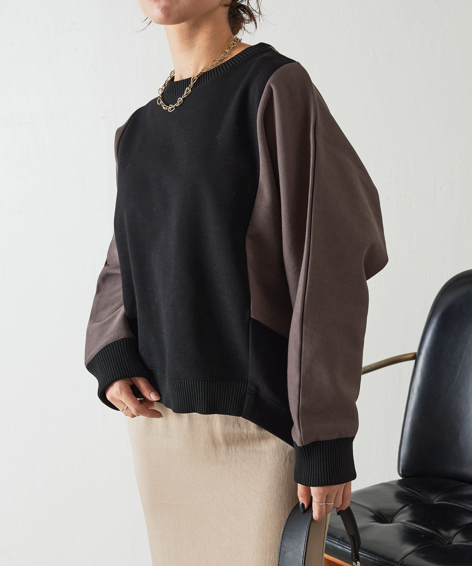 ・配色デザインとバックのラインがポイントのシンプル大人のカットソー。