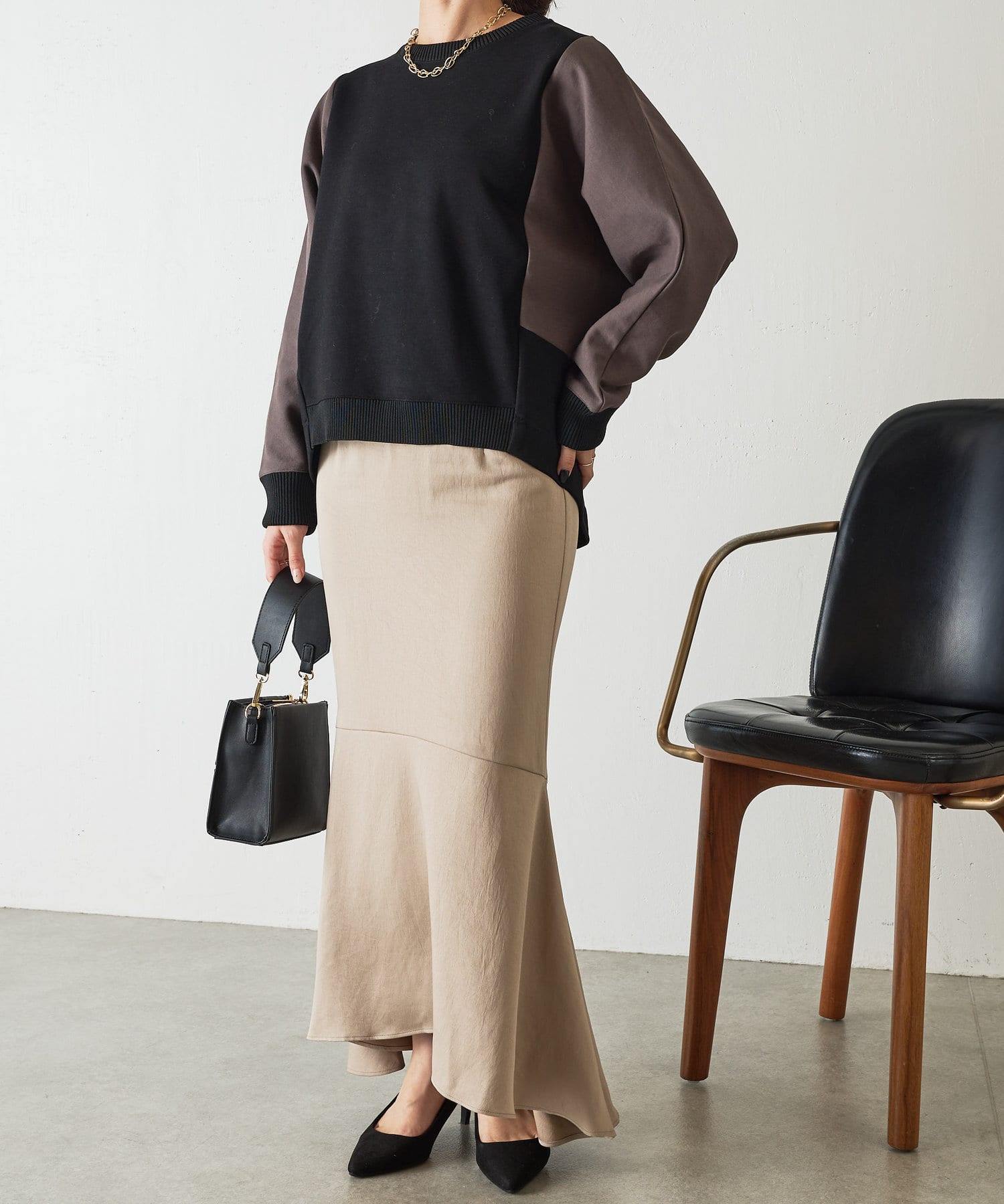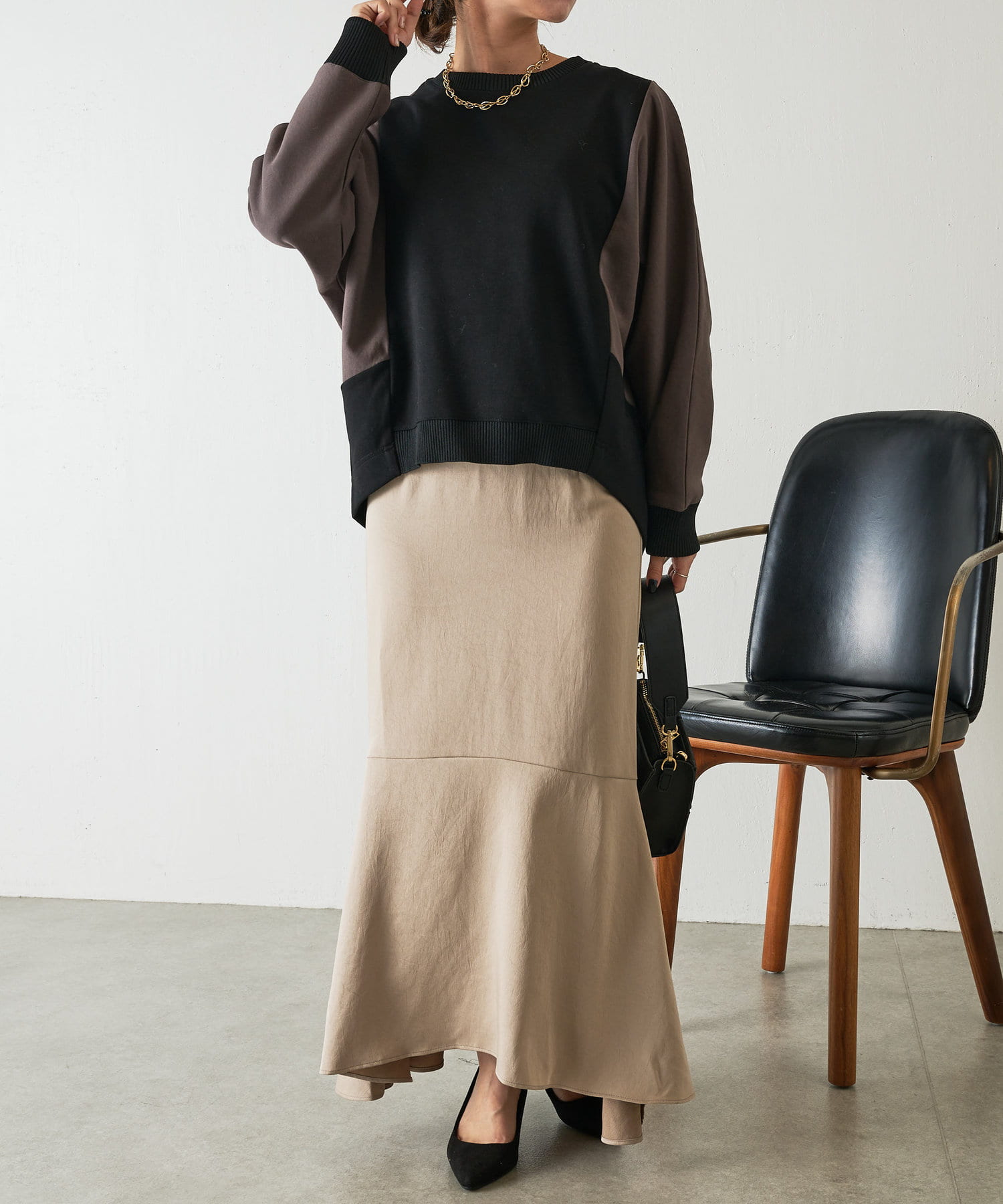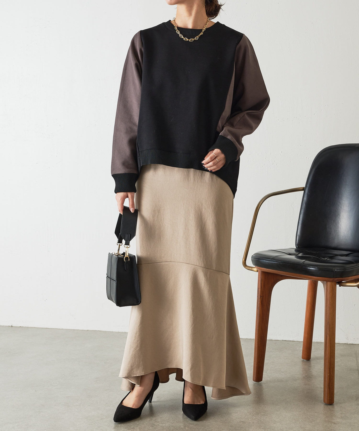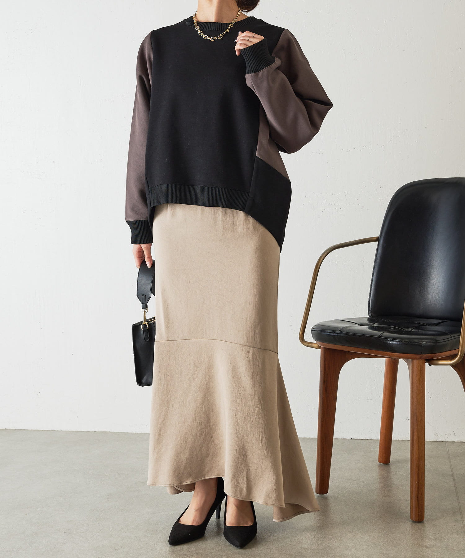 ・ワイドパンツや、ロングスカートとも相性抜群のトップス。