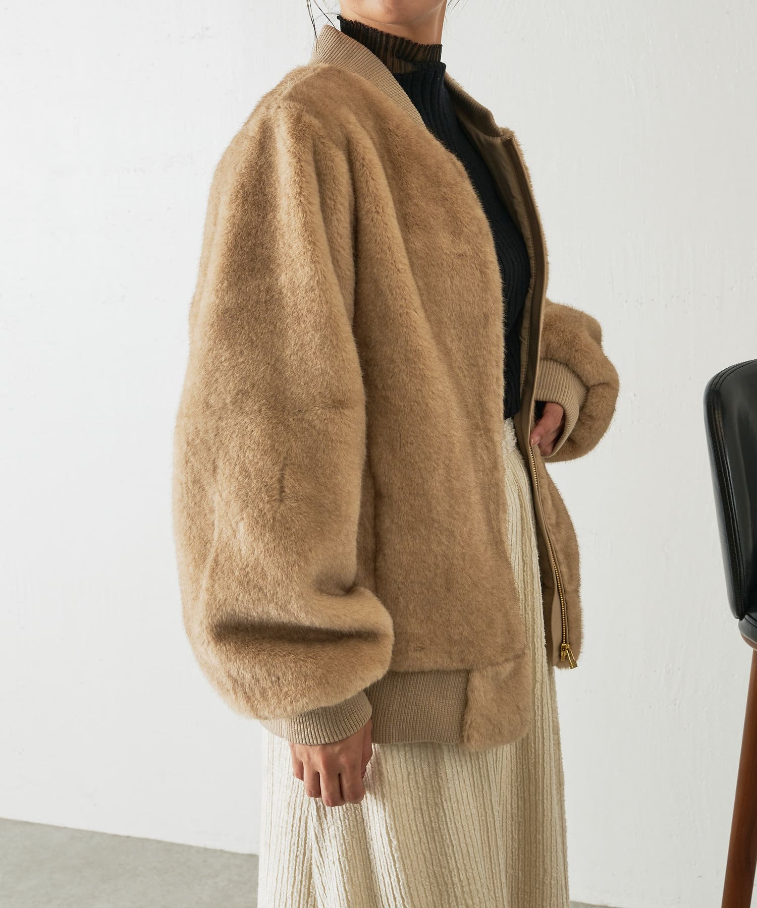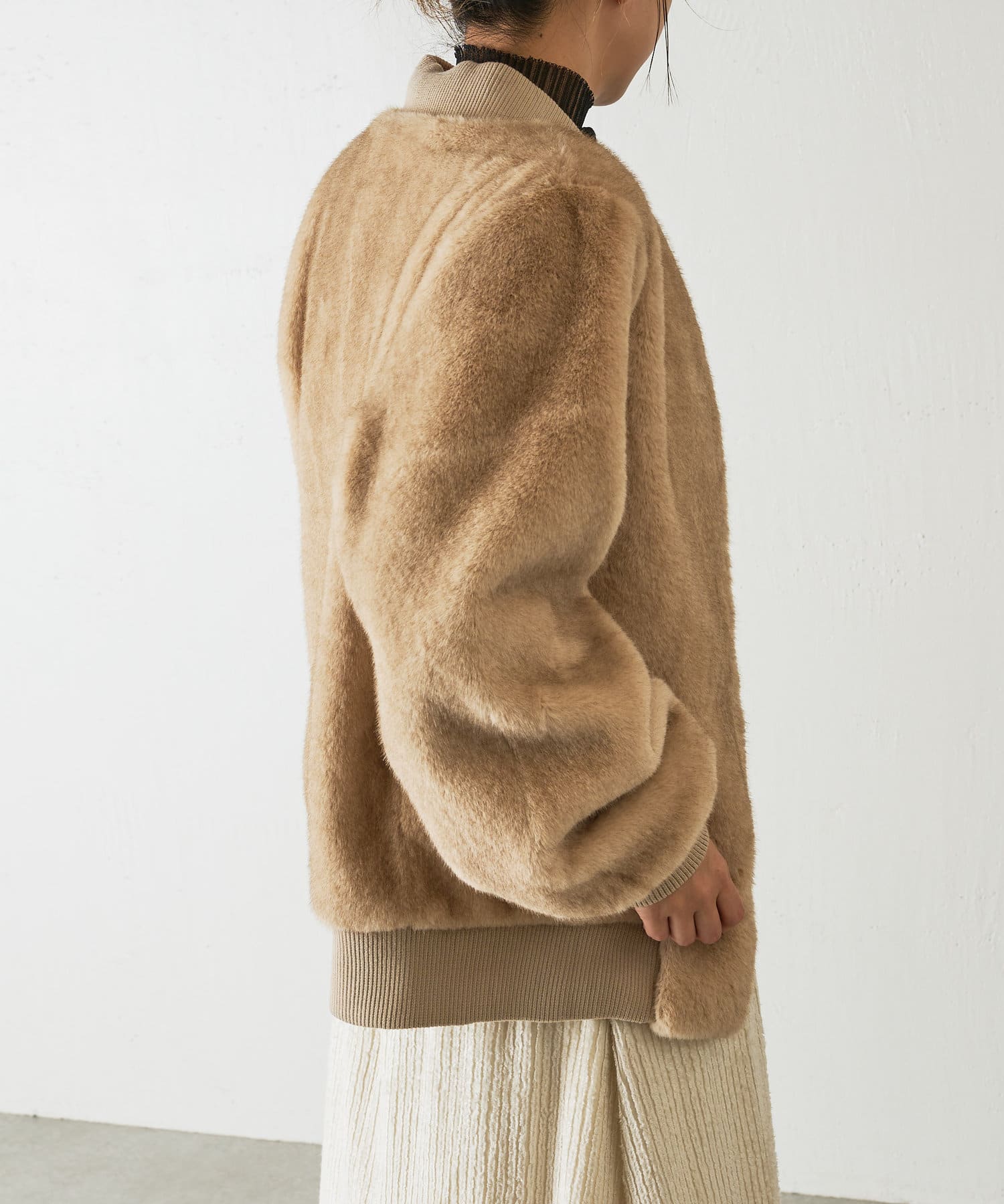 ・ノーカラーとコンパクトな丈感ですっきりとバランスのとりやすいサイズ感。