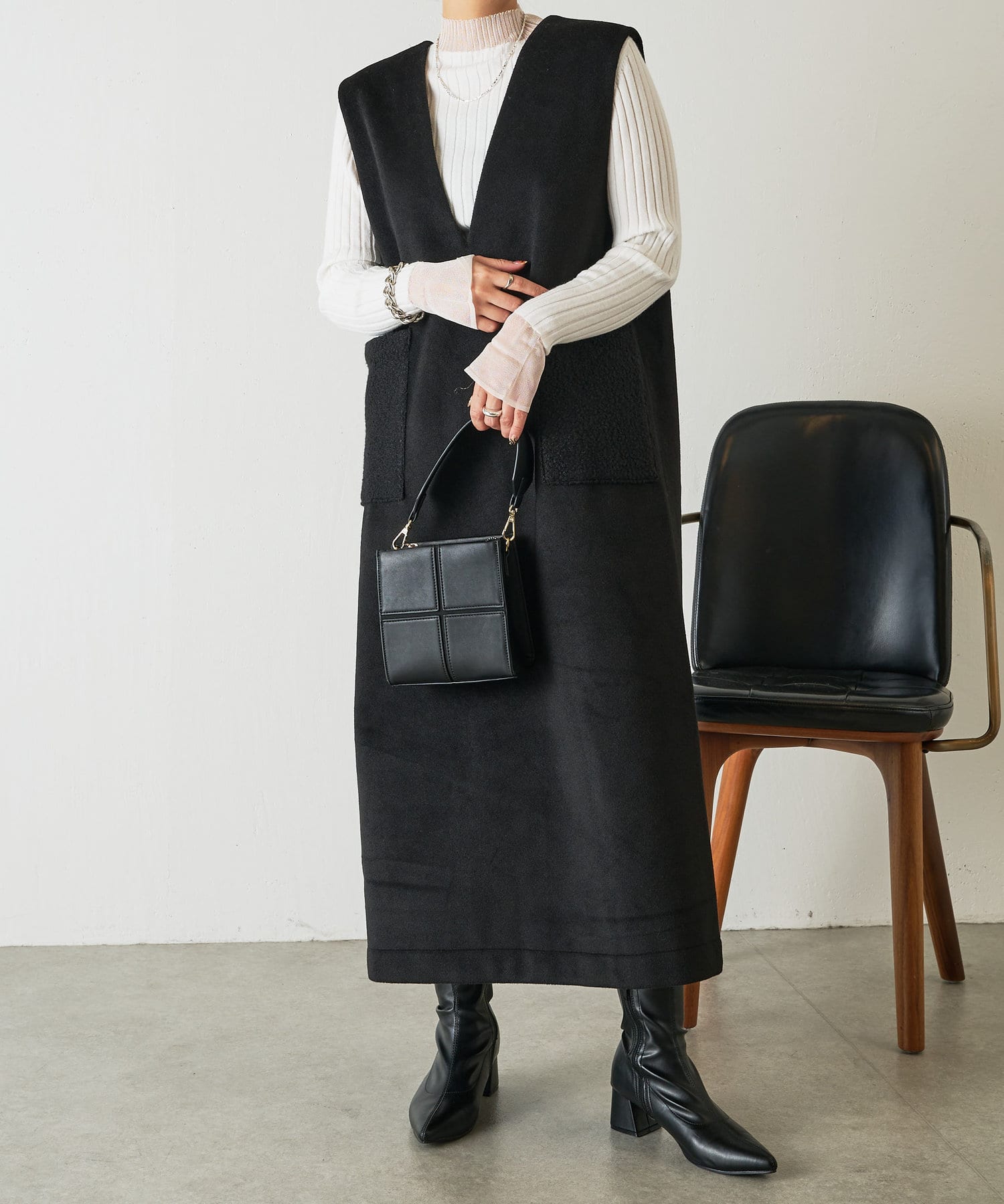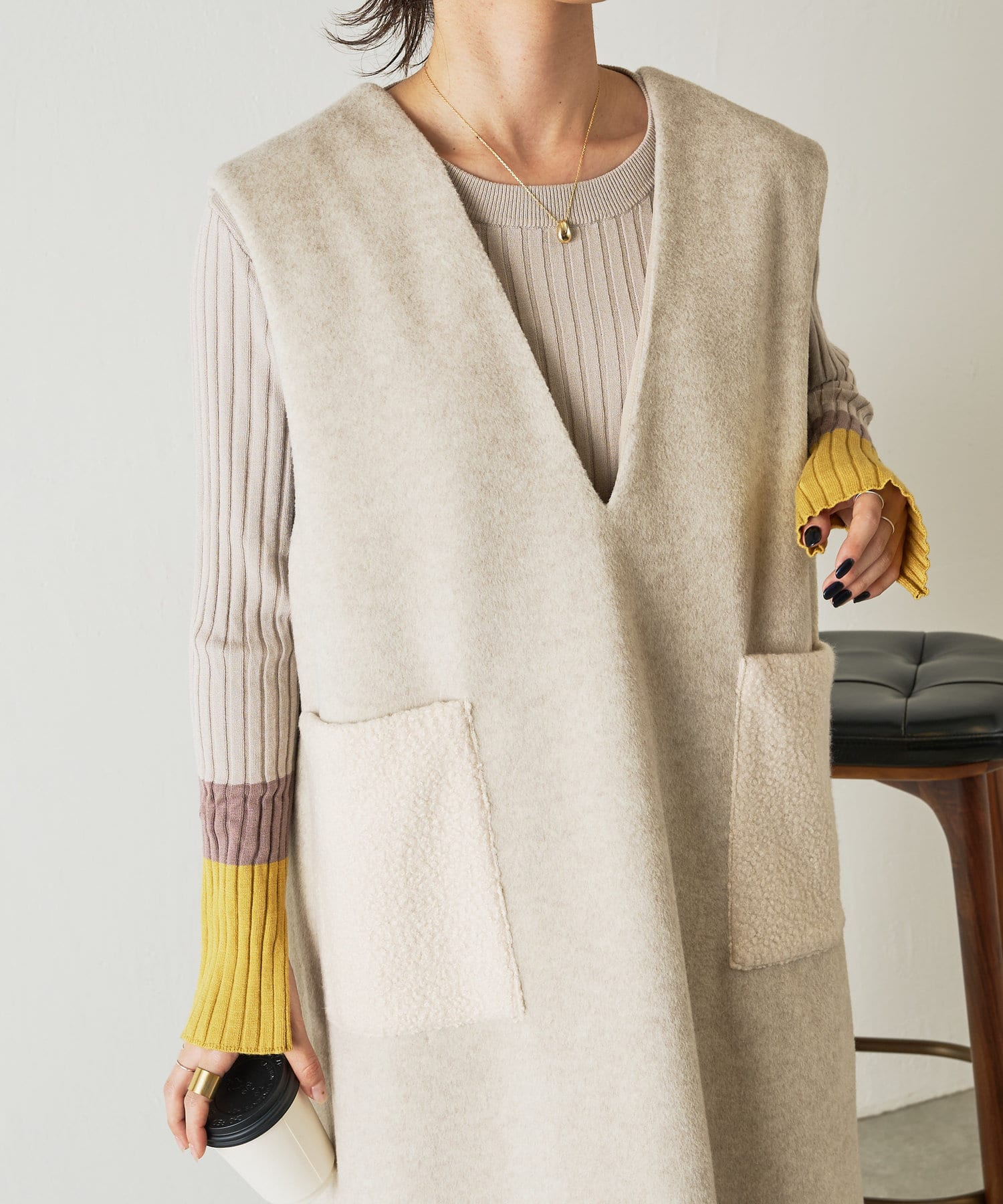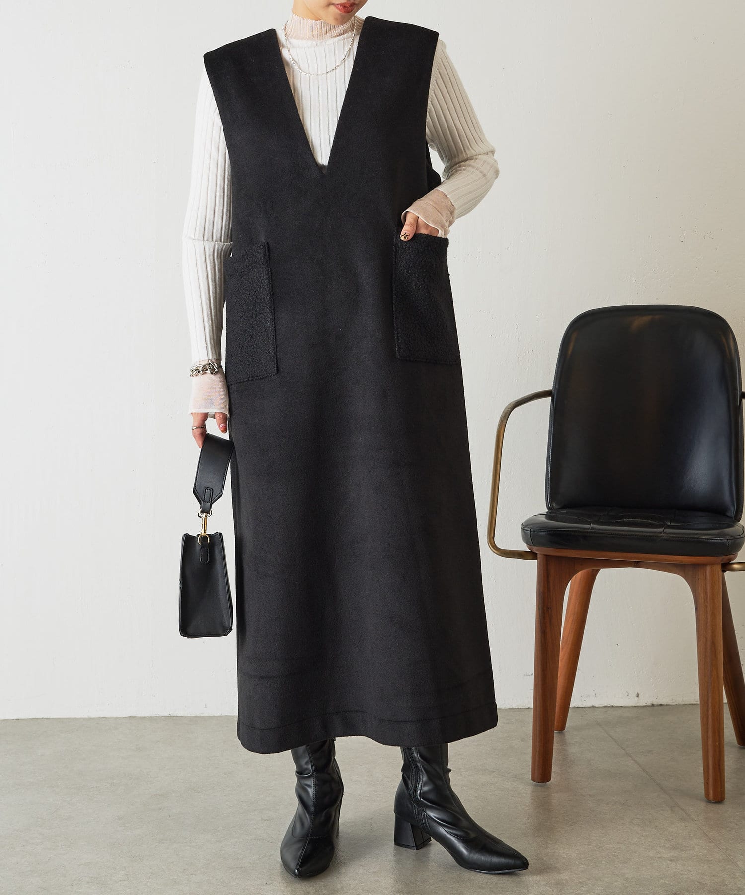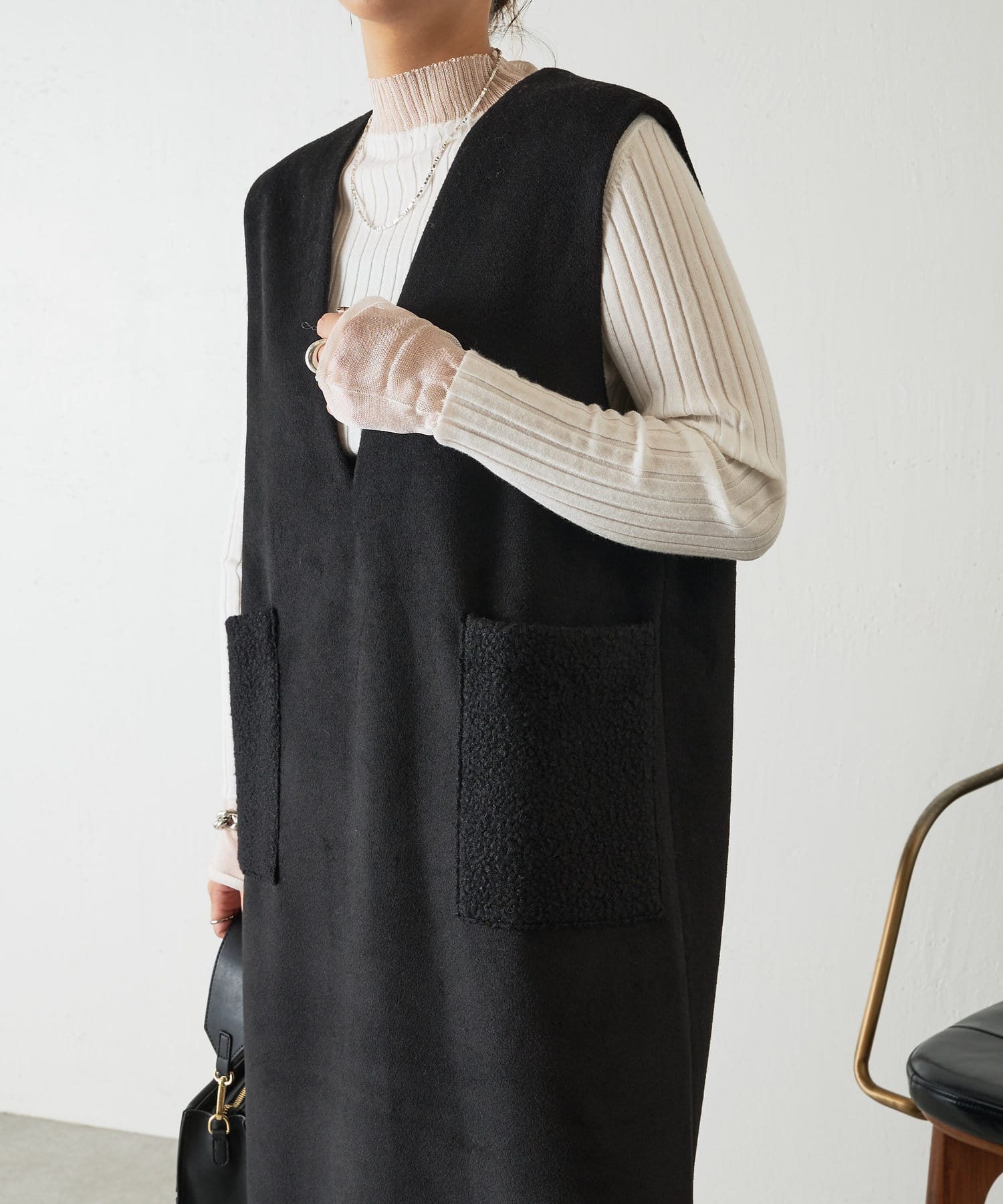 ・合わせるインナーを選ばない深Vのデザインは着るだけで華奢な印象に魅せてくれます。