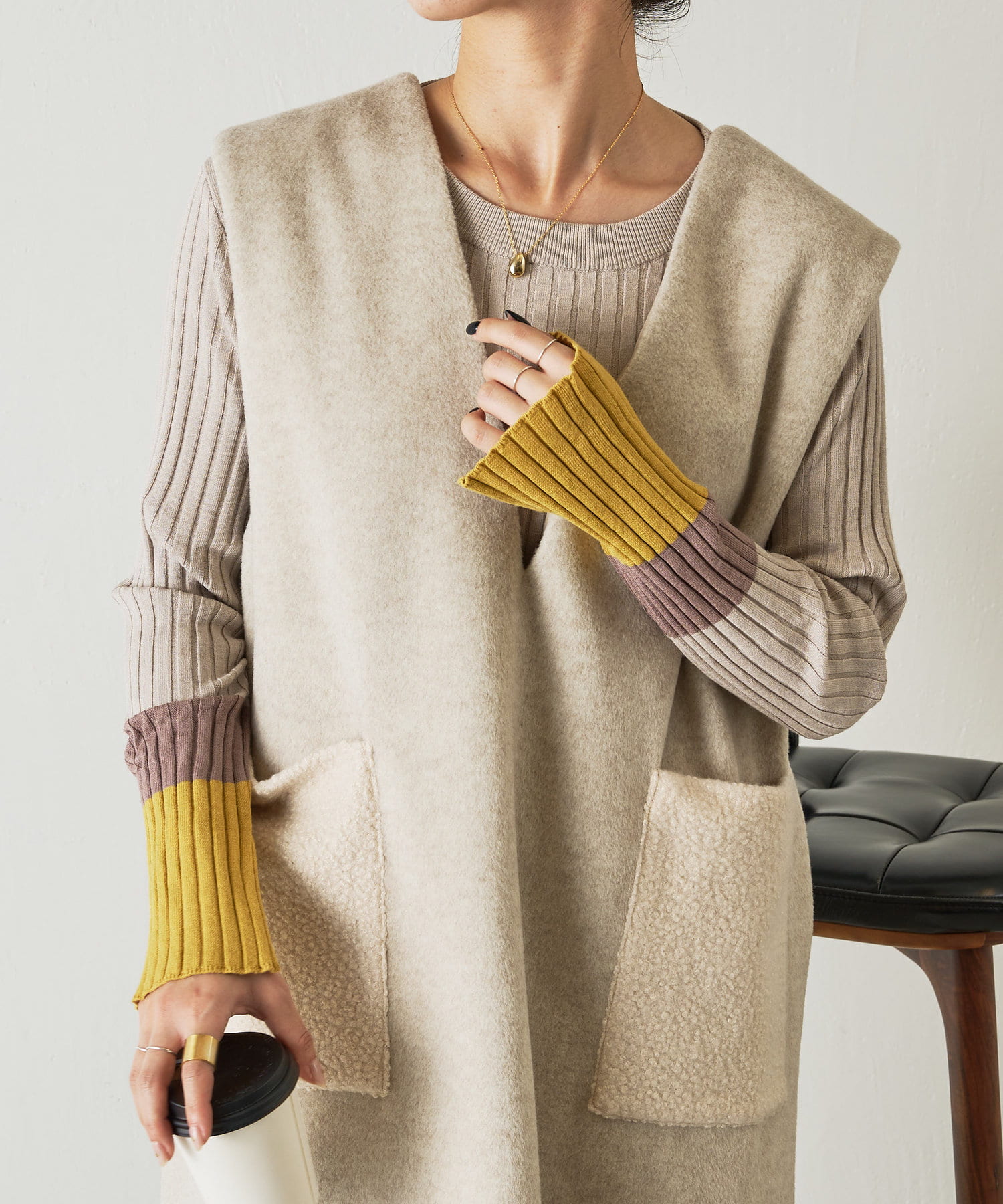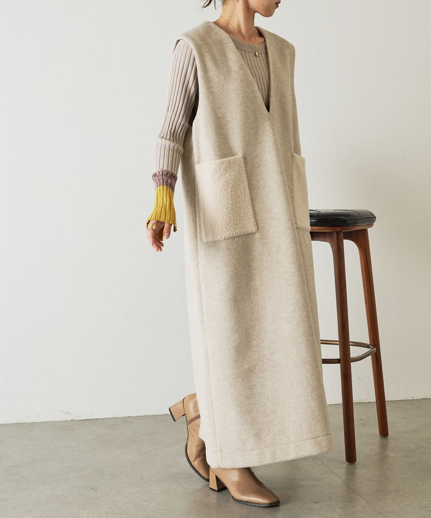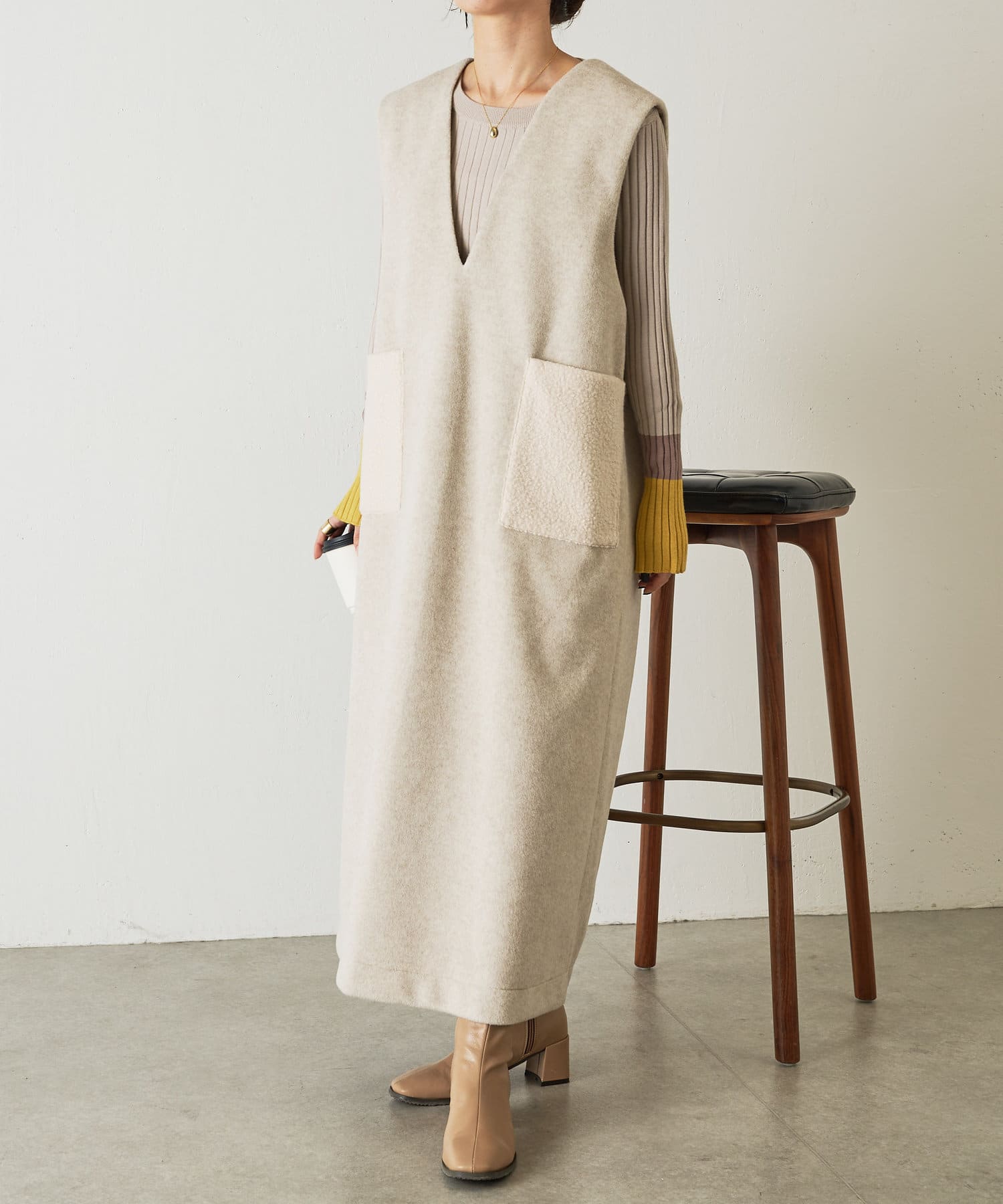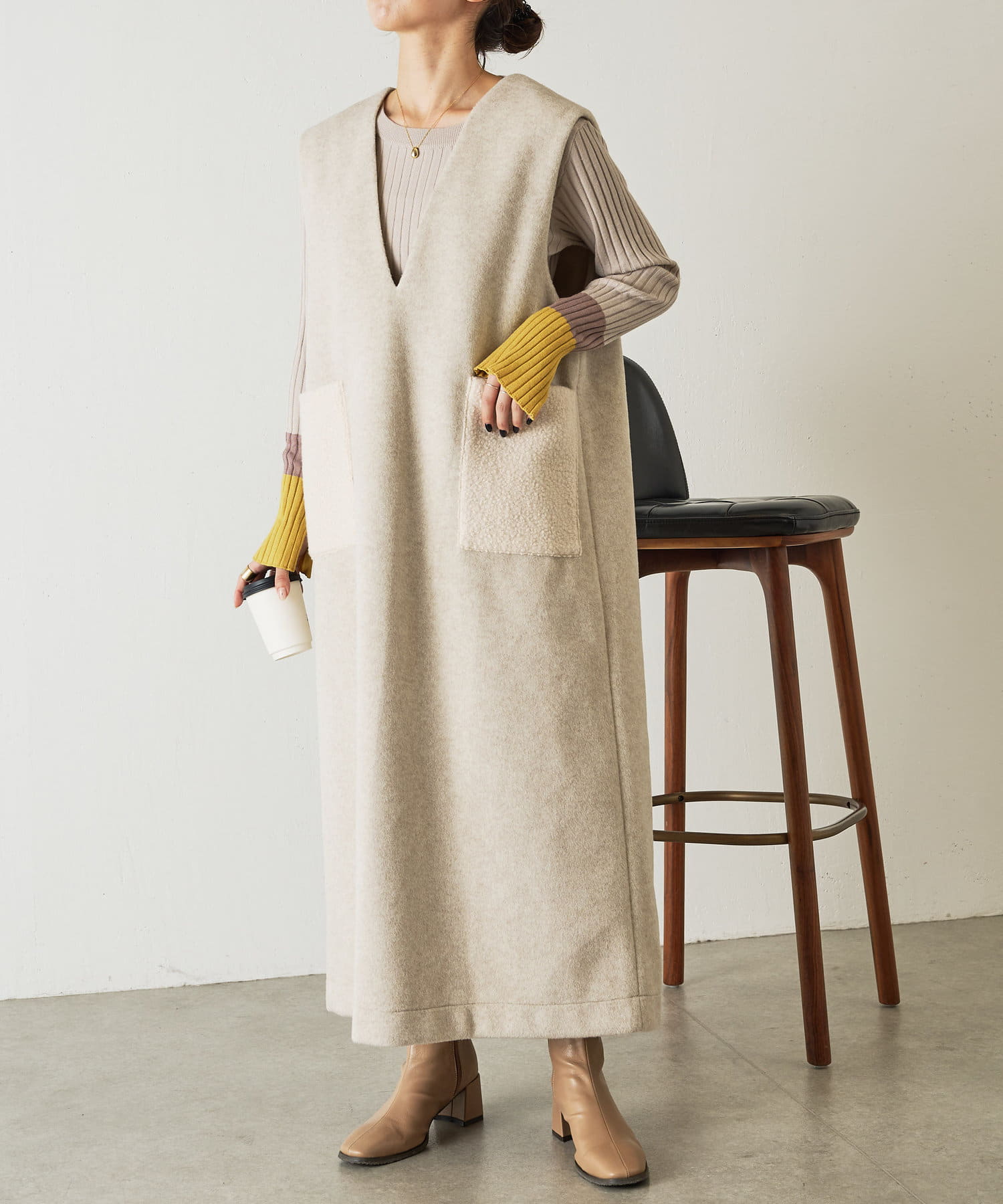 ・合わせるインナーを選ばない深Vのデザインは着るだけで華奢な印象に魅せてくれます。