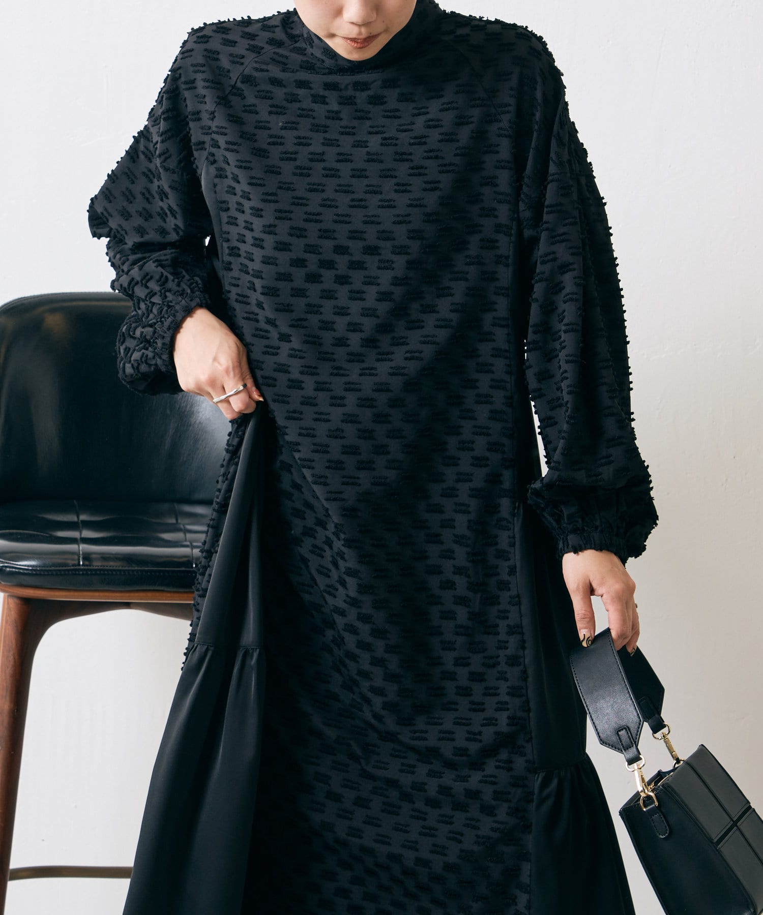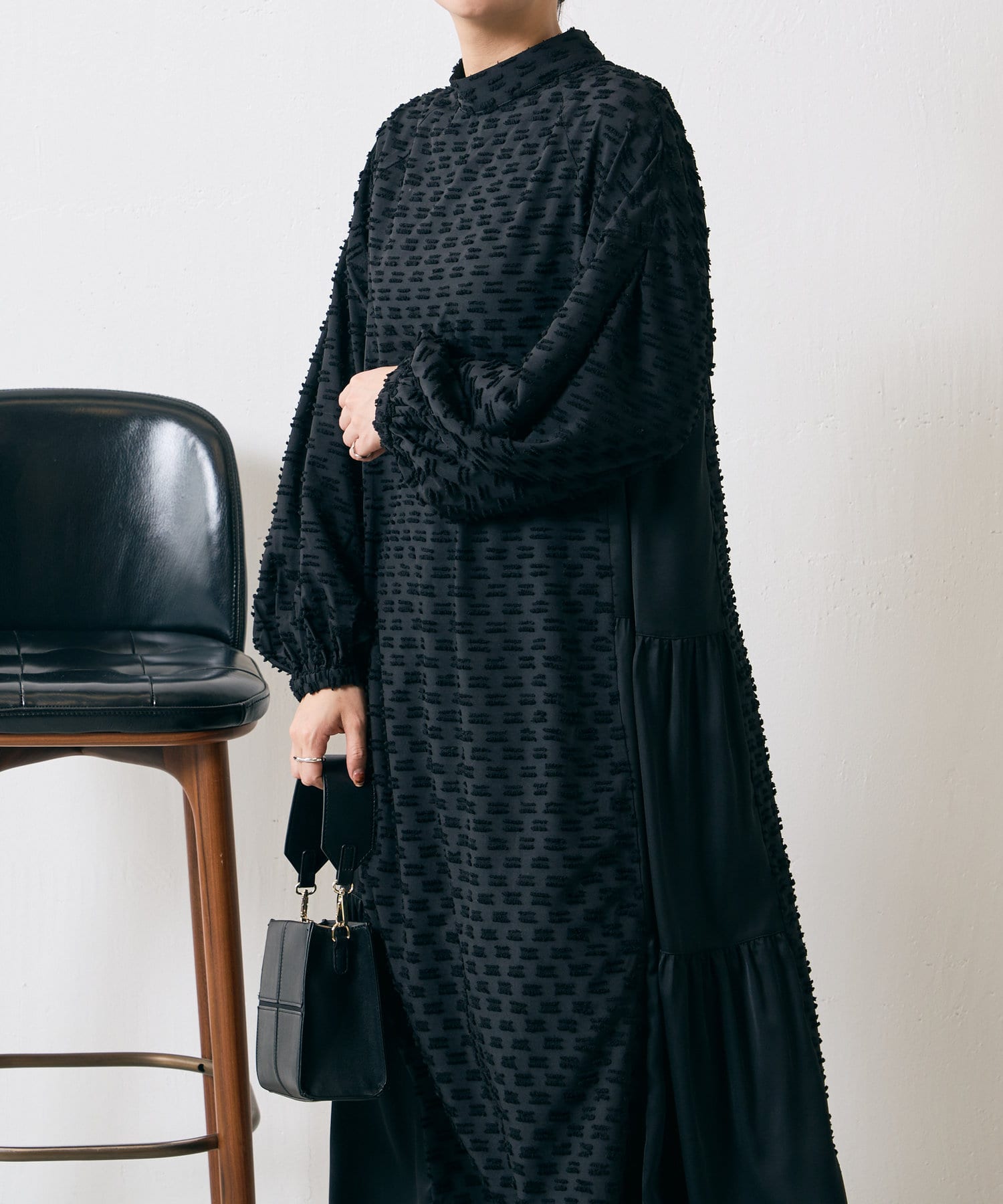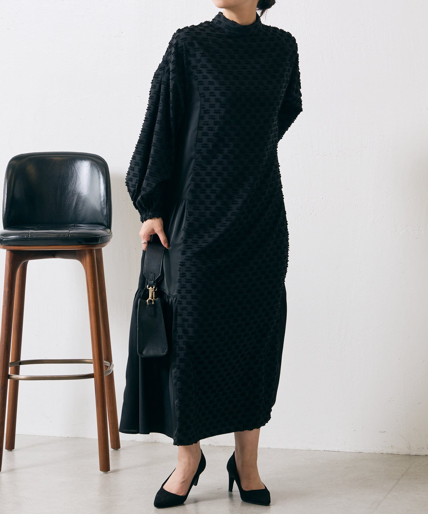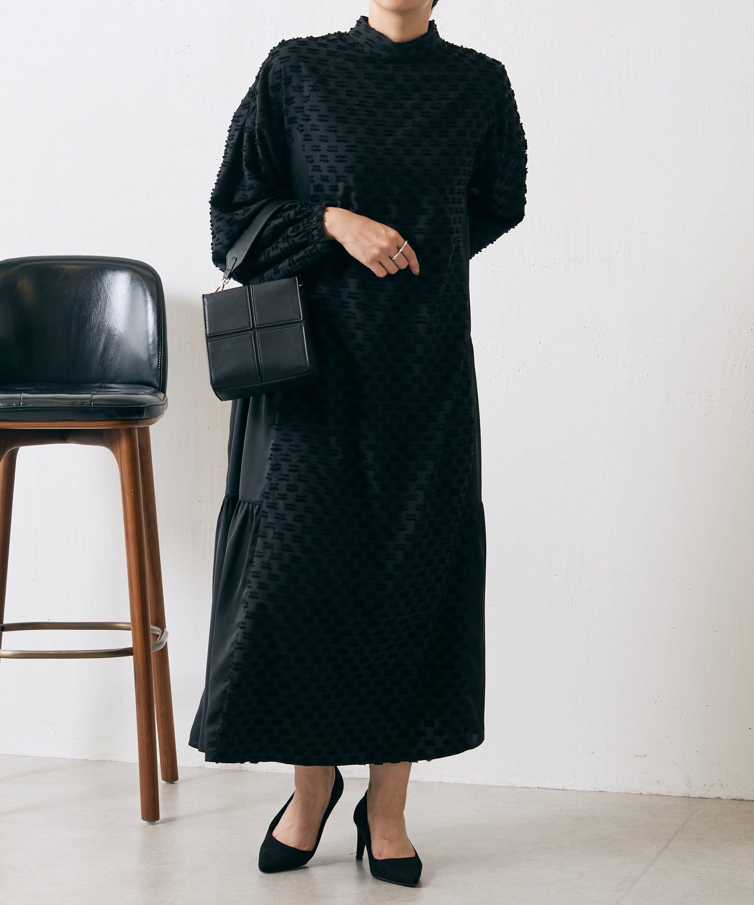 ・ジャガード生地が高級感があり華やかでオケージョンシーンにぴったりなワンピース。