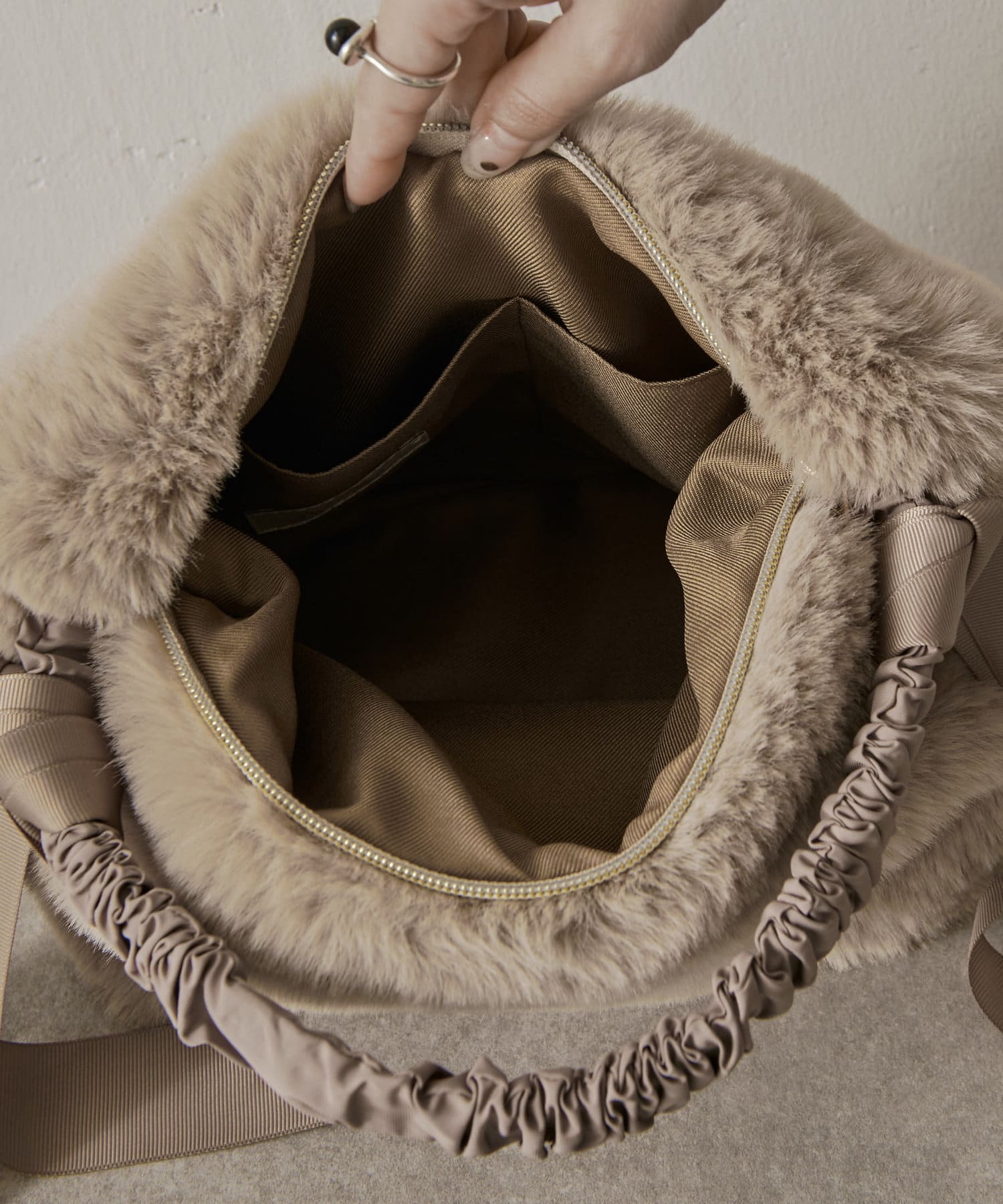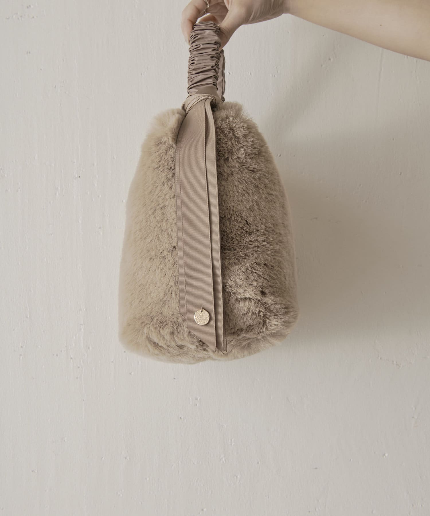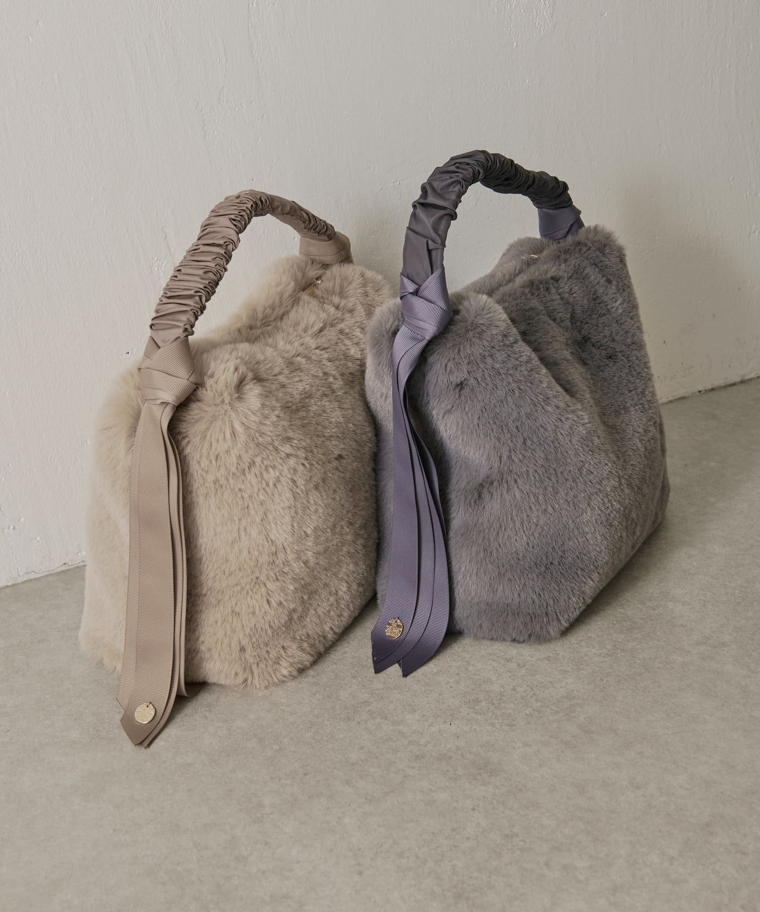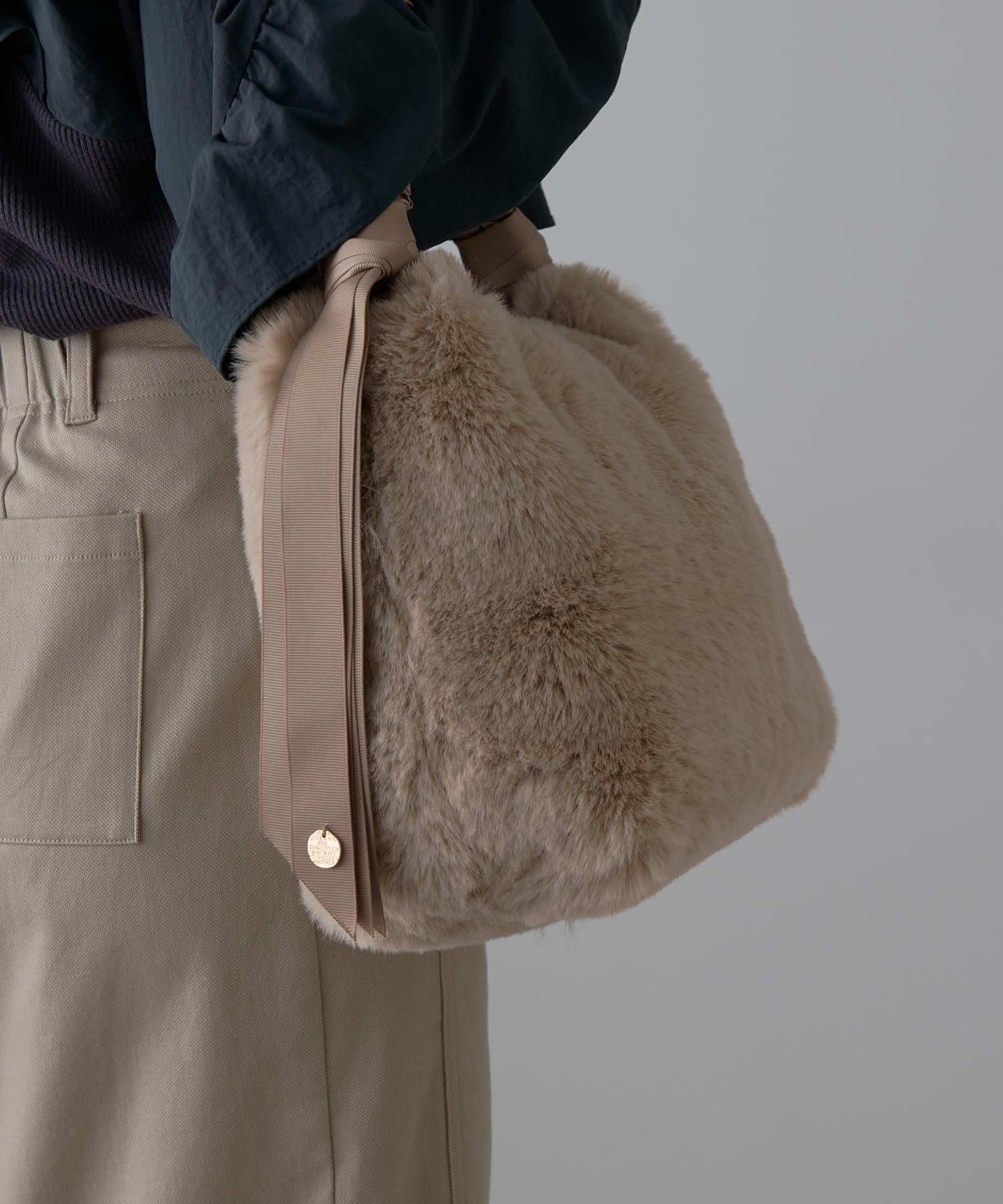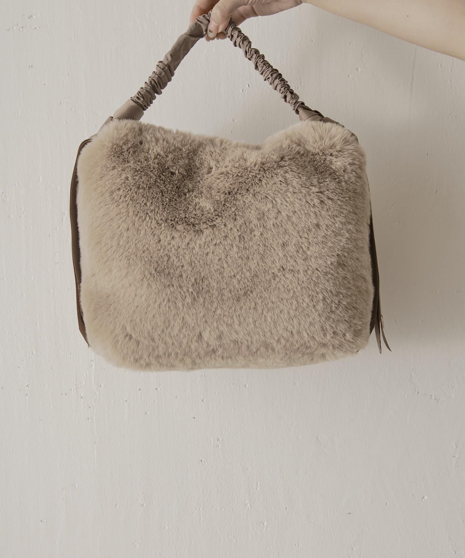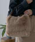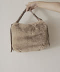 ・ファーと持ち手のグログラン生地の異素材感がこなれた印象に見せてくれるハンドバッグ。
