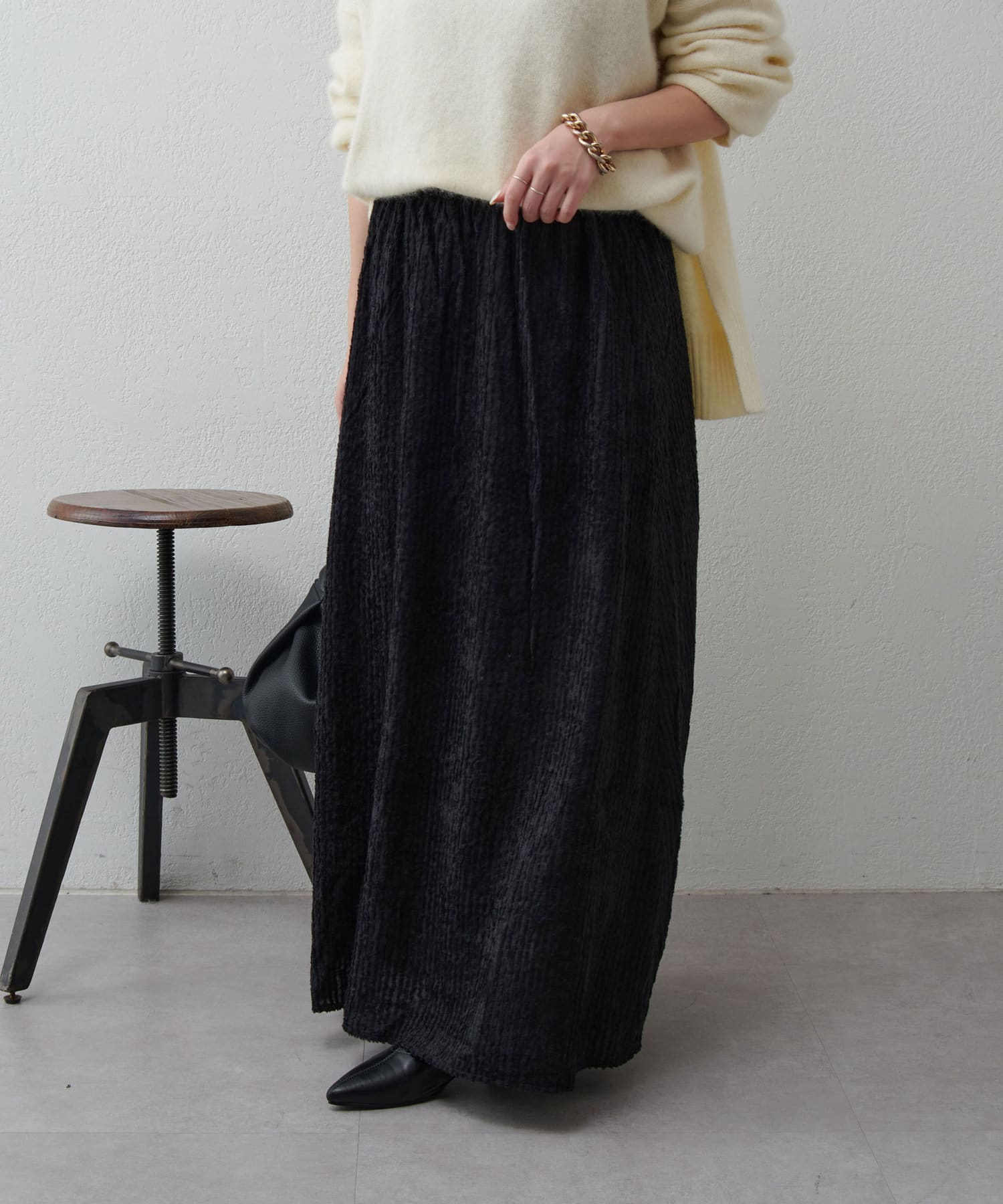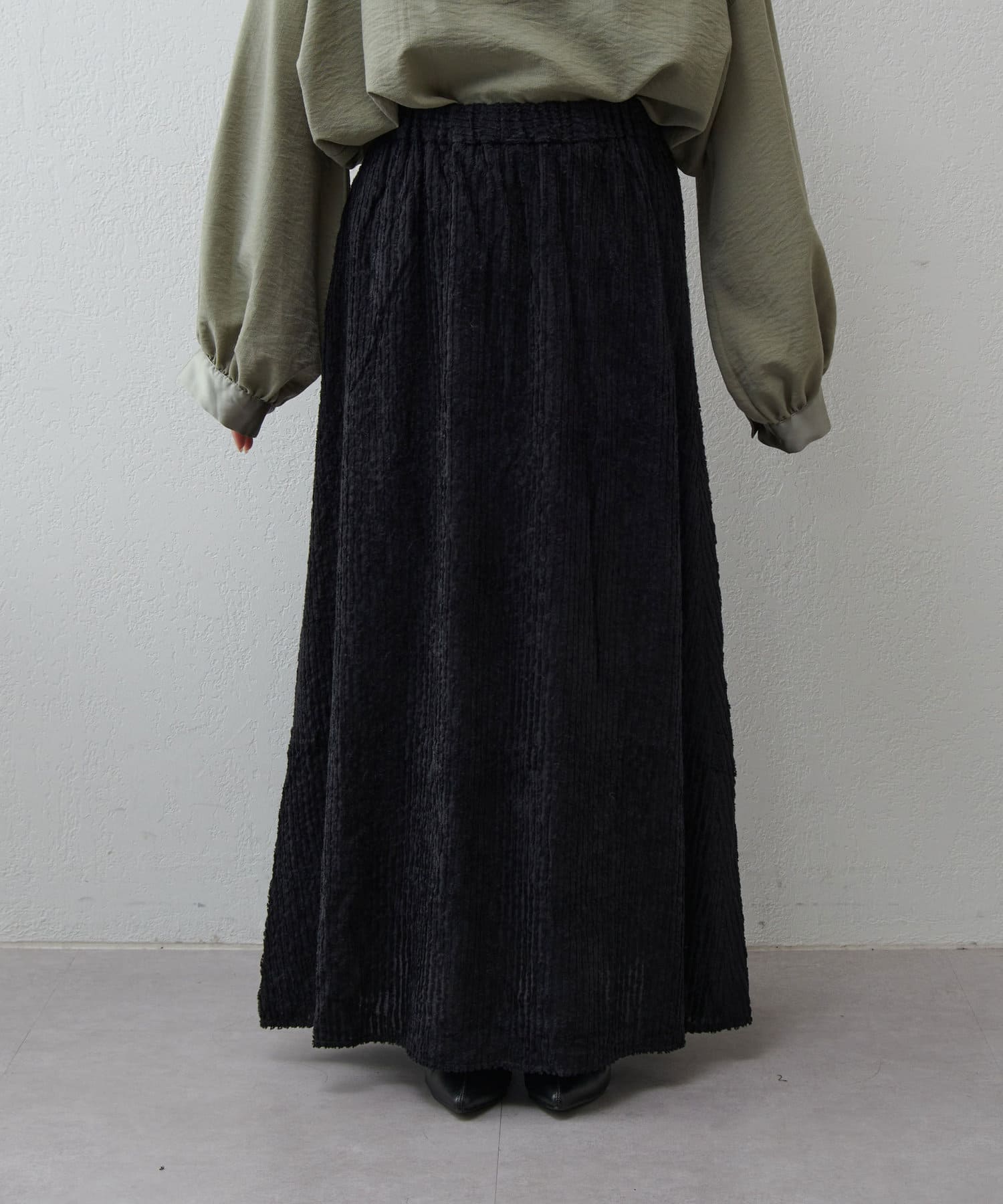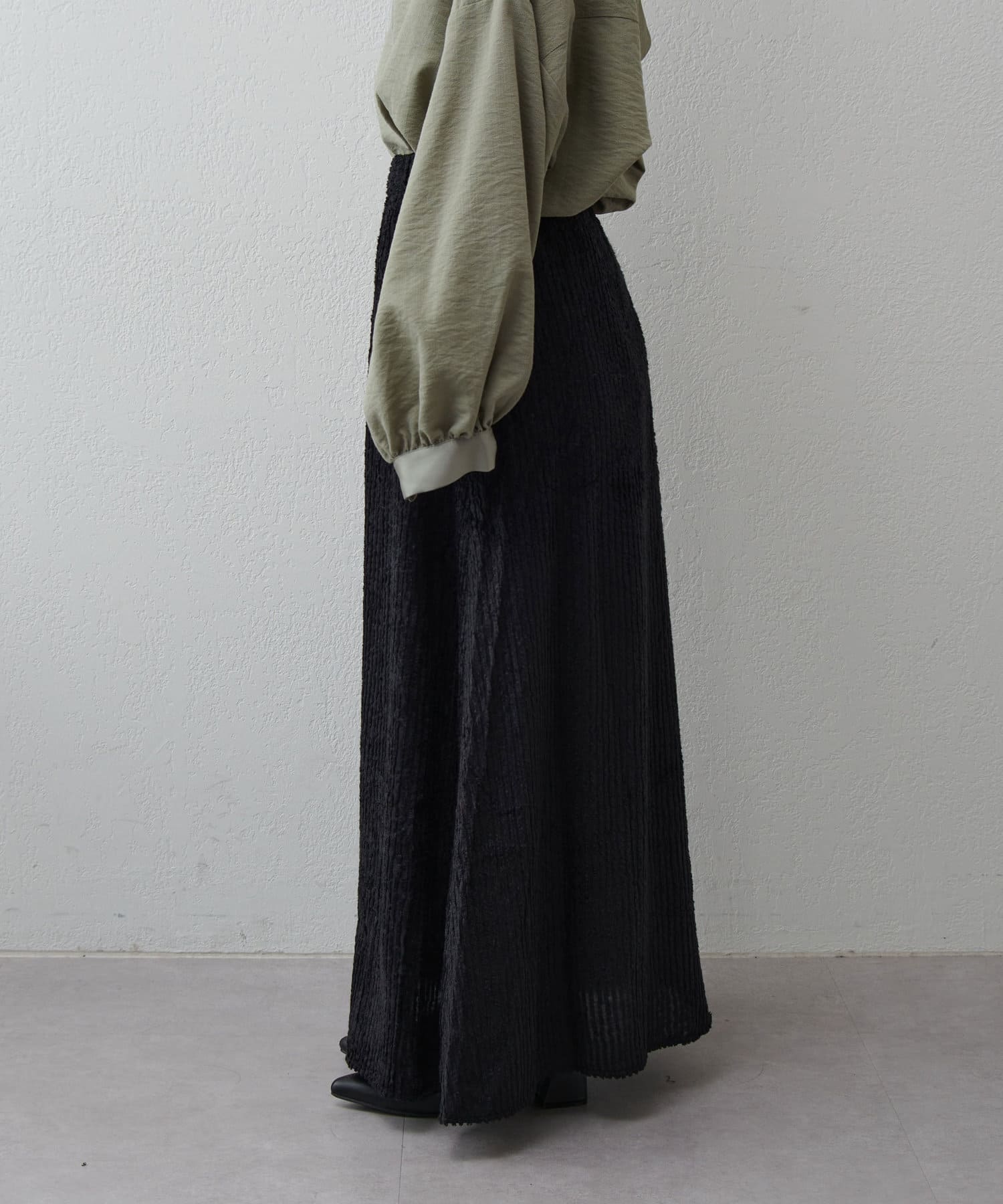 ・ジャガード生地をたっぷりと使用しフレアシルエットに仕上げたロングスカート。