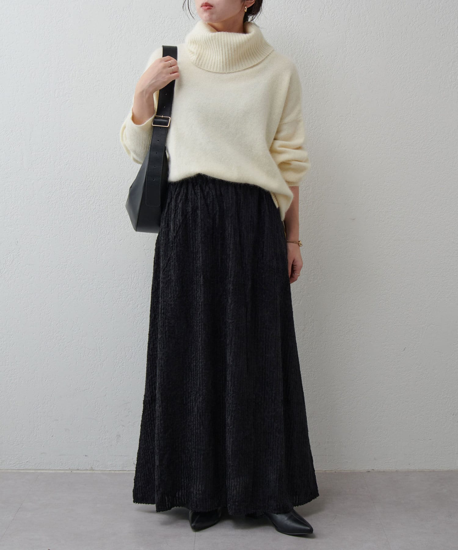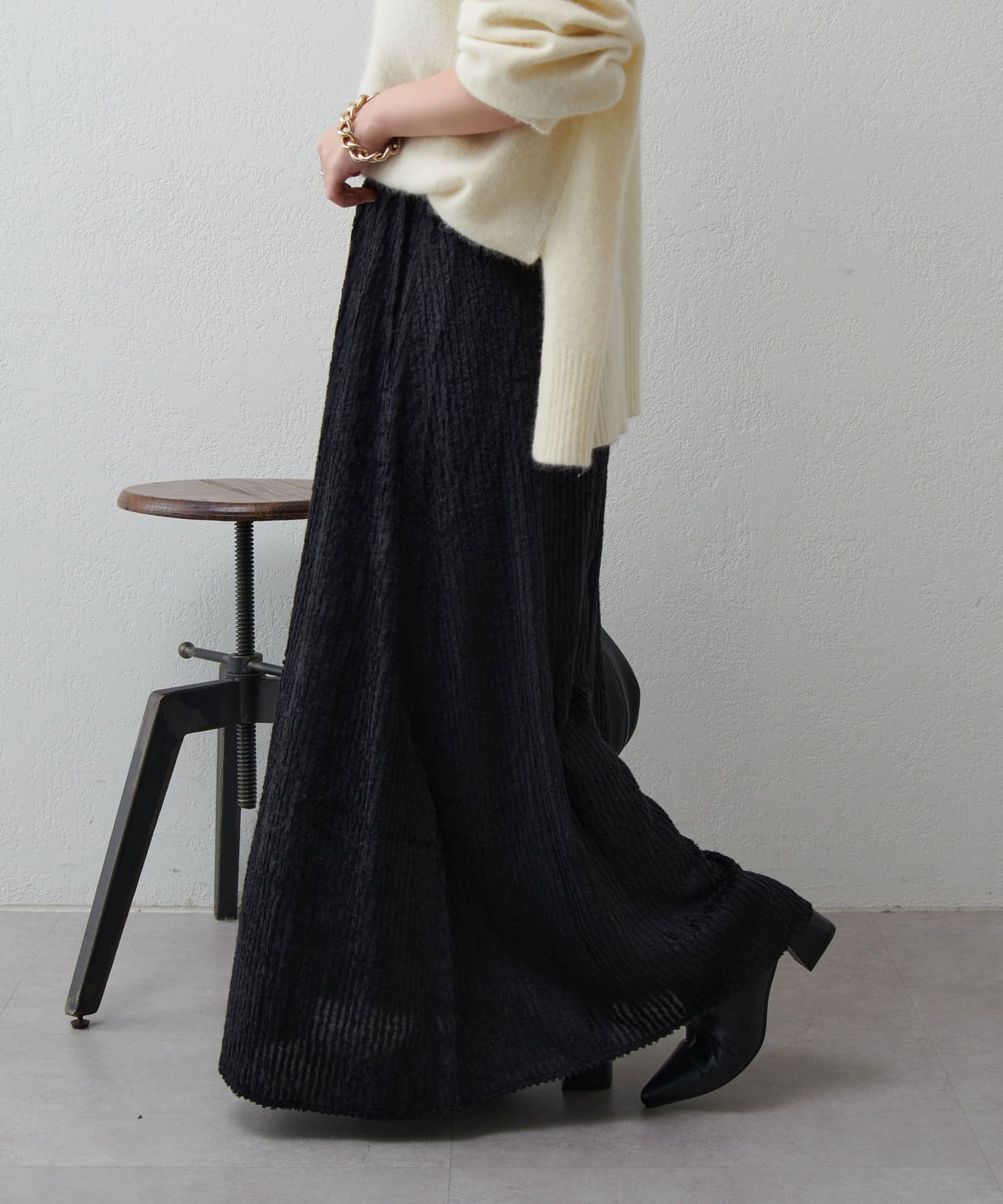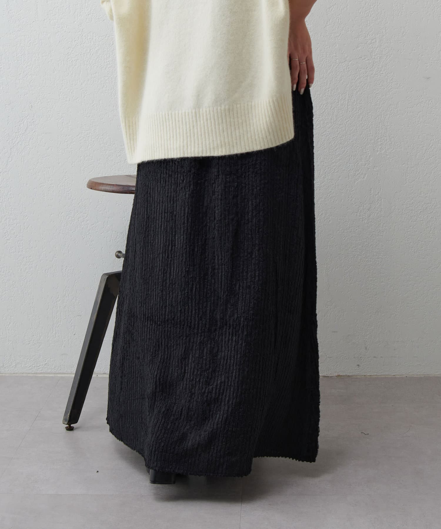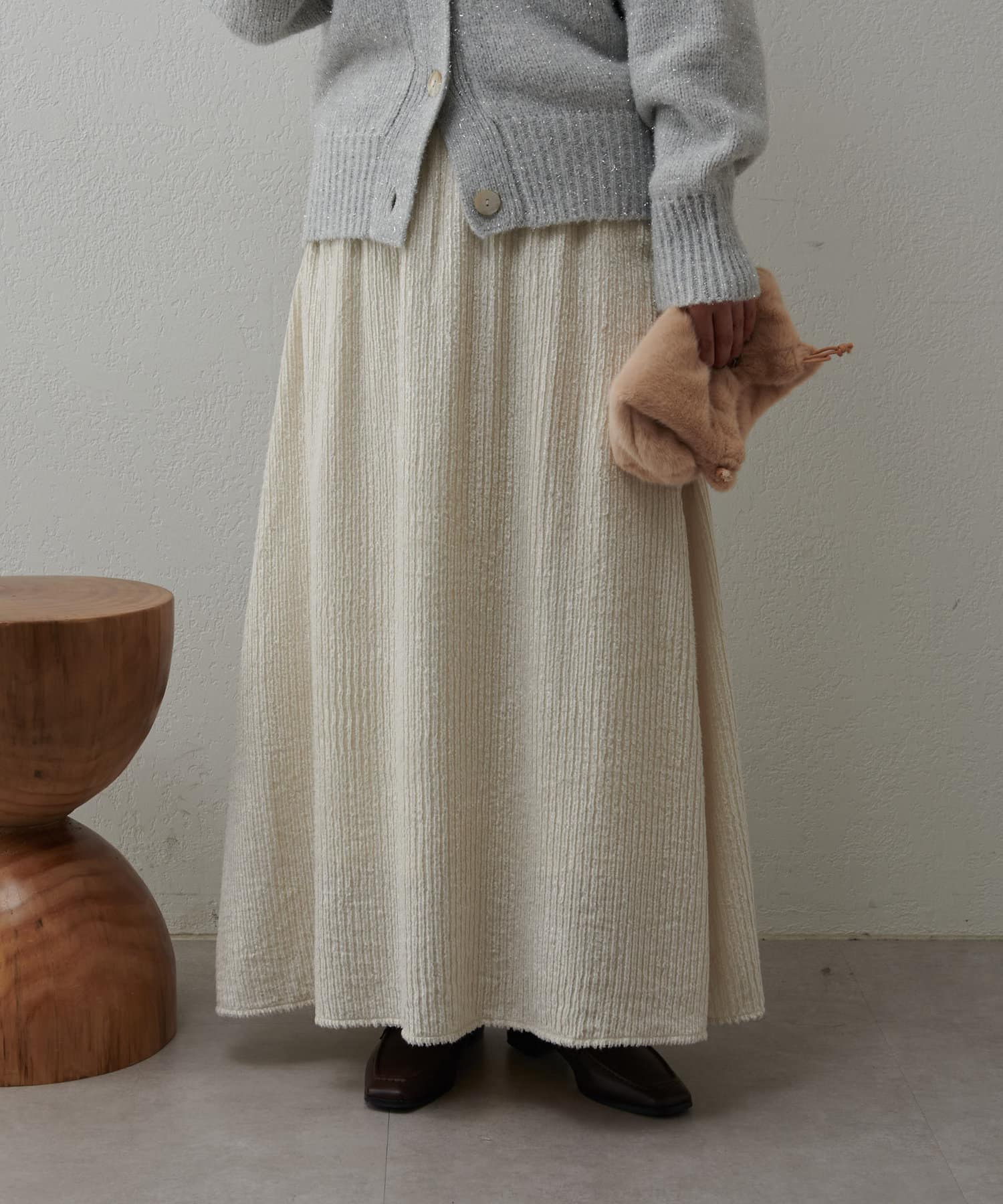 ・ジャガード生地をたっぷりと使用しフレアシルエットに仕上げたロングスカート。