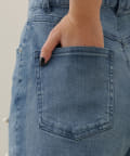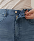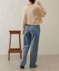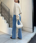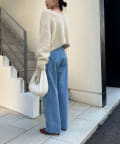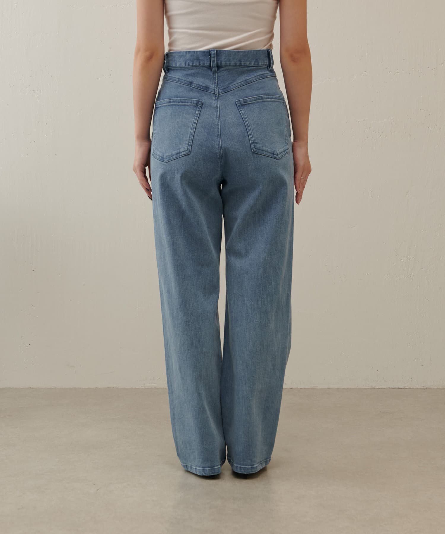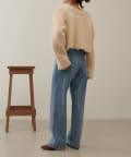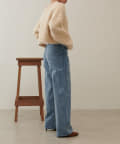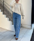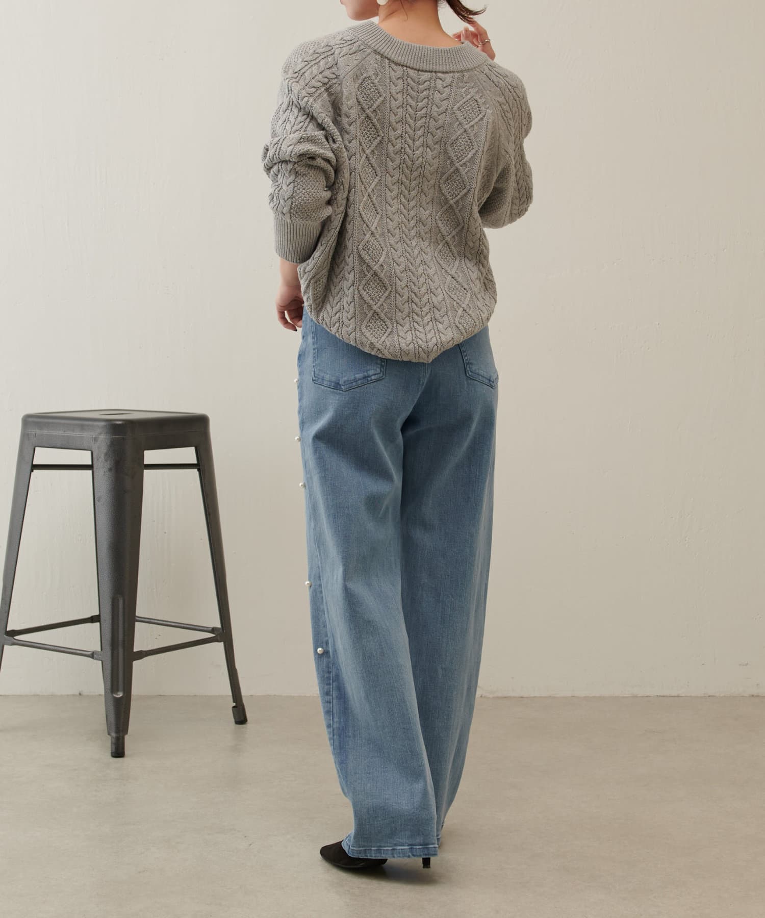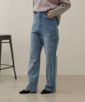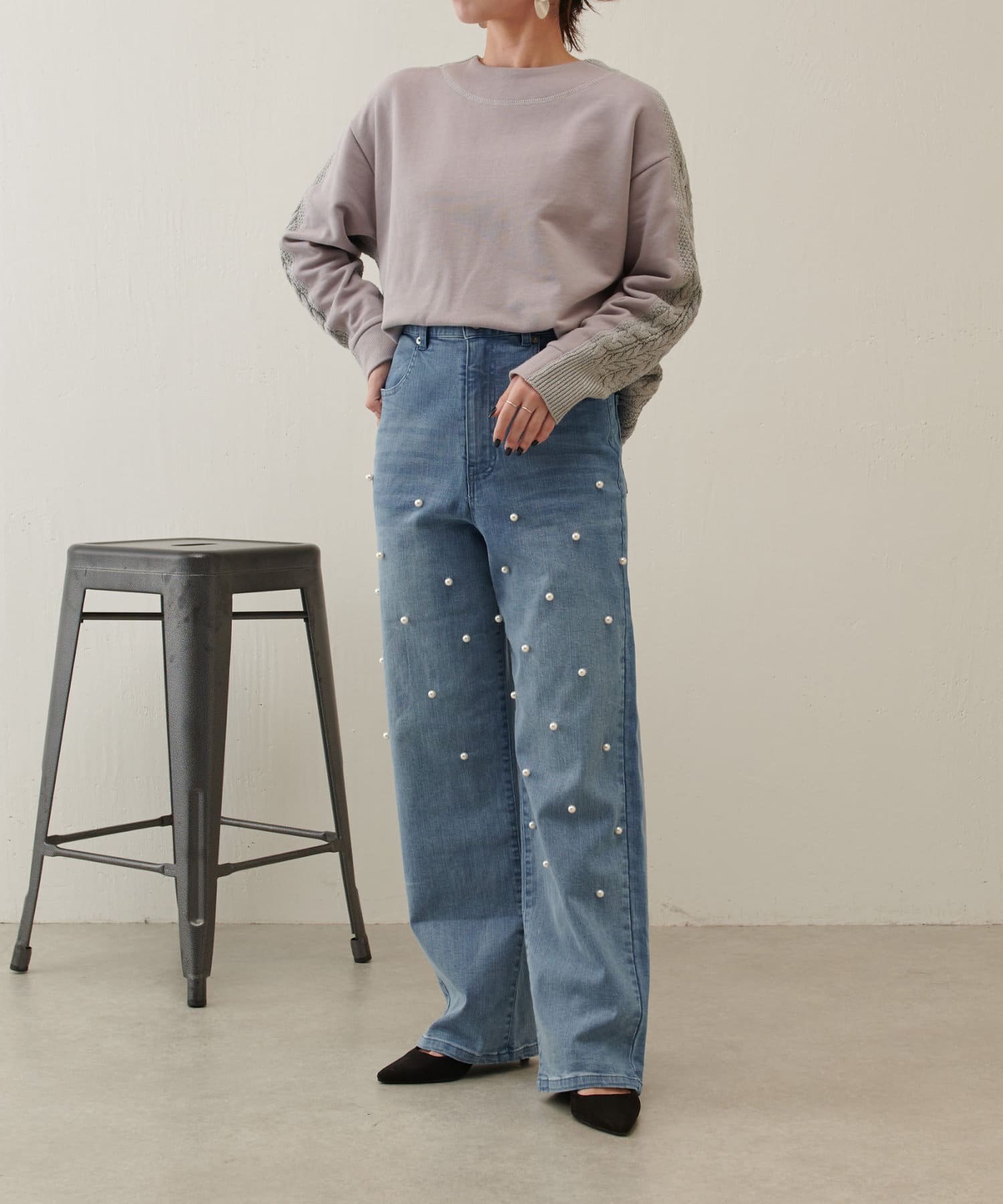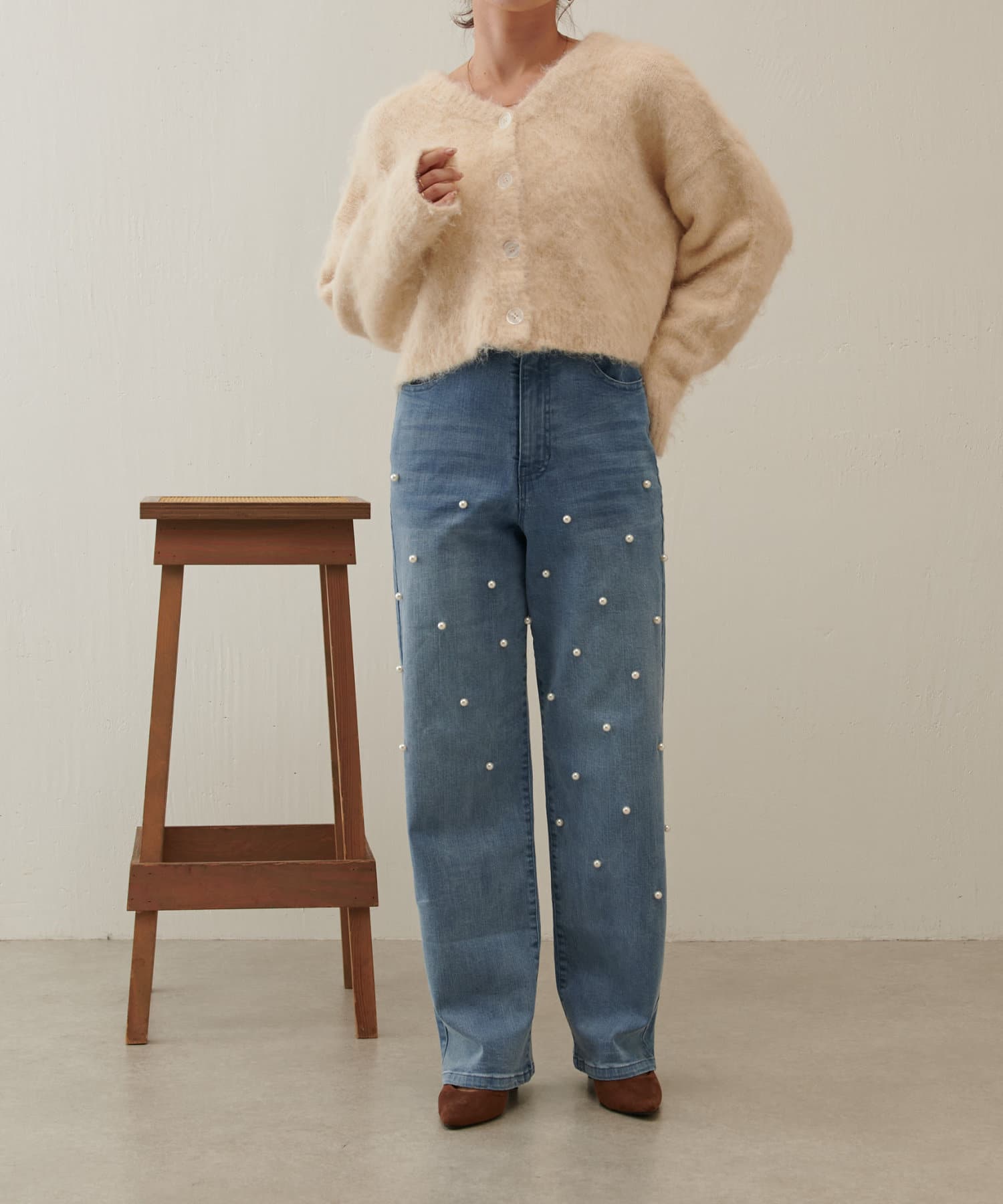 ・デニム×パールの程よい甘さがカジュアル過ぎないデニムパンツ。