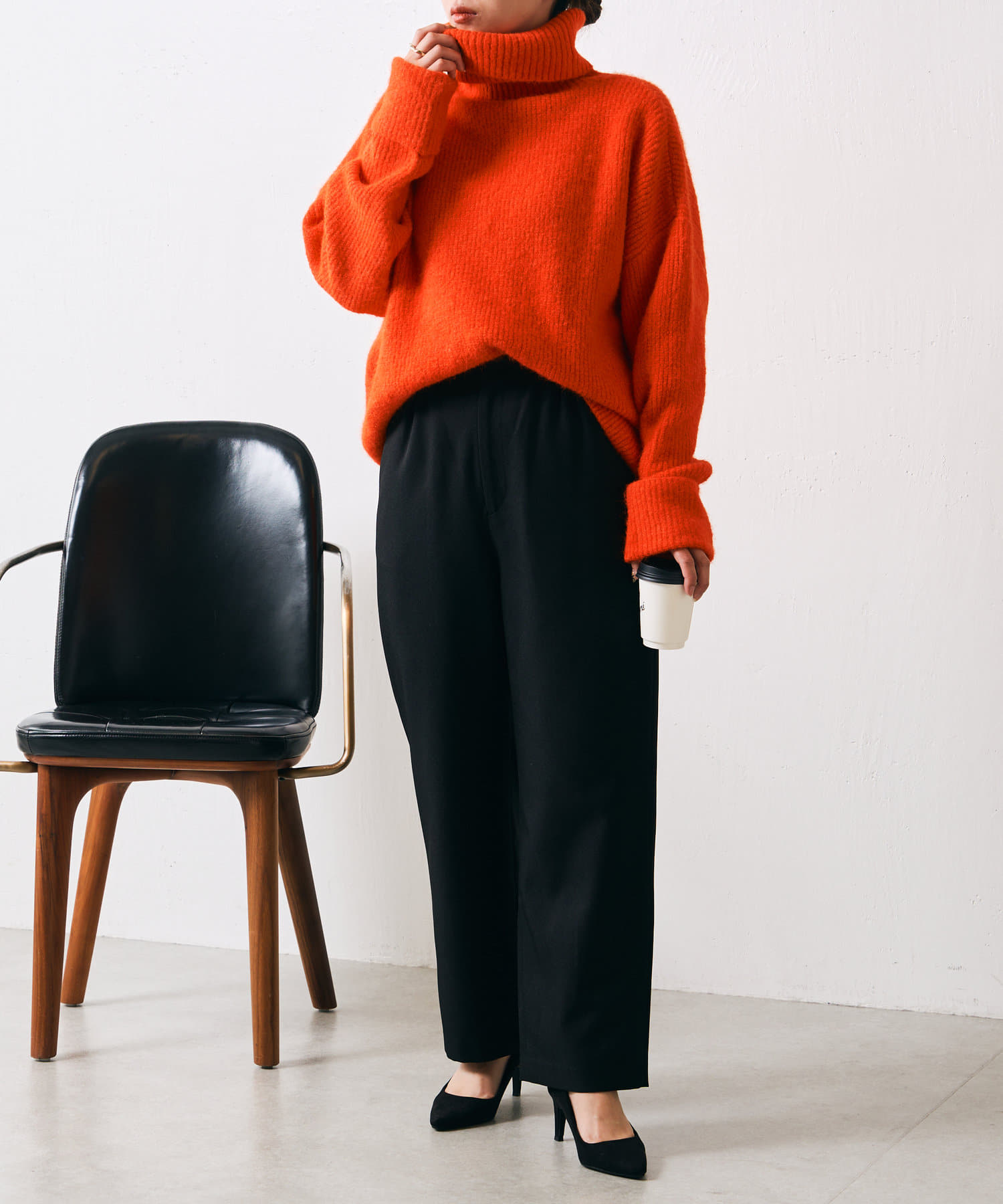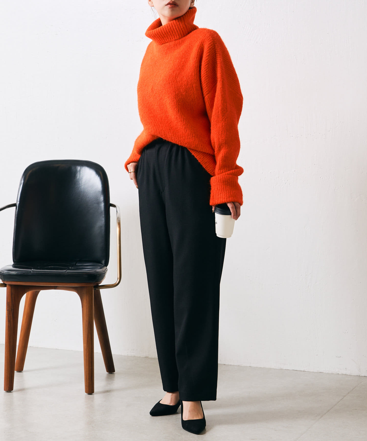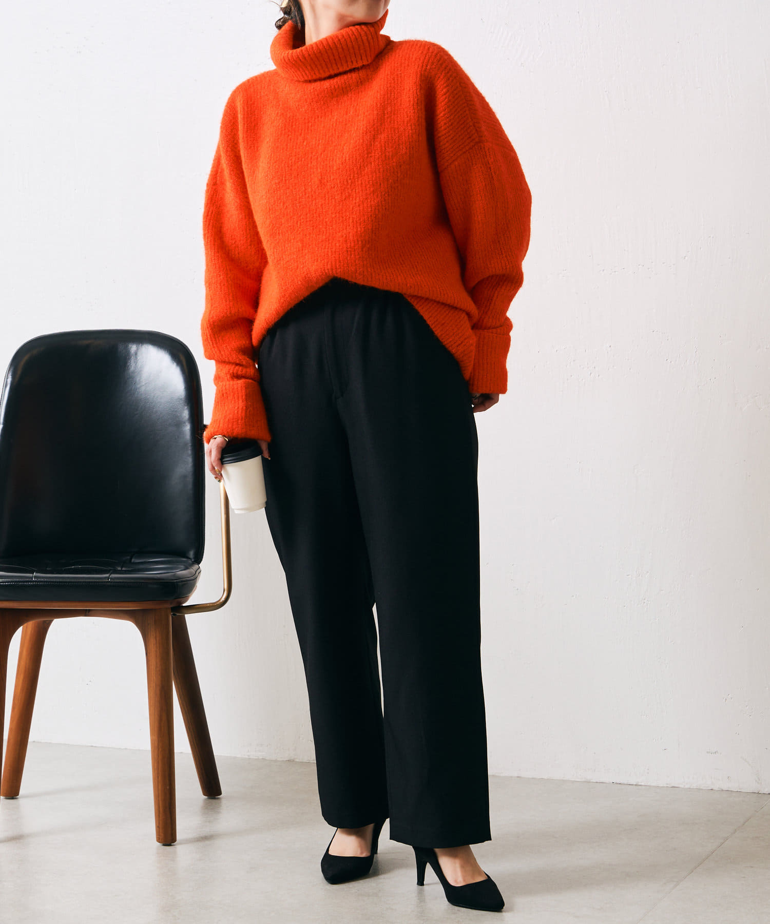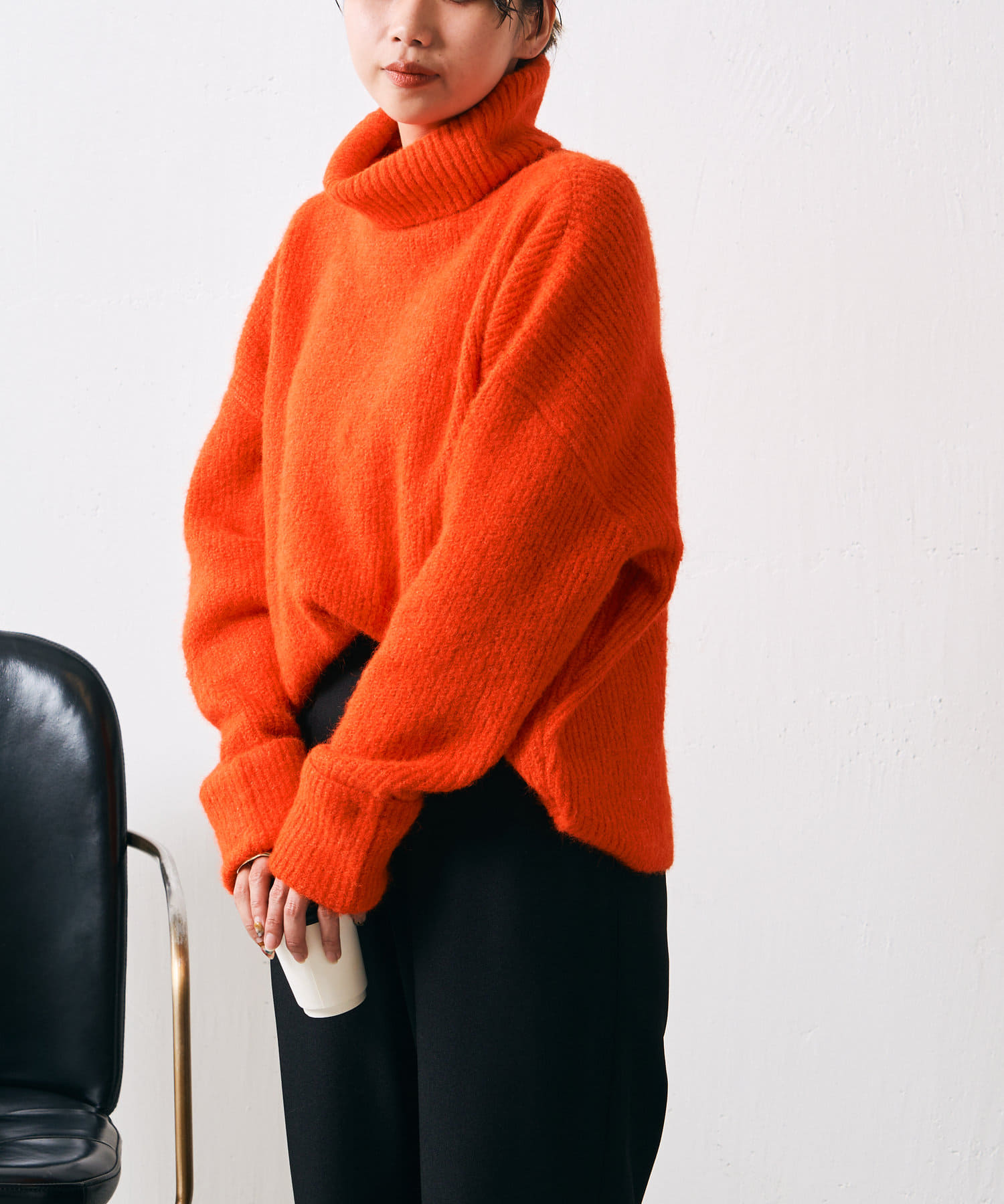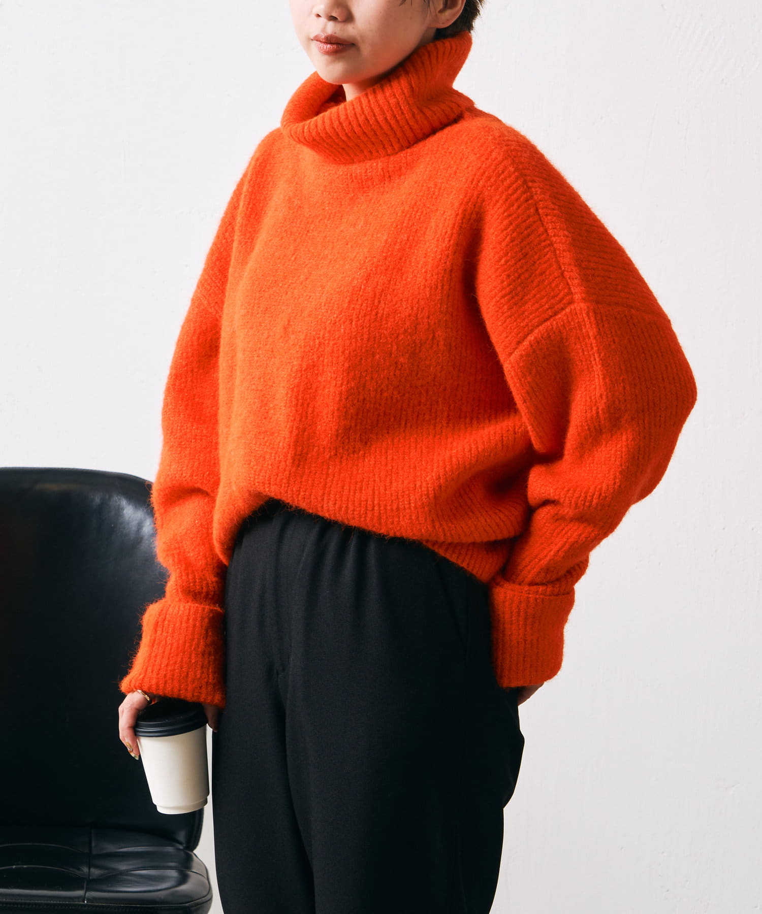 ・ブラックとベージュのベーシックカラーと、冬コーデの差し色に使えるオレンジの三色展開。
