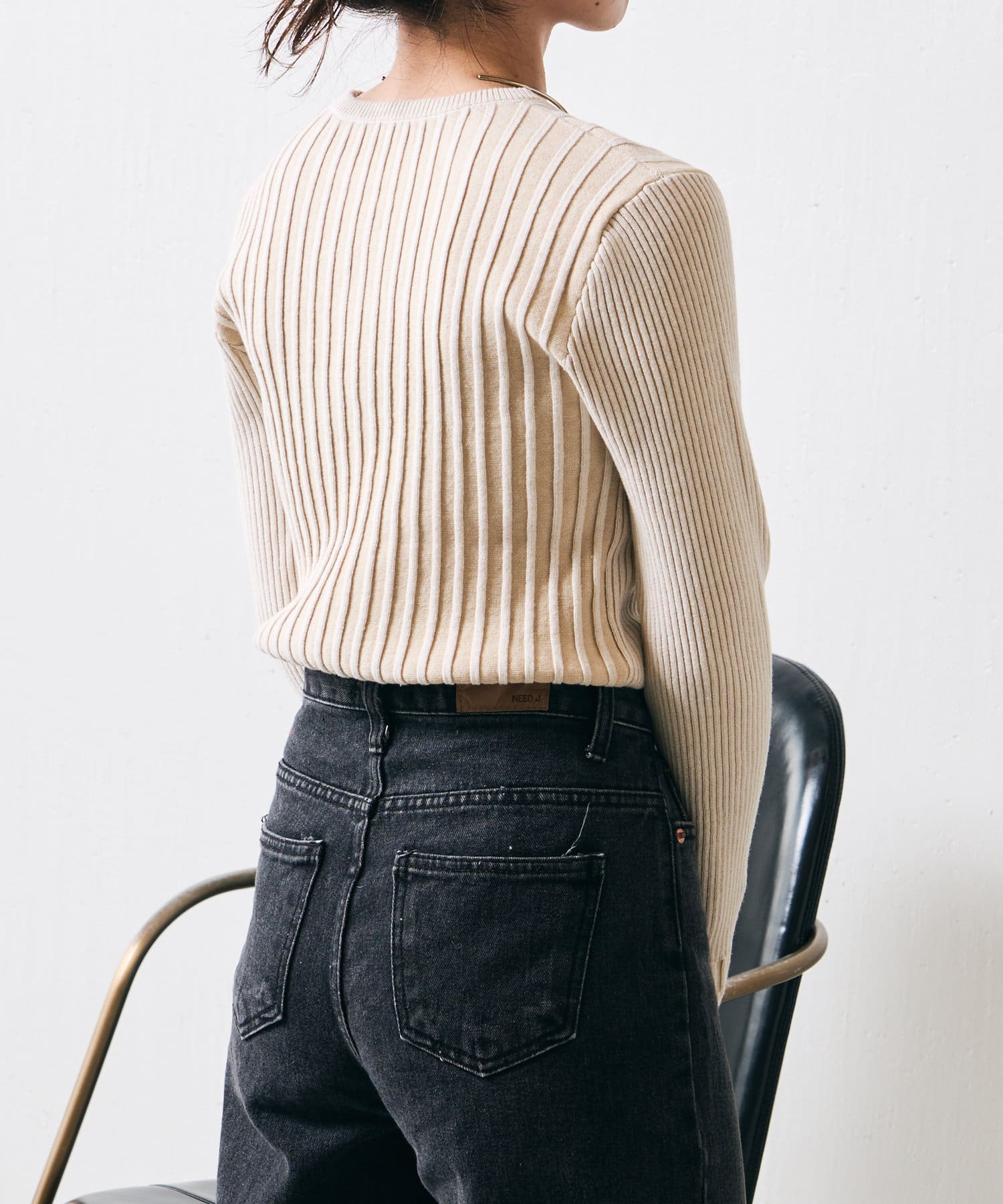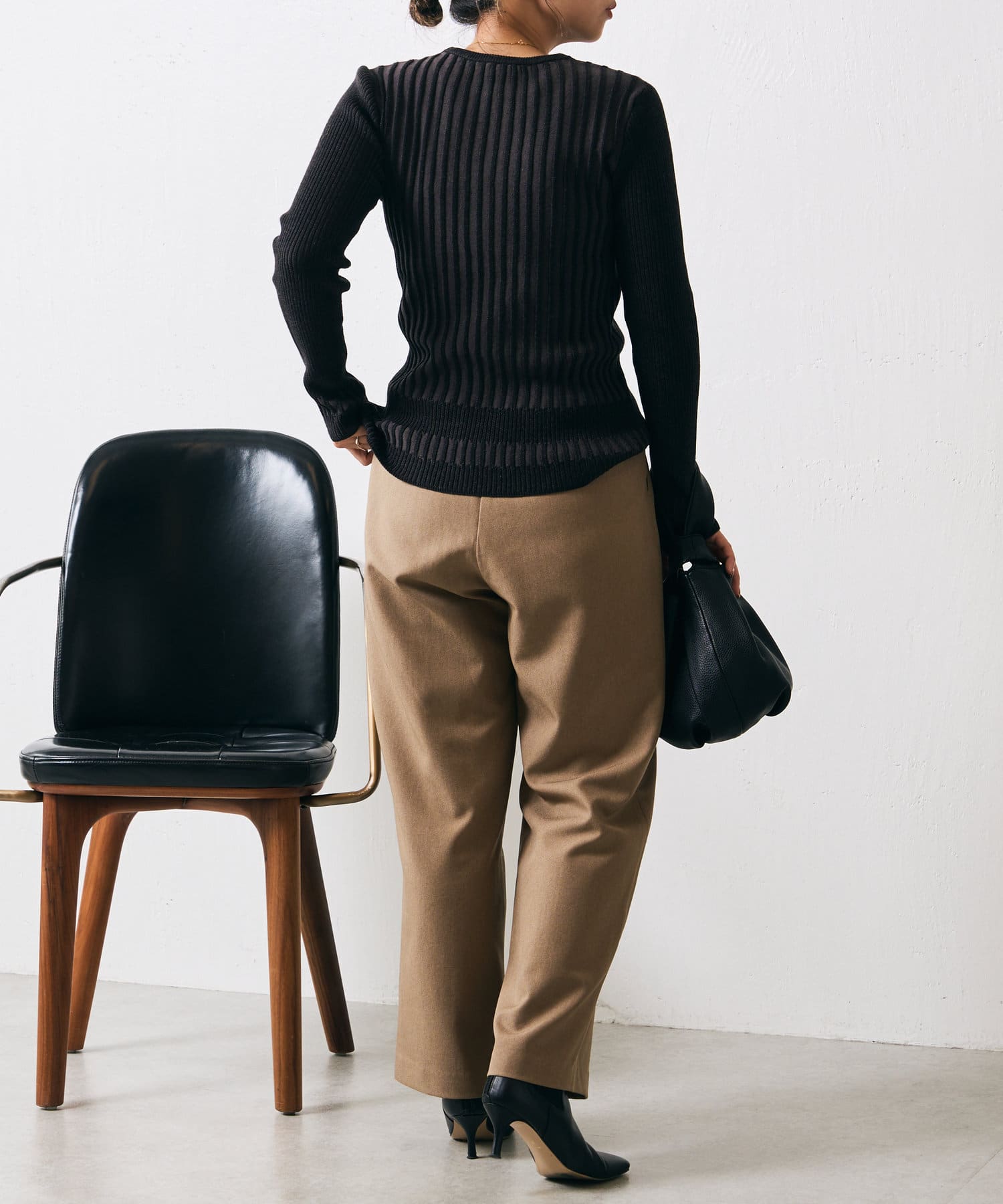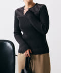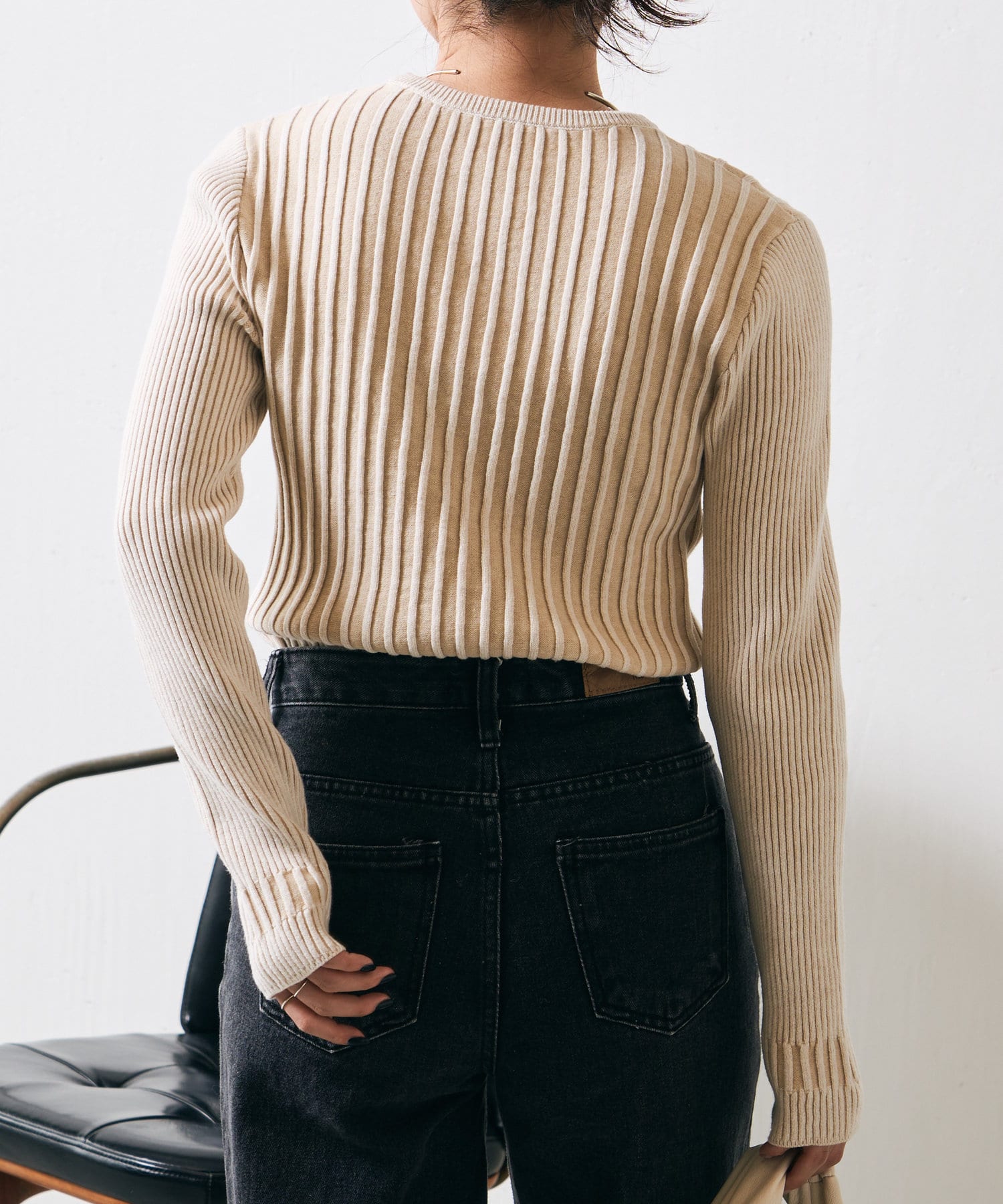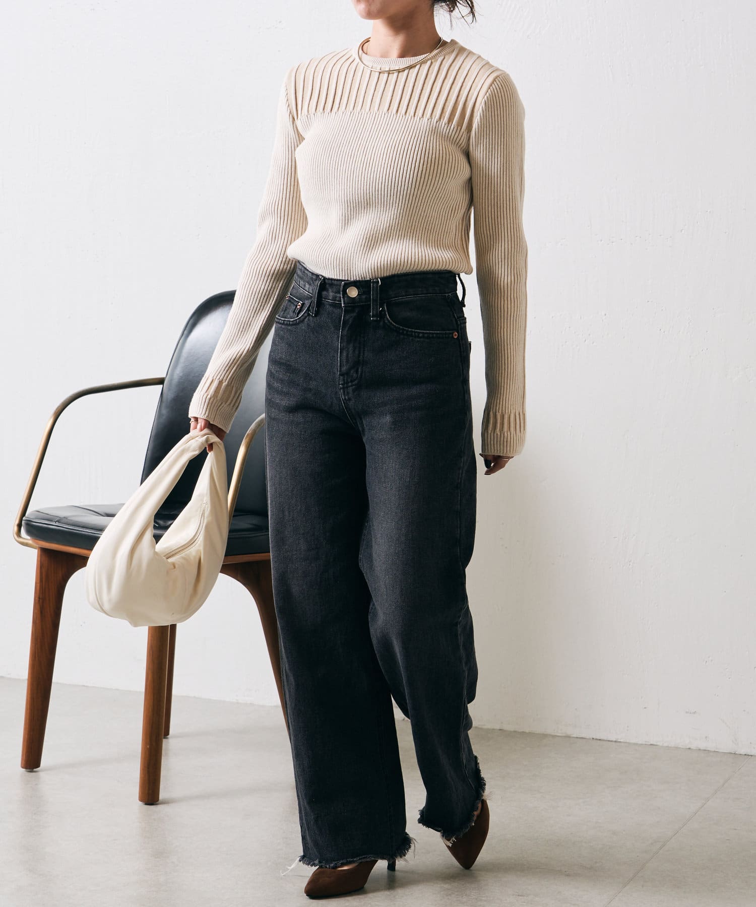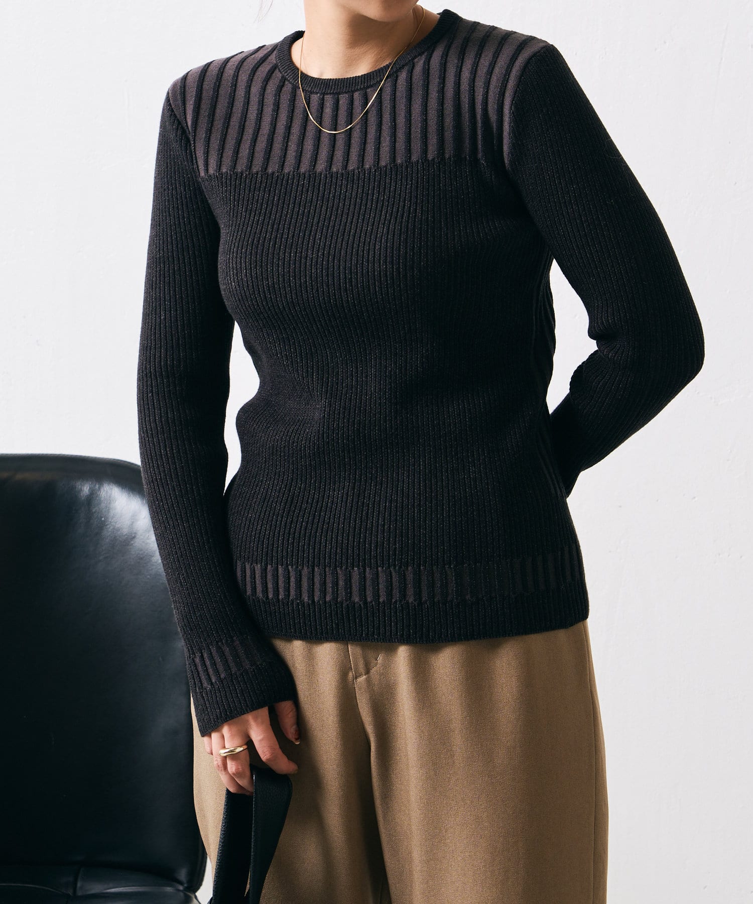 ・胸元から下にかけて細めのリブがビスチェを重ねているかのように魅せてくれます。