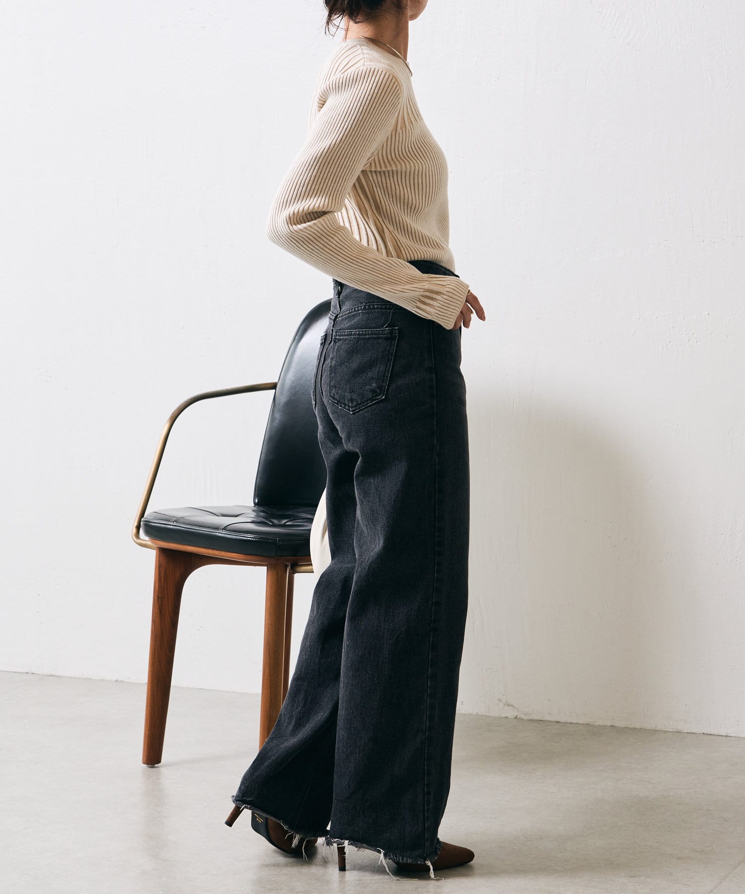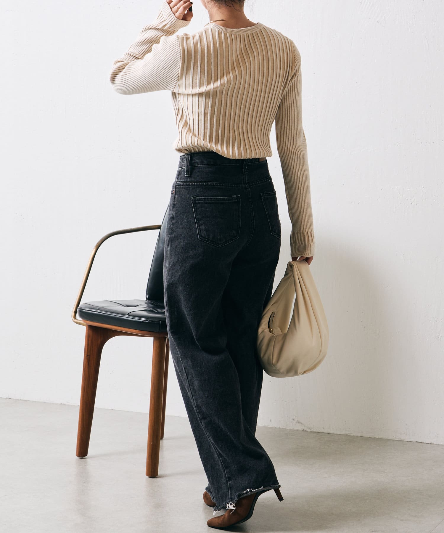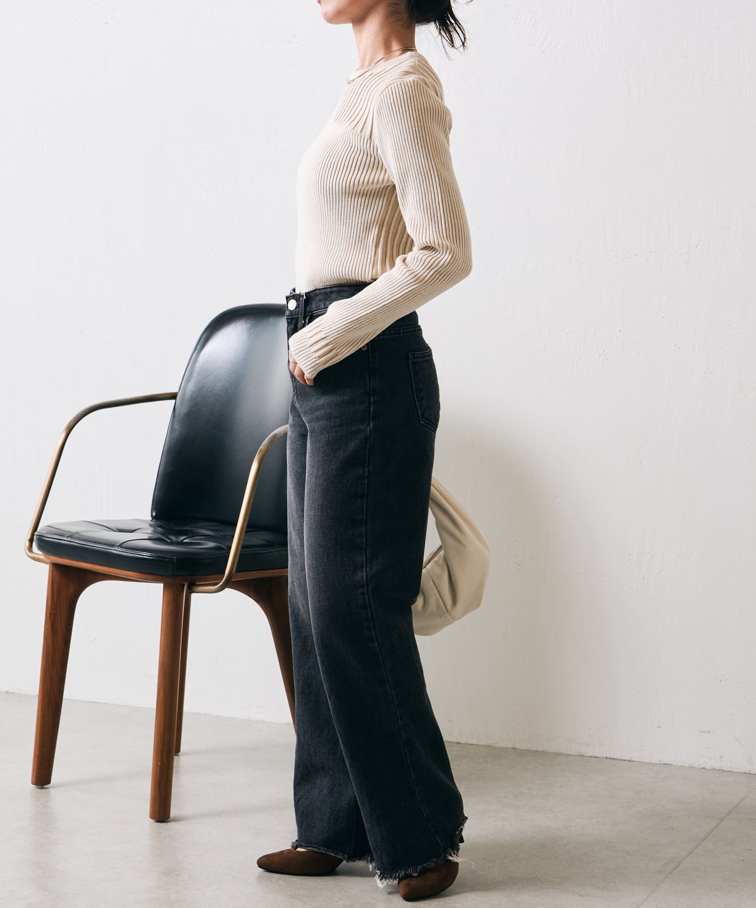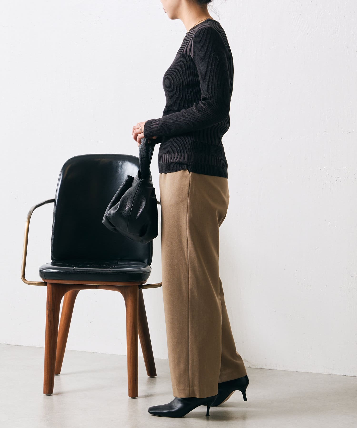・胸元から下にかけて細めのリブがビスチェを重ねているかのように魅せてくれます。
