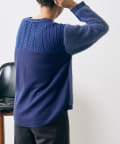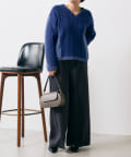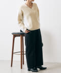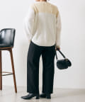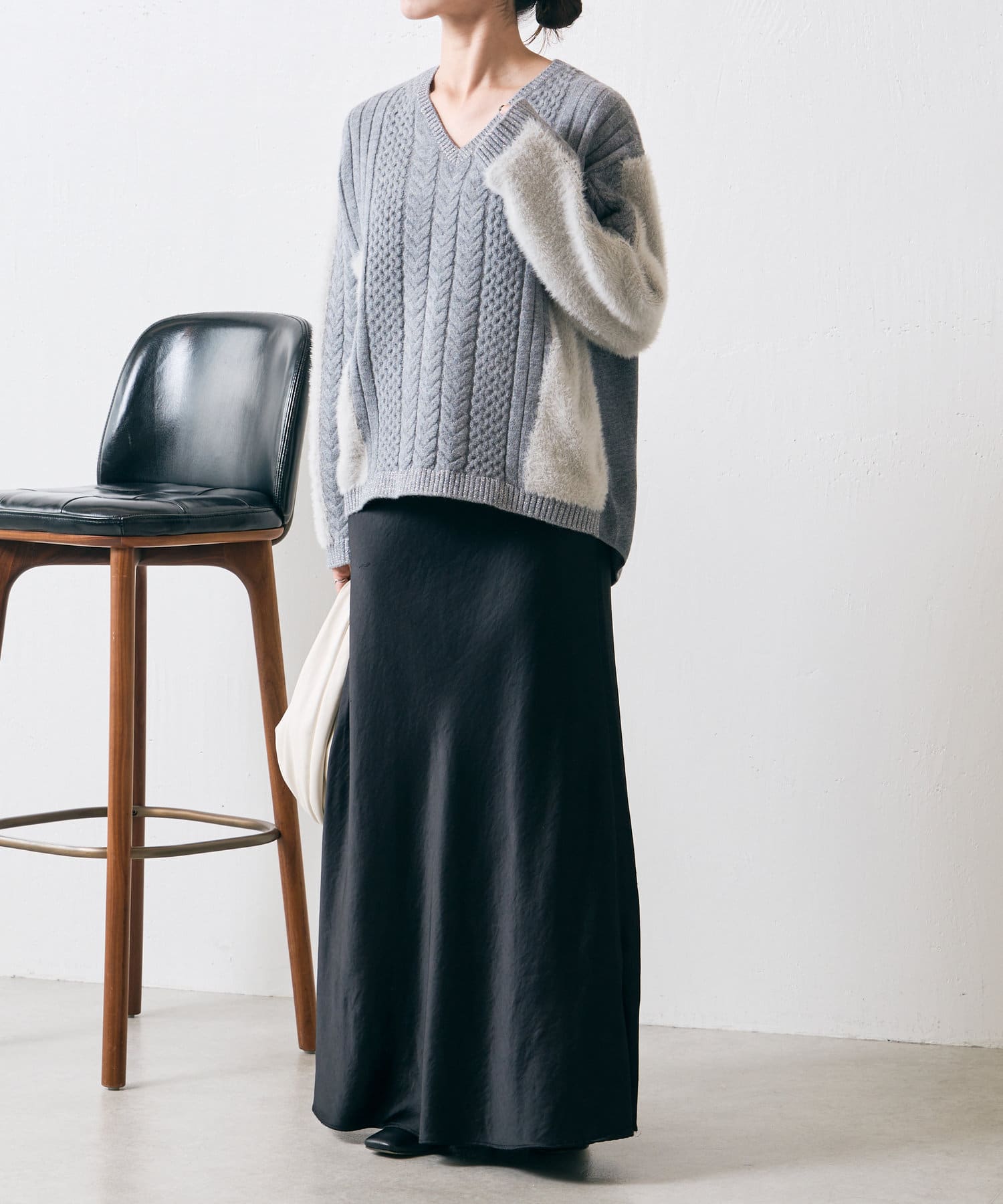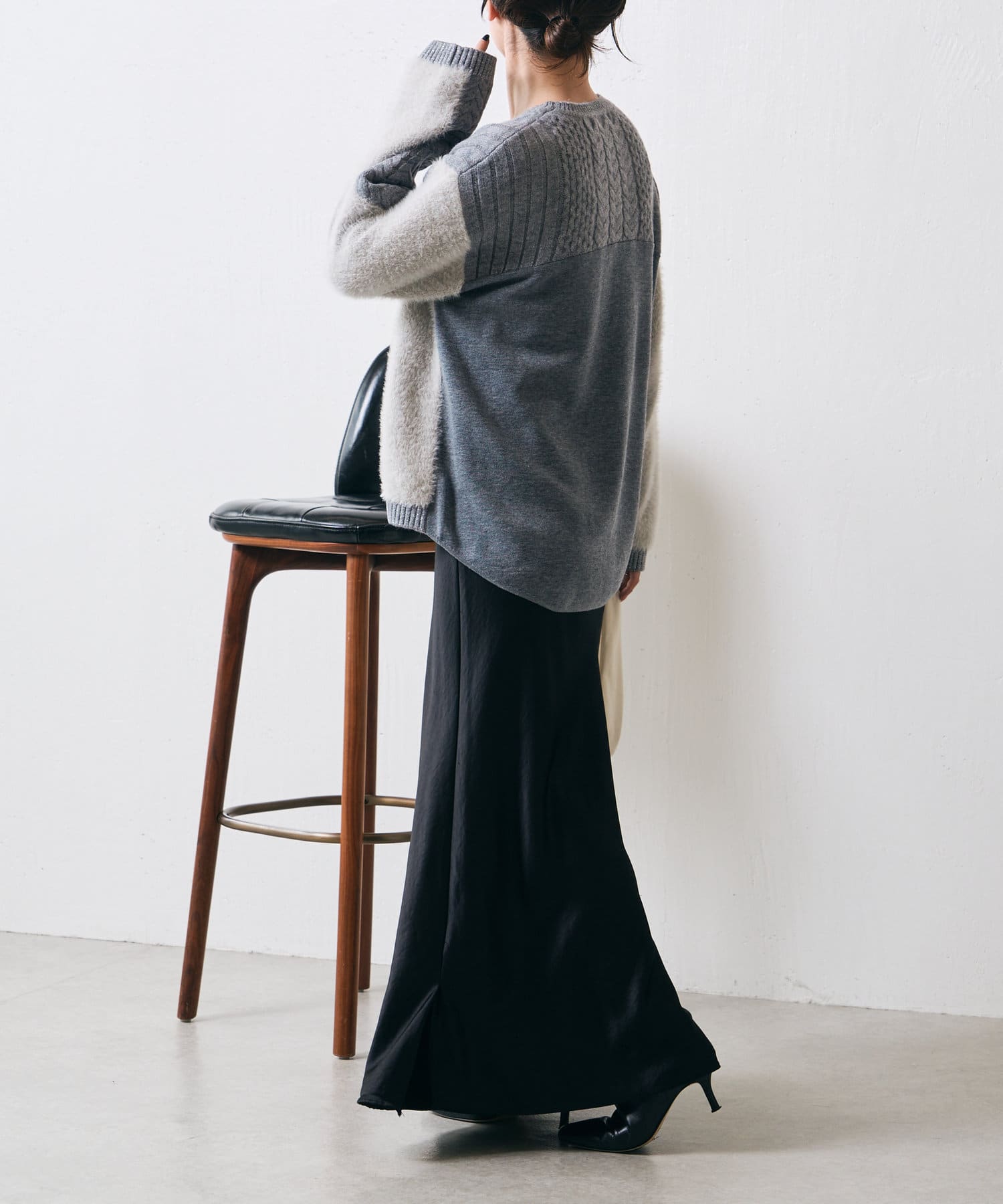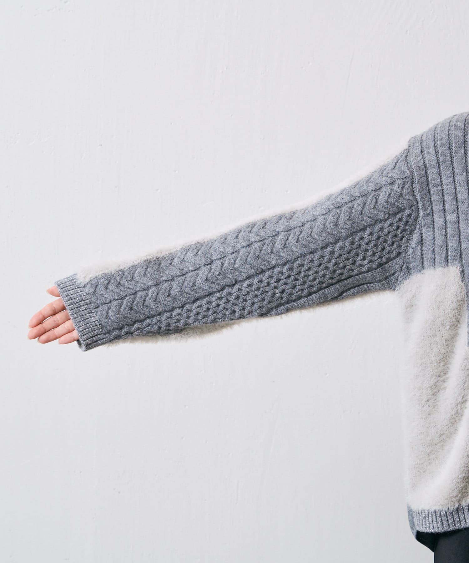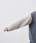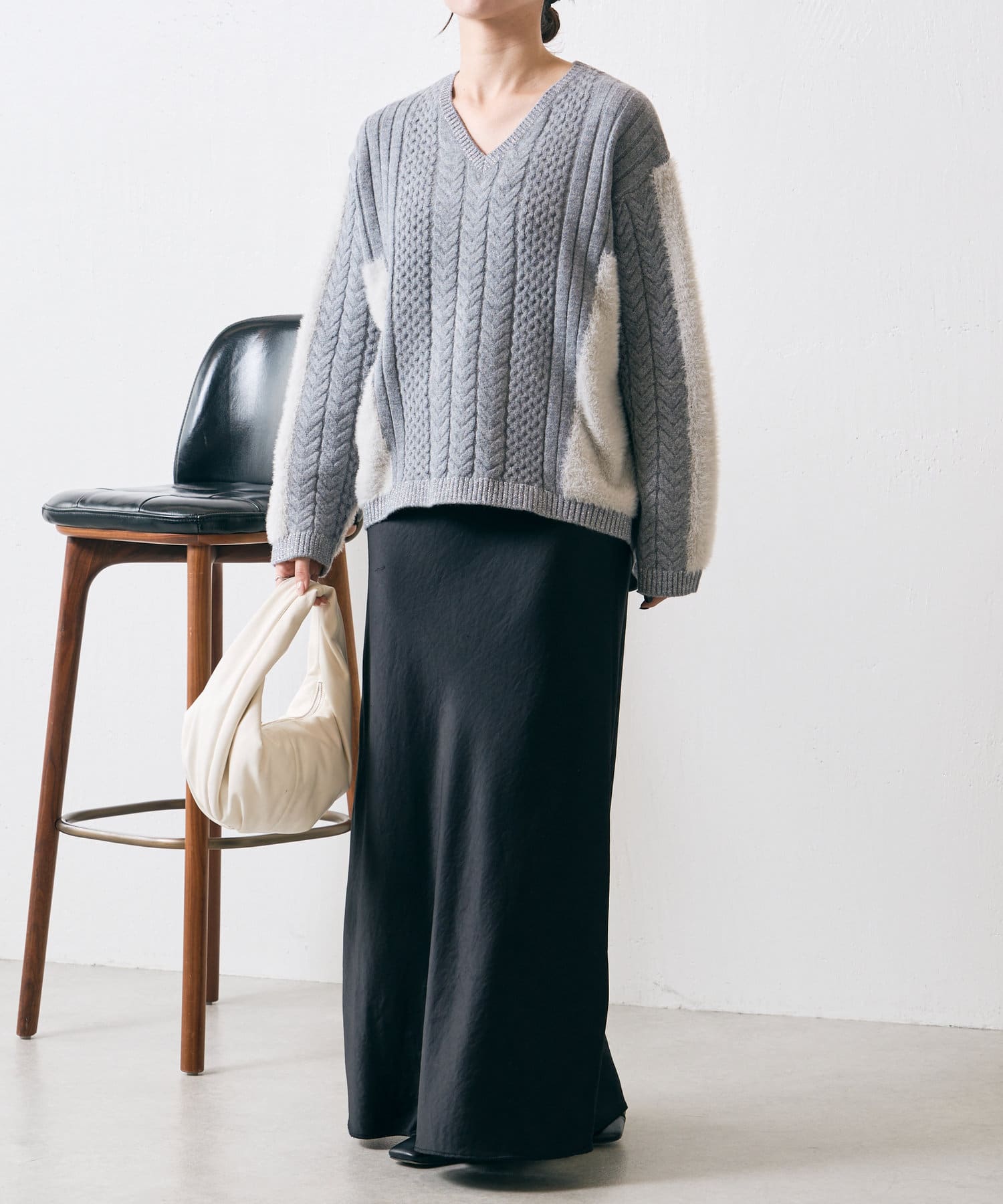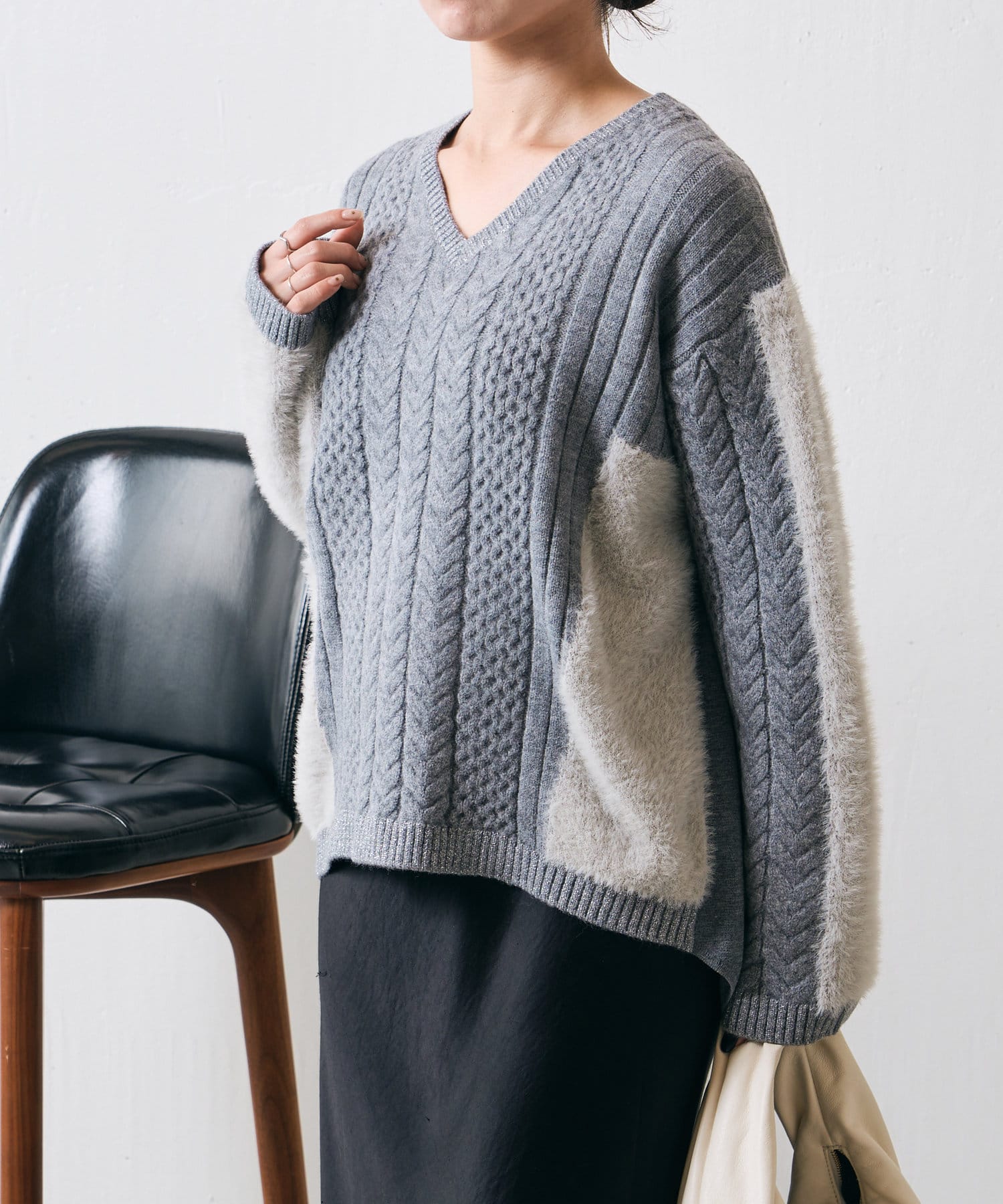・サイドとスリーブに施されたシャギー切り替えがニットながらすっきりとした印象に。