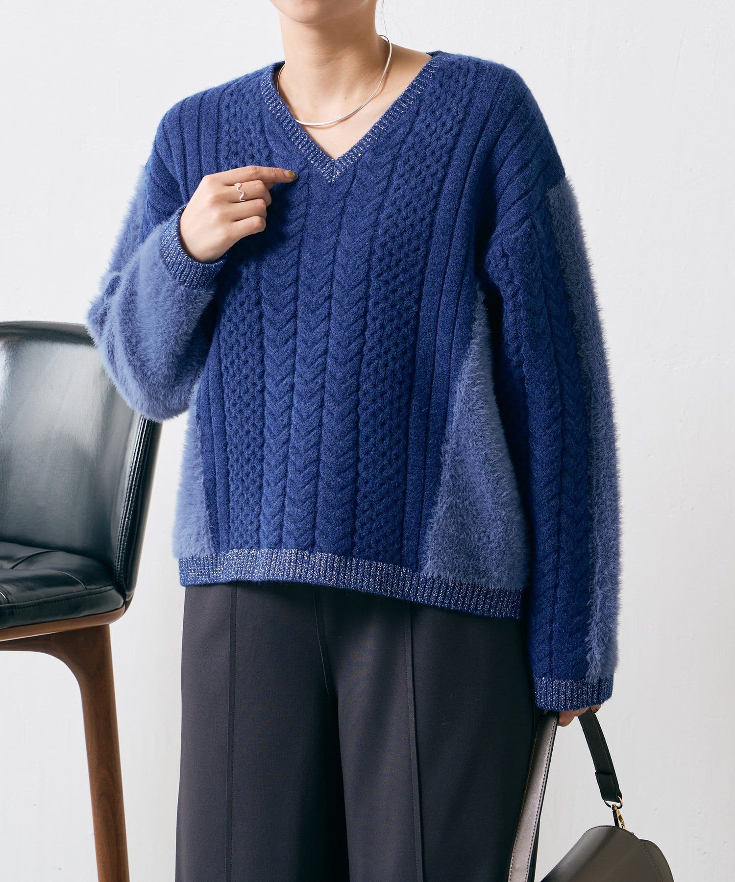 Jena espace merveilleux(ジェナ エスパスメルヴェイユ) ケーブルラメシャギーニット