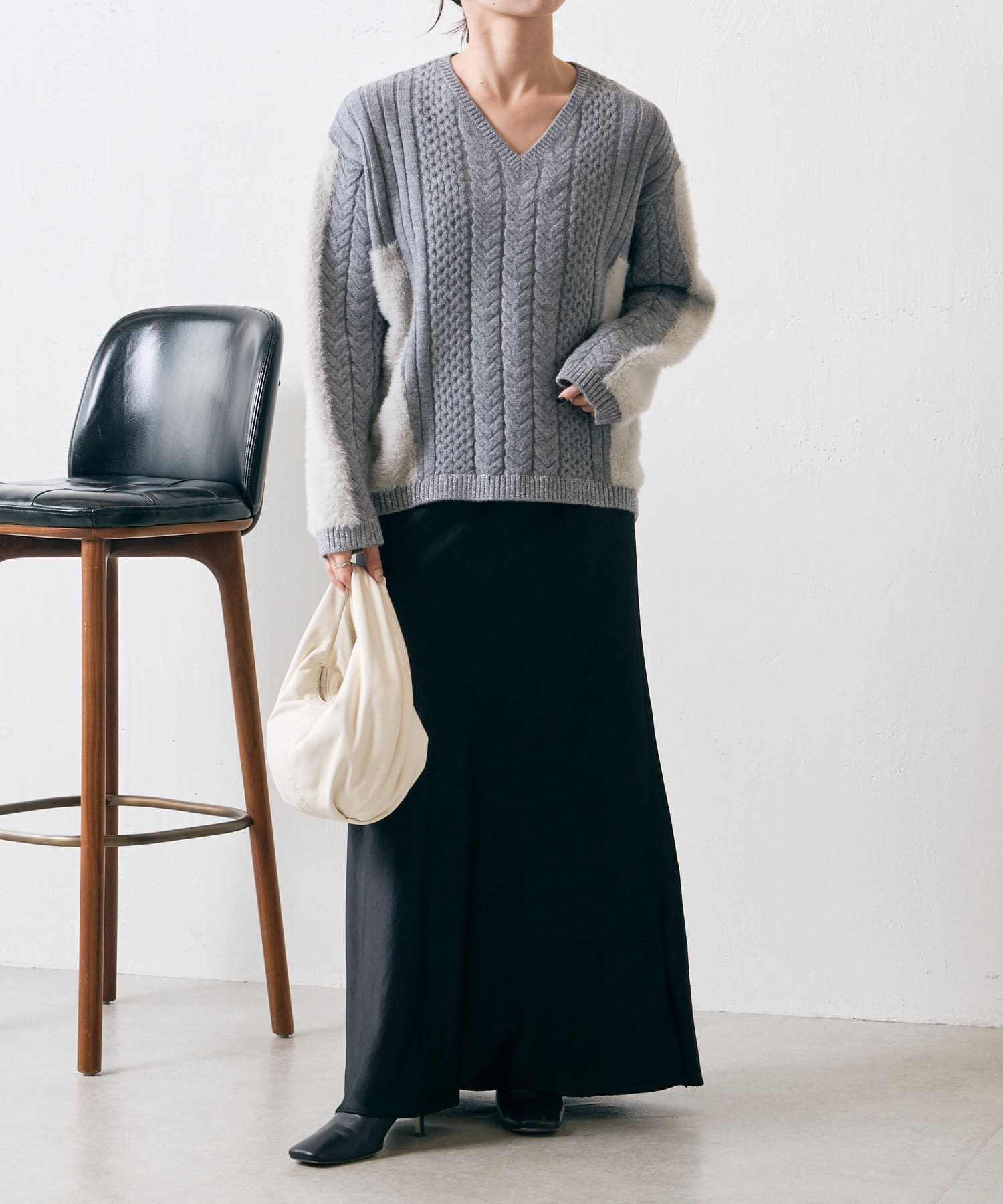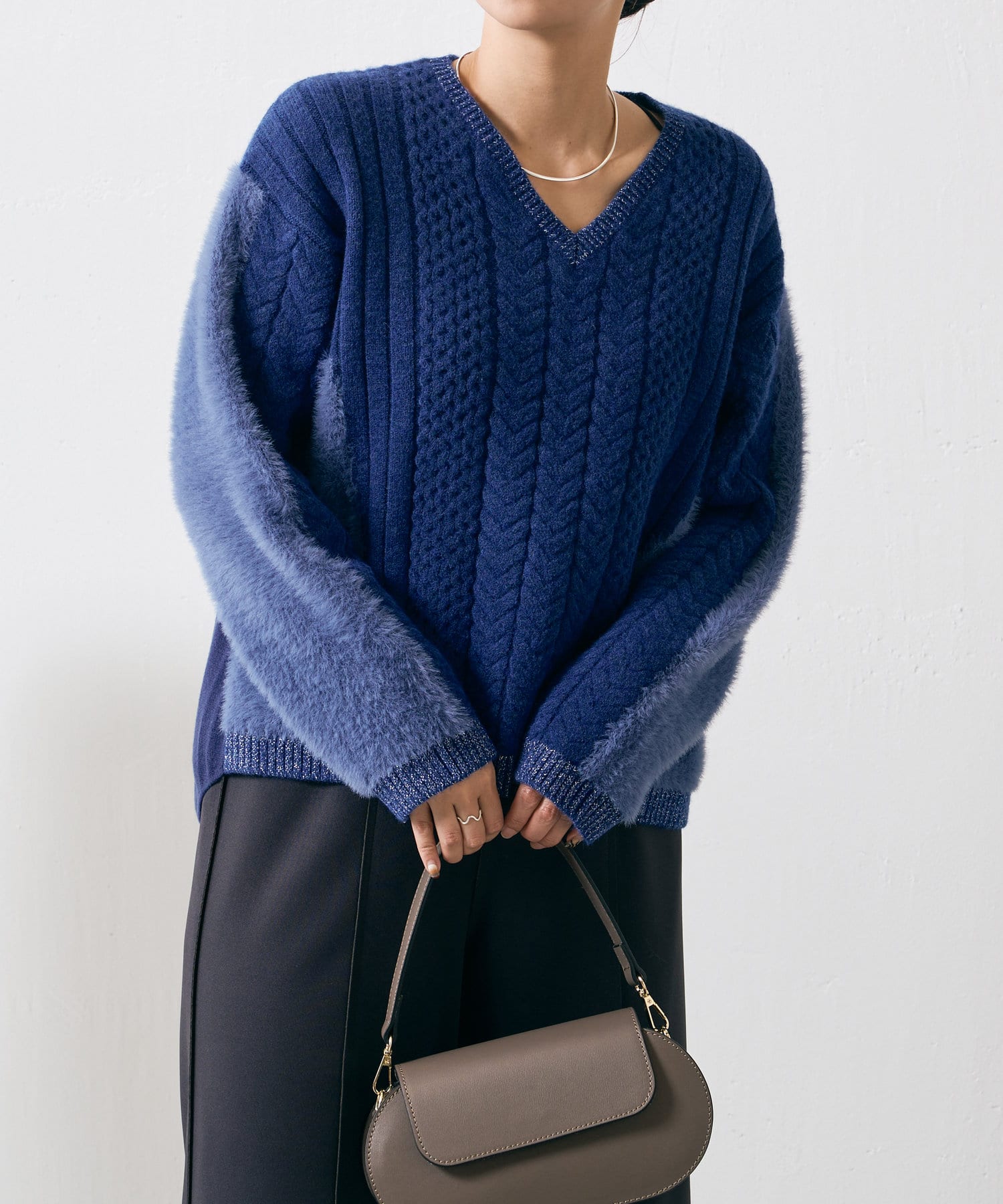 ・程よいラメとシャギーデザインが一枚で目を惹くジェナらしいケーブルニット。
