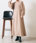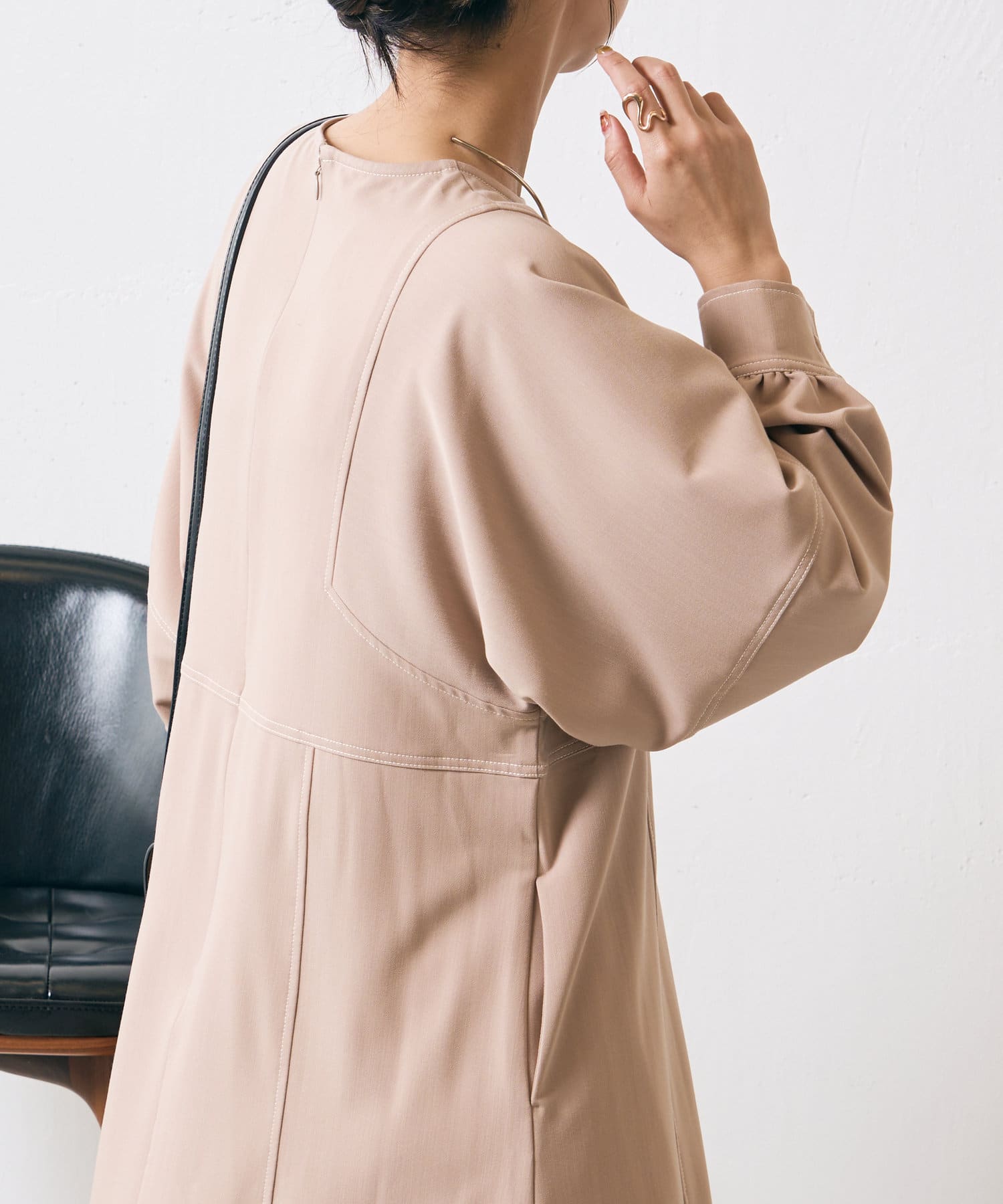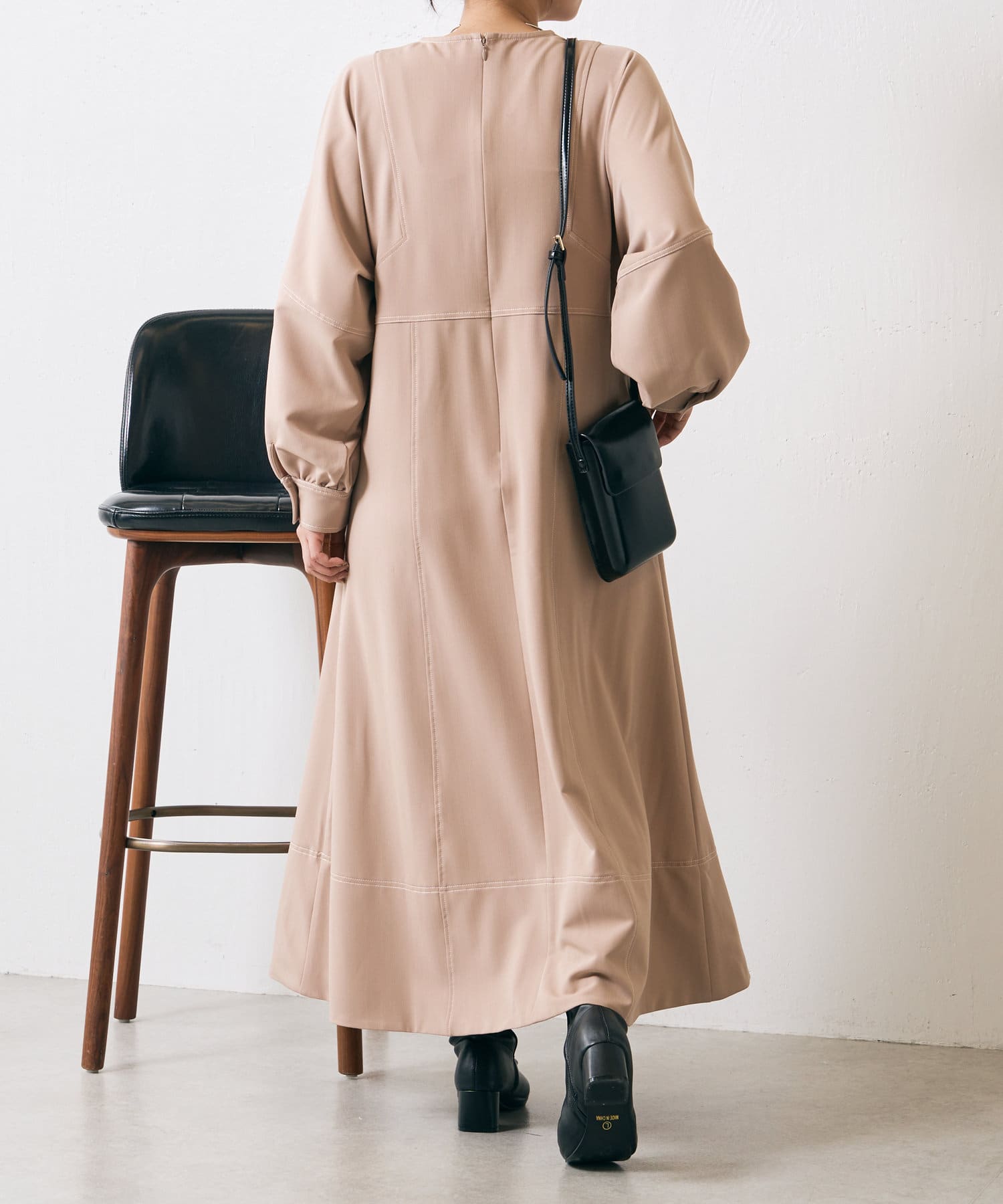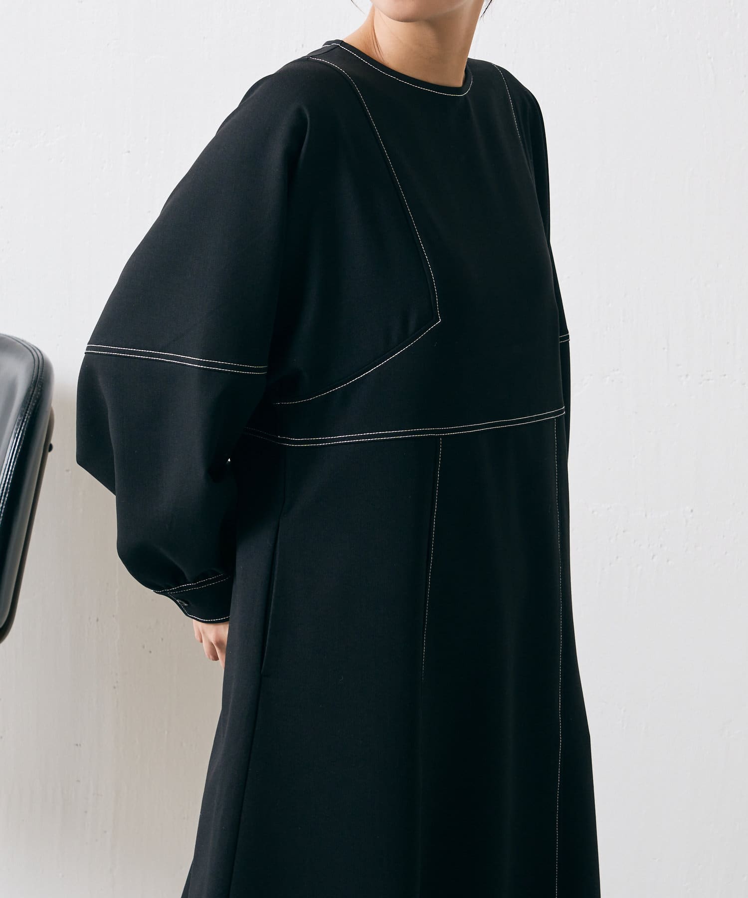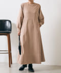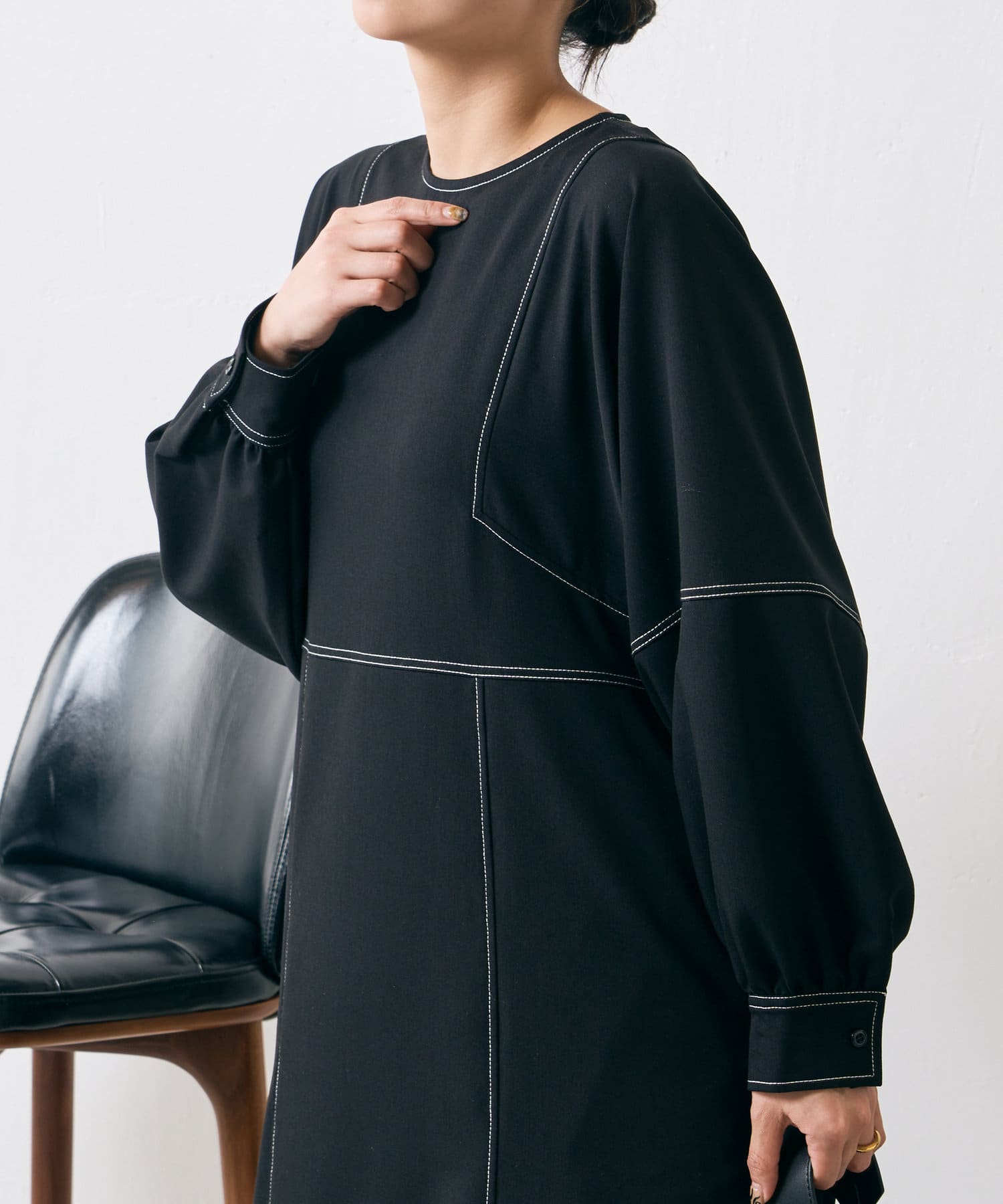 ・配色ステッチが施された、上品なフレアワンピース