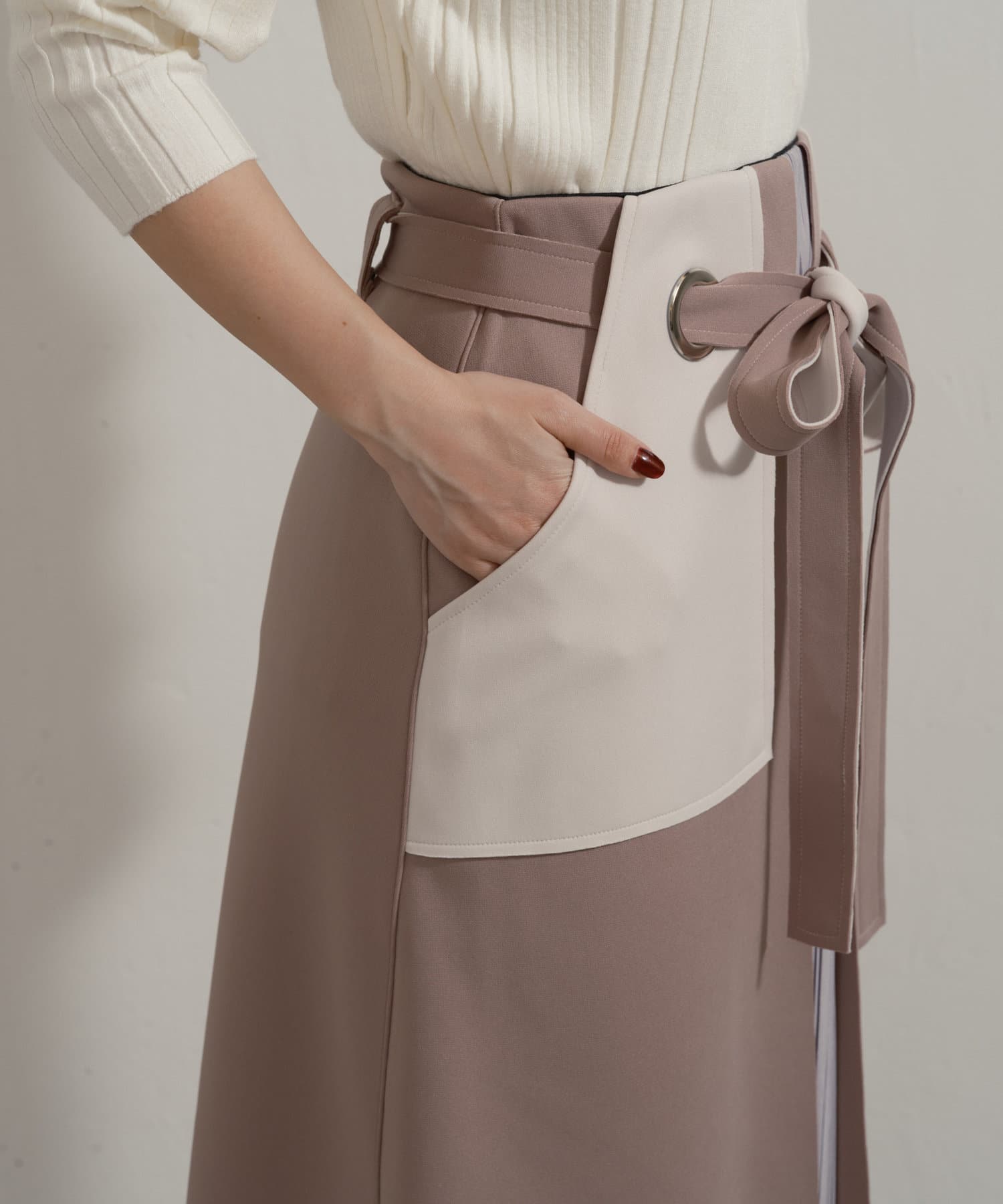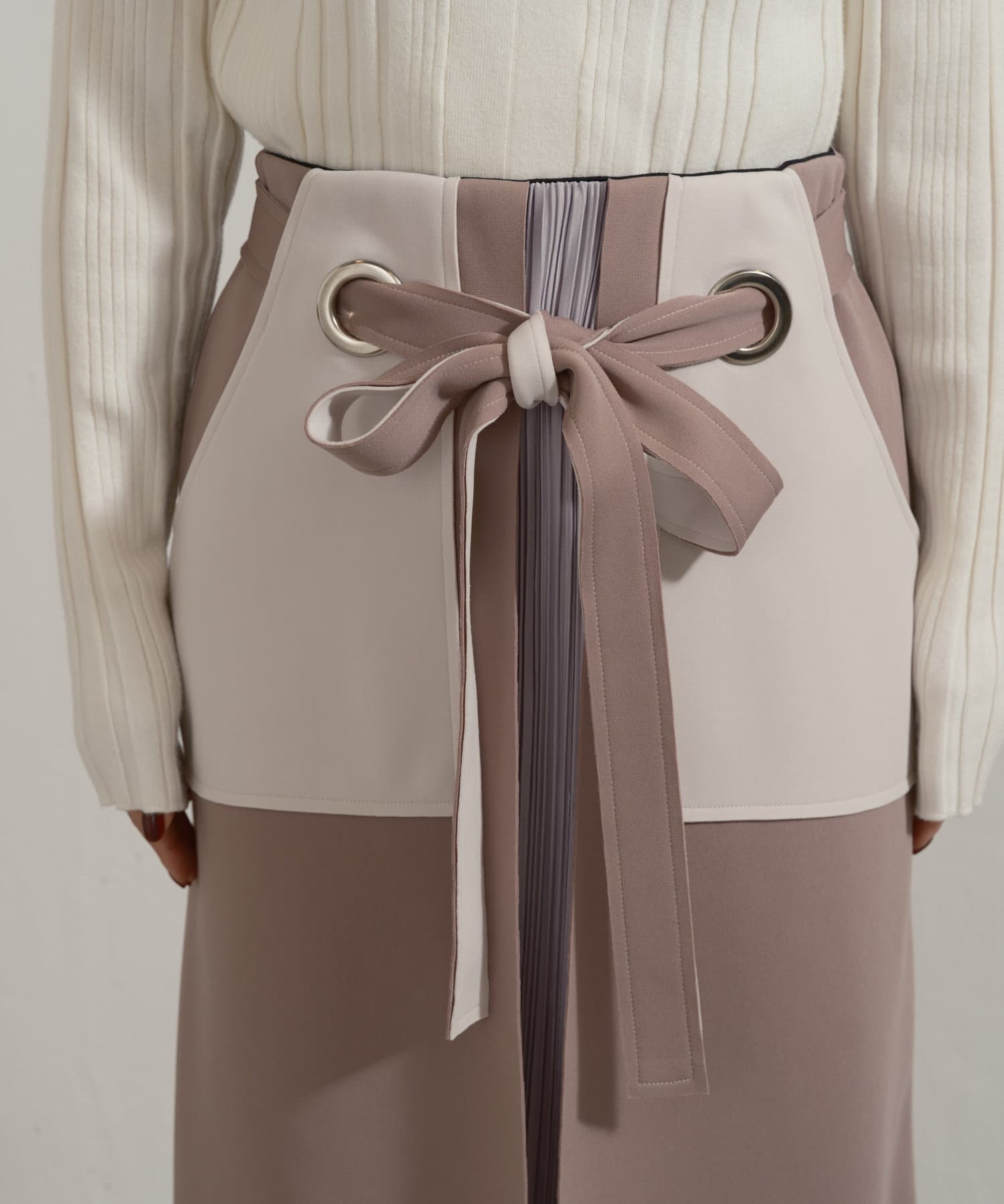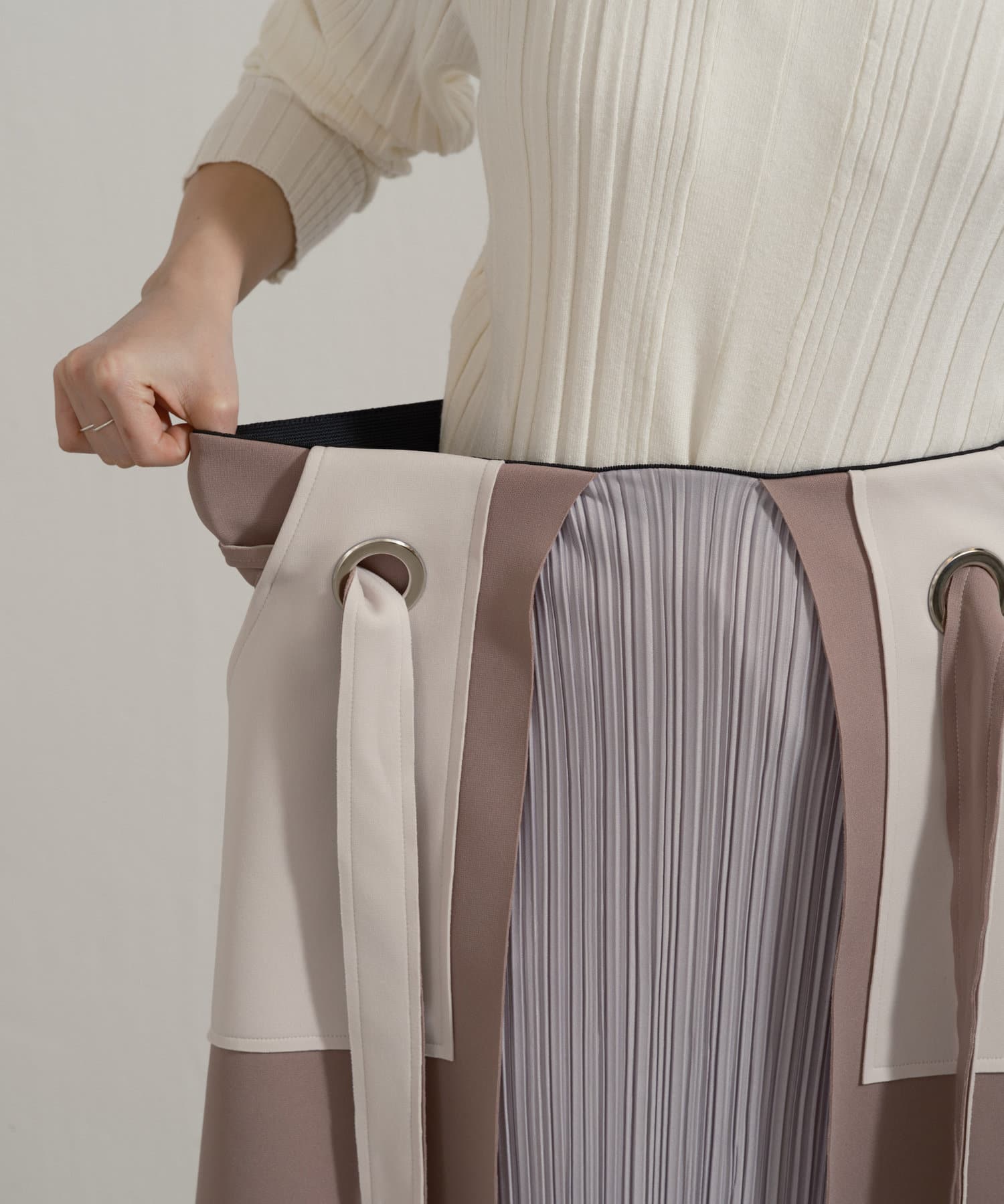 ・大きなアイレットに、ベルトを通してキュッと結ぶ女性らしいデザイン。
