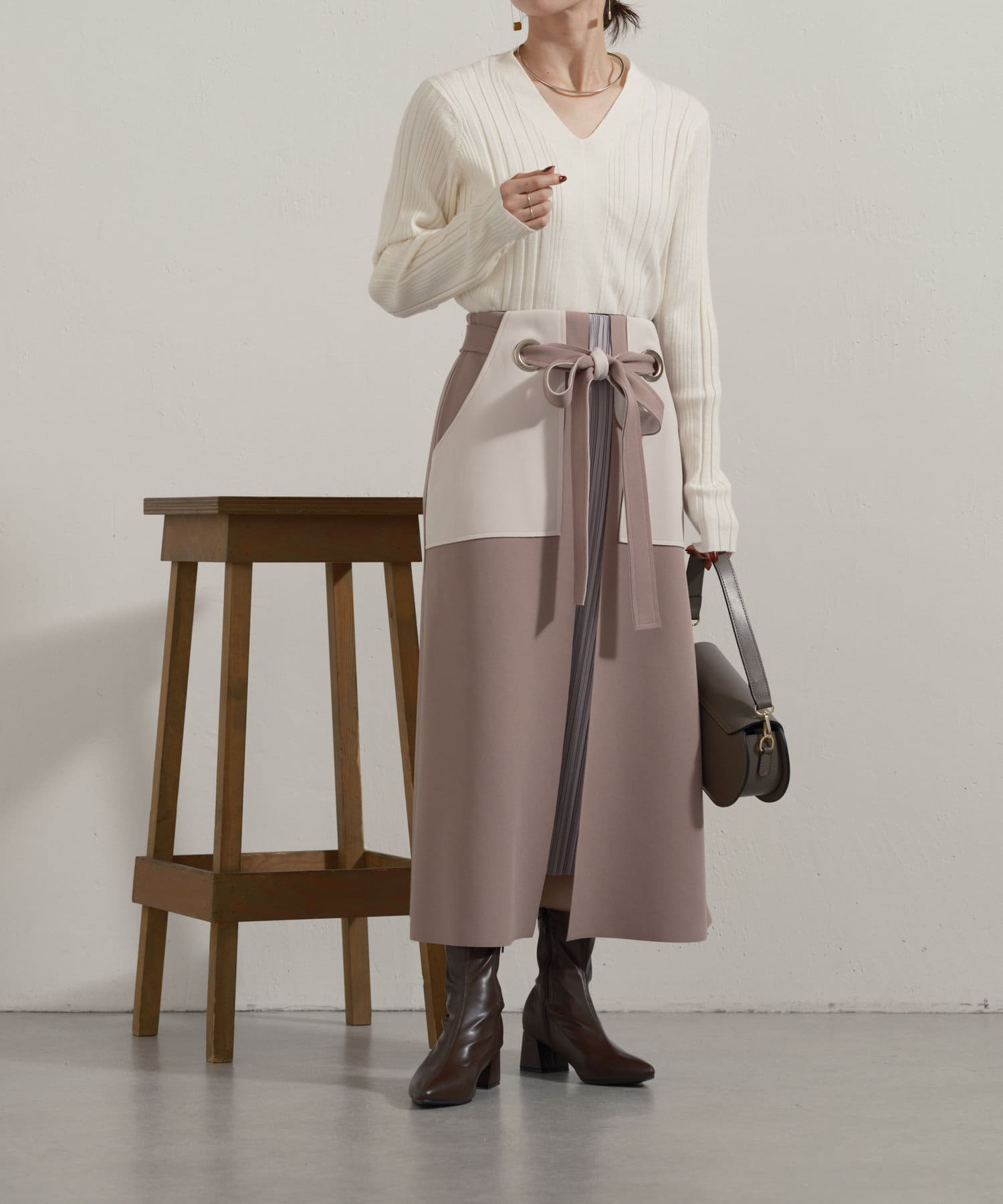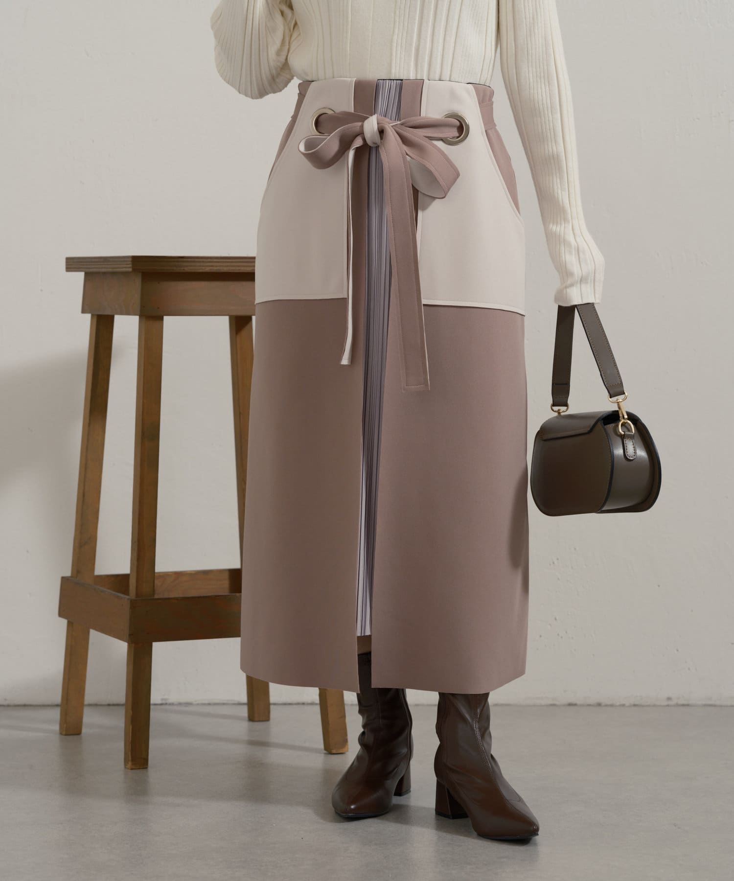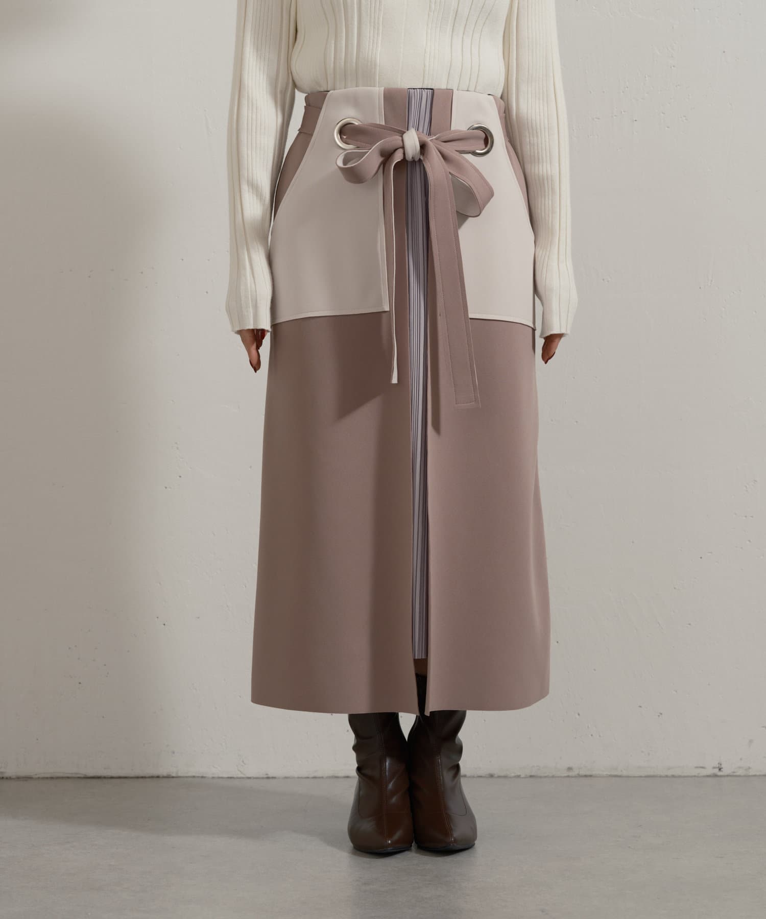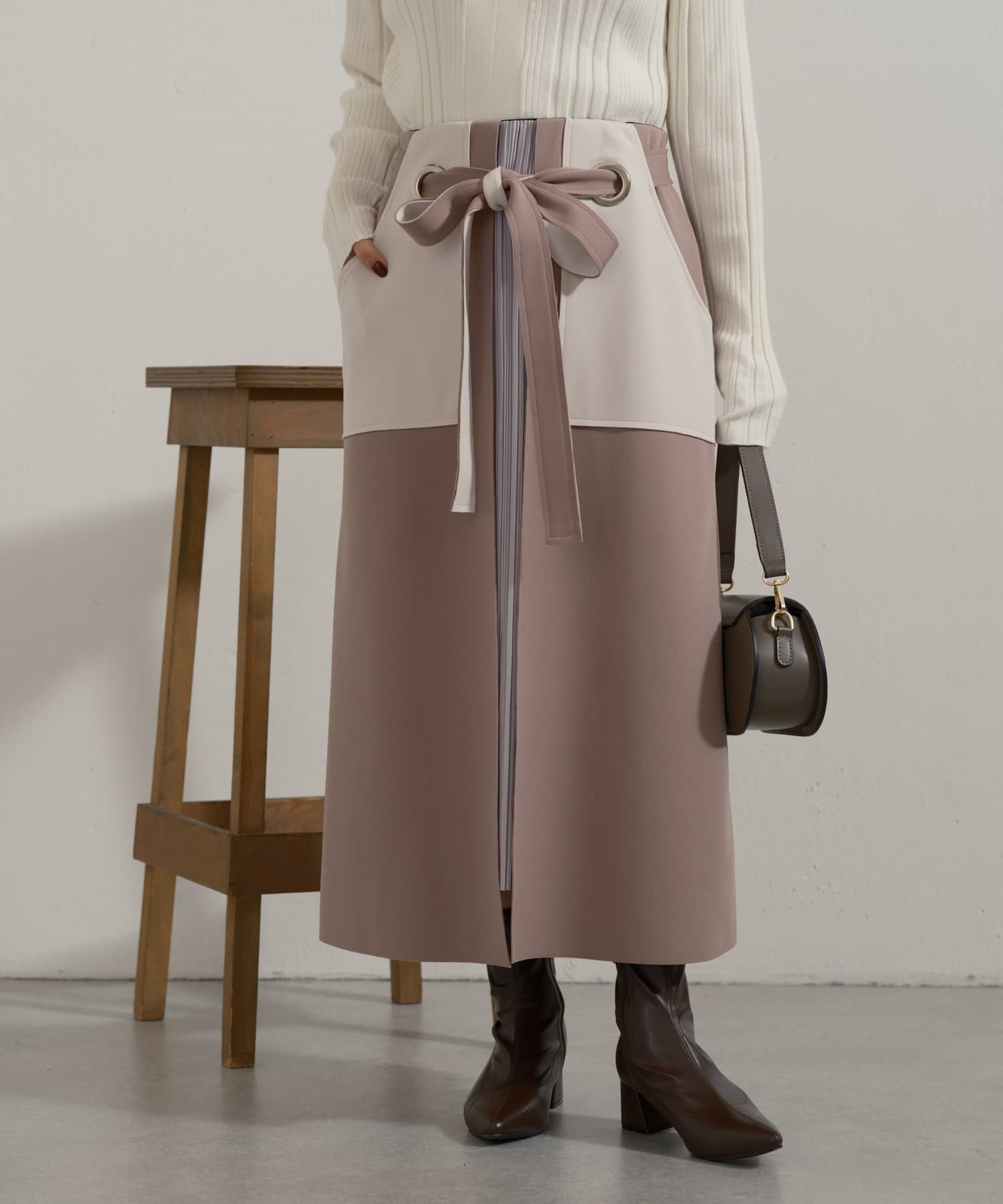 ・大きなアイレットに、ベルトを通してキュッと結ぶ女性らしいデザイン。