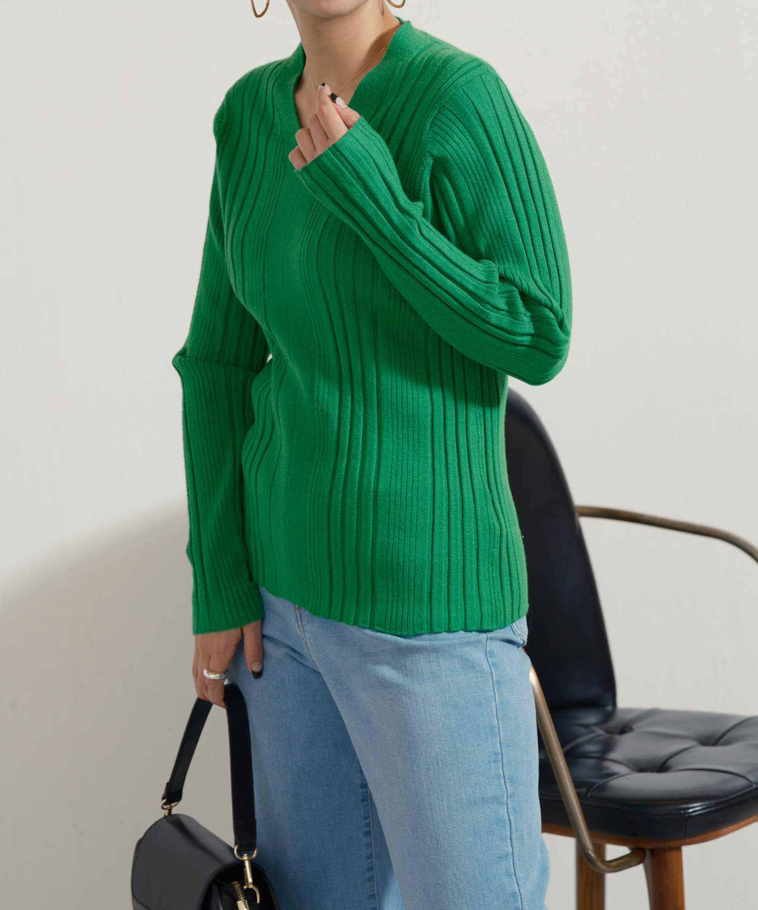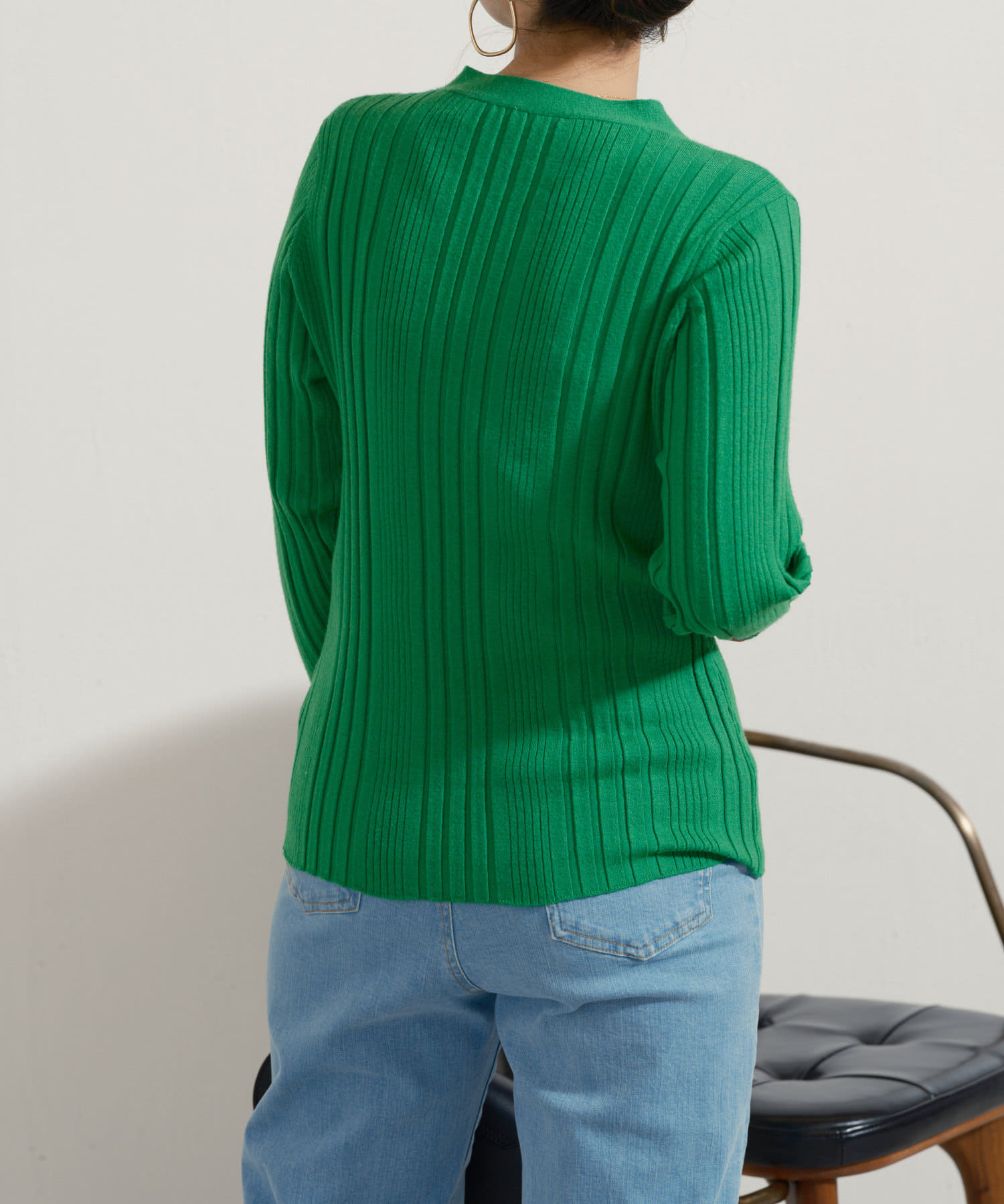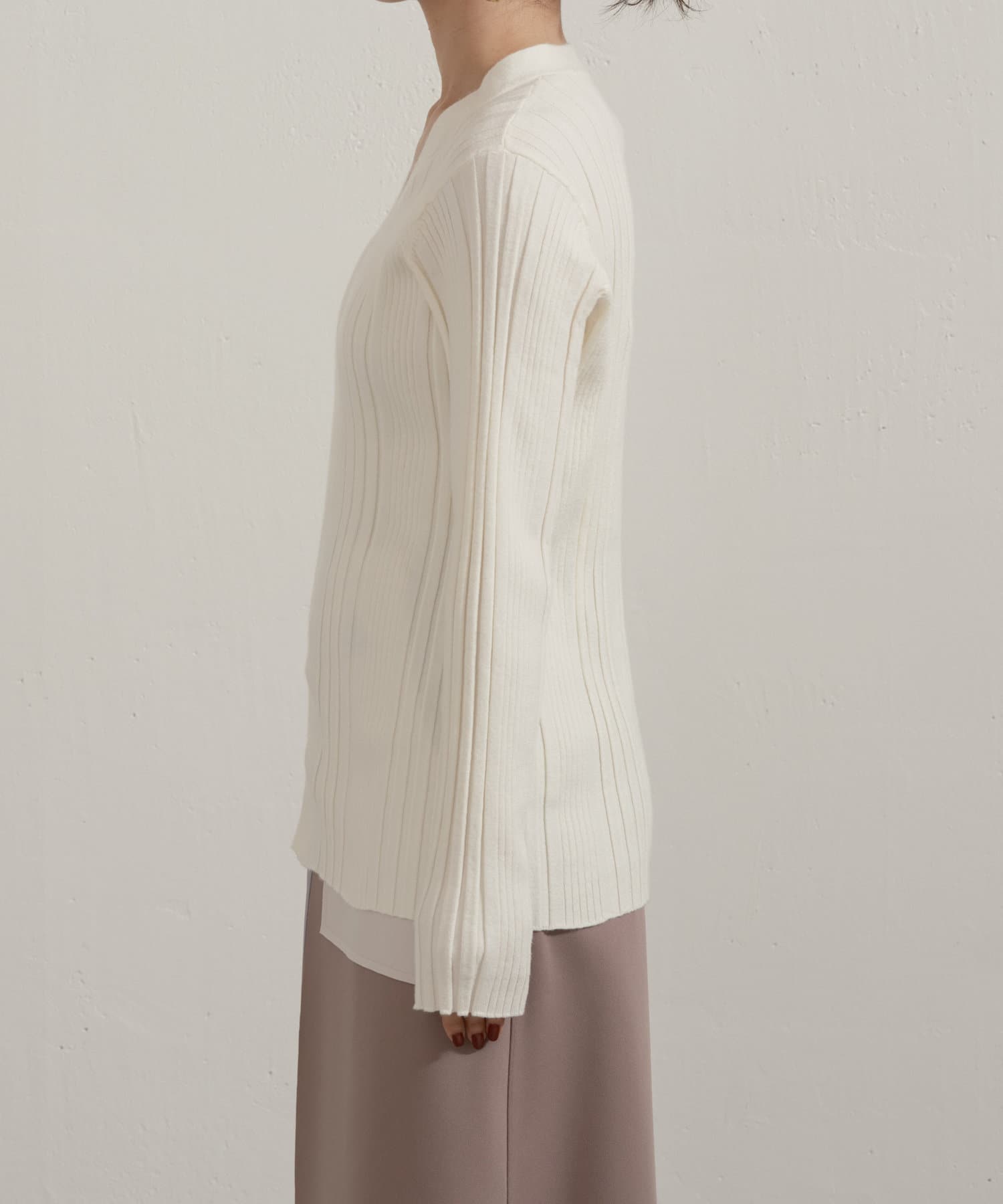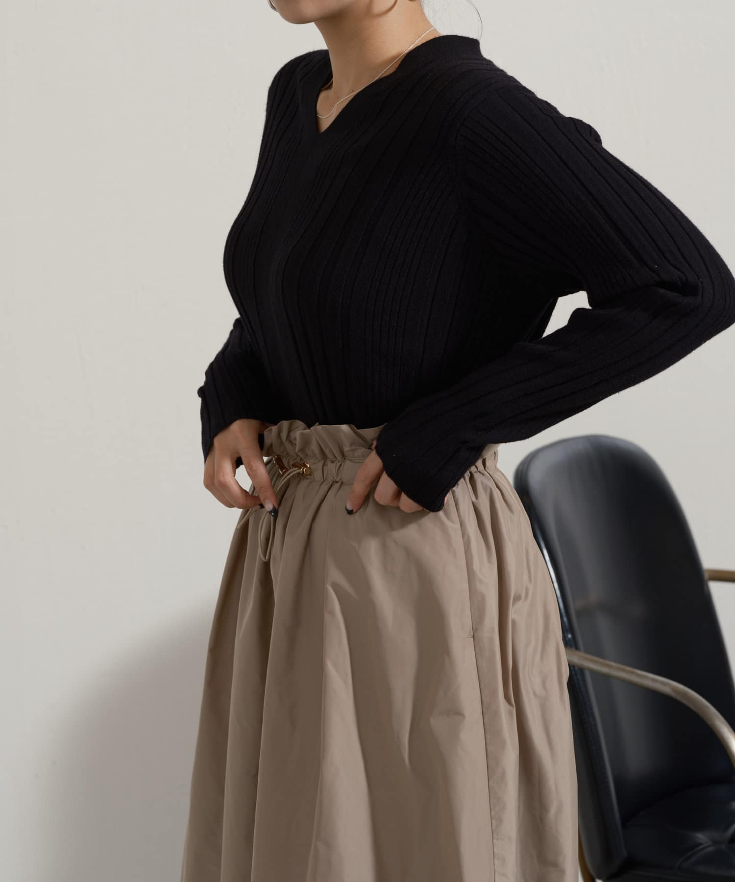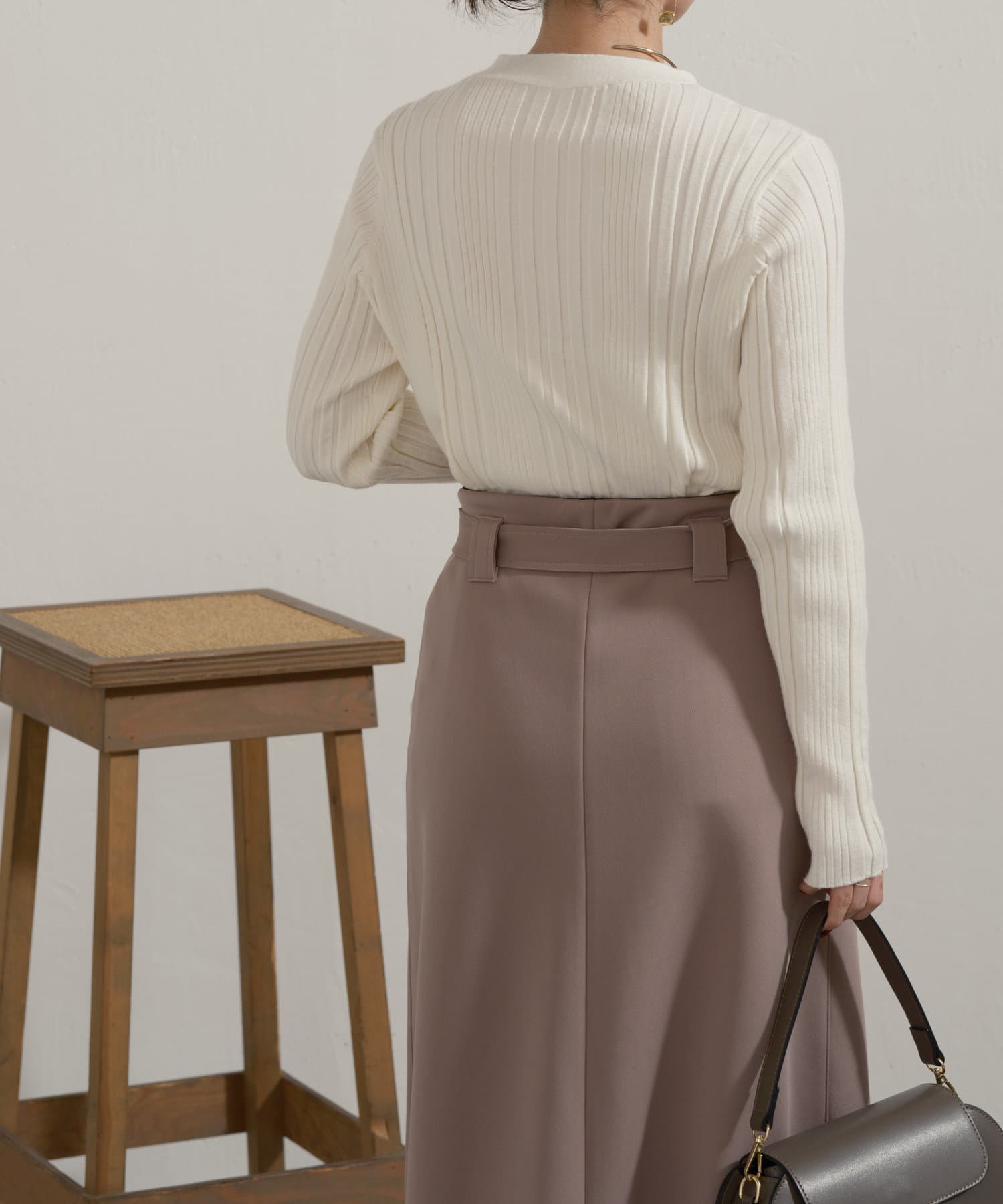 ・アウターの中に着込んでも着ぶくれしにくく、一枚持っておくと万能アイテムリブニット。
