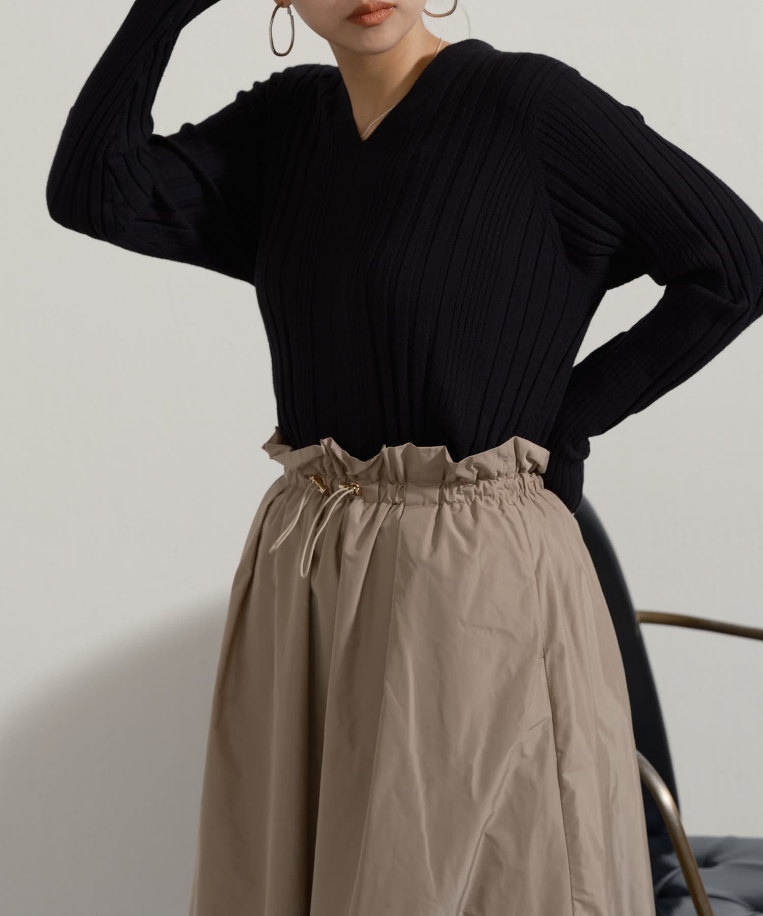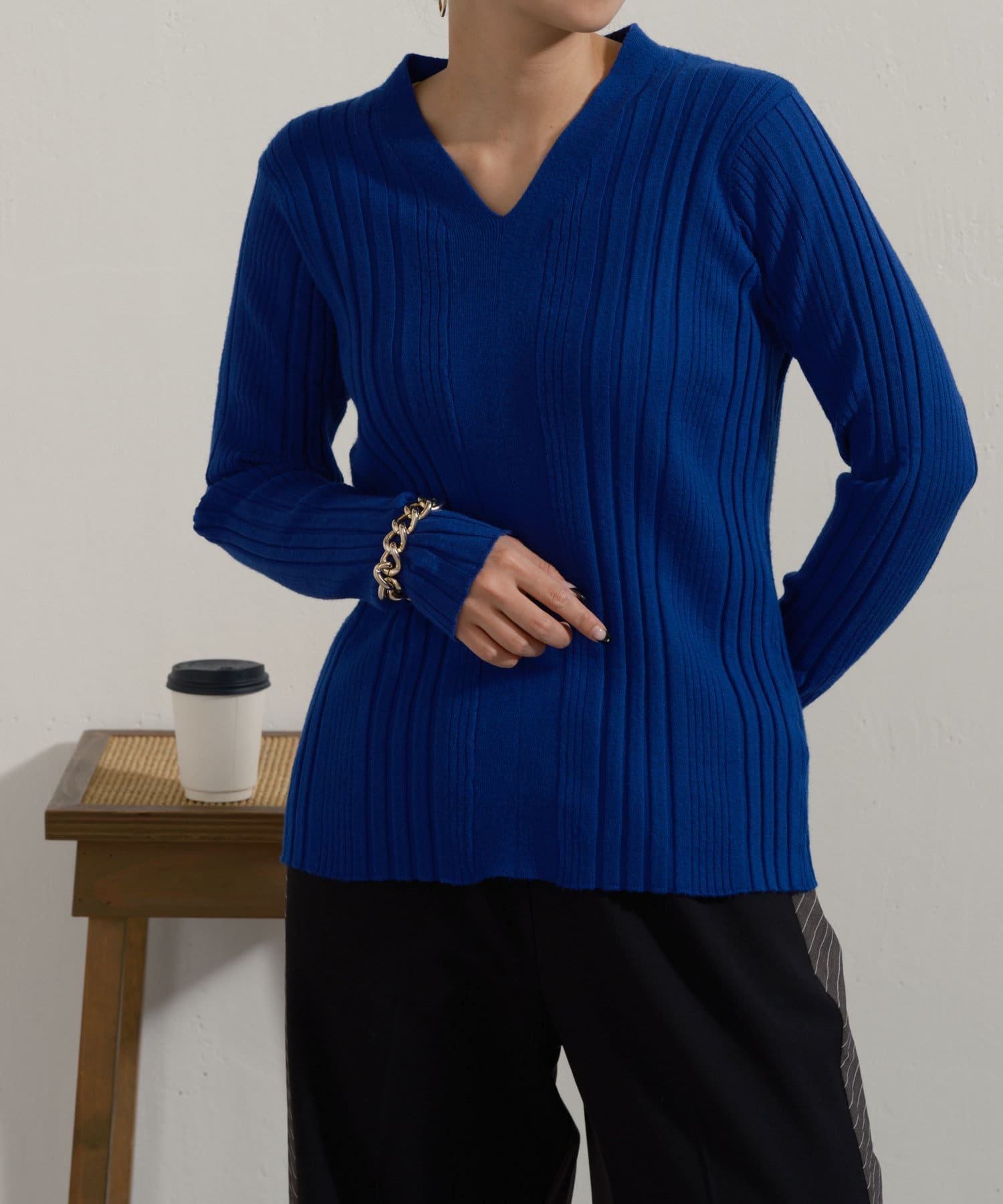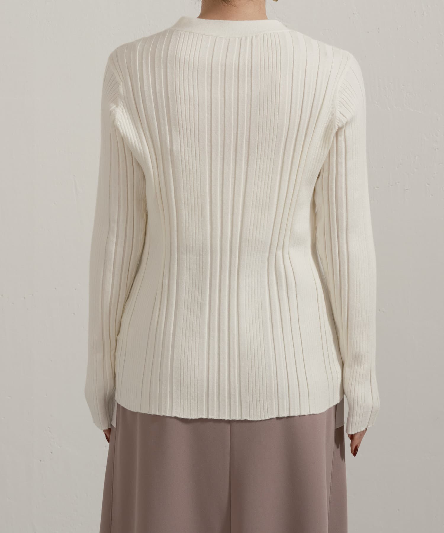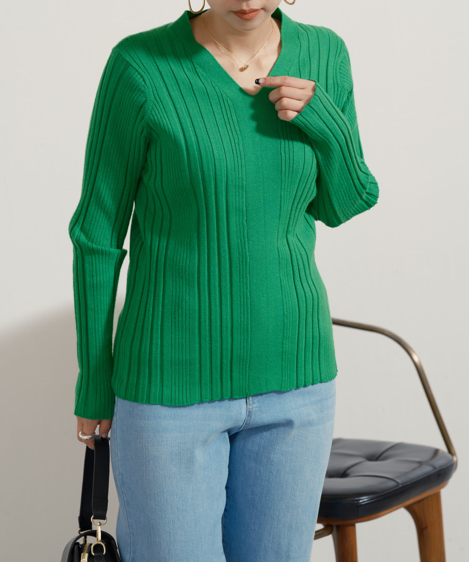 ・アウターの中に着込んでも着ぶくれしにくく、一枚持っておくと万能アイテムリブニット。